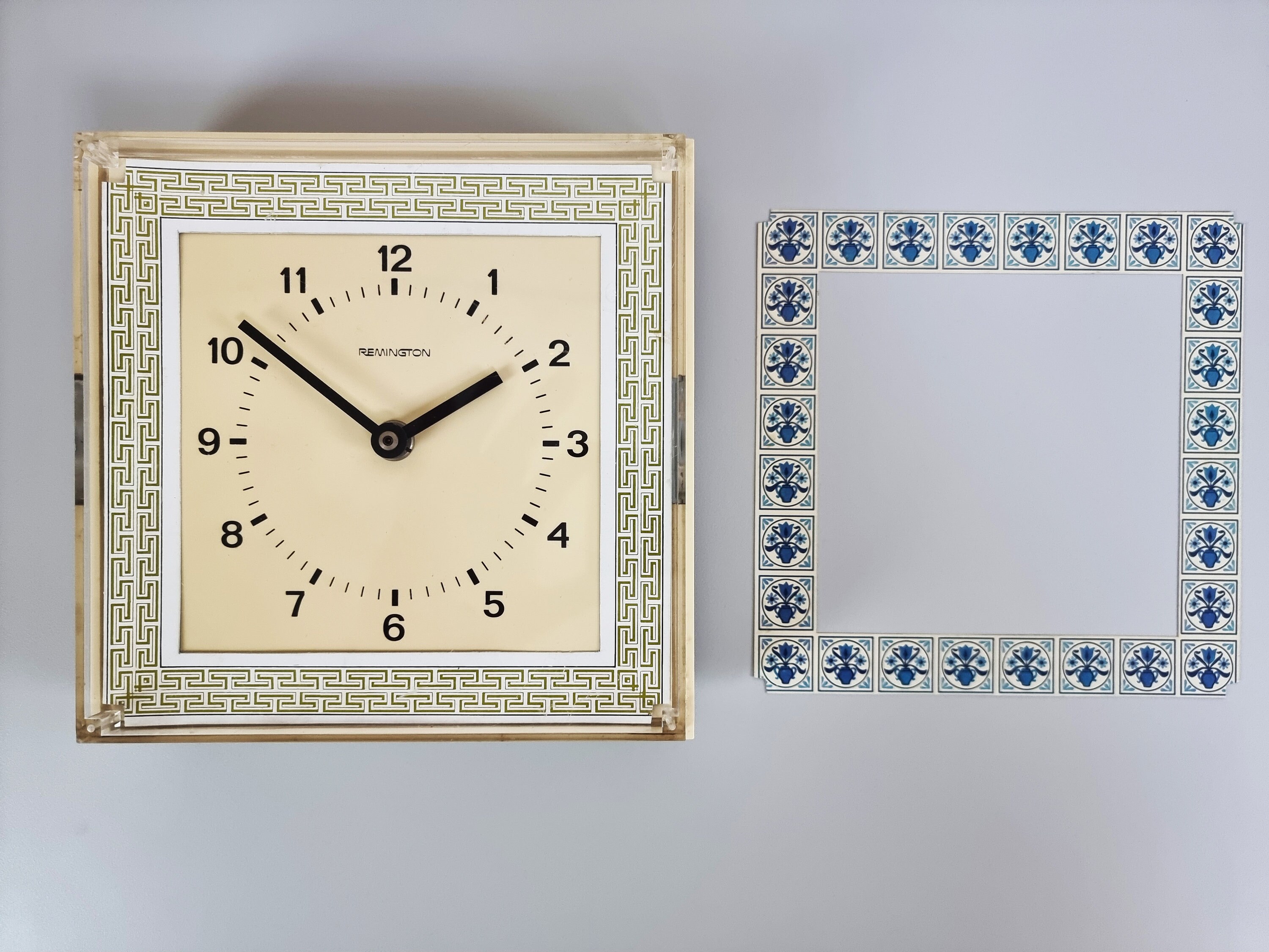 Fabulous vintage plastic wall clock from the 1960s by Remington—what is unique about this clock is it comes with 4 interchangeable border graphics.