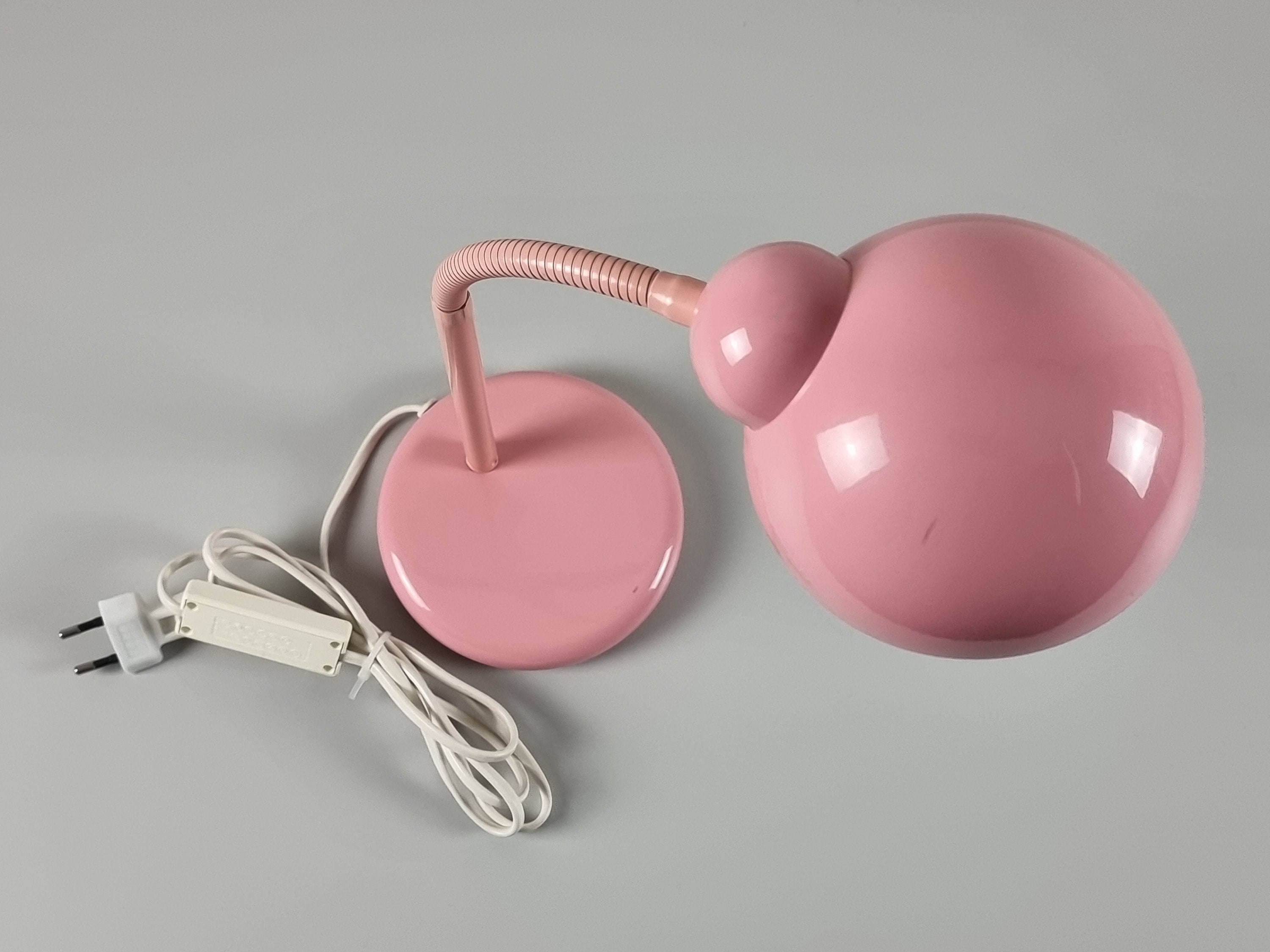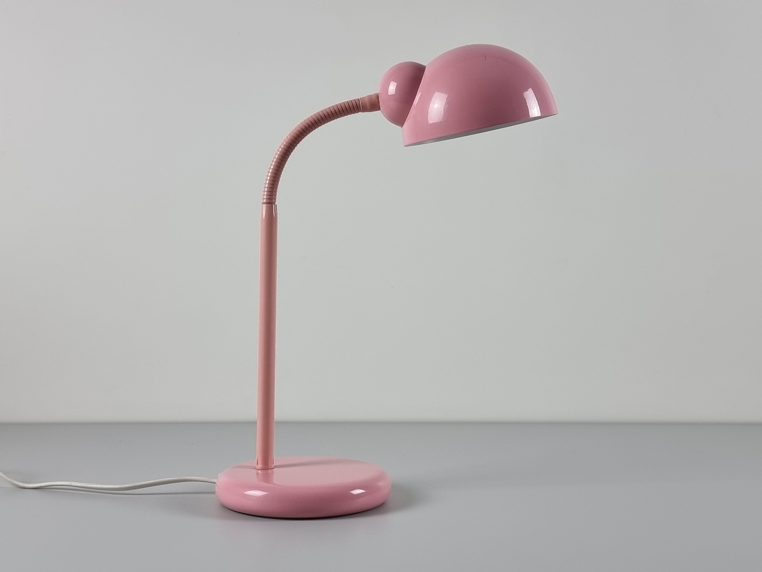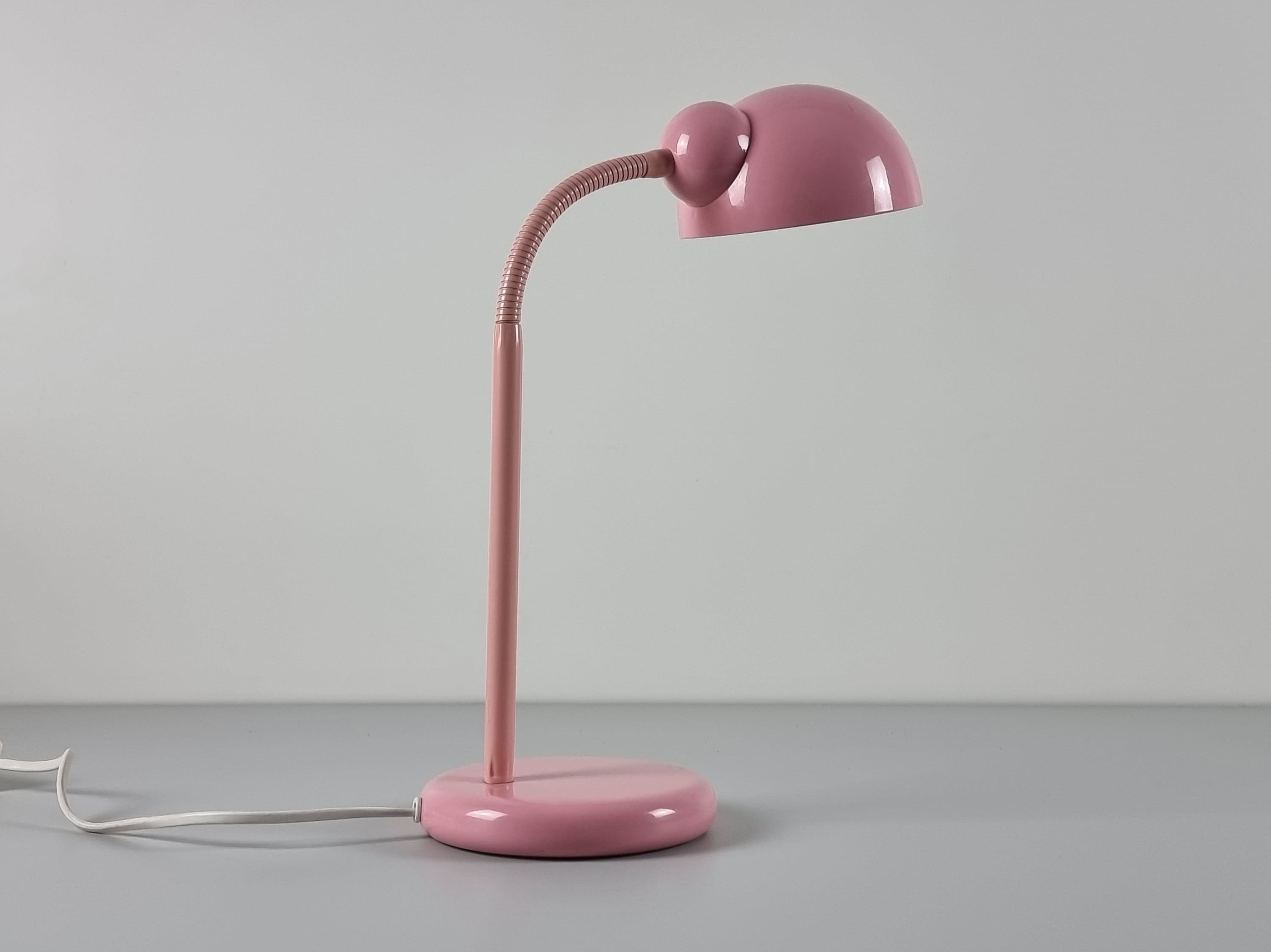 Postmodern Design - Vintage HAPPYLIGHT Pastel Pink Gooseneck Table Lamp - Retro Desk Lamp - Holland, 1980s.
