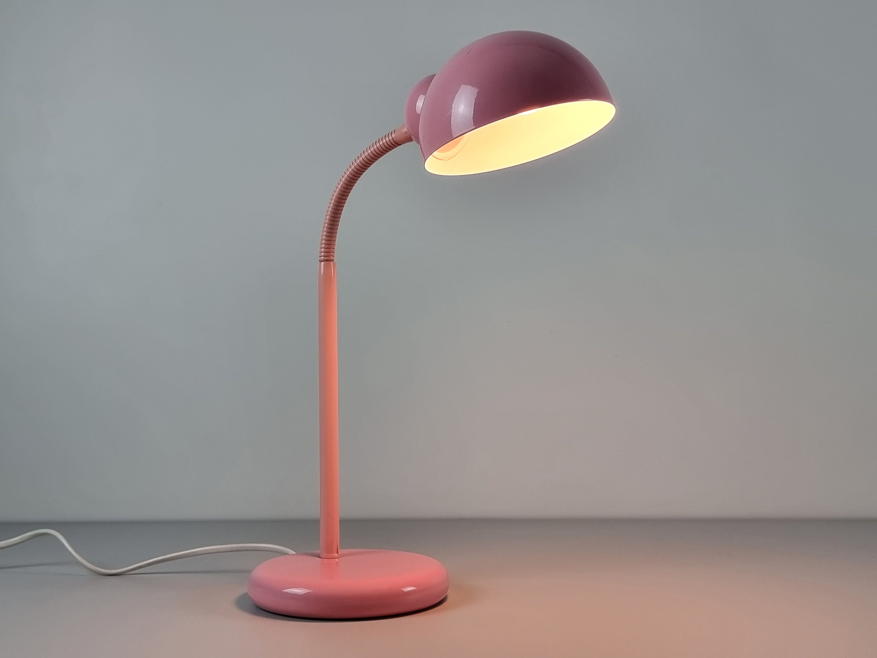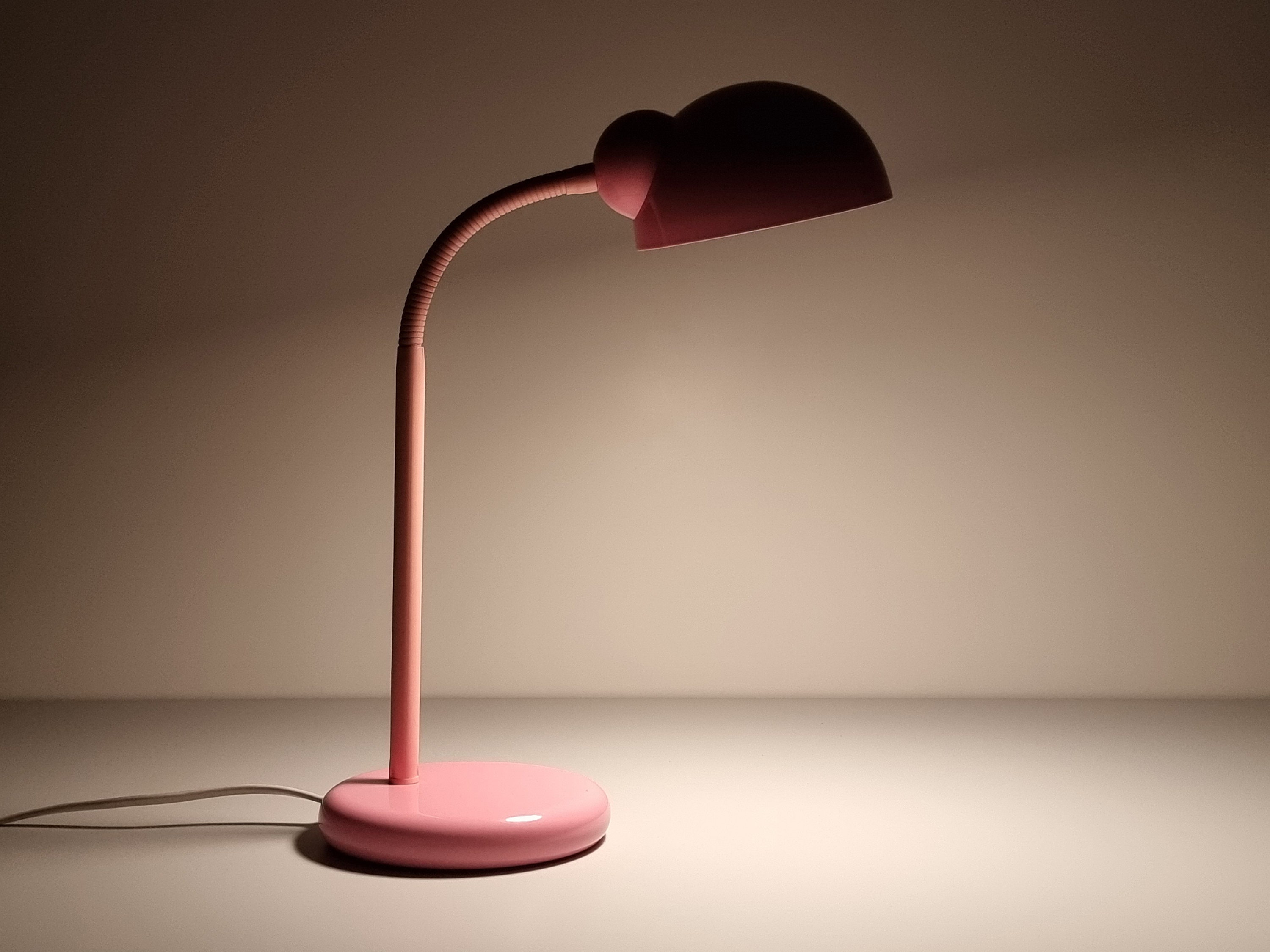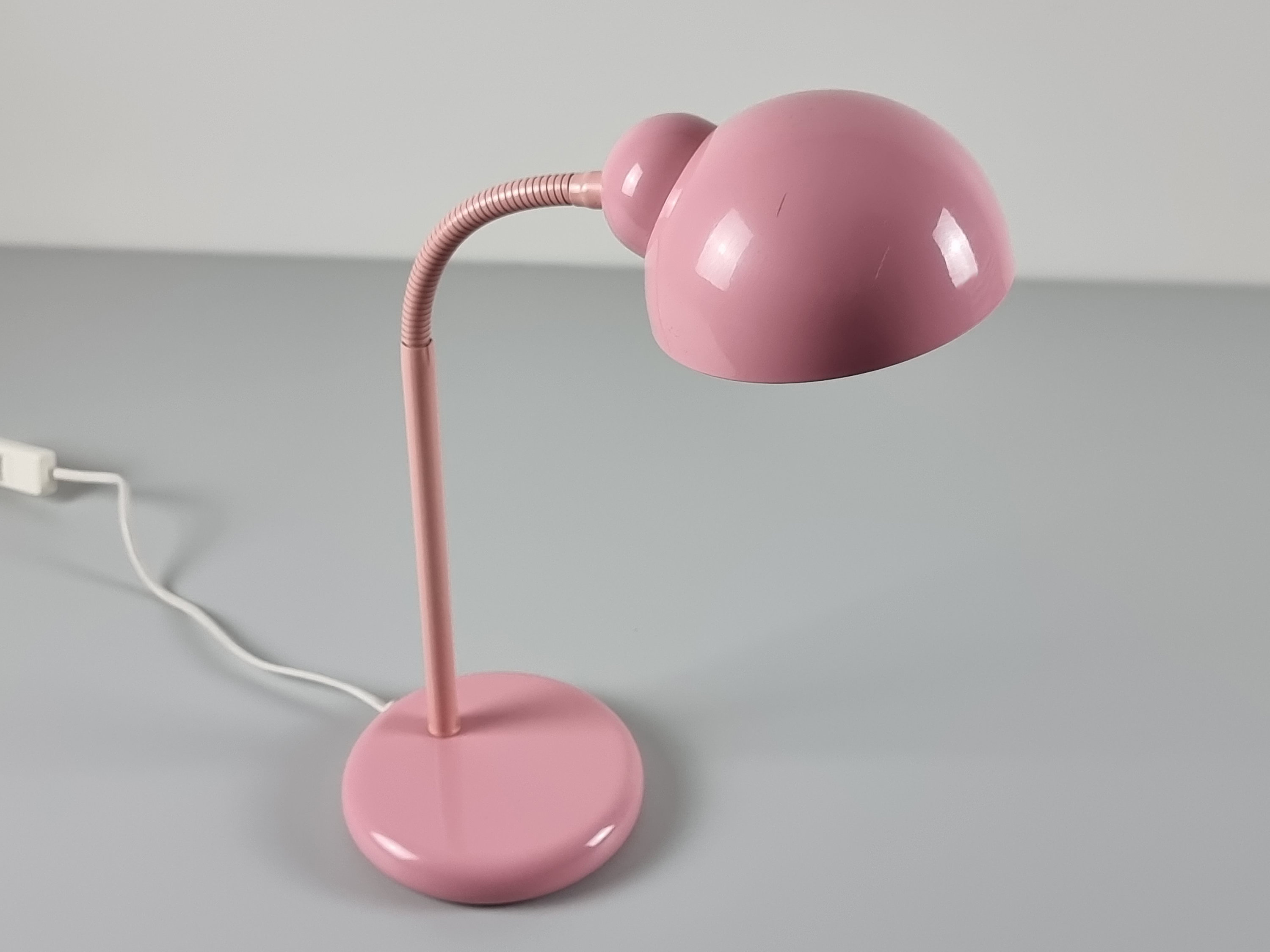 Postmodern Design - Vintage HAPPYLIGHT Pastel Pink Gooseneck Table Lamp - Retro Desk Lamp - Holland, 1980s.
