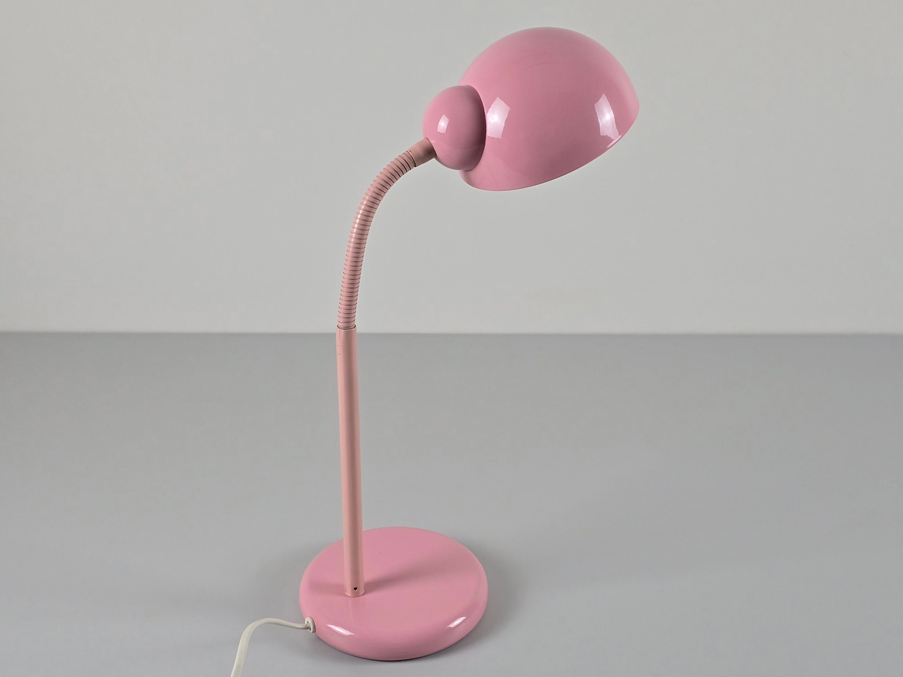 Vintage gooseneck metal lamp from the 1980s by Happylight in excellent condition featuring a beautiful pastel pink color.