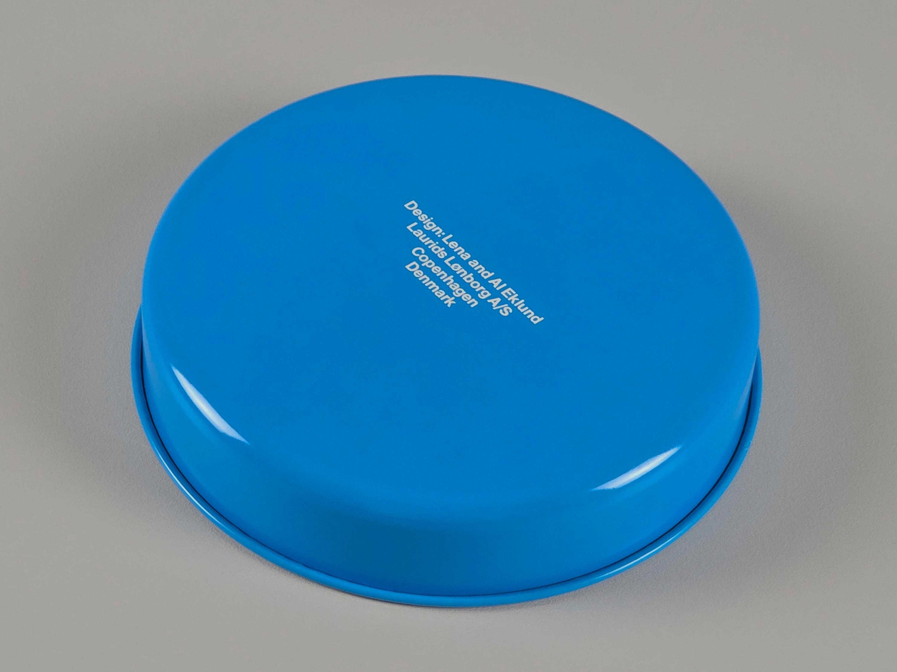 Known for their whimsical and graphic approach to household objects, the Eklunds' work for Lønborg is highly collectible. This round, high-rimmed tray is perfect for serving drinks, organizing a vanity, or simply hanging as a piece of wall art to add a burst of retro Scandinavian color to your space.
