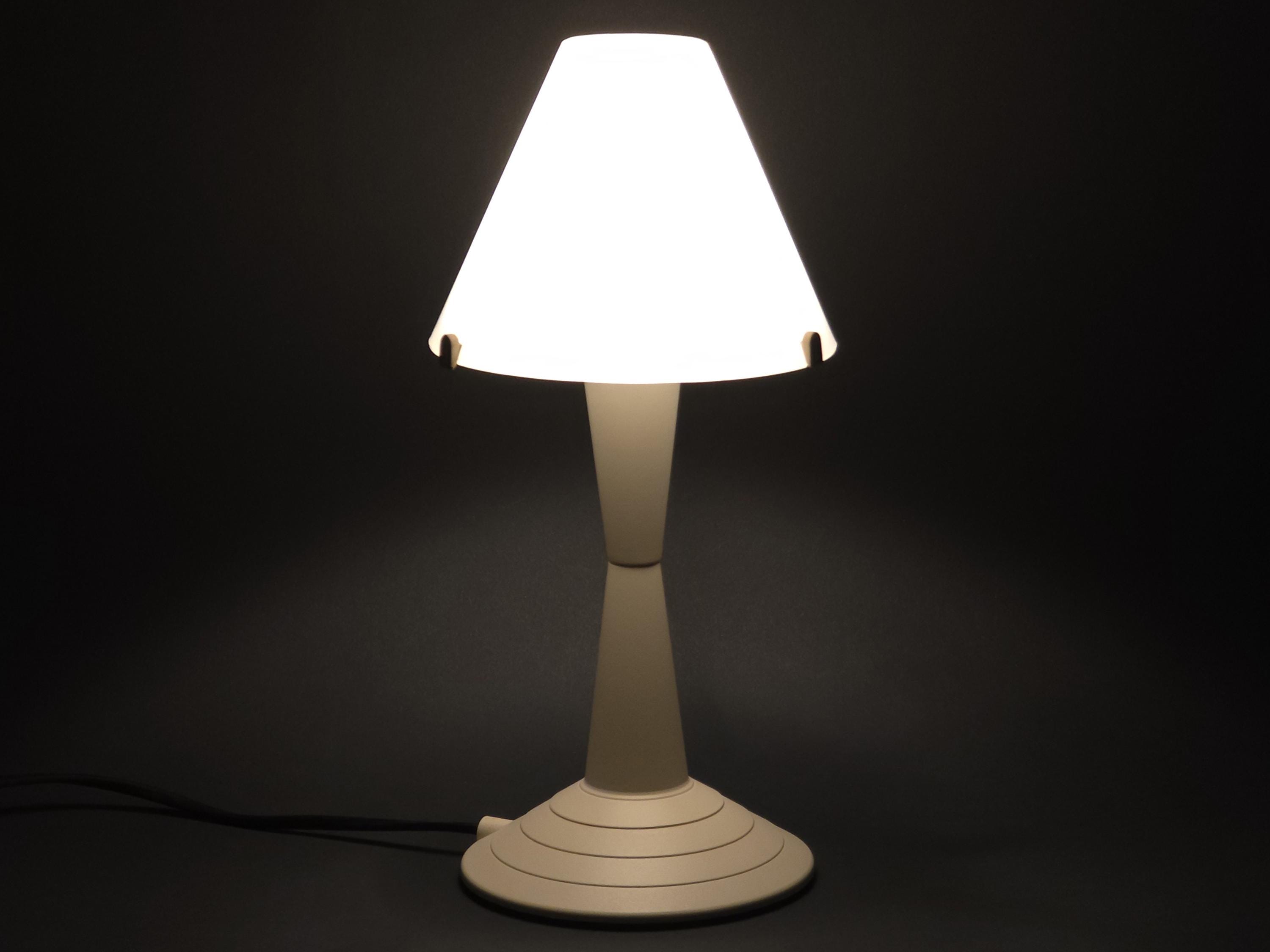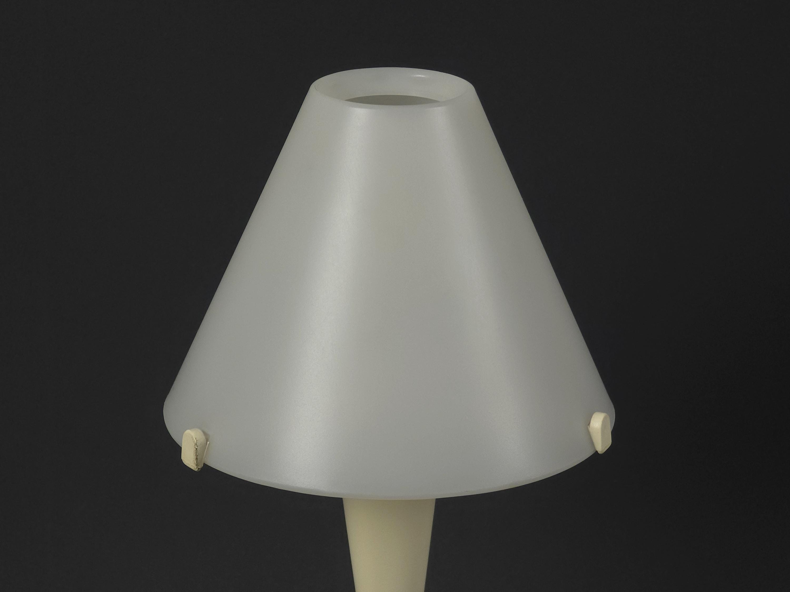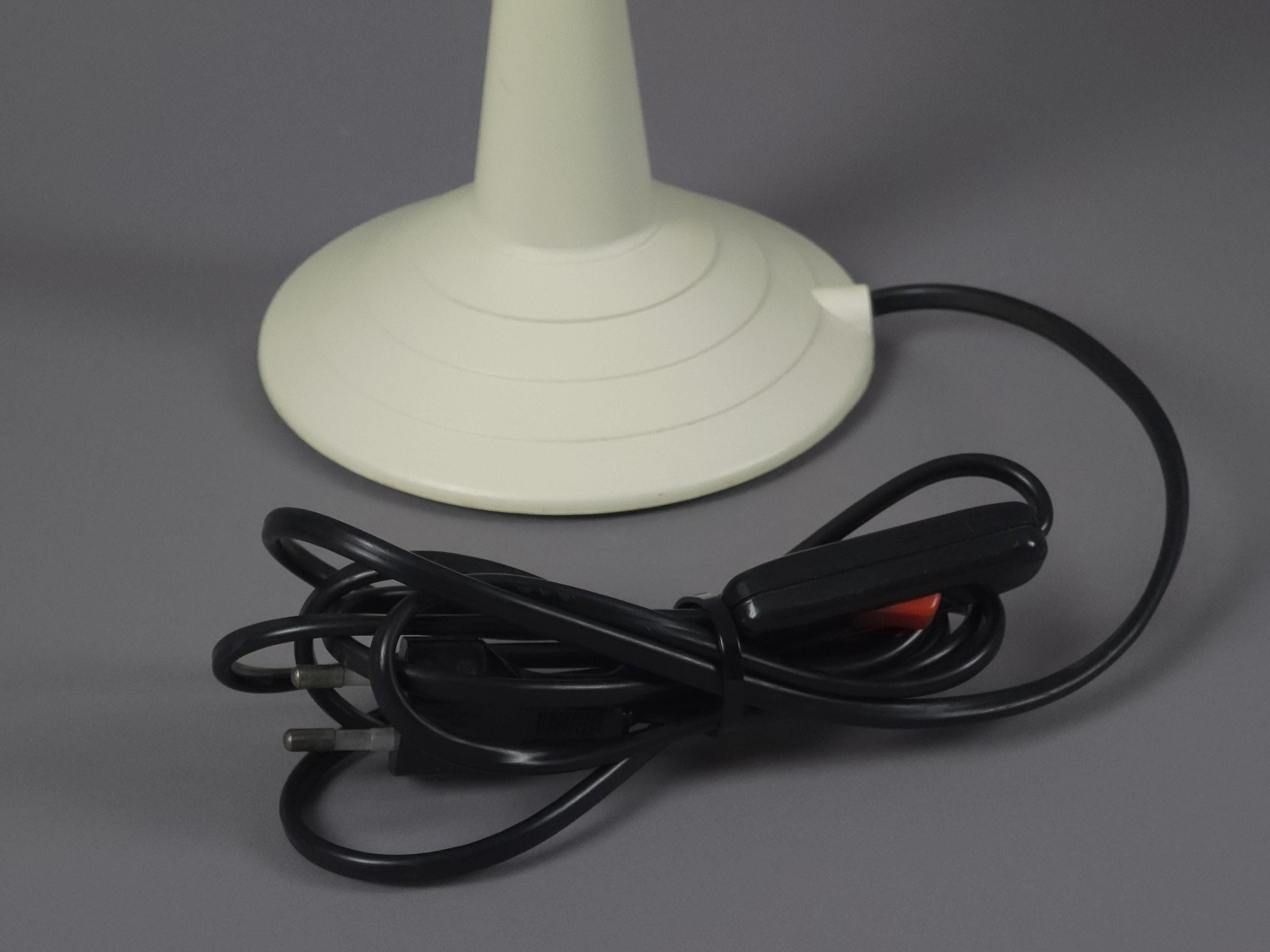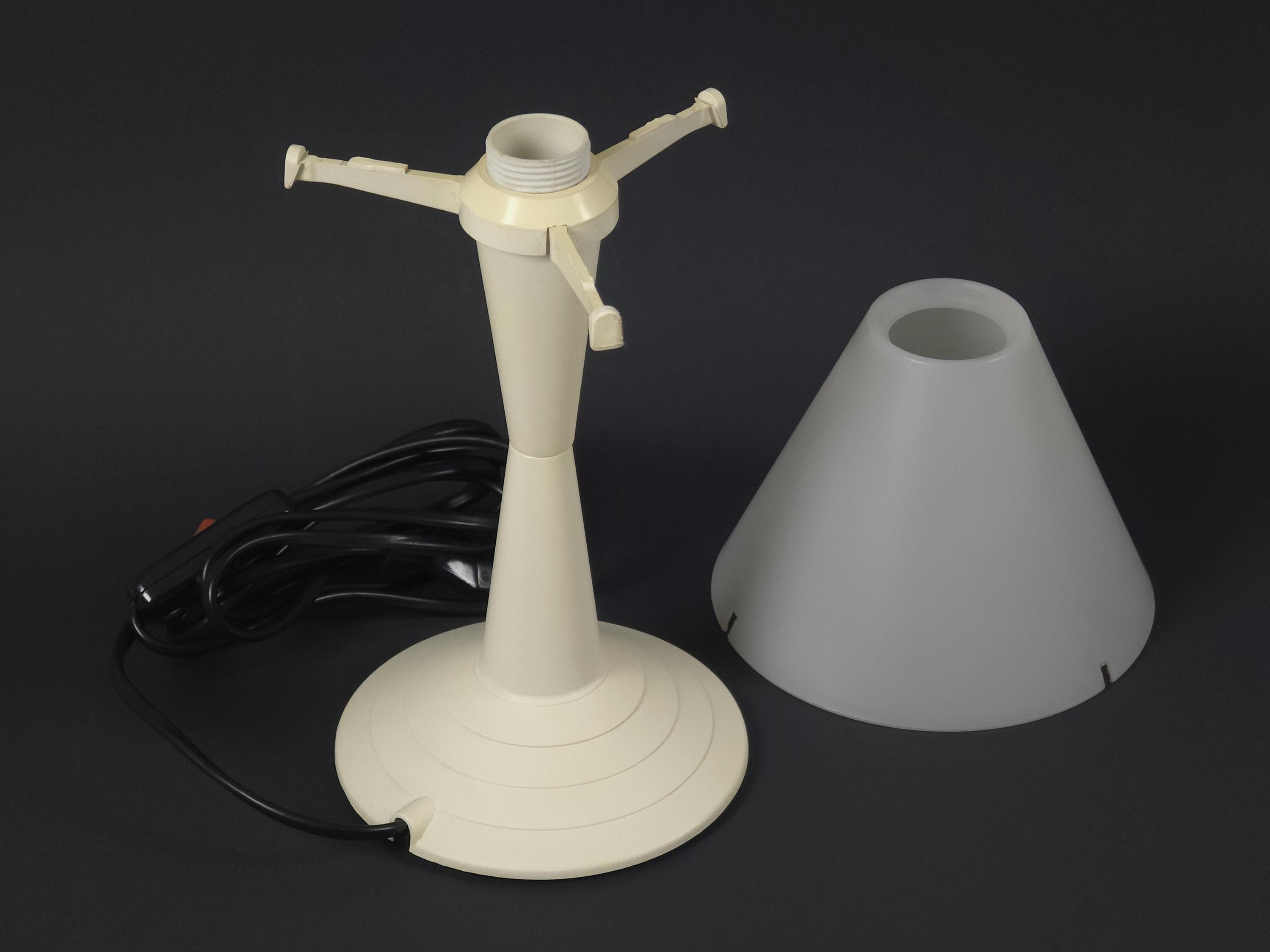 Vintage 1980s postmodern table lamp 'Lulu' by Veneta Lumi. The lamp features a sculptural, geometric profile with a conical base and flared shade, embodying a minimalist retro and Memphis-inspired style.