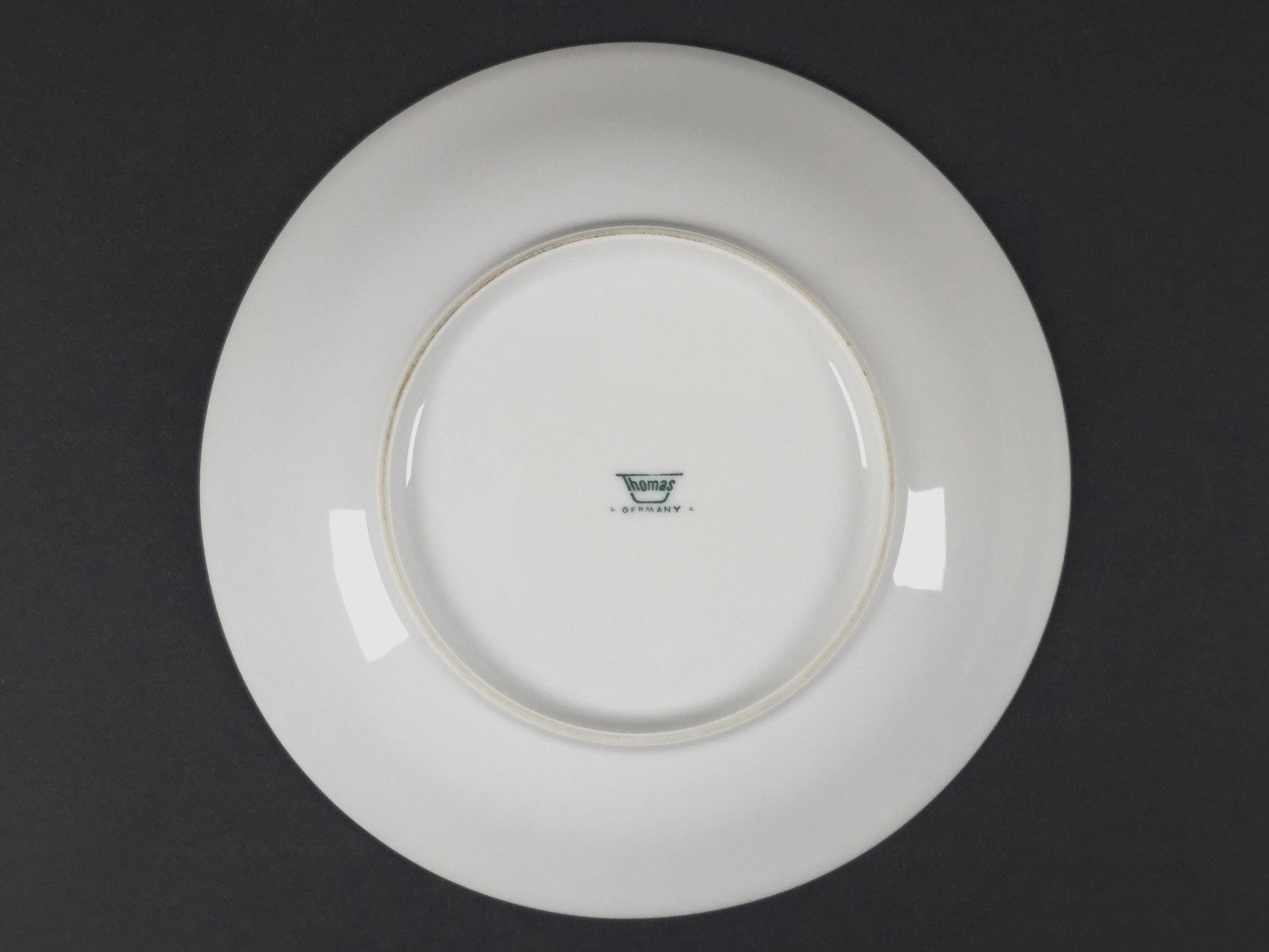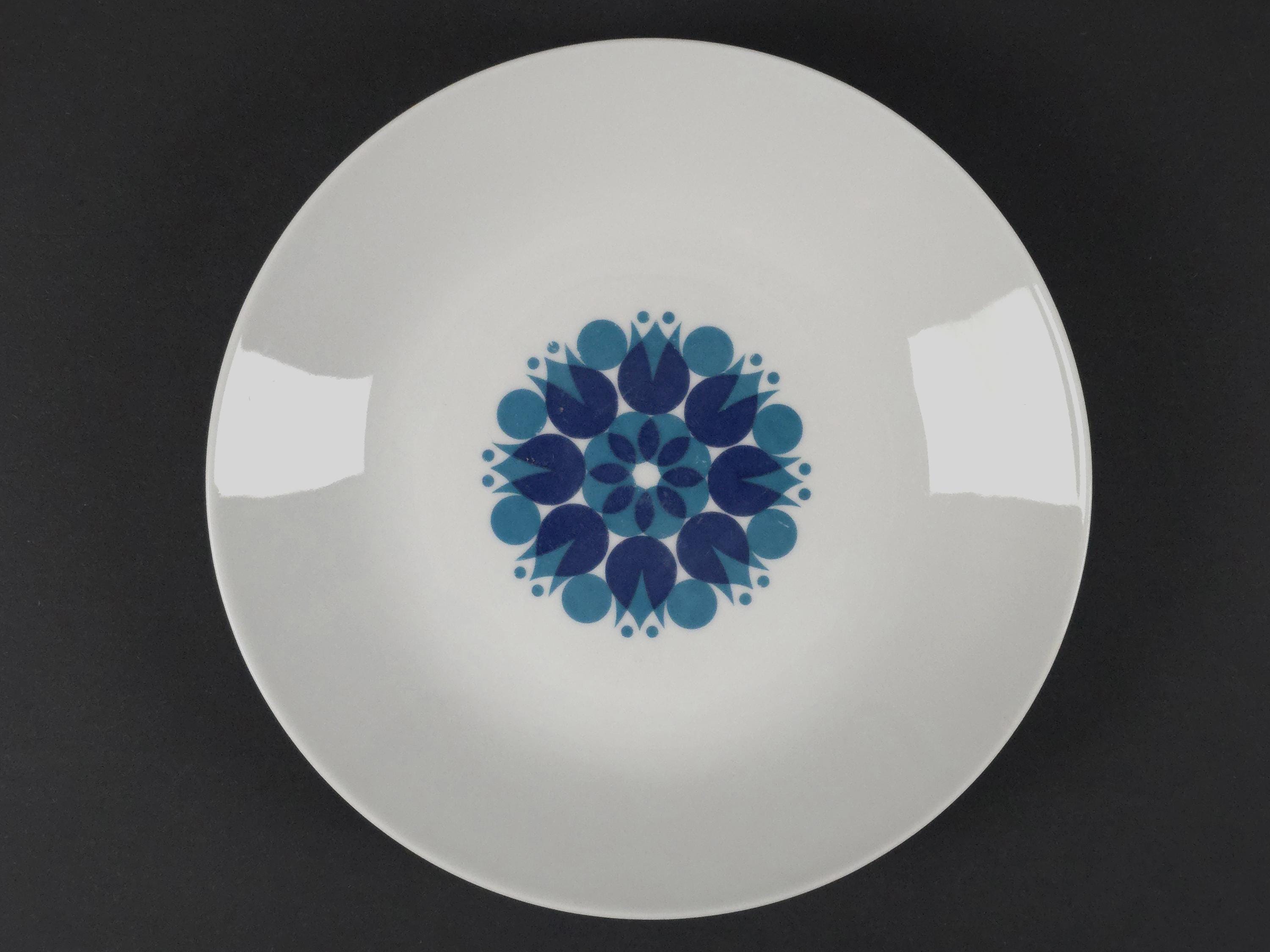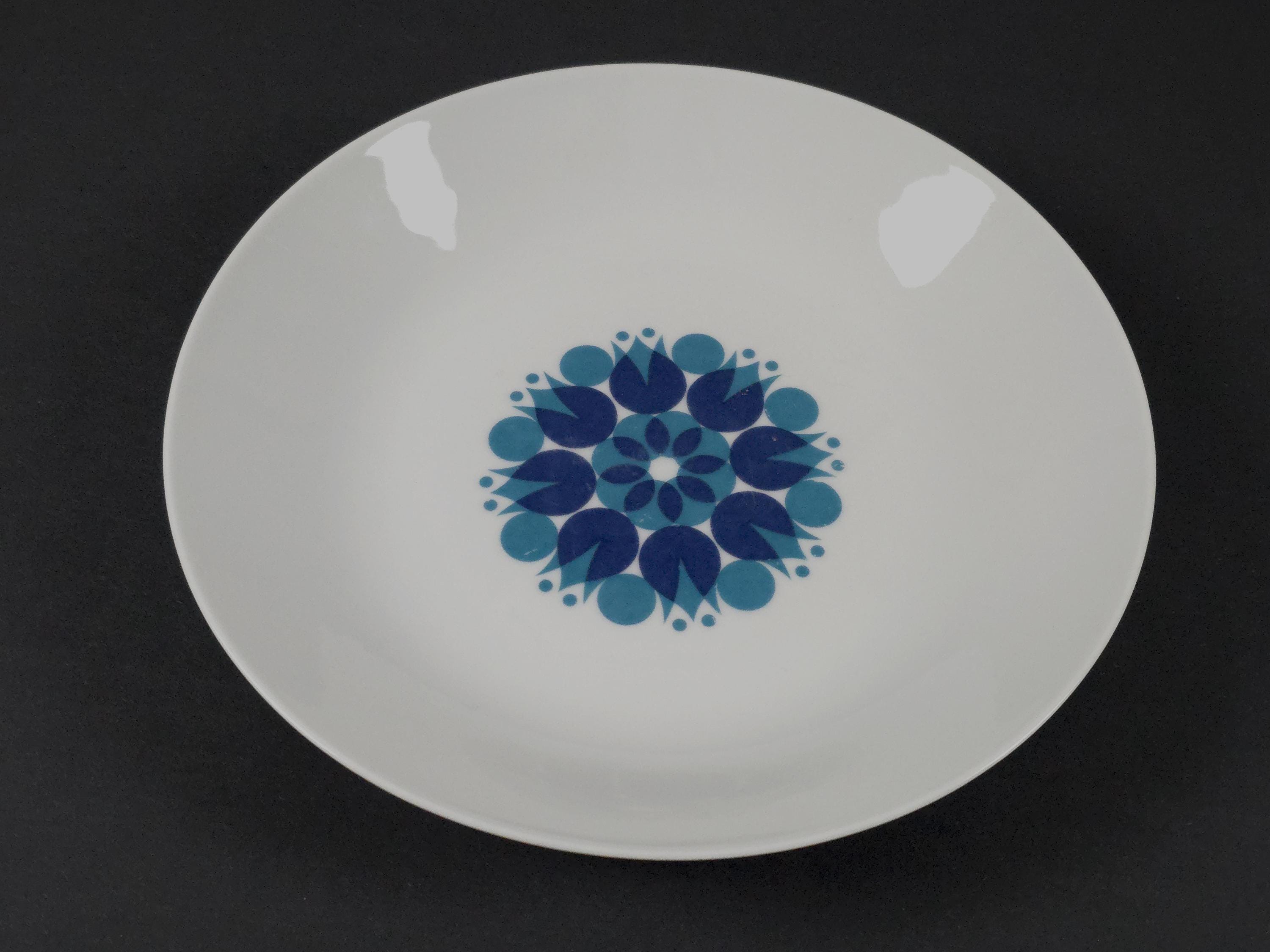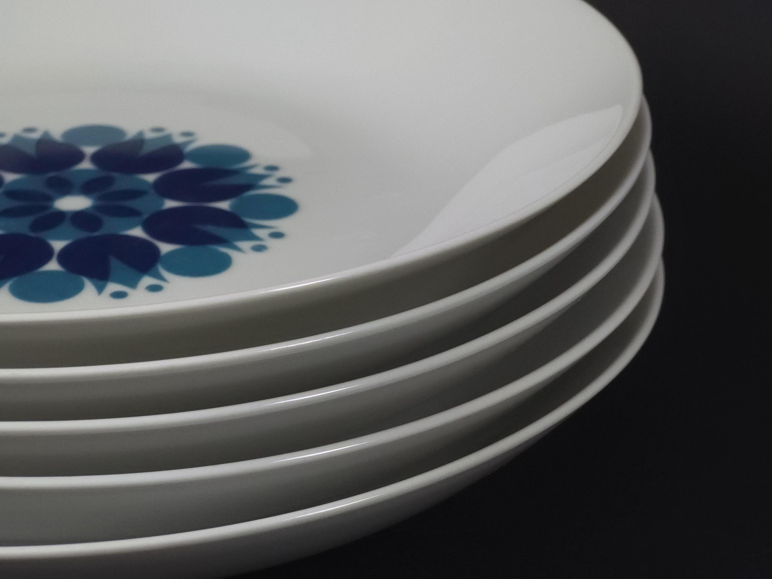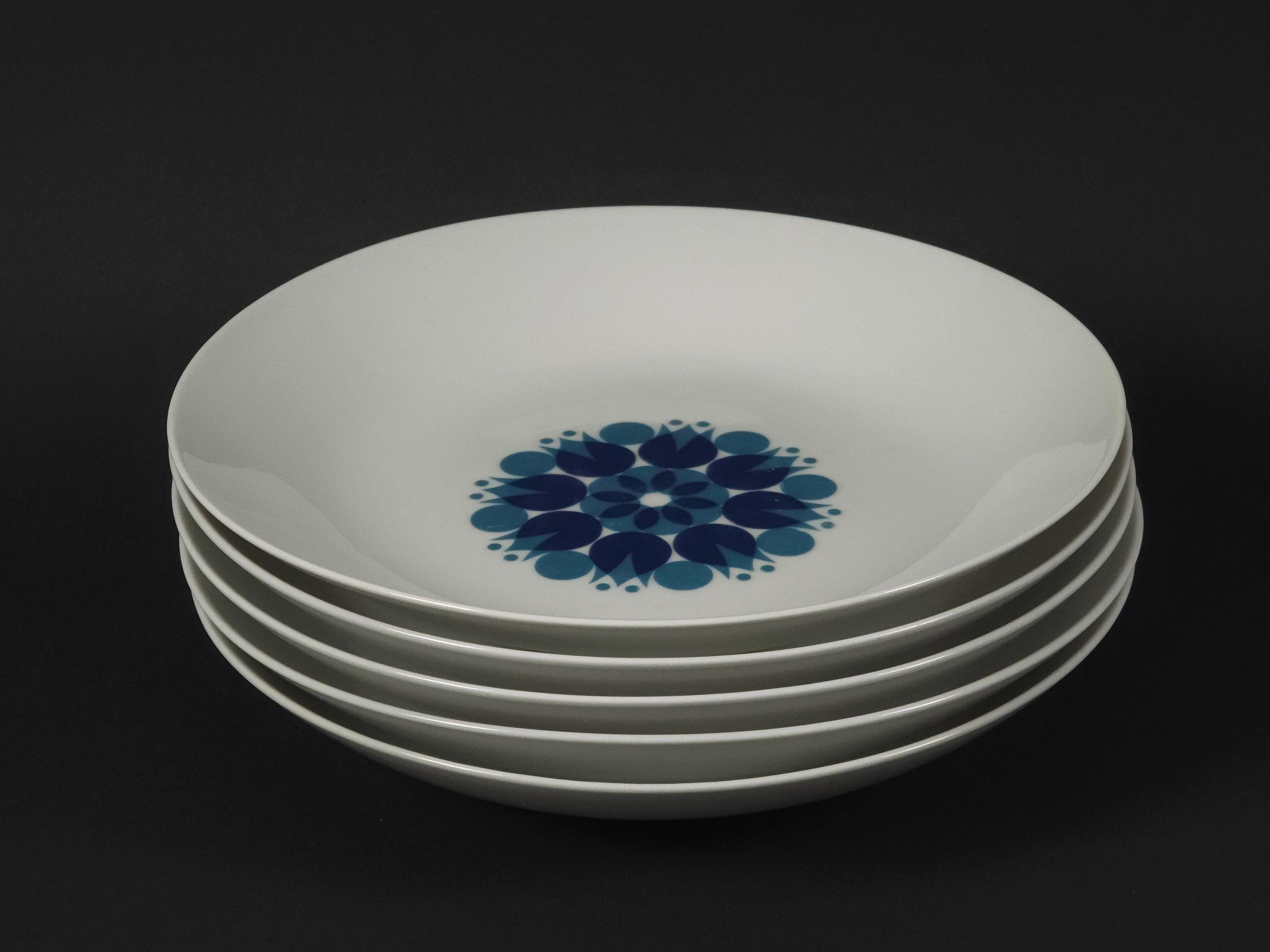 Vintage 1970s Set Of 5 Thomas Pinwheel Blue Pattern Porcelain Plates.