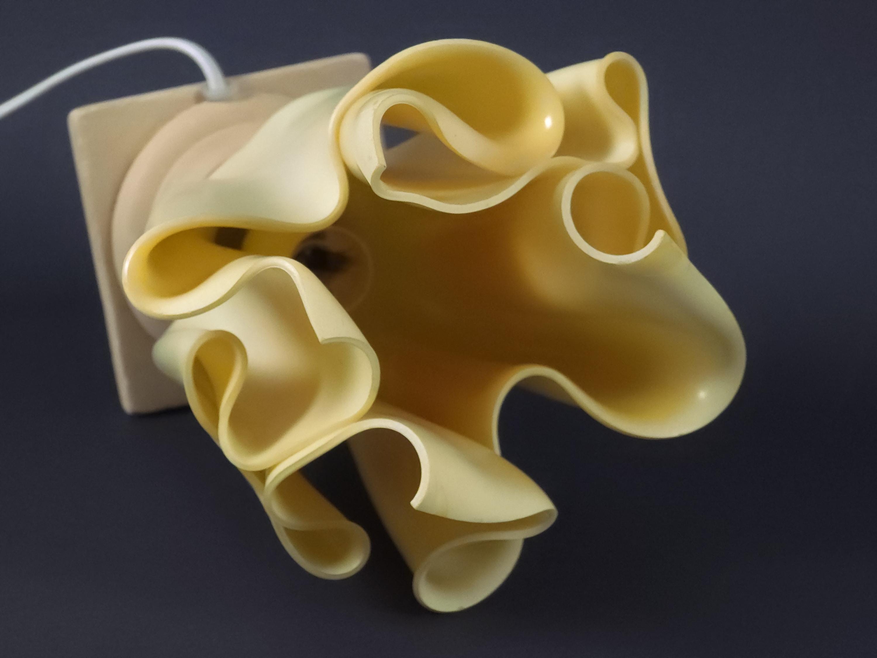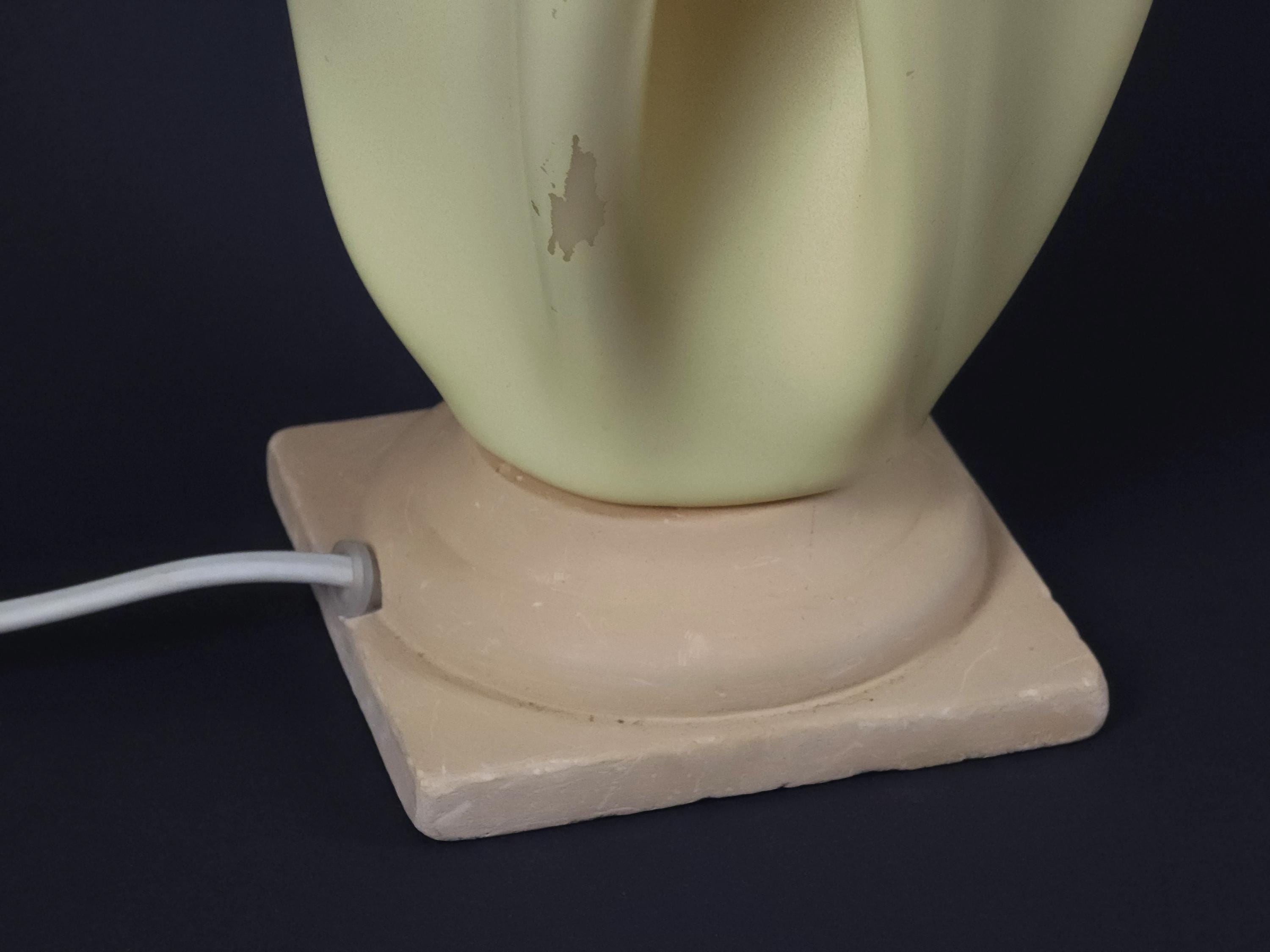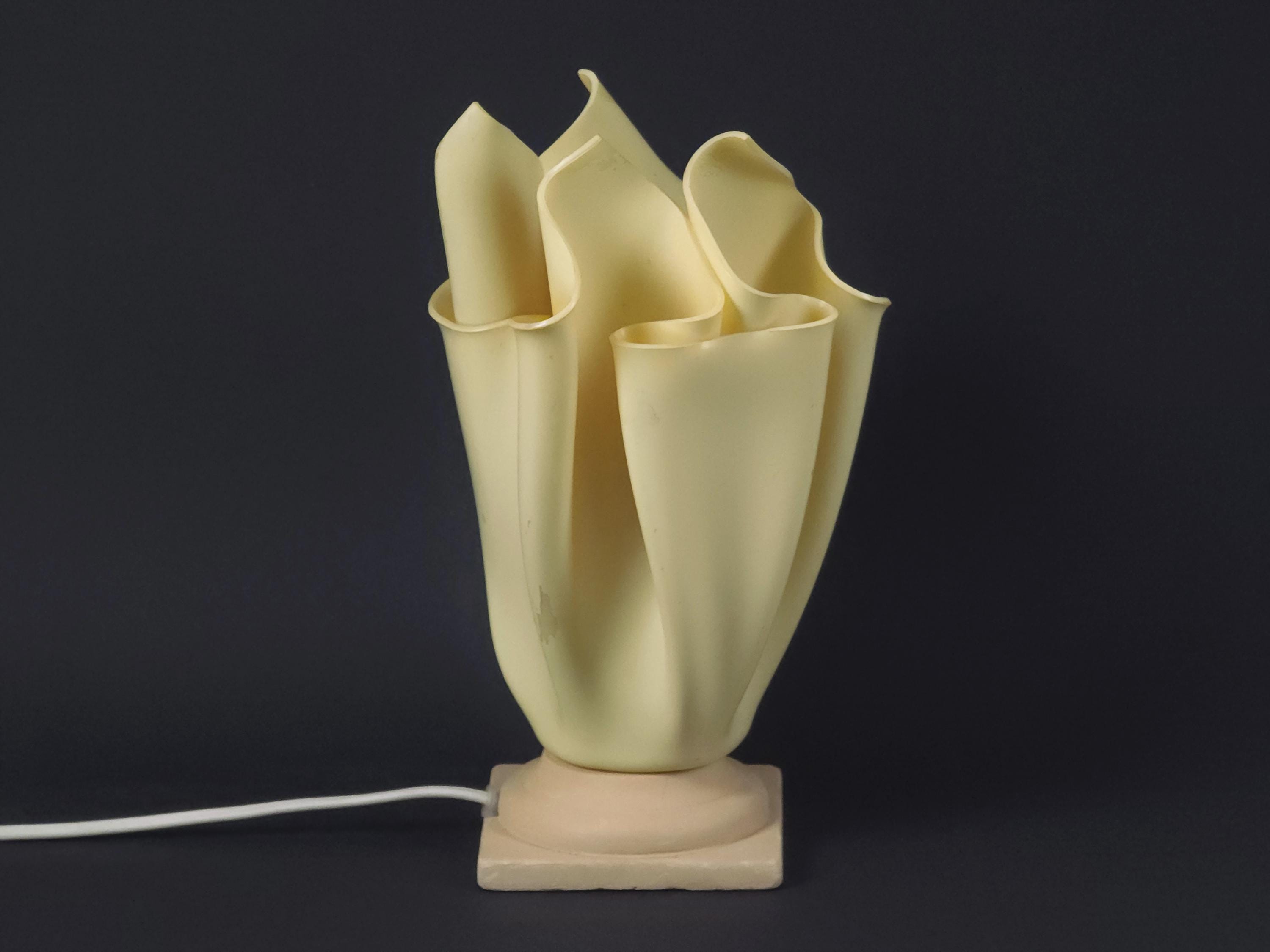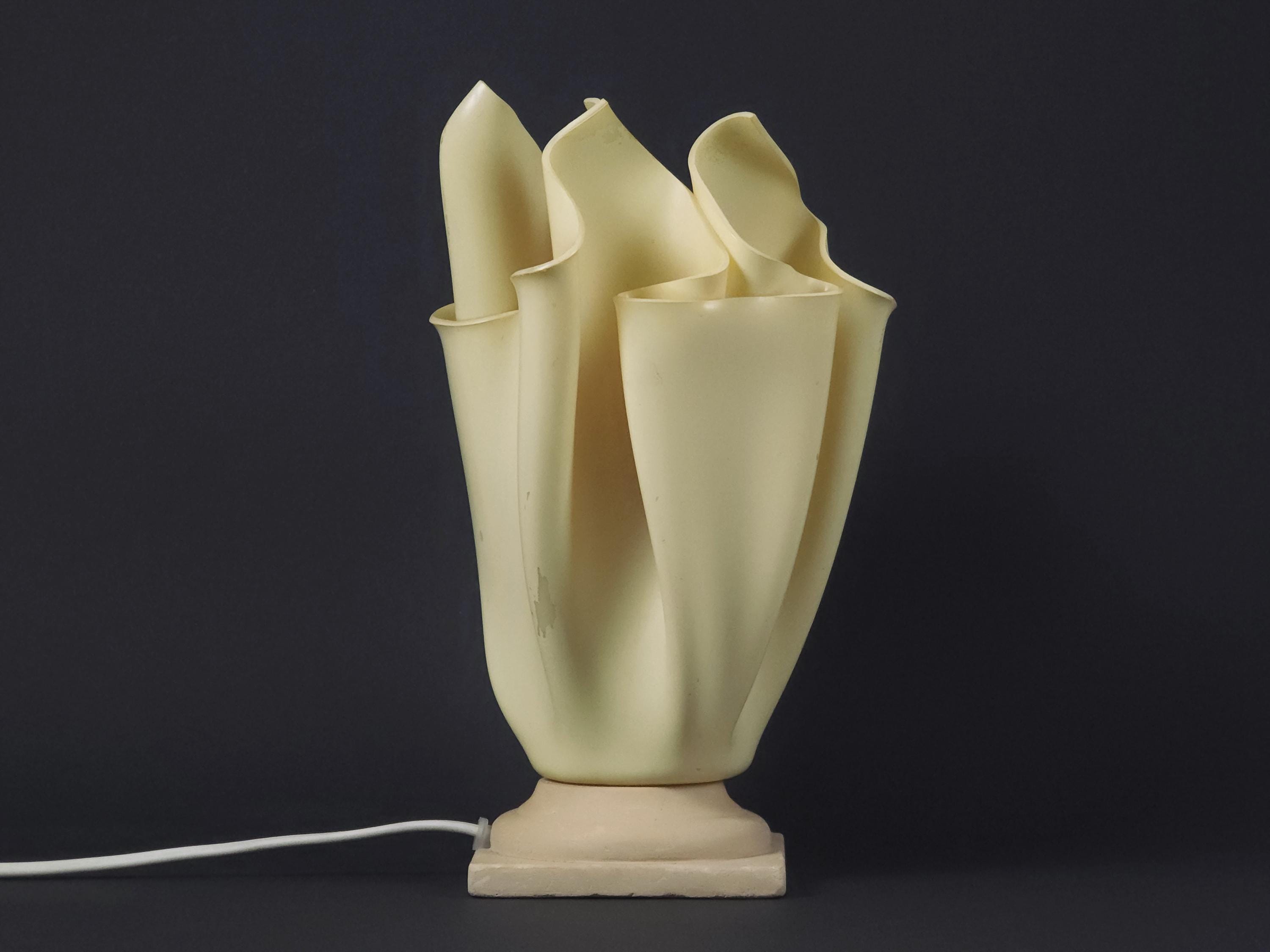 Vintage 1990s folded resin table lamp 'Athena' by Georgia Jacob, France. The distinctive shade is made from draped resin, sometimes described as a "handkerchief" or "flaming torch" style, set on a marble or stone base.