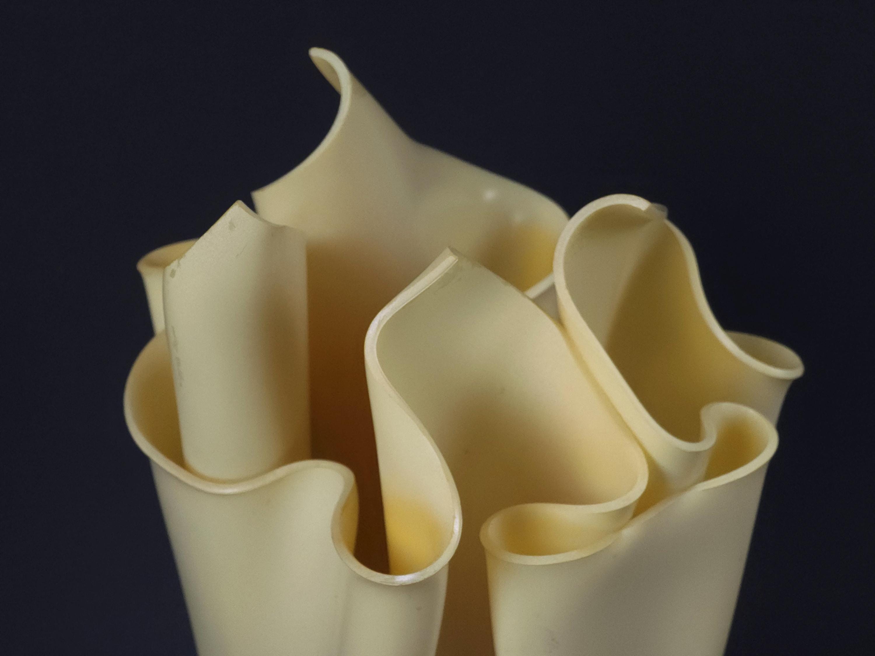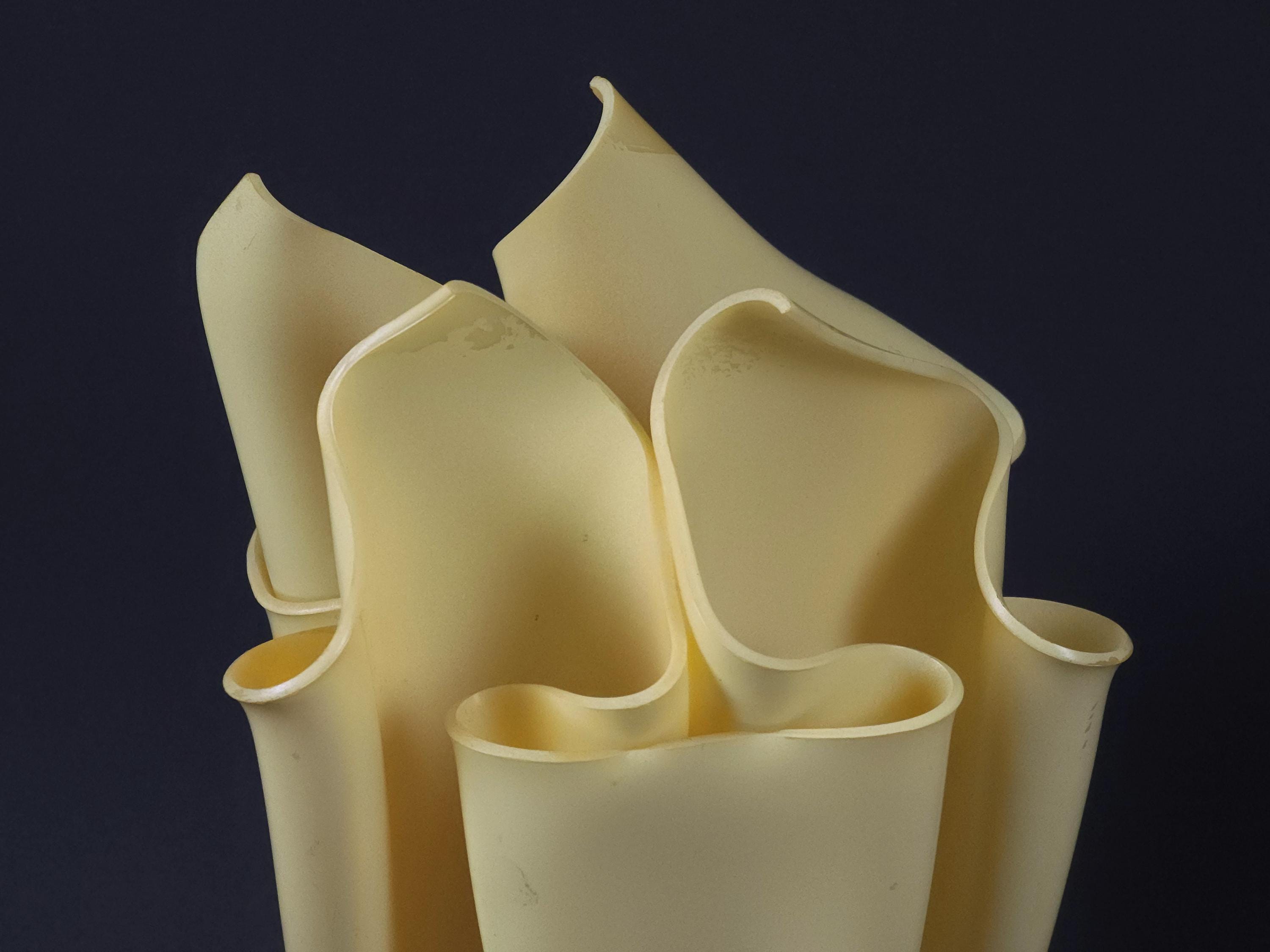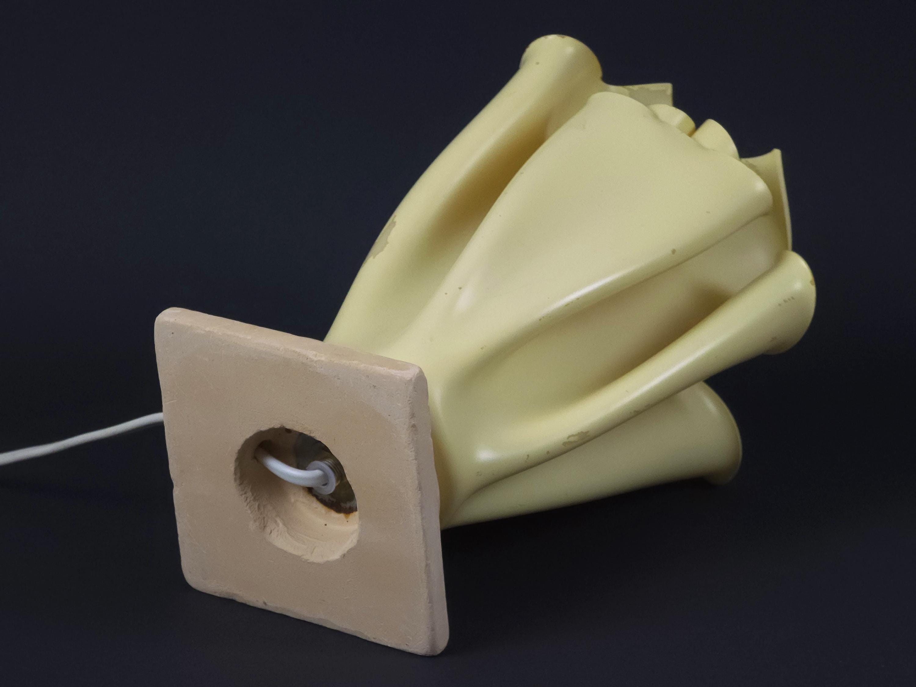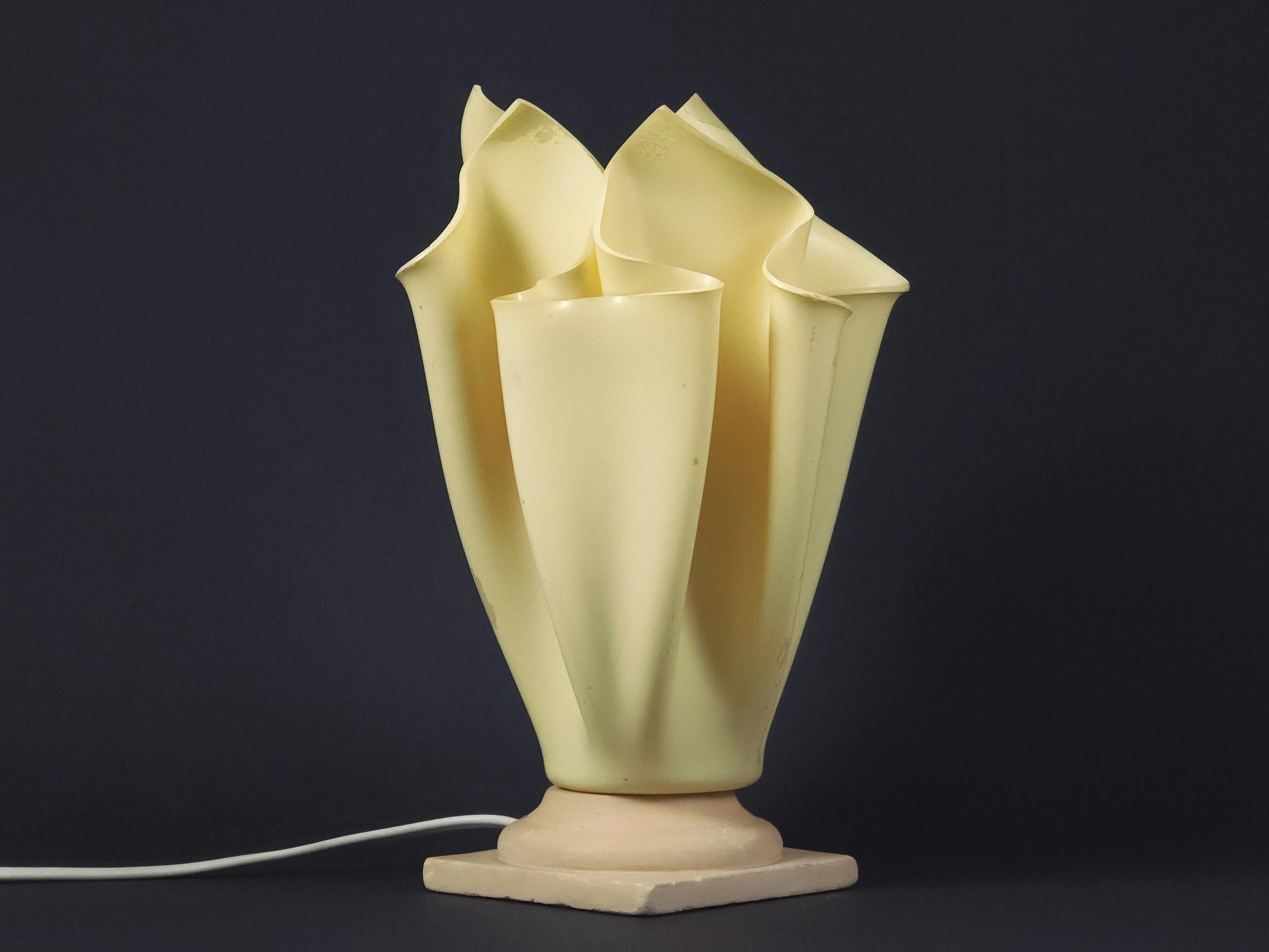 Vintage 1990s folded resin table lamp 'Athena' by Georgia Jacob, France. The distinctive shade is made from draped resin, sometimes described as a "handkerchief" or "flaming torch" style, set on a marble or stone base.