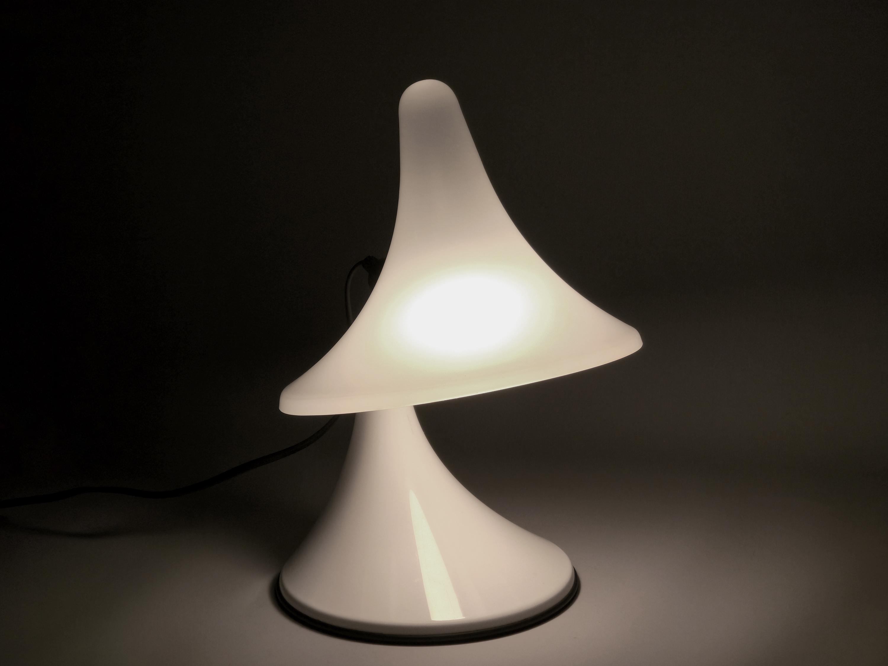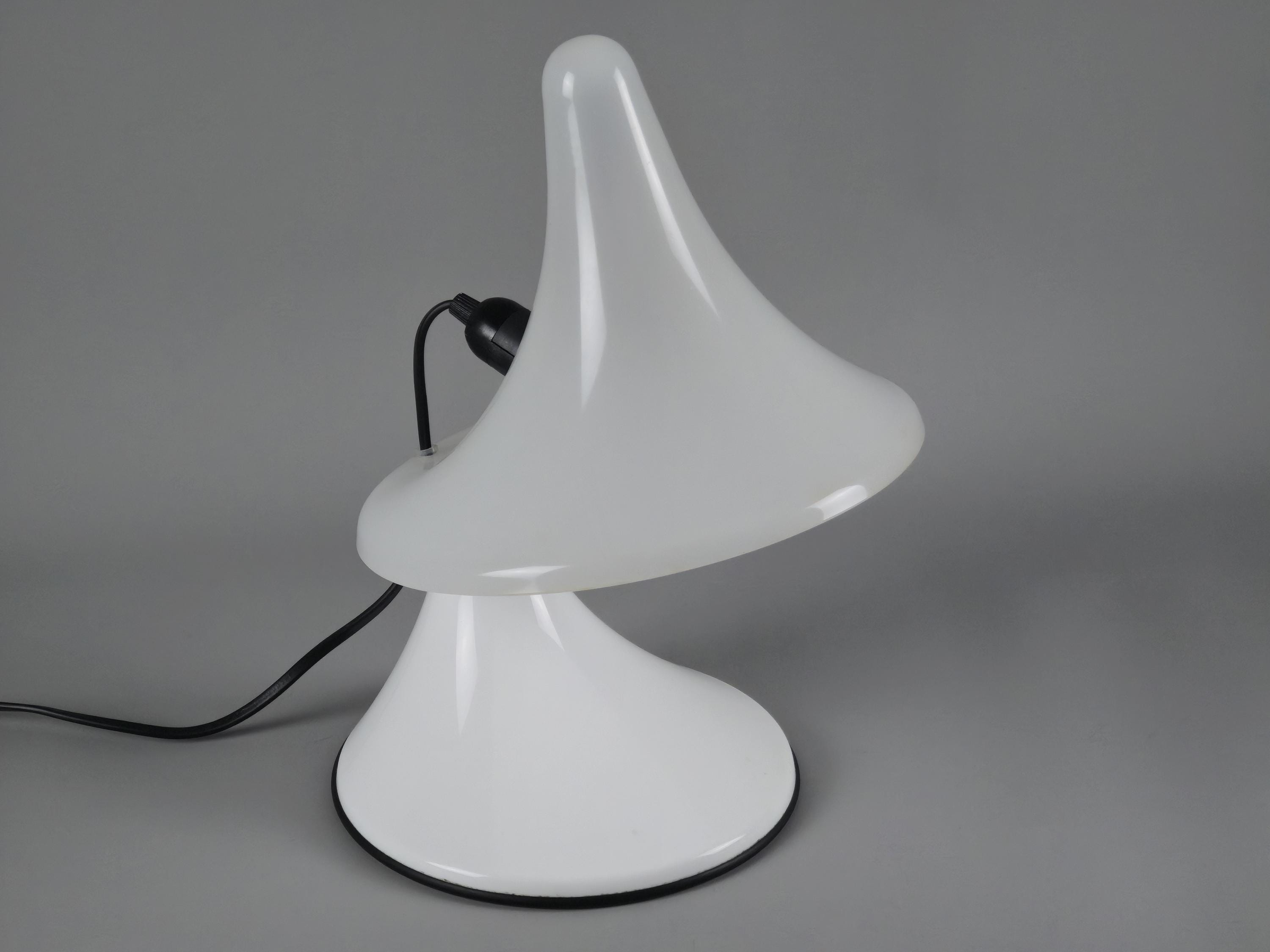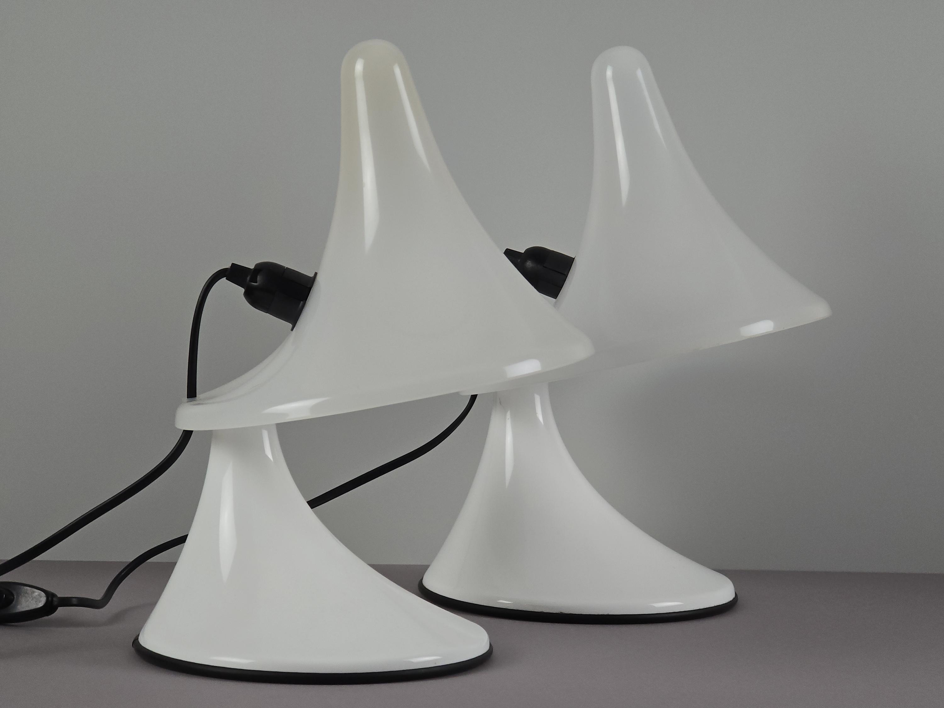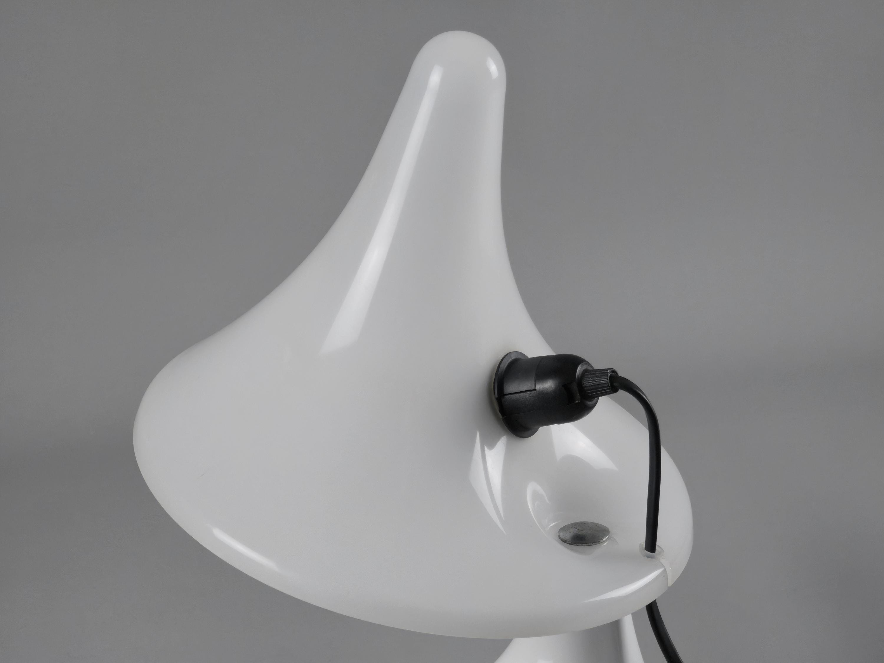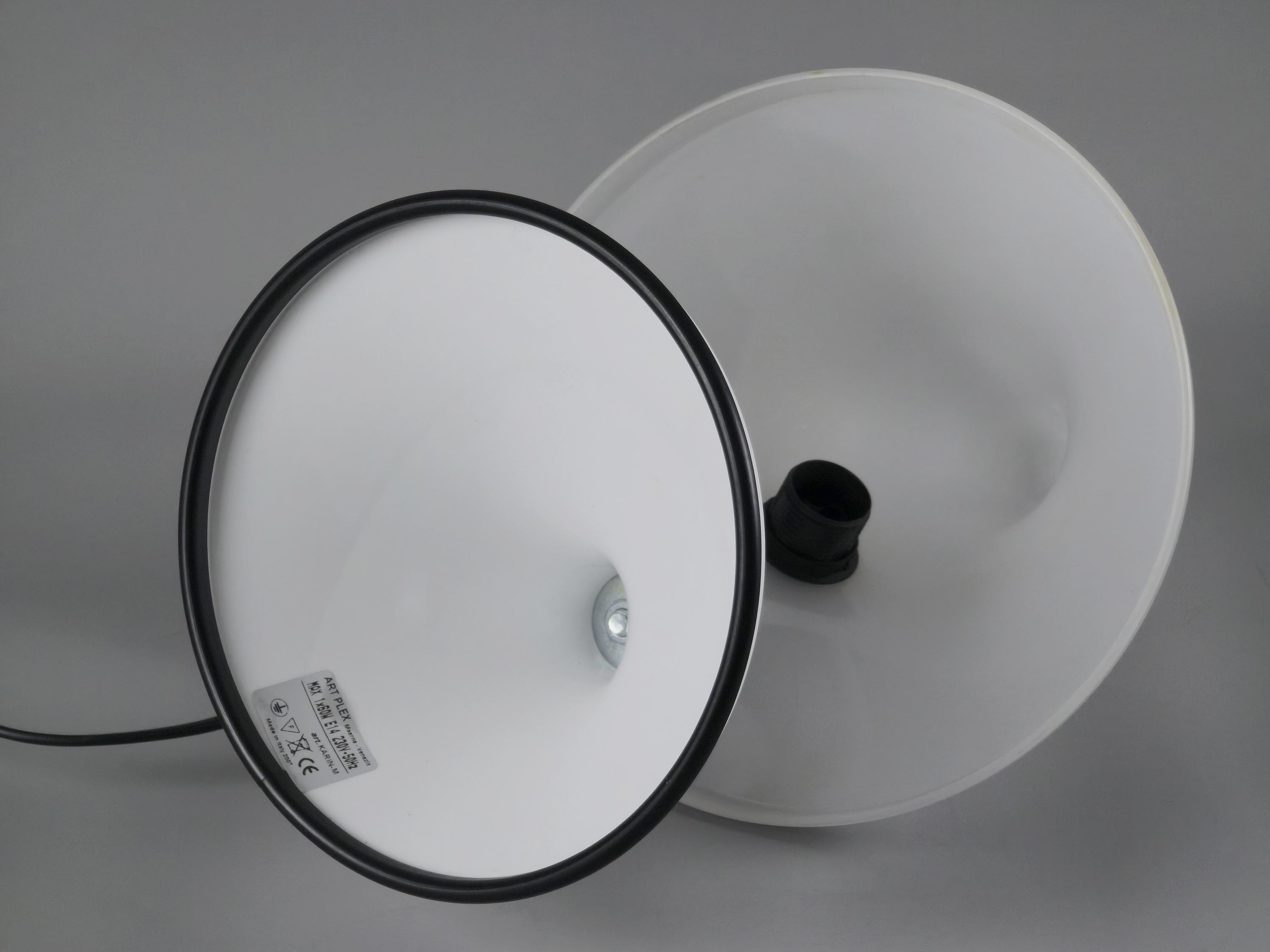 An exceptionally rare examples of early 2000s Italian design, these sculptural table lamps, model 'Karin-M' were made in 2007 by Art Plex di Marchetto Giorgio, a small artisan lighting workshop based in Maerne, just outside Venice. Known for its work with acrylics, Art Plex produced a limited range of contemporary lighting pieces with a retro-futurist, space age design aesthetic.