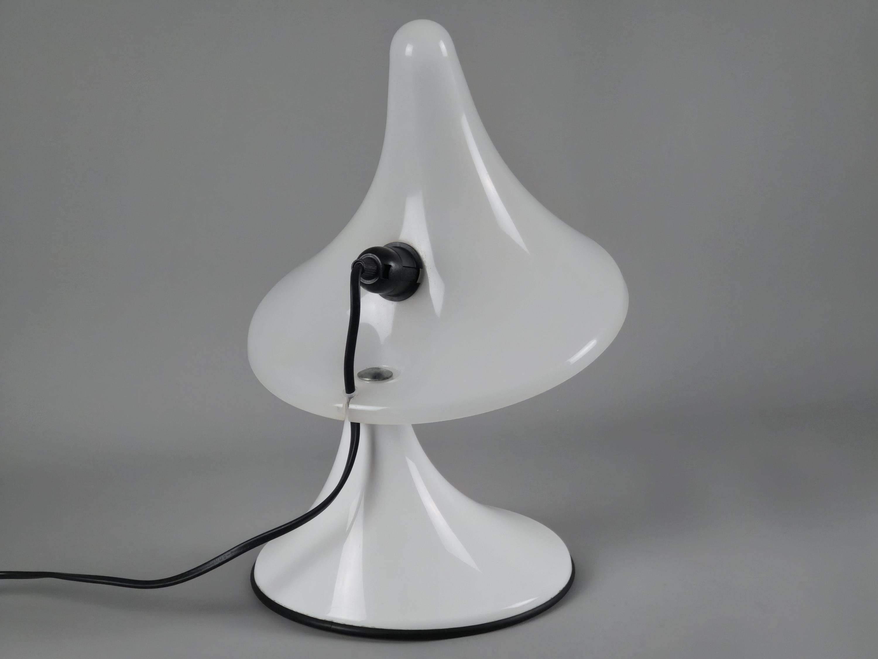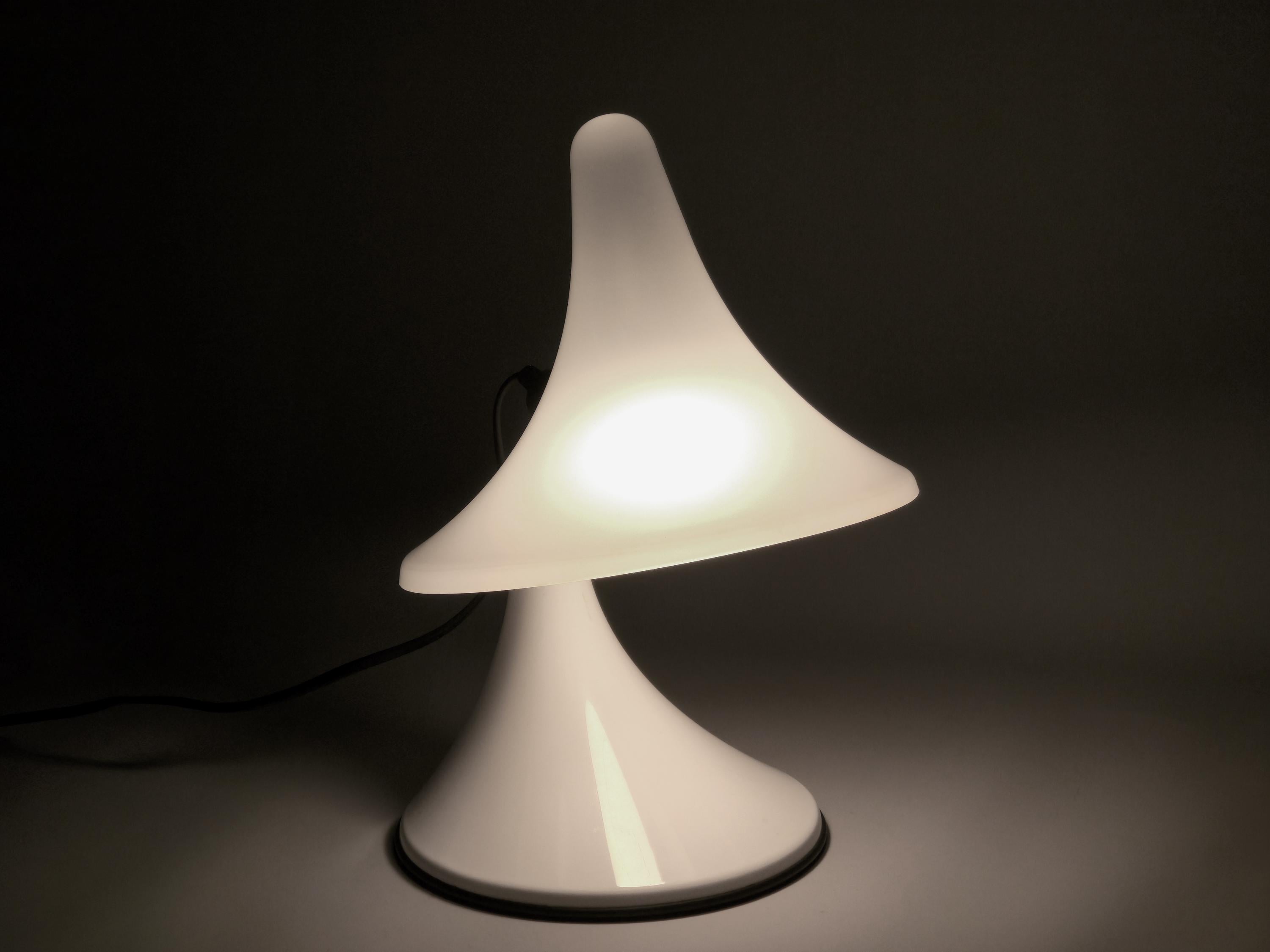 This piece is made entirely from white molded acrylic, with a flowing, asymmetrical form that softly diffuses light. It’s a perfect blend of modern Italian minimalism and playful mid-century curves.
