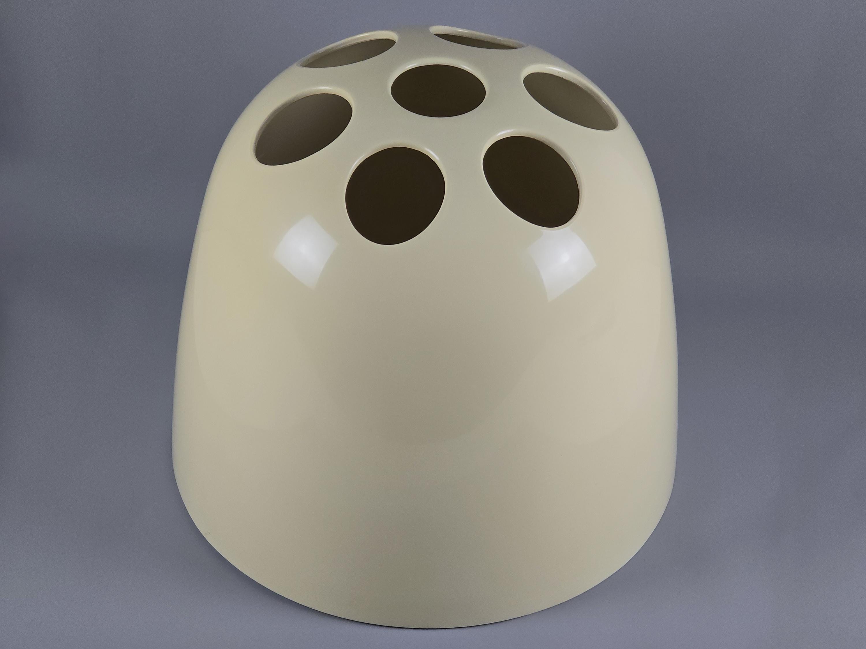 The Dedalo umbrella stand is a true icon of Italian design, designed by Emma Gismondi Schweinberger during the height of the Italian Space Age era, the Dedalo is celebrated for its minimalist, cylindrical form and distinctive circular cutouts. This specific piece comes in a classic cream/off-white finish that highlights its clean, architectural lines.
