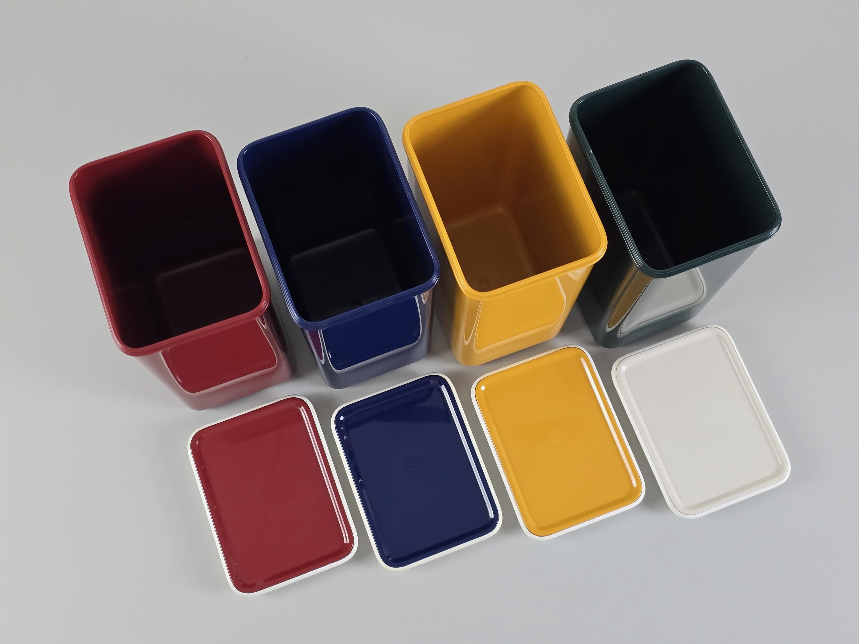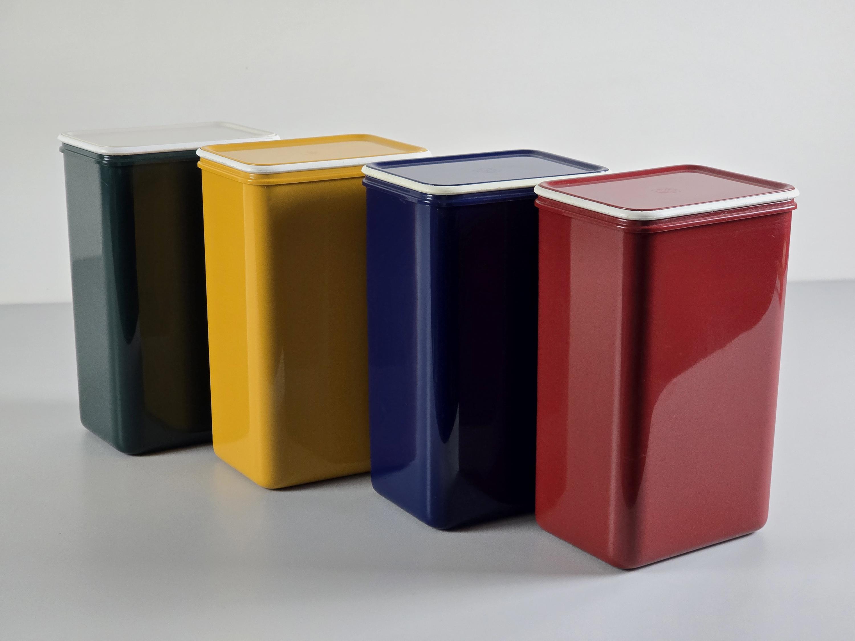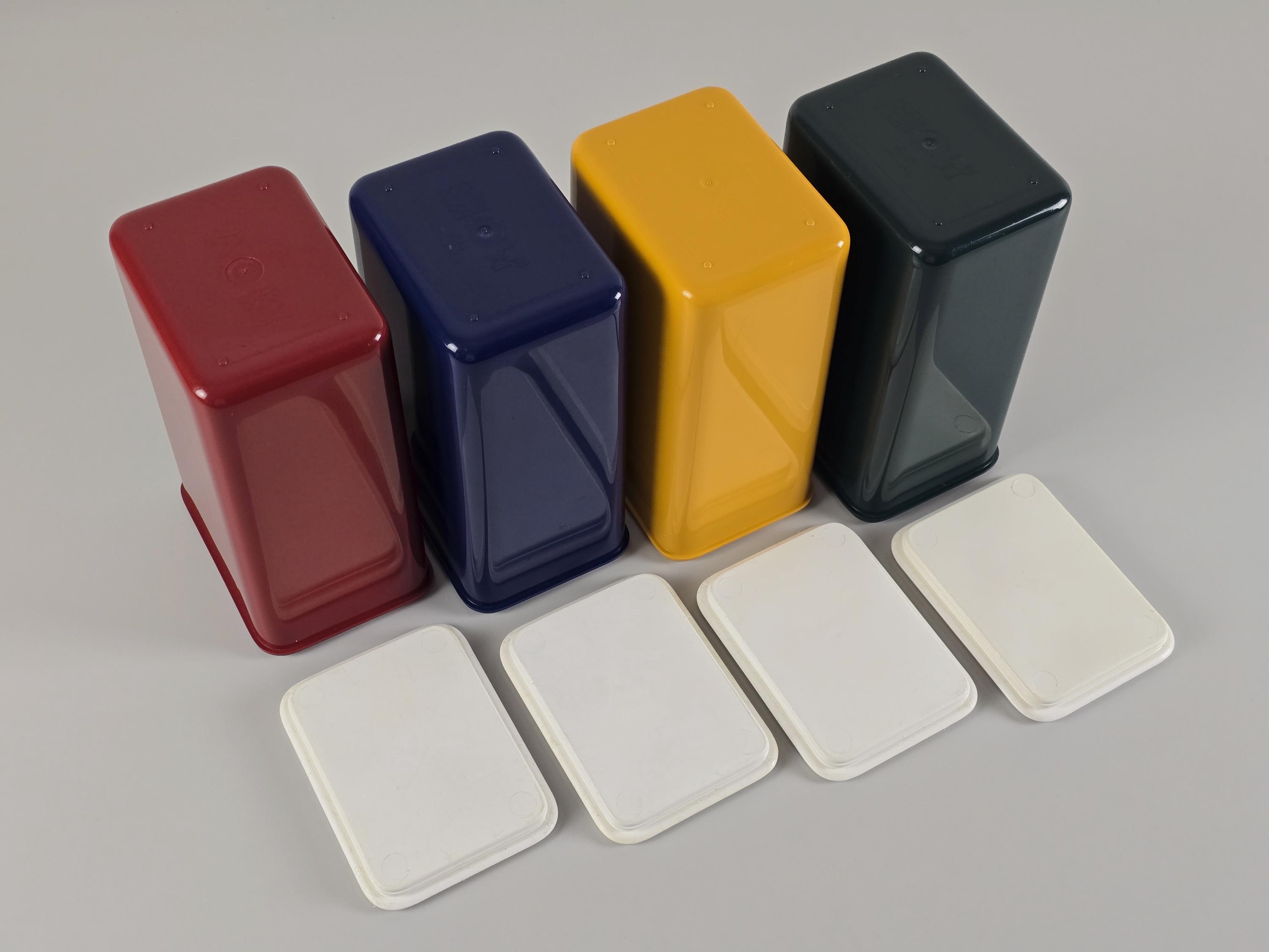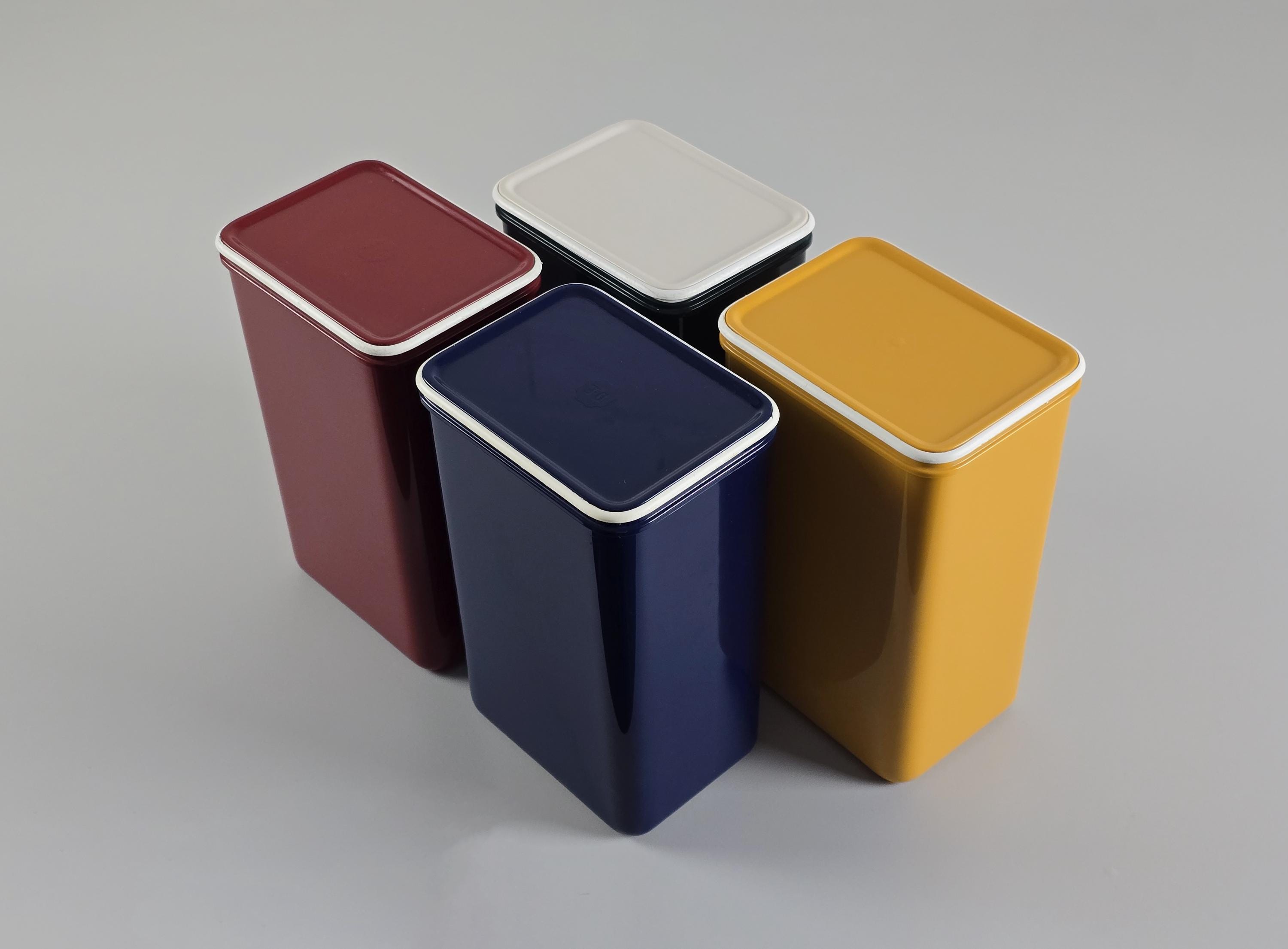 Contemporary Design - Vintage Set Of 4 MEPAL-ROSTI Melamine Container Jars Made For Douwe Egberts - Retro Kitchen Storage - Holland, 1990s.