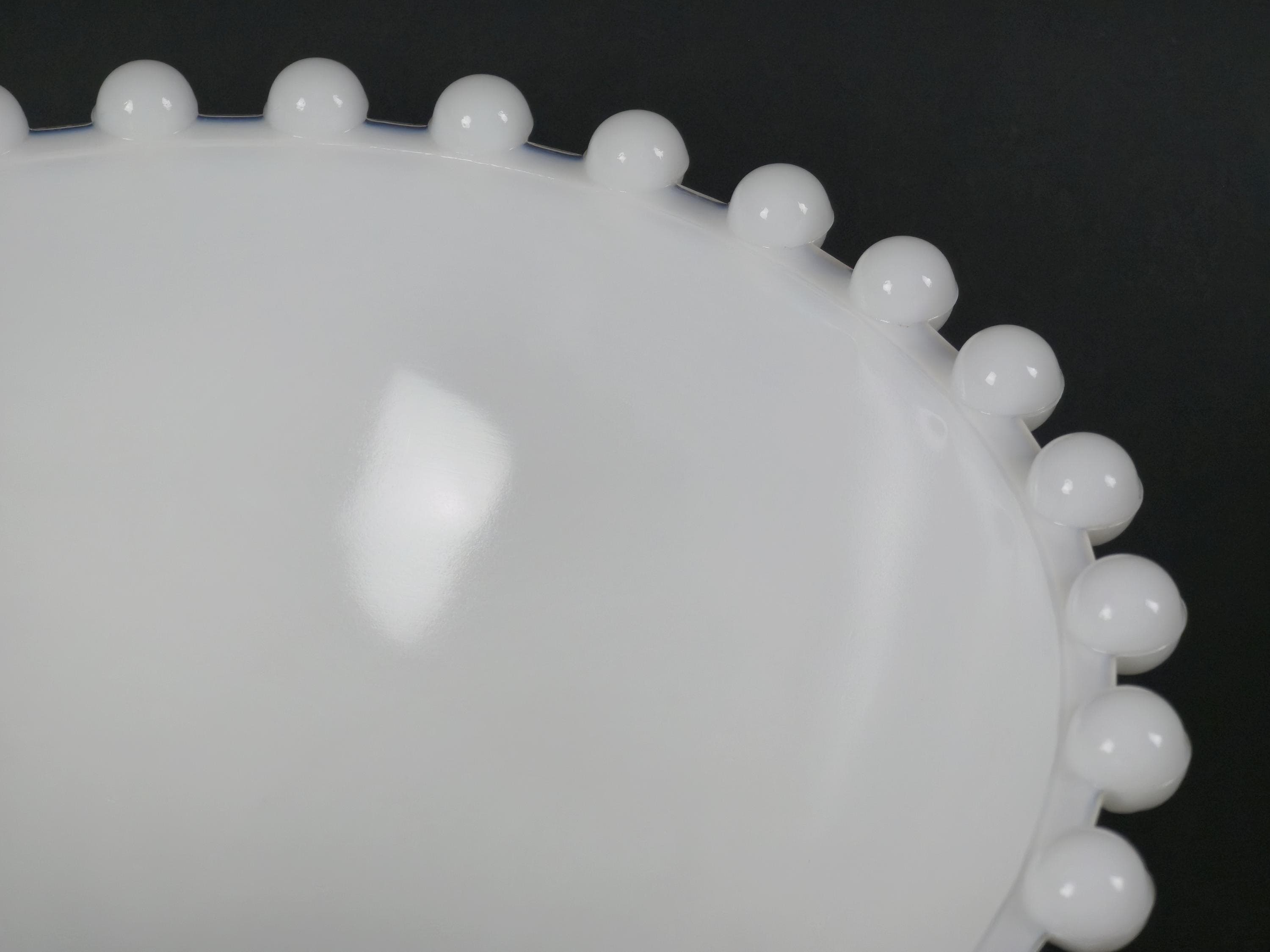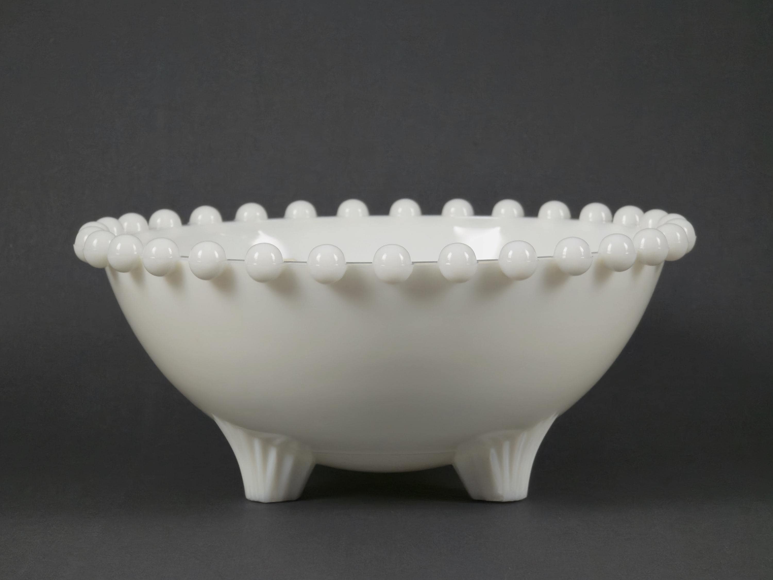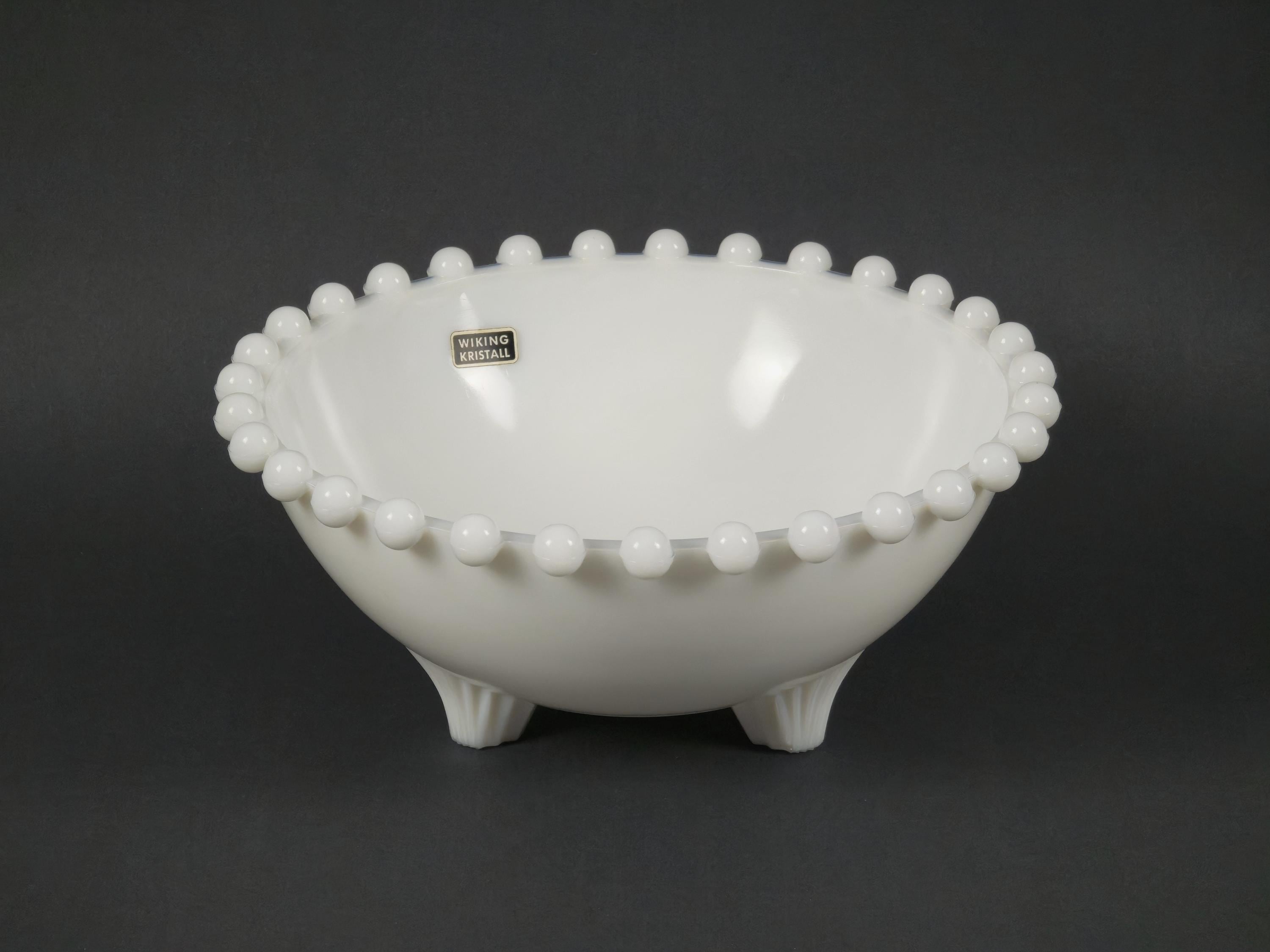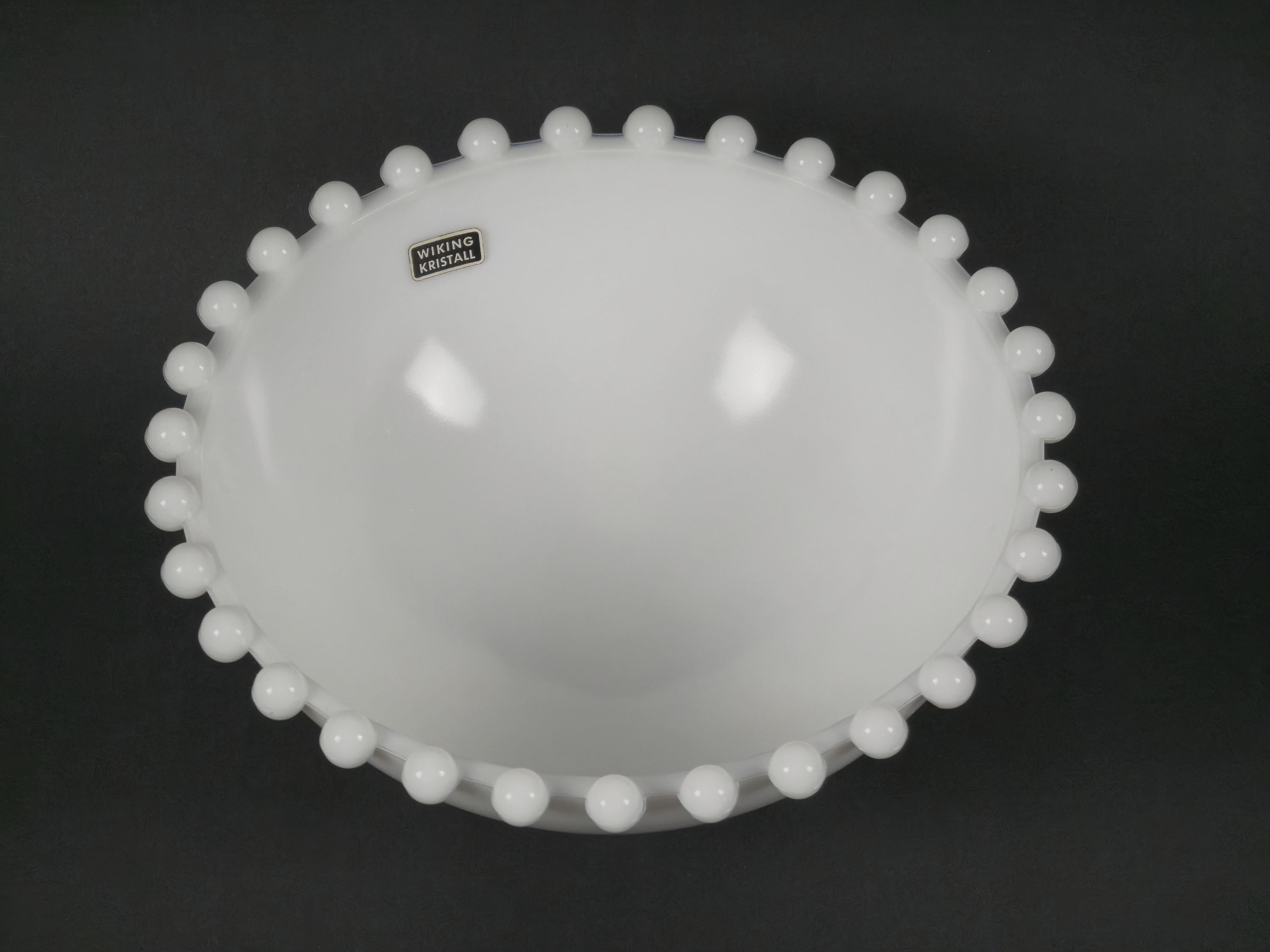 Rare 1960s mid-century modern opalware bowl and centerpiece Wiking Kristall in excellent condition. The bowl features spherical "pearls" around the rim for a very charming look.