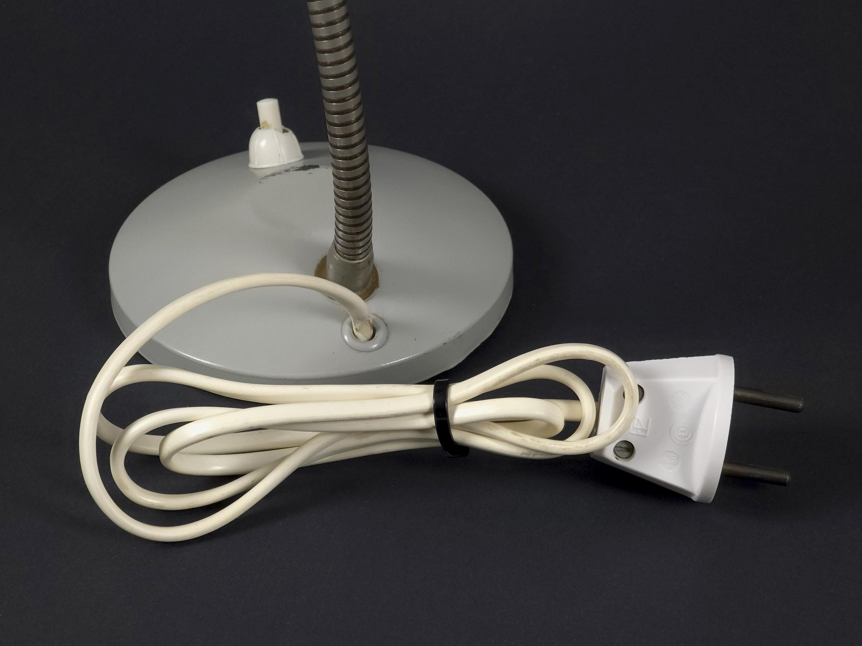 Vintage 1960s mid-century modern grey metal gooseneck desk lamp.