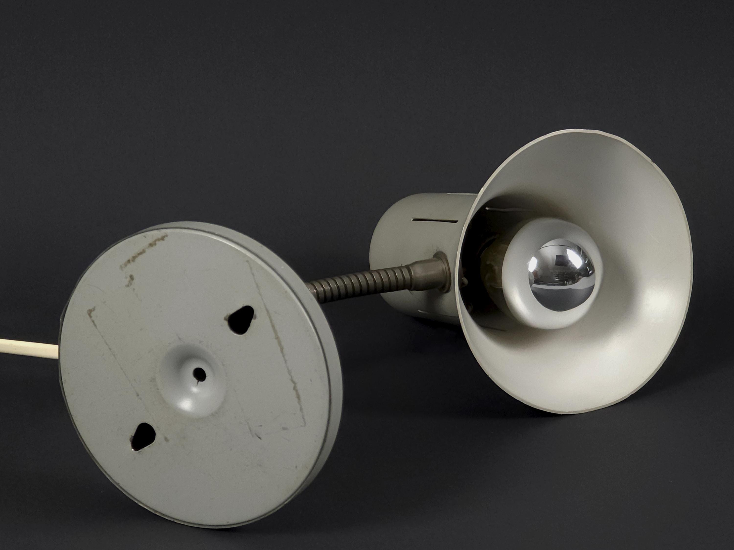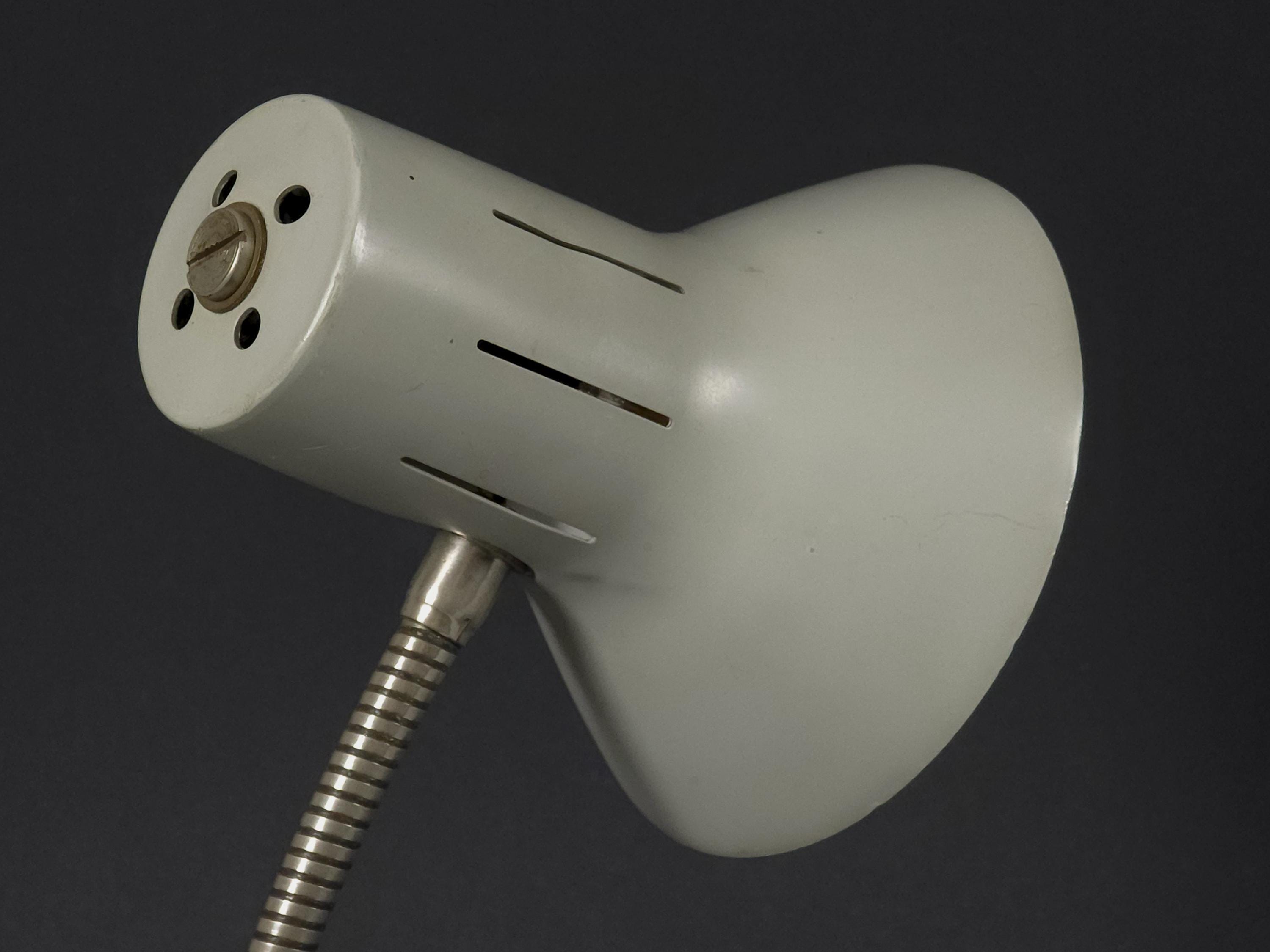 Vintage 1960s Mid-Century Modern Grey Metal Gooseneck Desk Lamp.