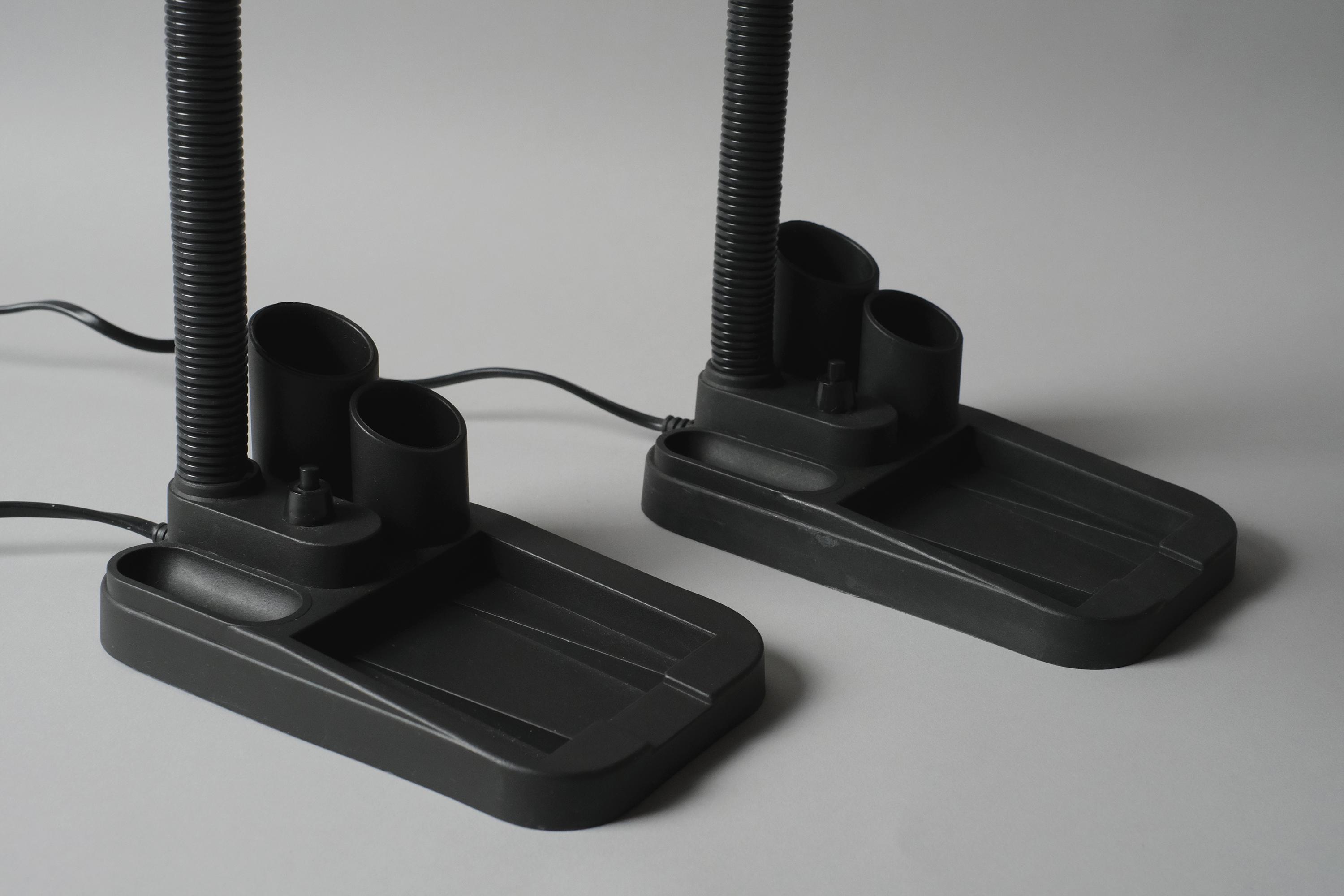 Pair of vintage 1980s desk lamps with built-in stationary caddies by Fase Spain.