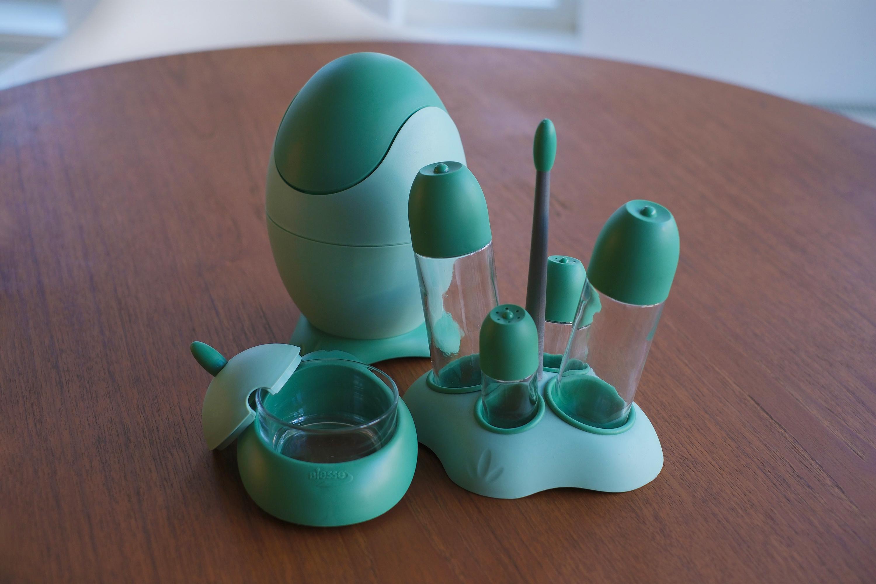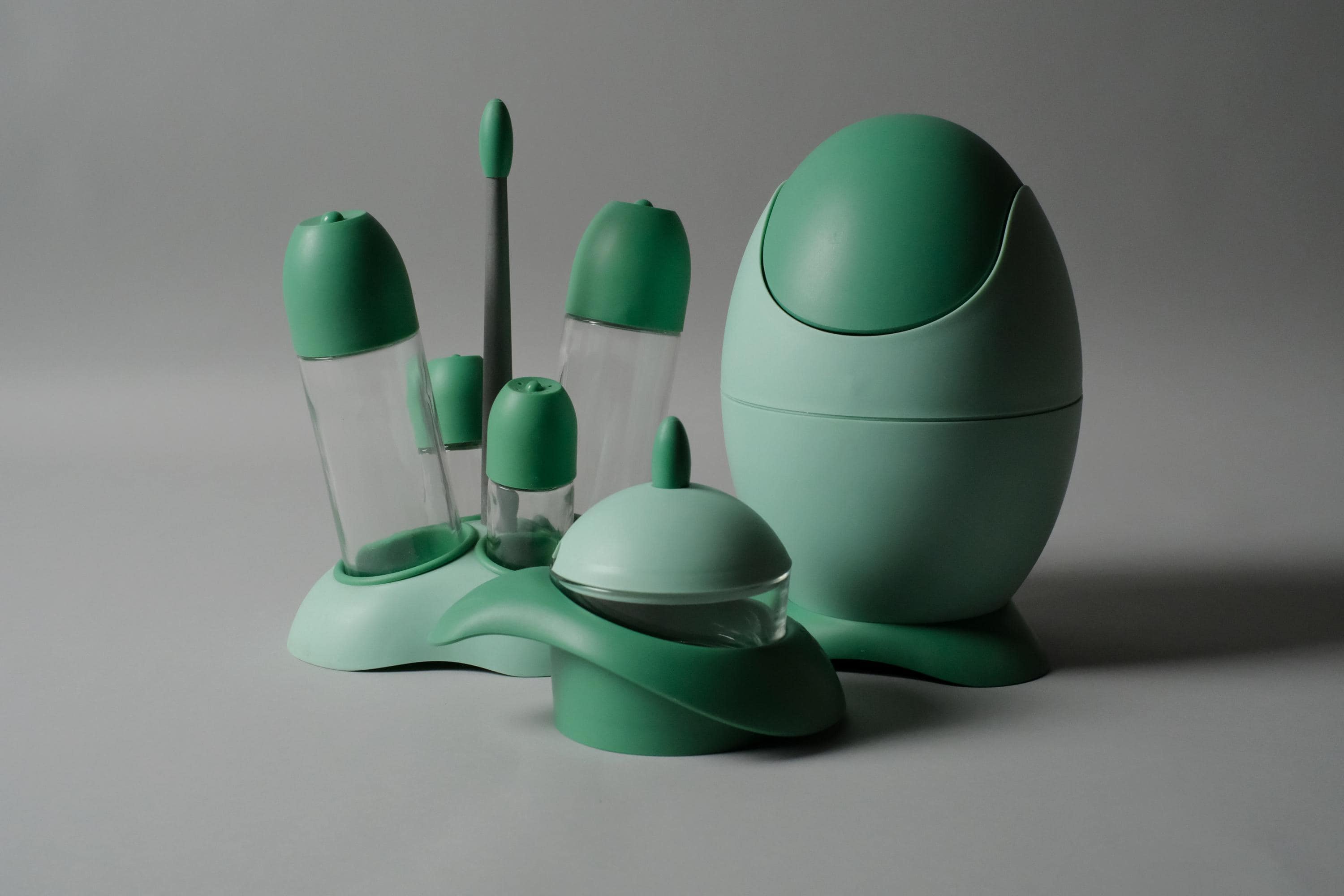 A collection of vintage 1990s kitchen and household items designed by Pino Spagnolo for the Italian brand Biesse. All with original boxes and unused.