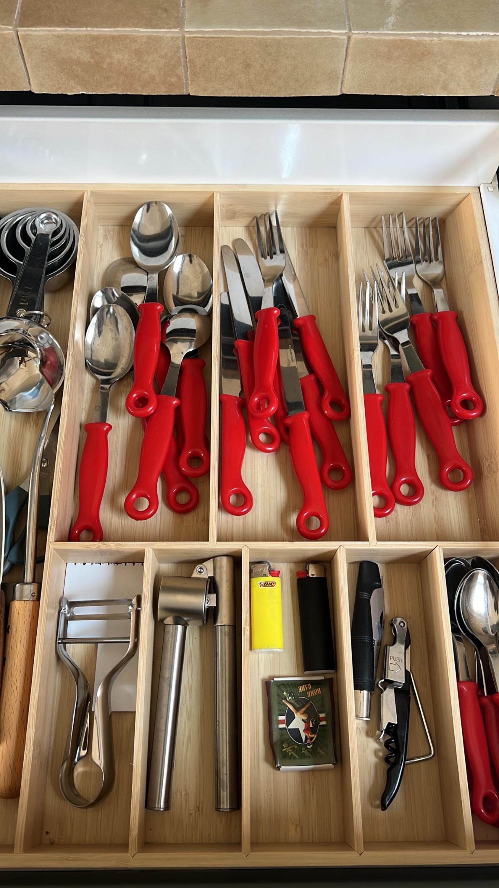 Superbes couverts commandés pour un cadeau. Ça a beaucoup plu! Les couteaux coupent très bien. Très contente.