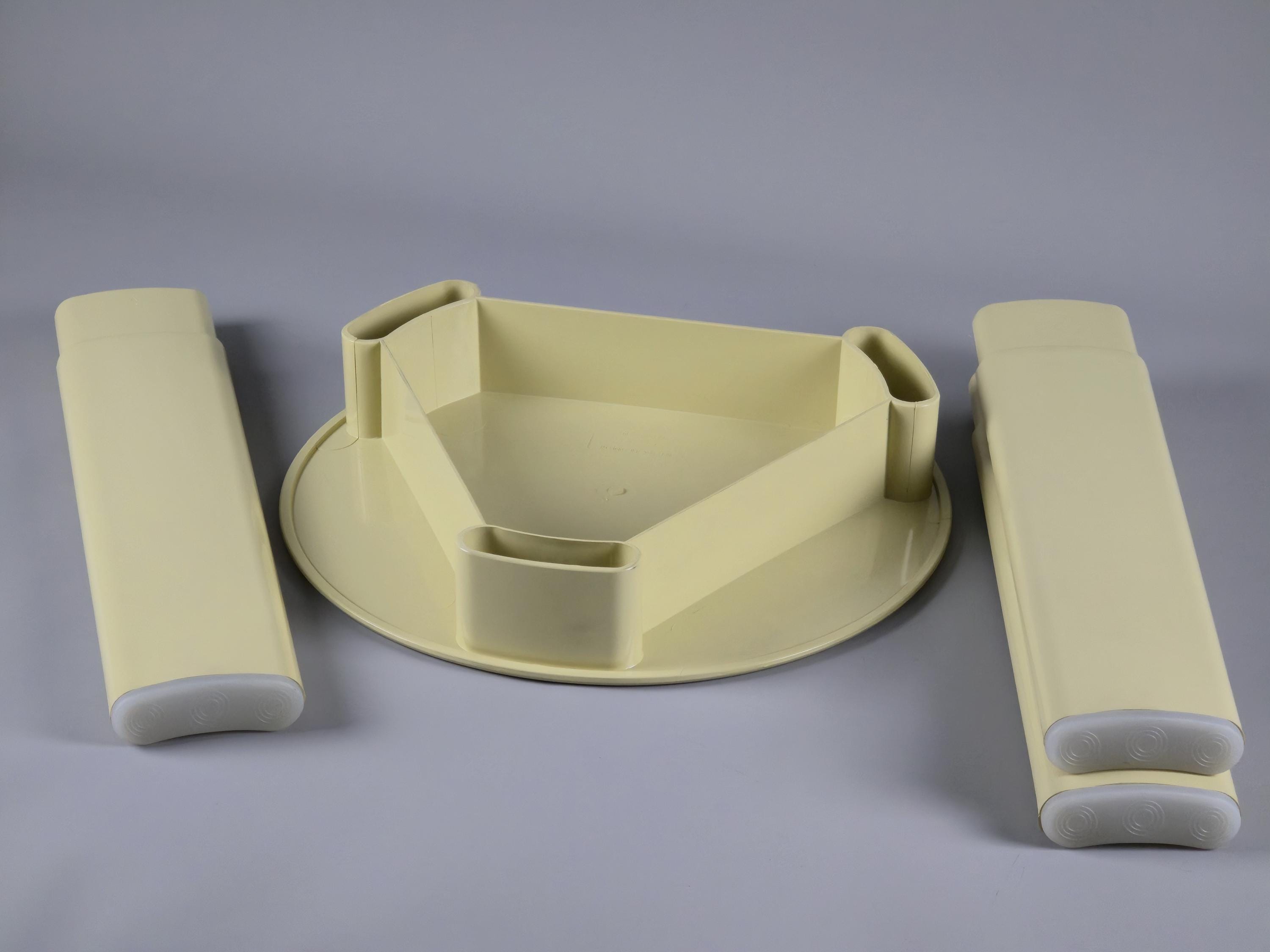 The fabulous Trio stool is one of the most iconic small furniture designs of the 1970s by Austrian master Olaf von Bohr for Gedy Italy. The stool is a multipurpose piece of furniture, as it also can be used as a side table, stool, a side stand or a multipurpose end table.