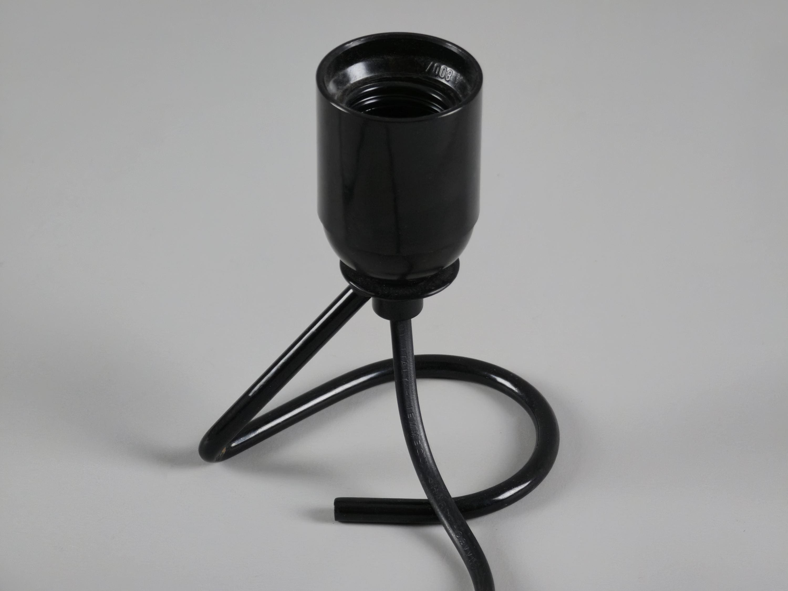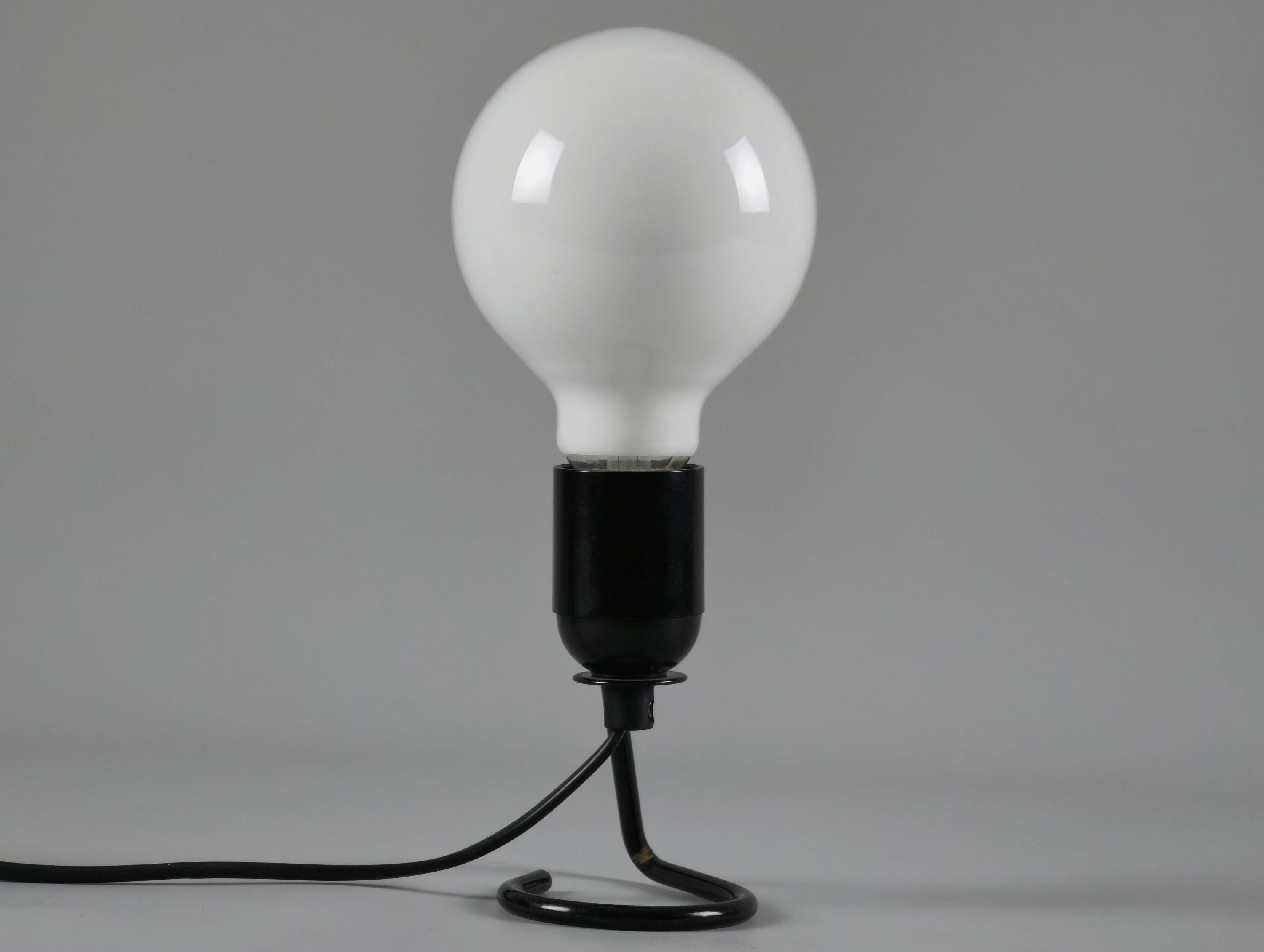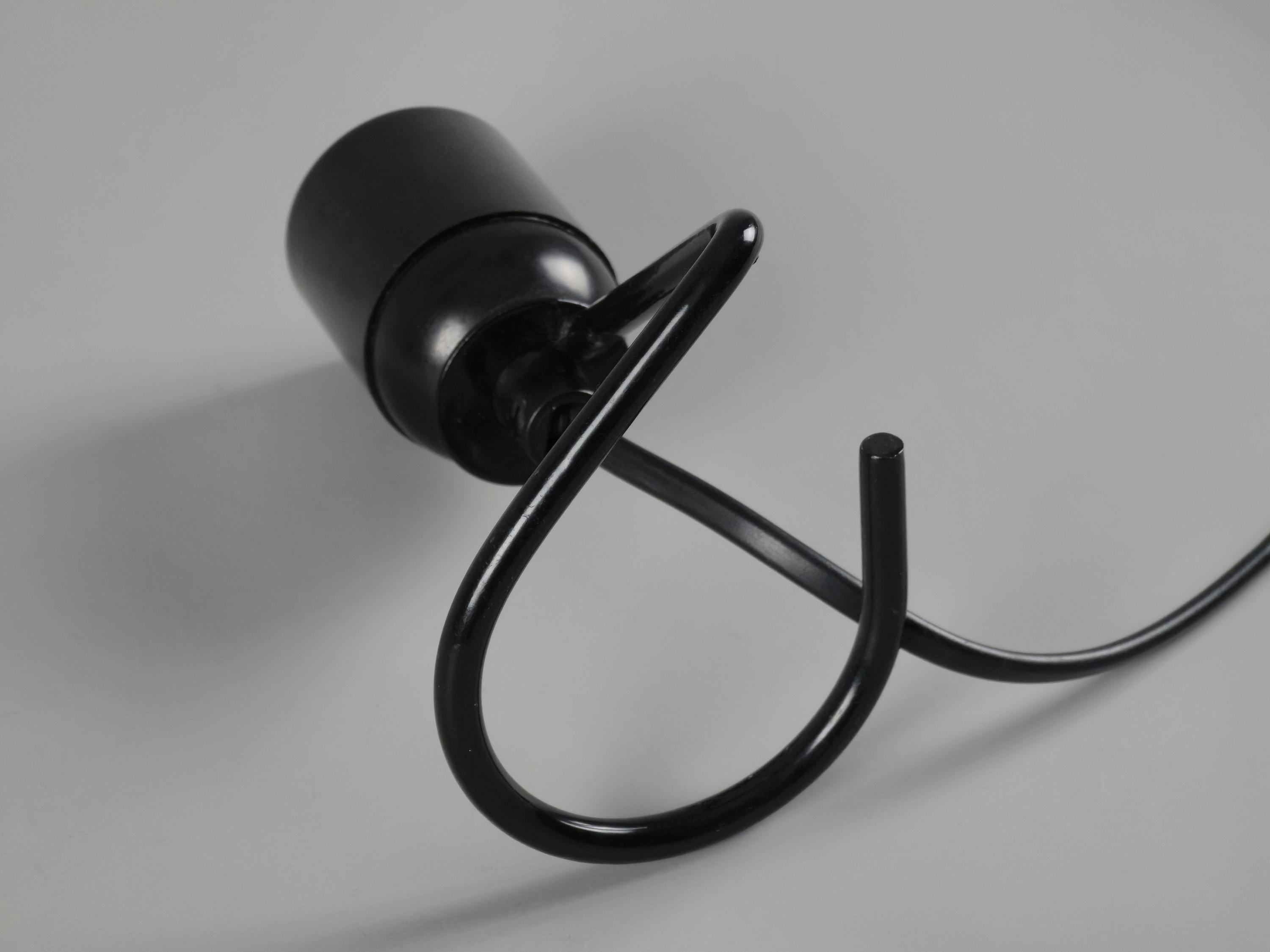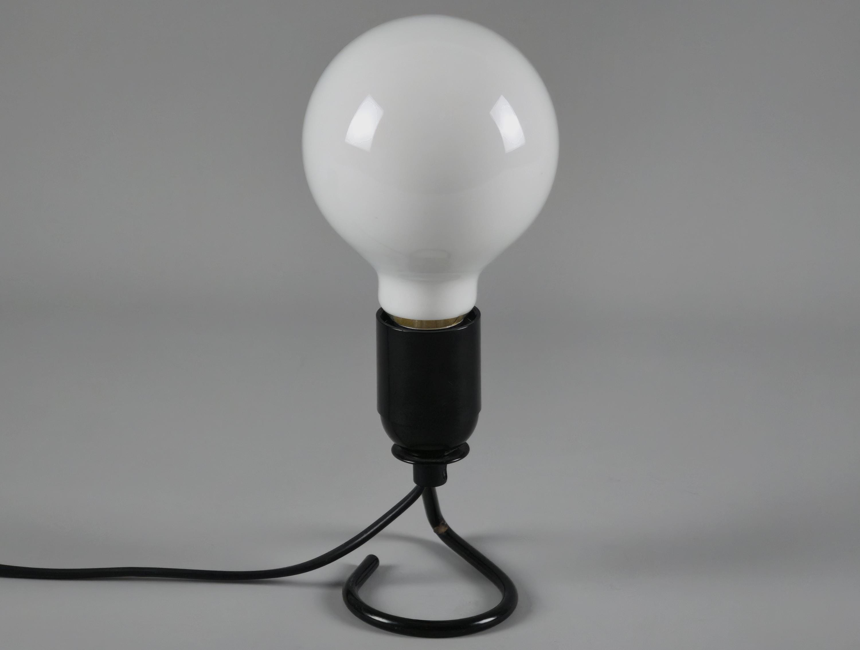 Vintage 1980s industrial table light with a black wire base with a looped design. The exposed bulb and open-frame construction give it a raw, utilitarian vibe that works anywhere.