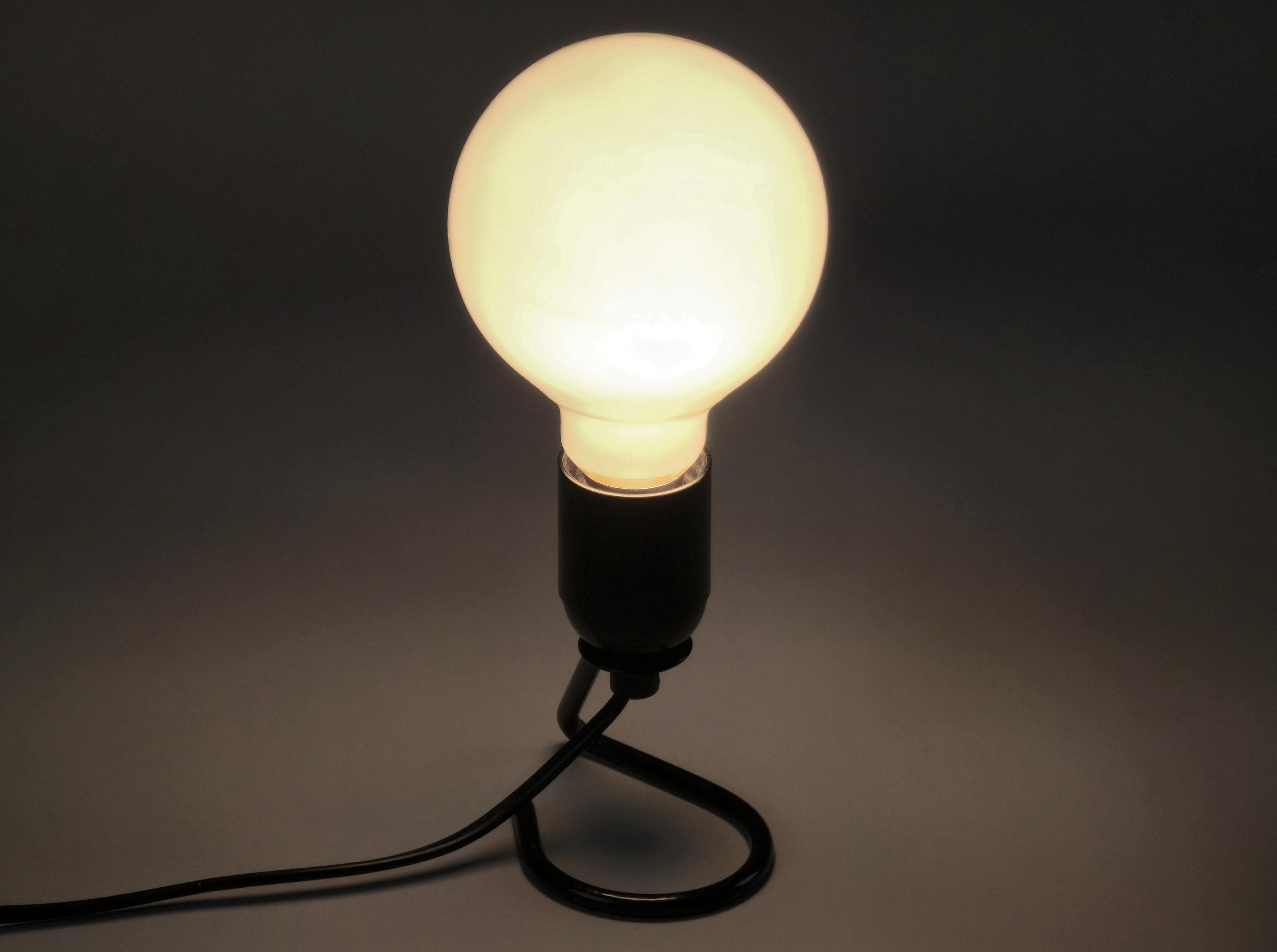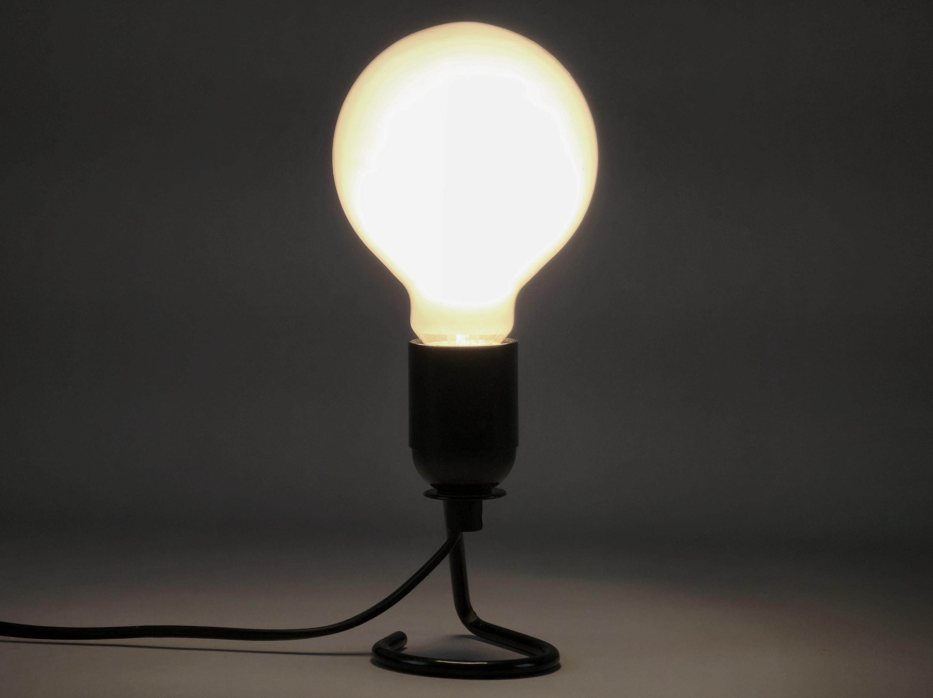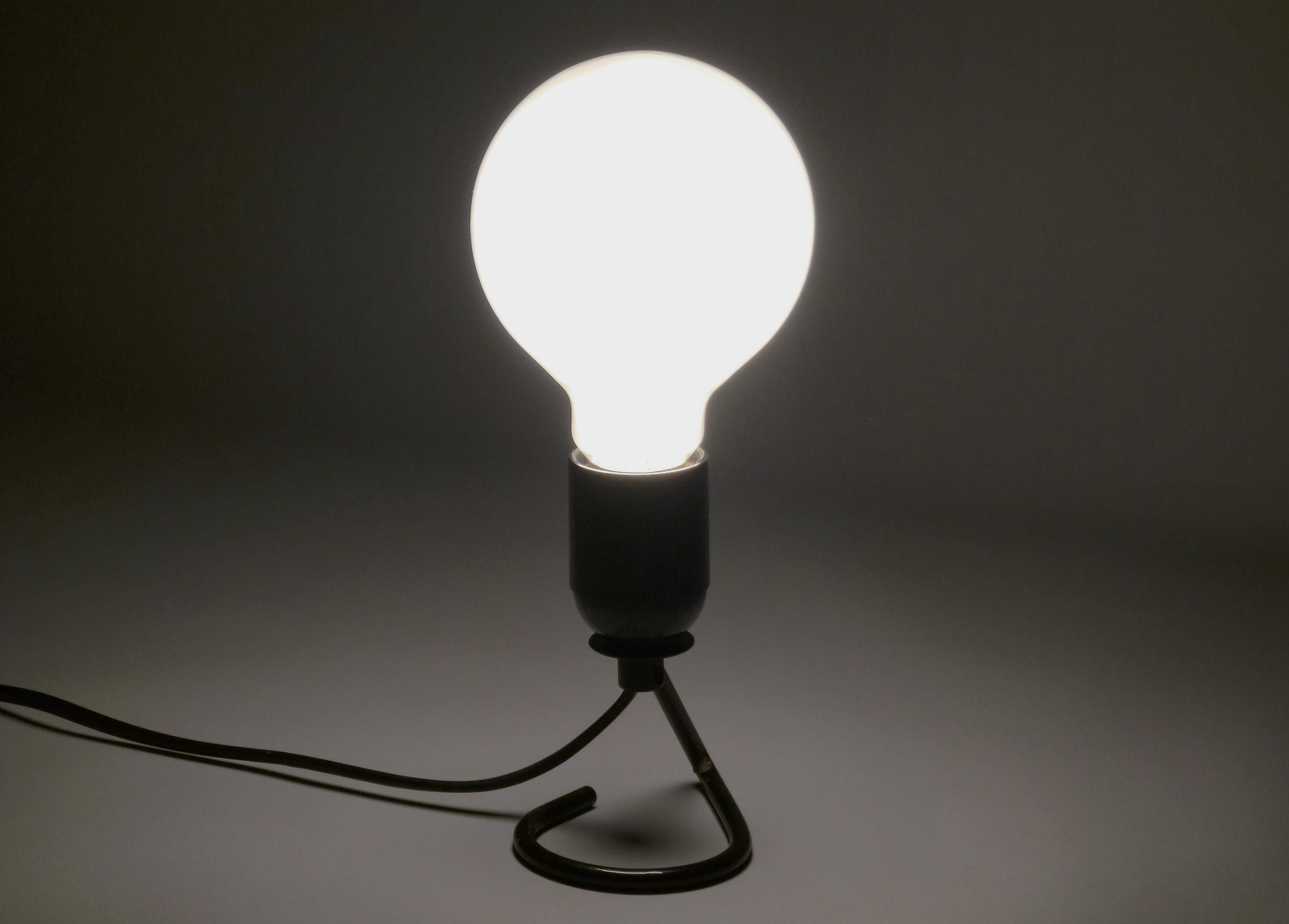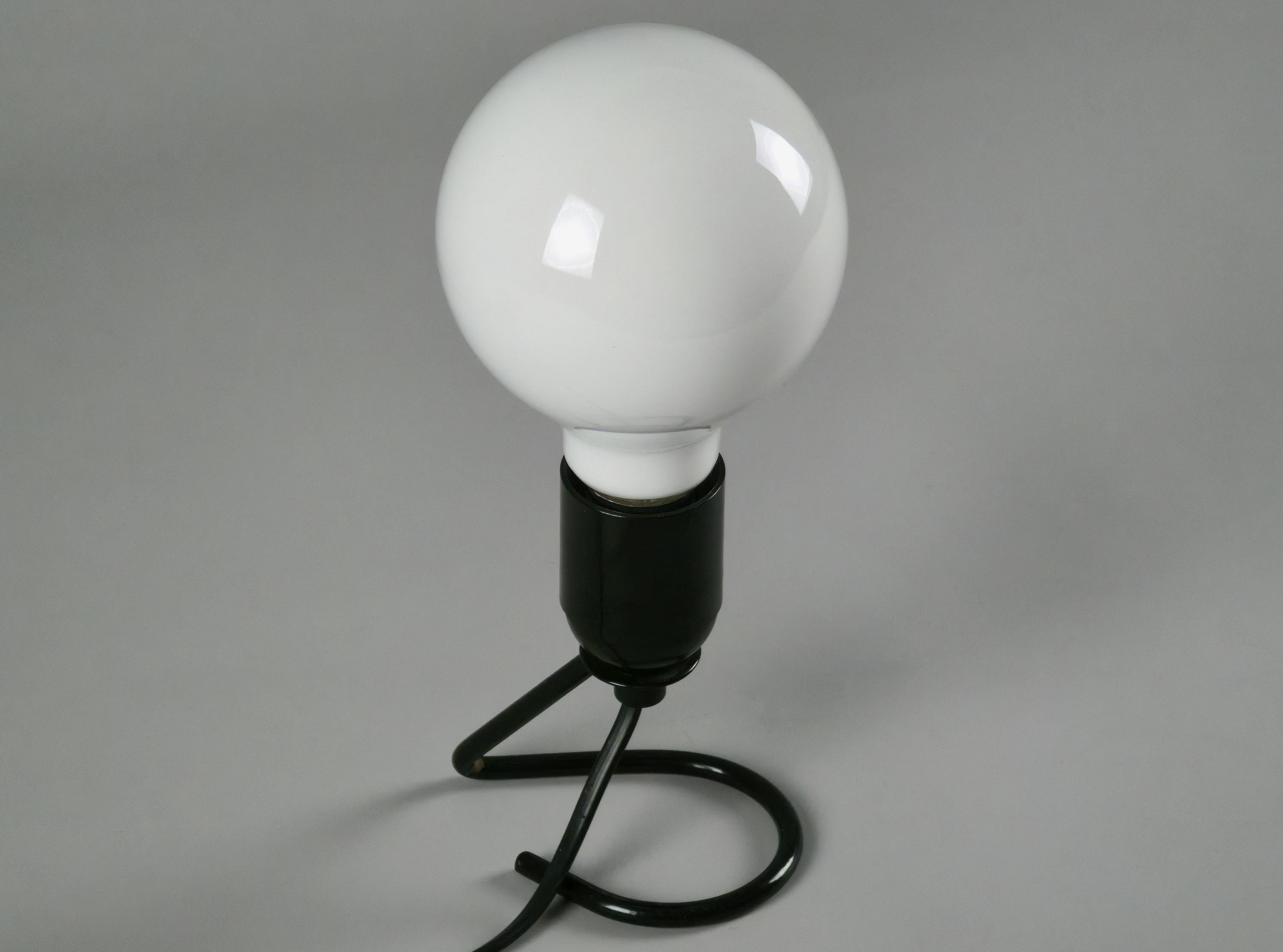 Vintage 1980s industrial table light with a black wire base with a looped design. The exposed bulb and open-frame construction give it a raw, utilitarian vibe that works anywhere.