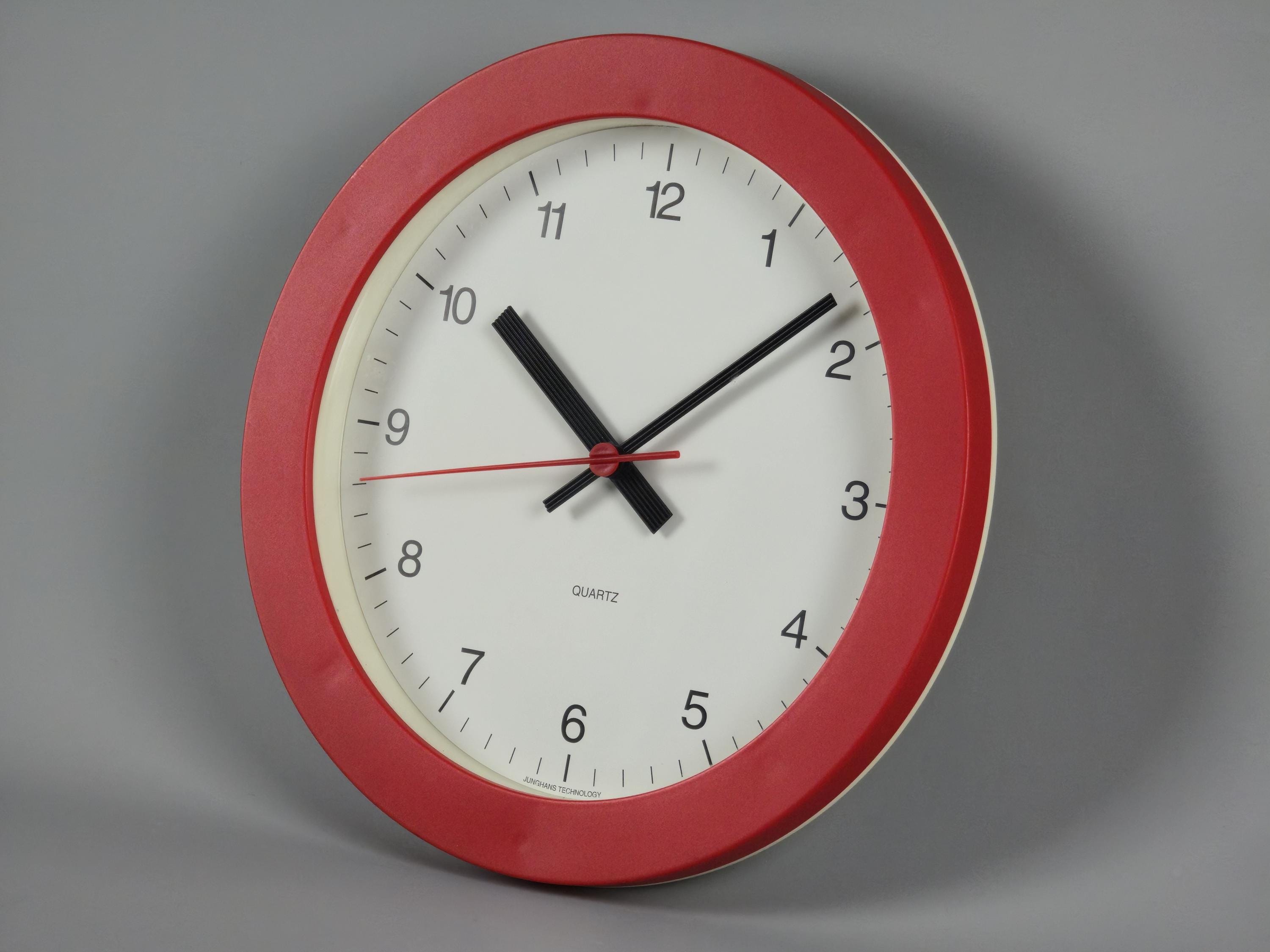 Vintage 1990s JUNGHANS Red Plastic Wall Clock.