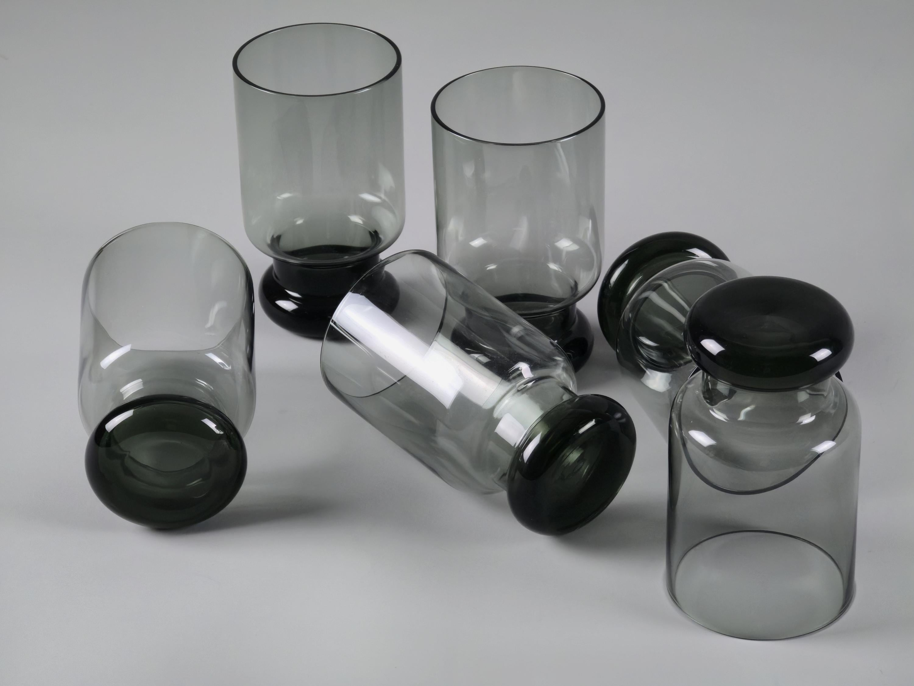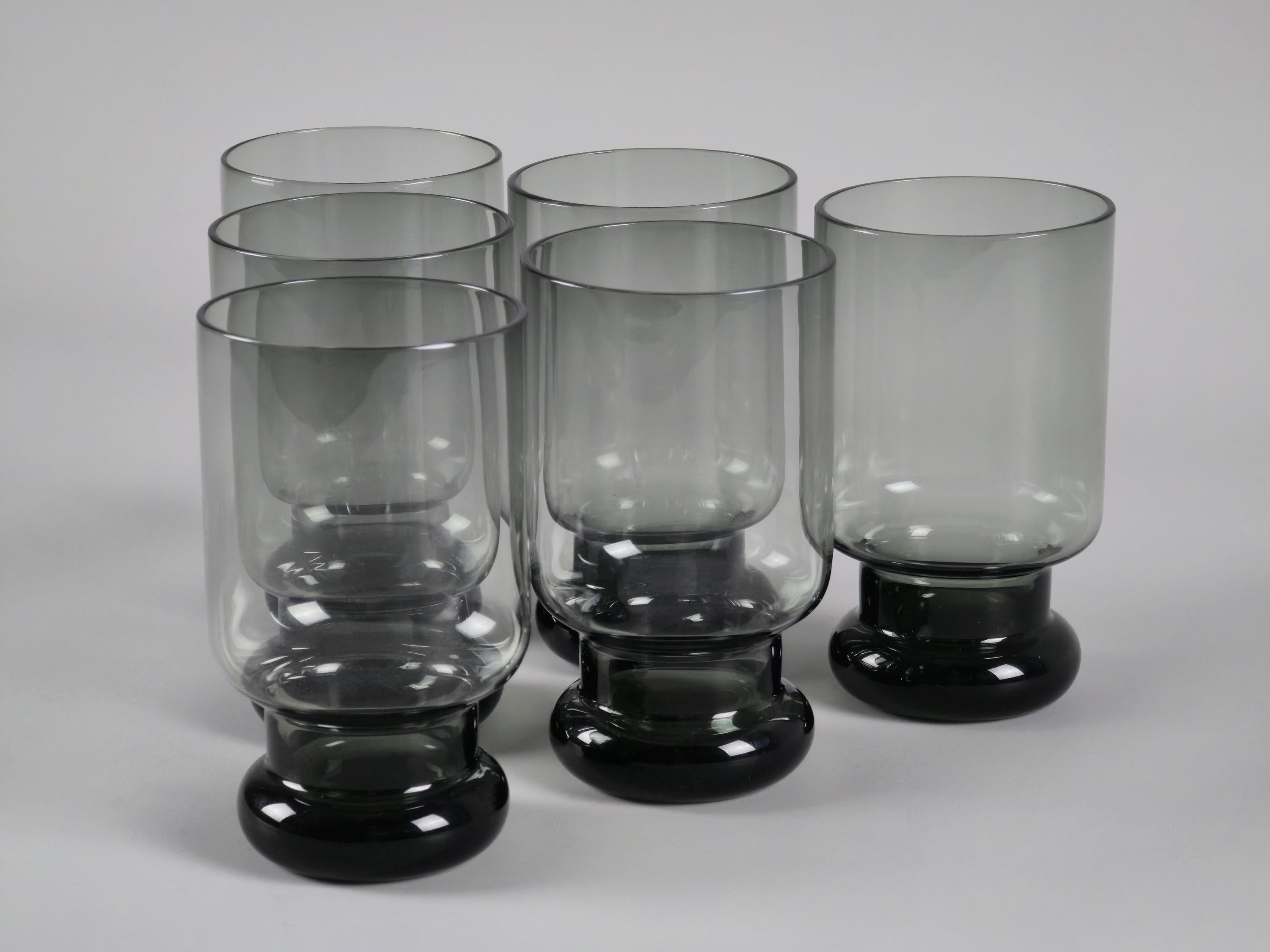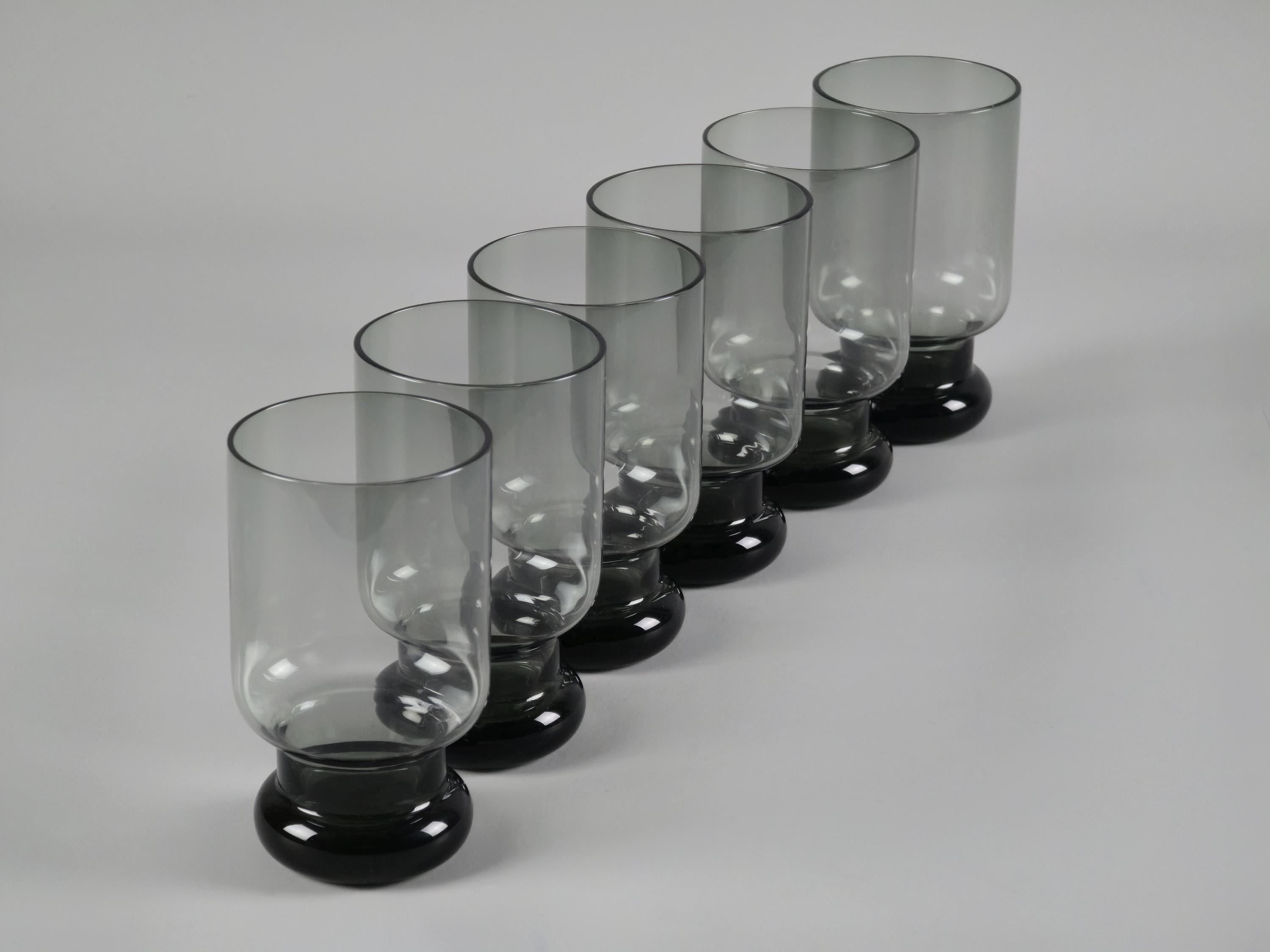 Vintage 1970s set of 6 original Bohemia smoked highball glasses with a weighted base in excellent condition.