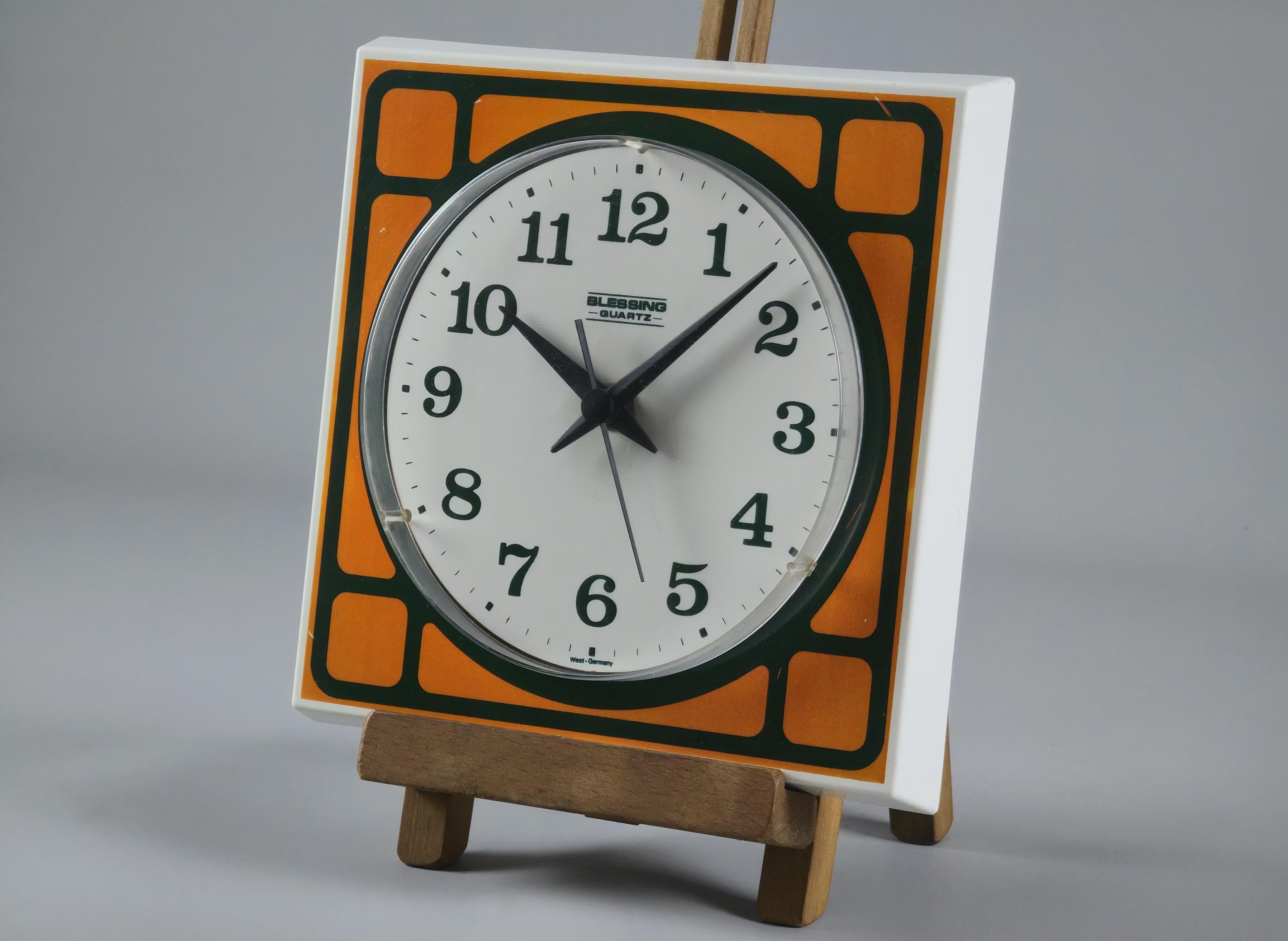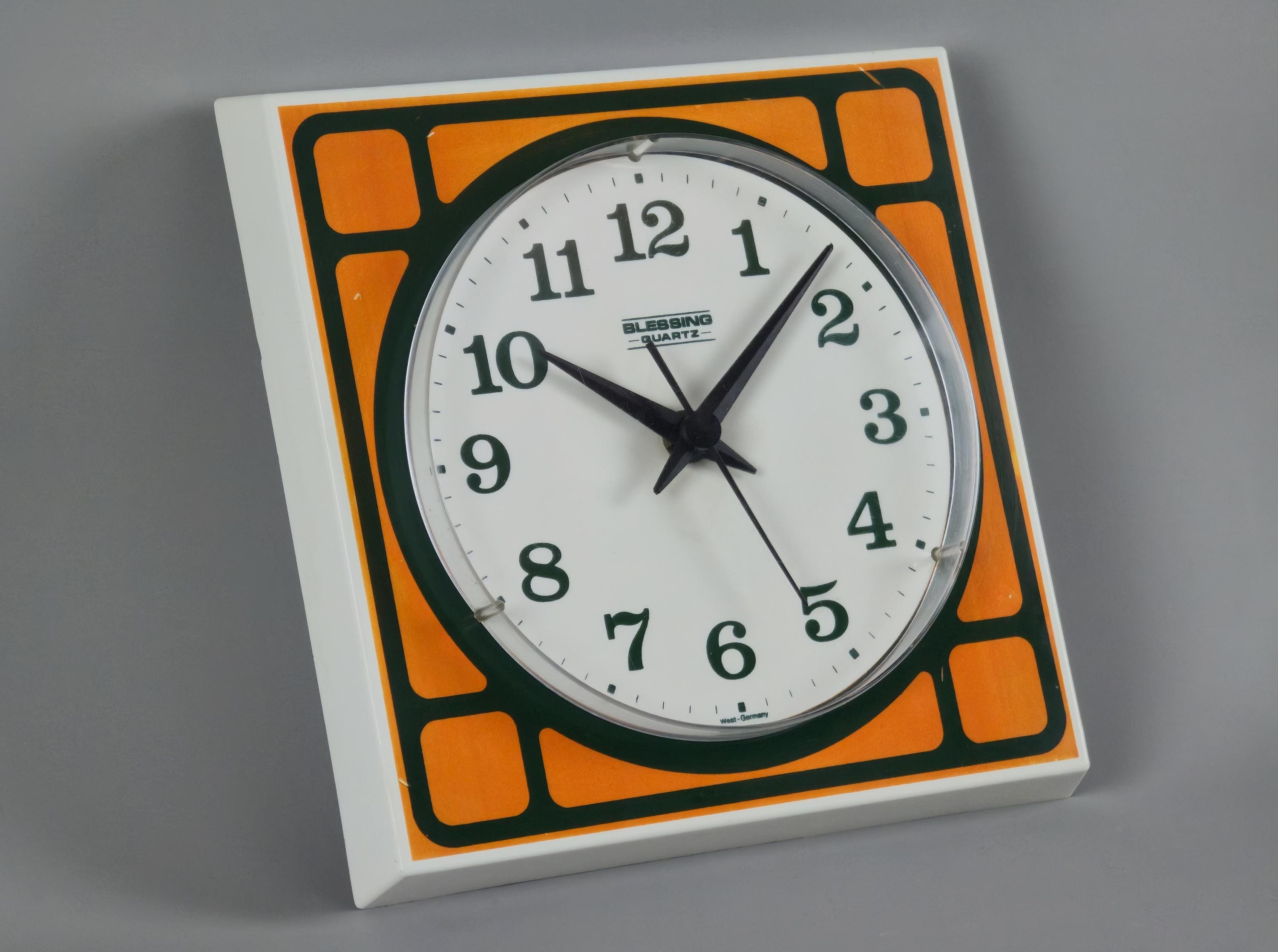 Vintage 1970s plastic wall clock with pop-art design by Blessing West Germany.