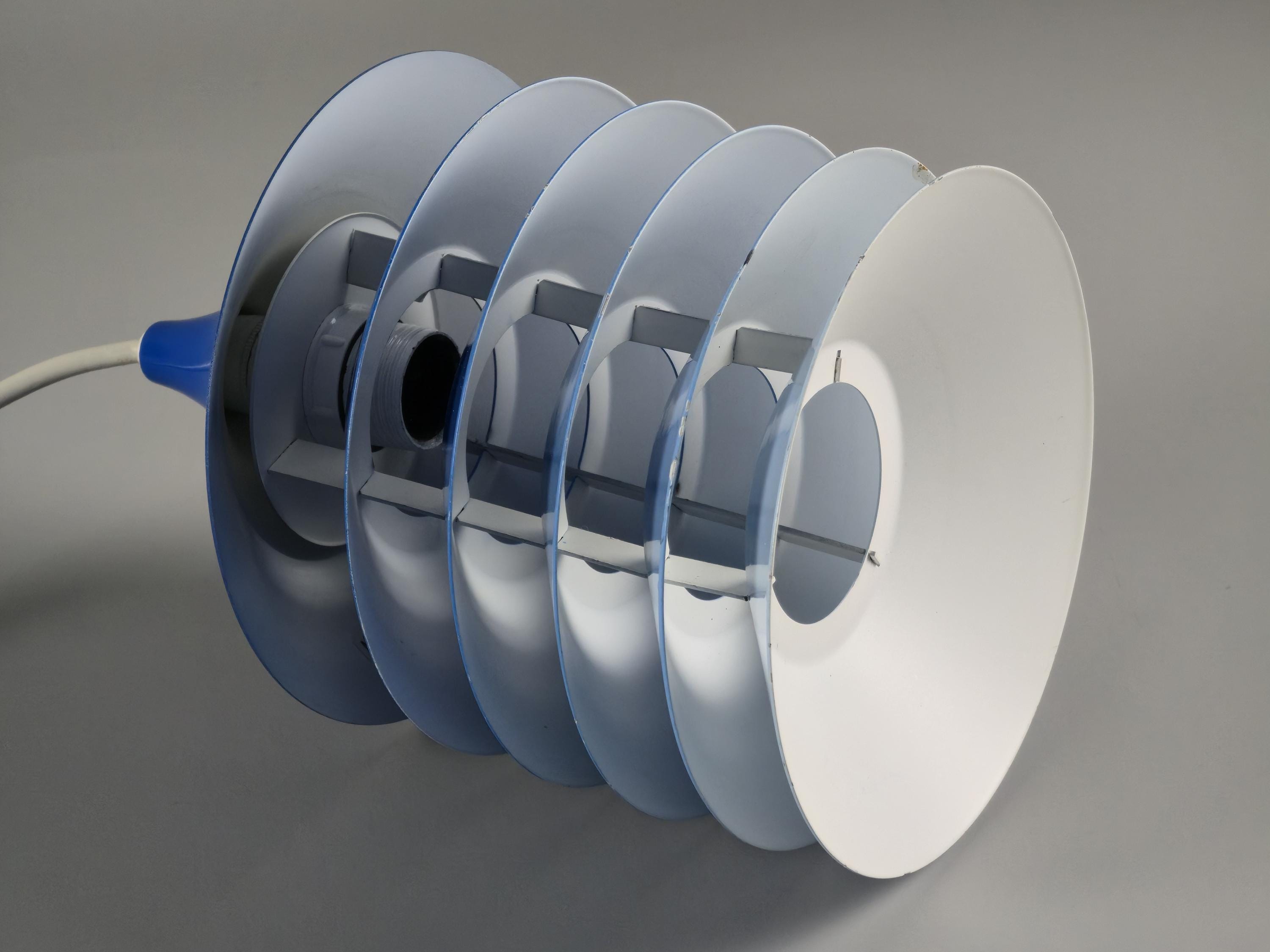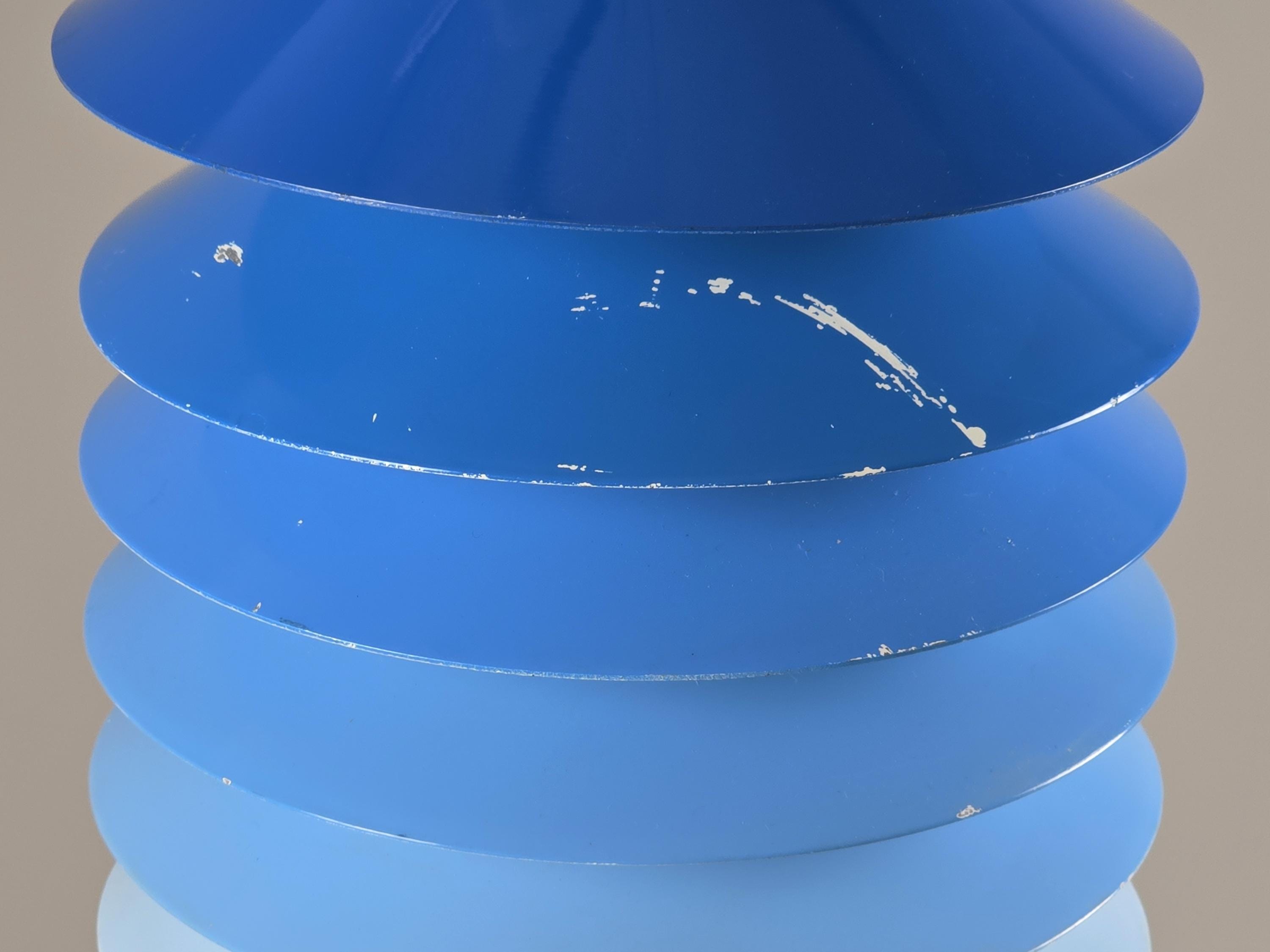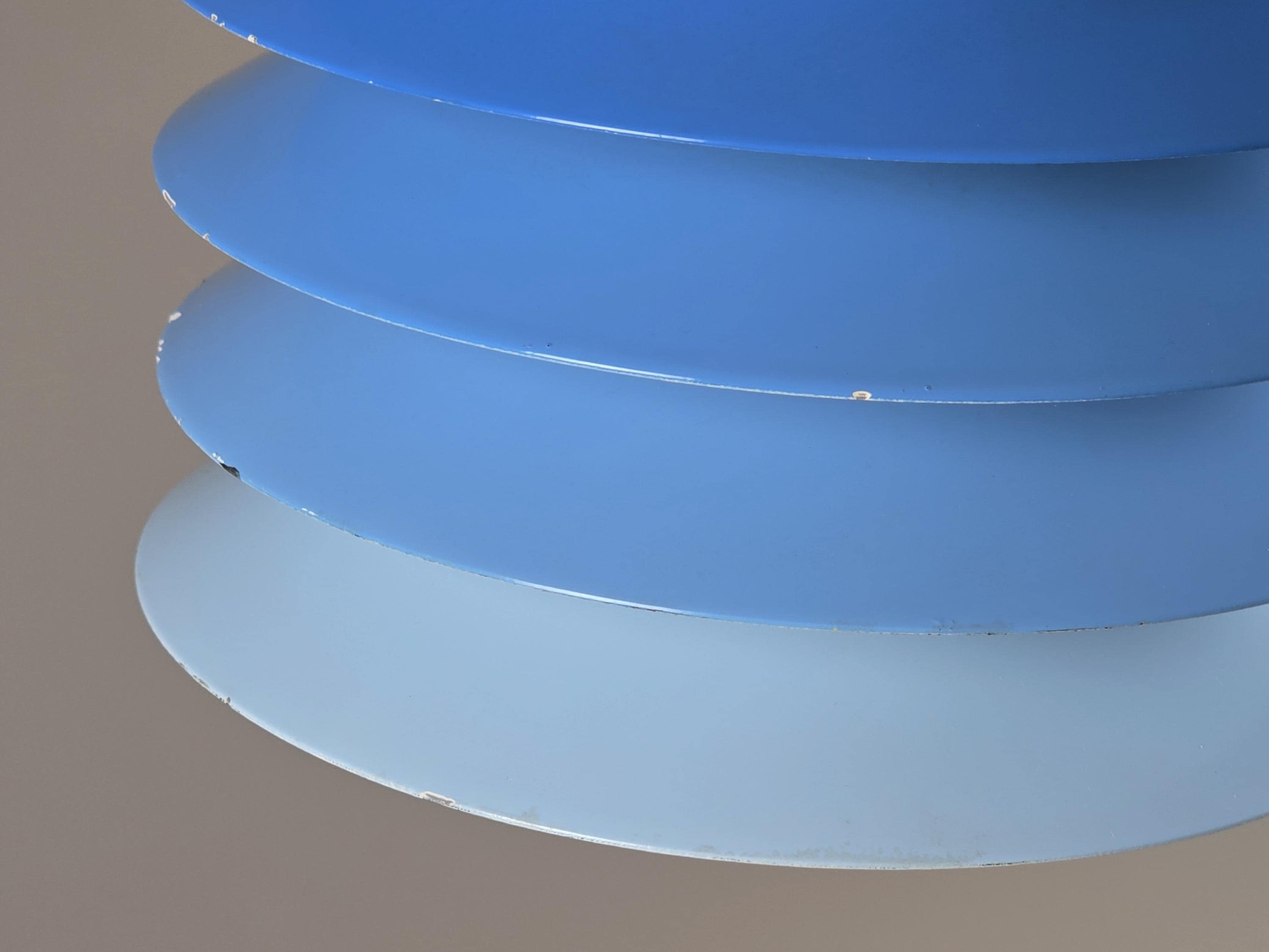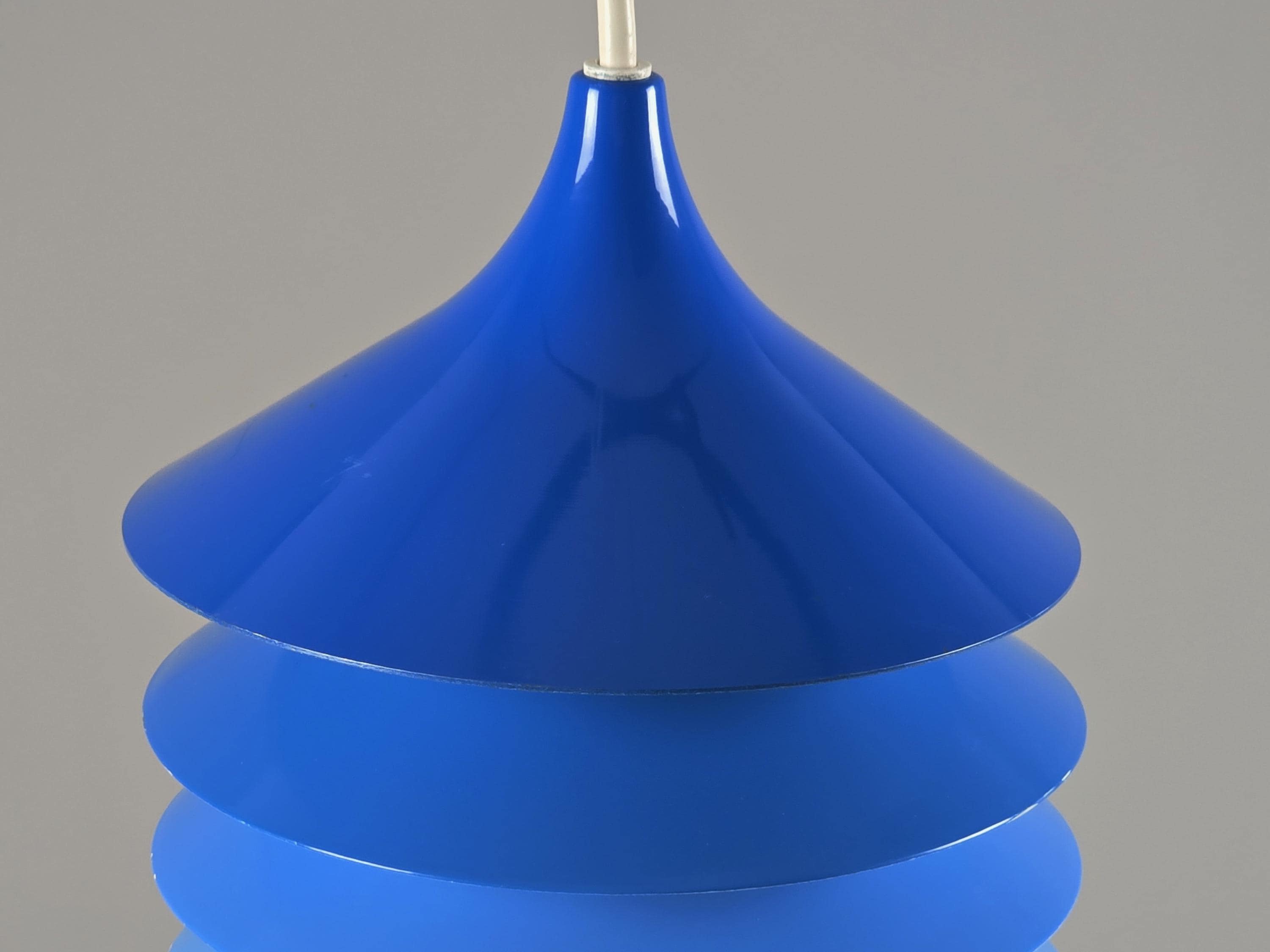 Iconic vintage metal pendant lamp Duett Type T202 from 1983 by Bent Boysen for IKEA in six shades of blue. The lamp appears in the 1983 IKEA catalogue.