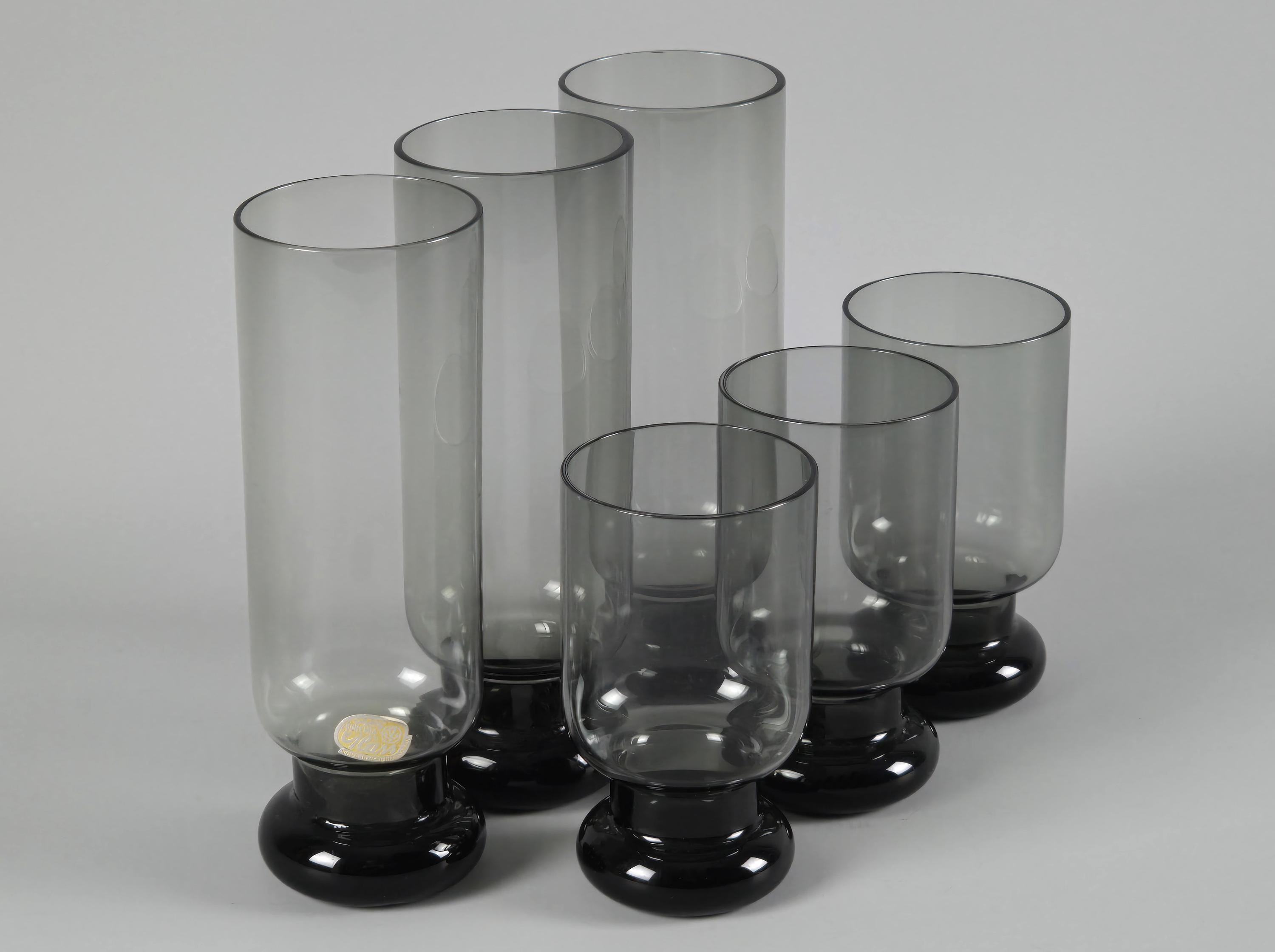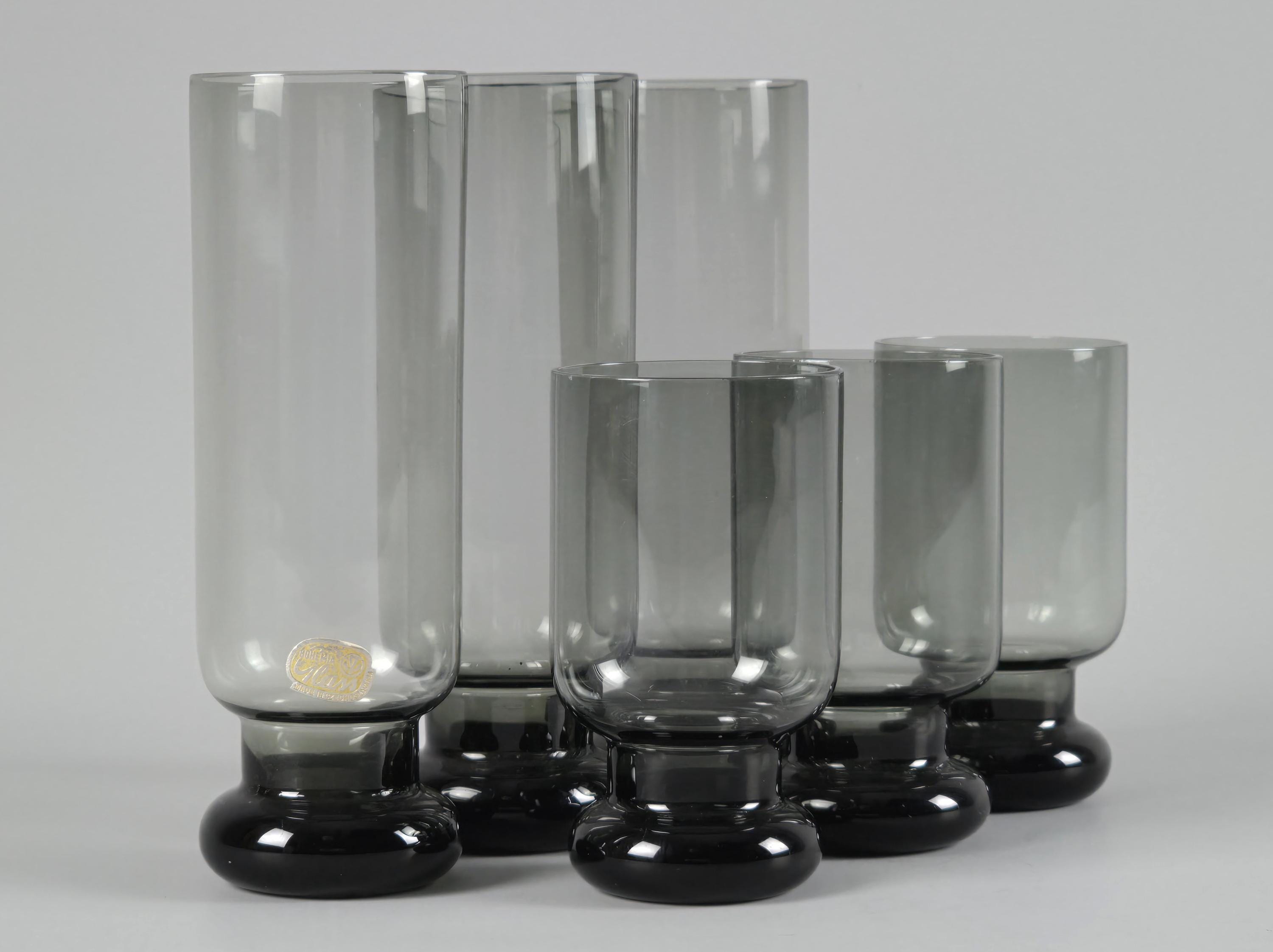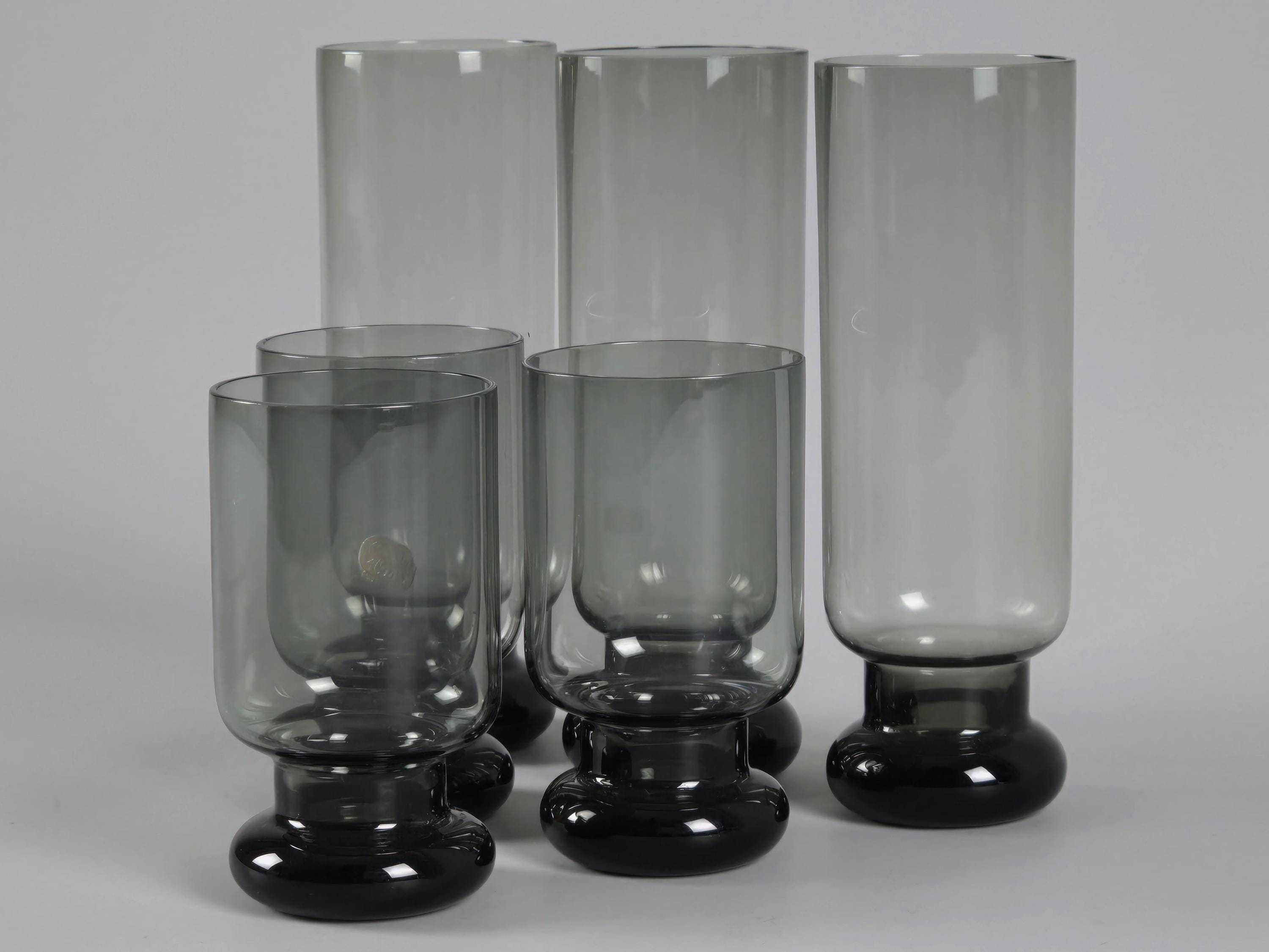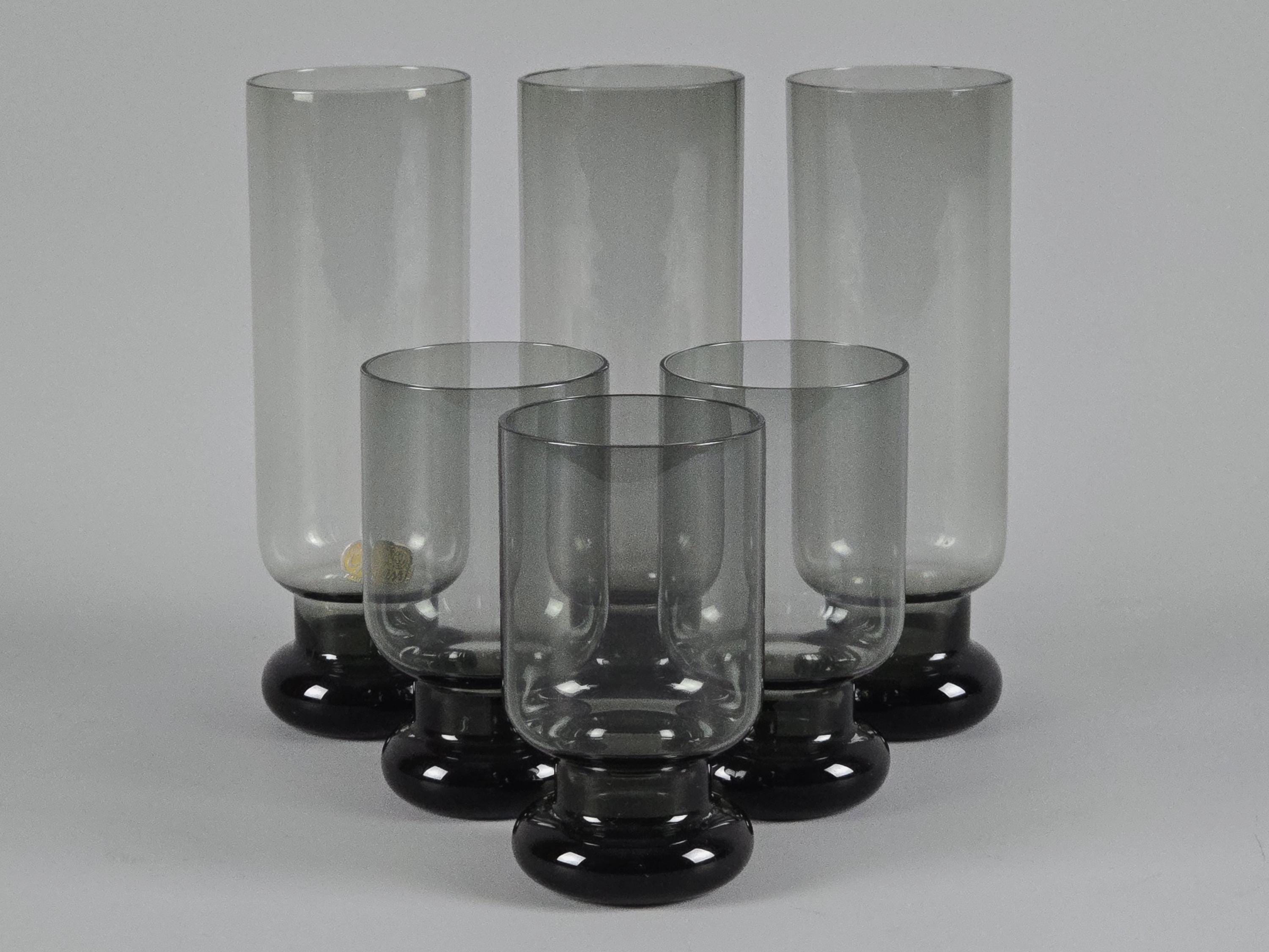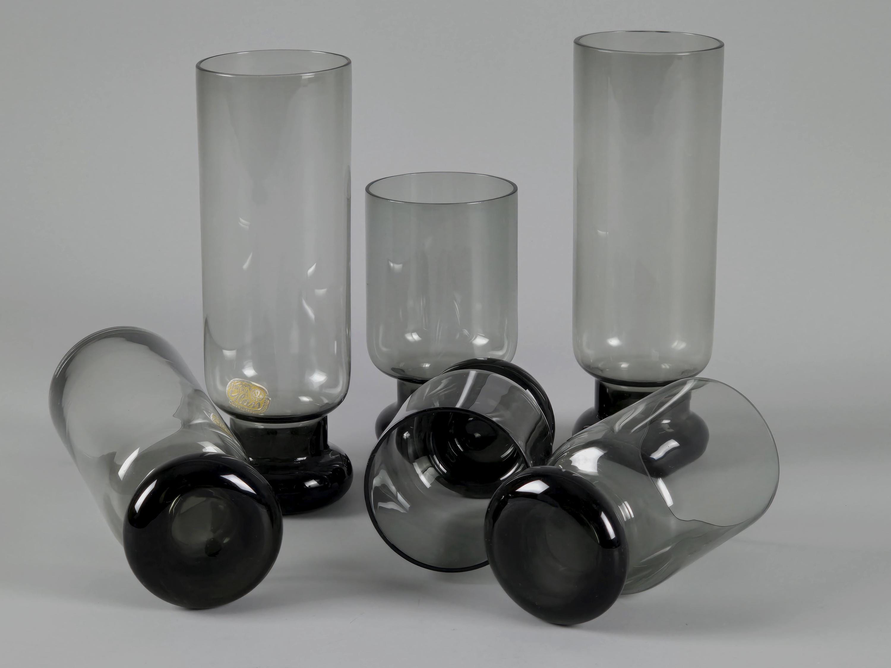 Vintage 1970s set of 6 original Bohemia smoked highball glasses with a weighted base in excellent condition.