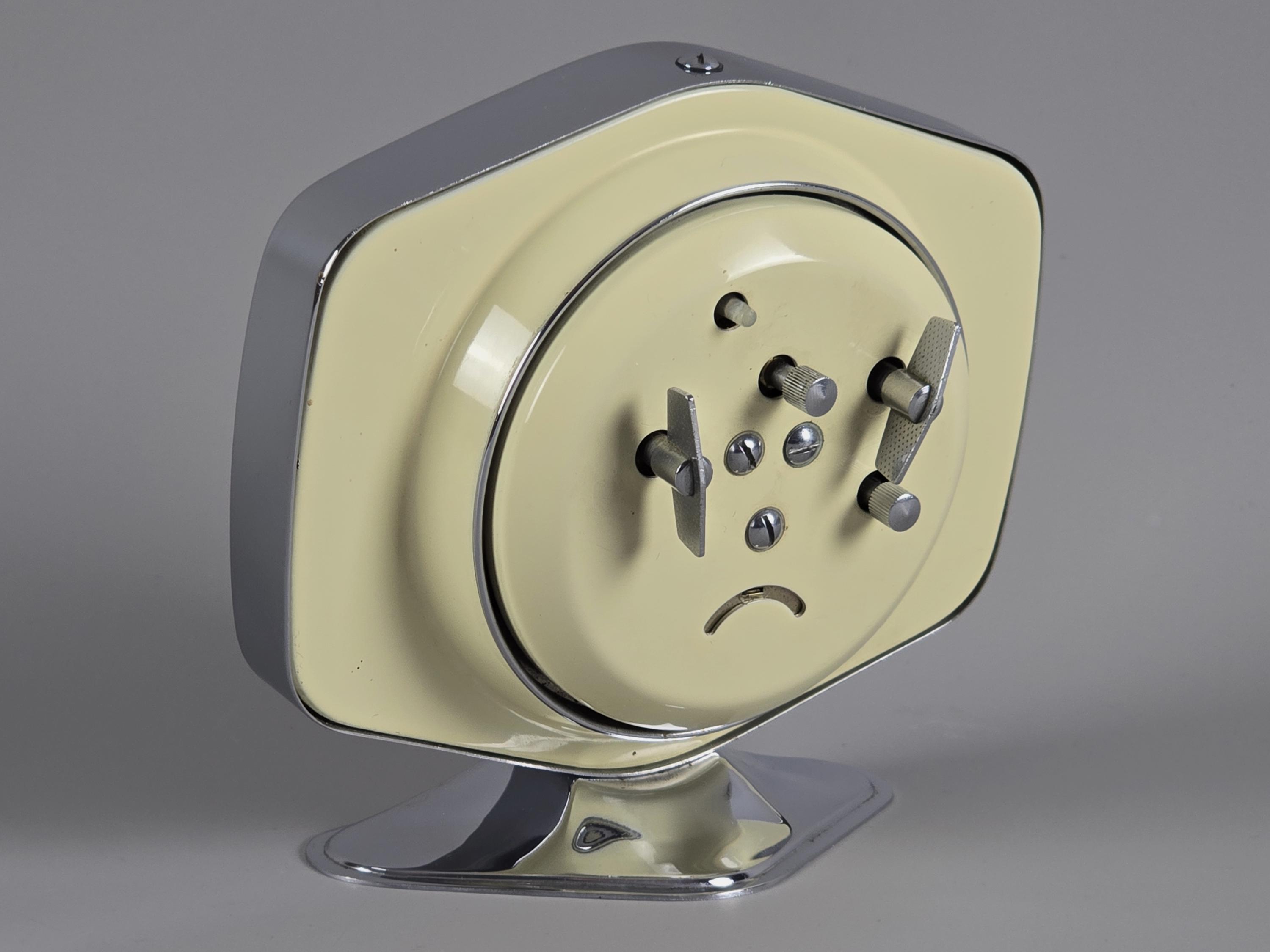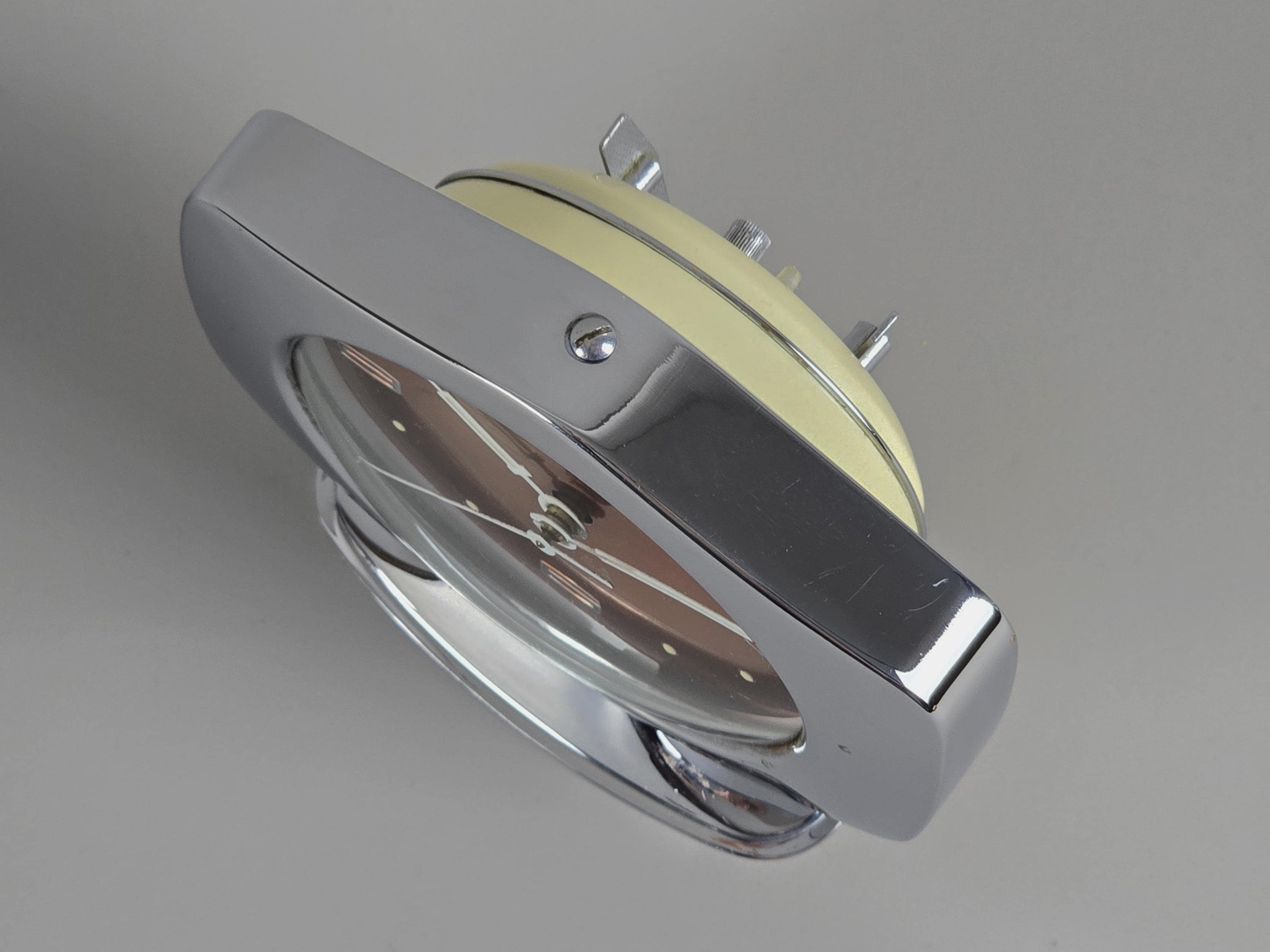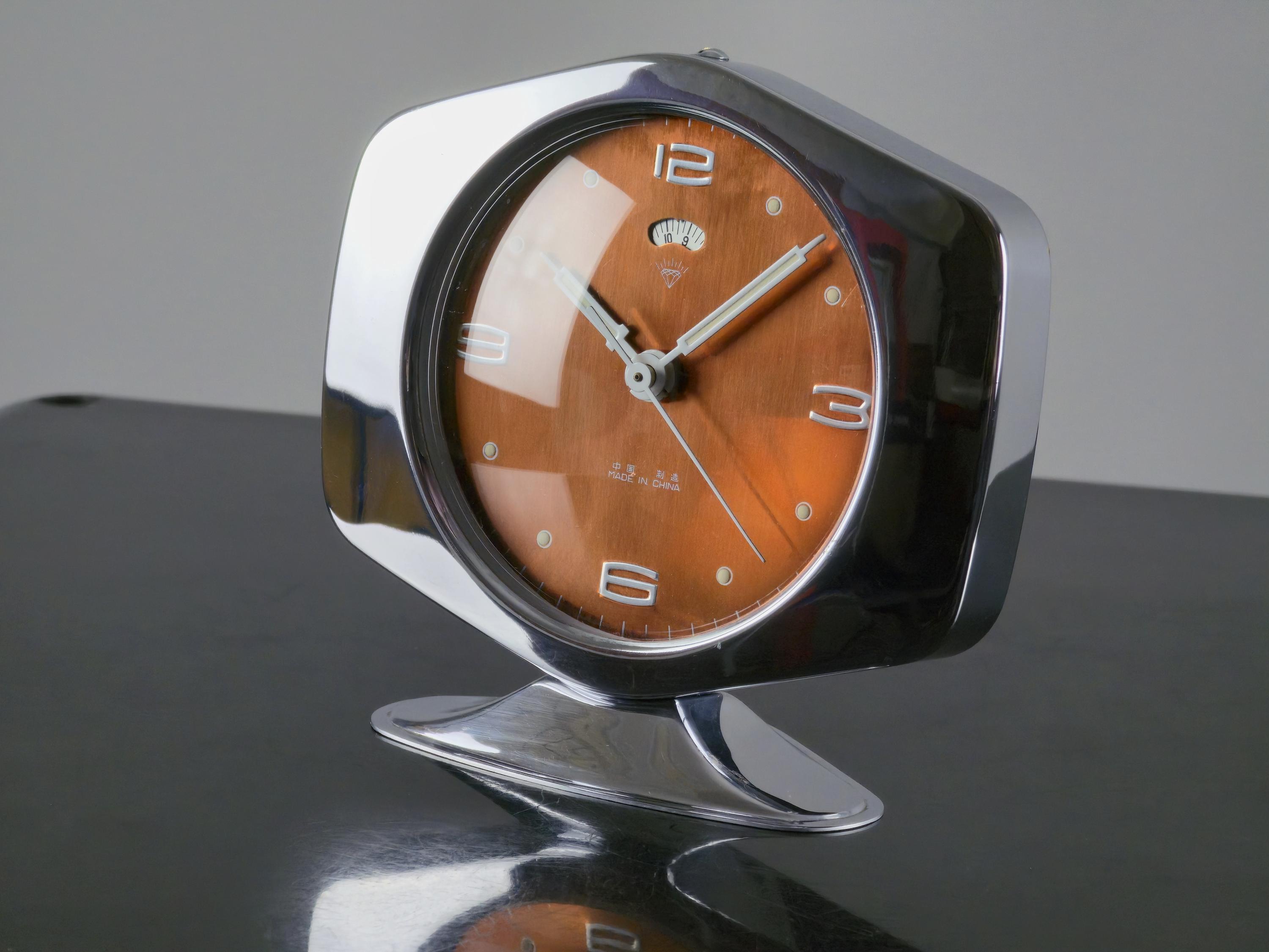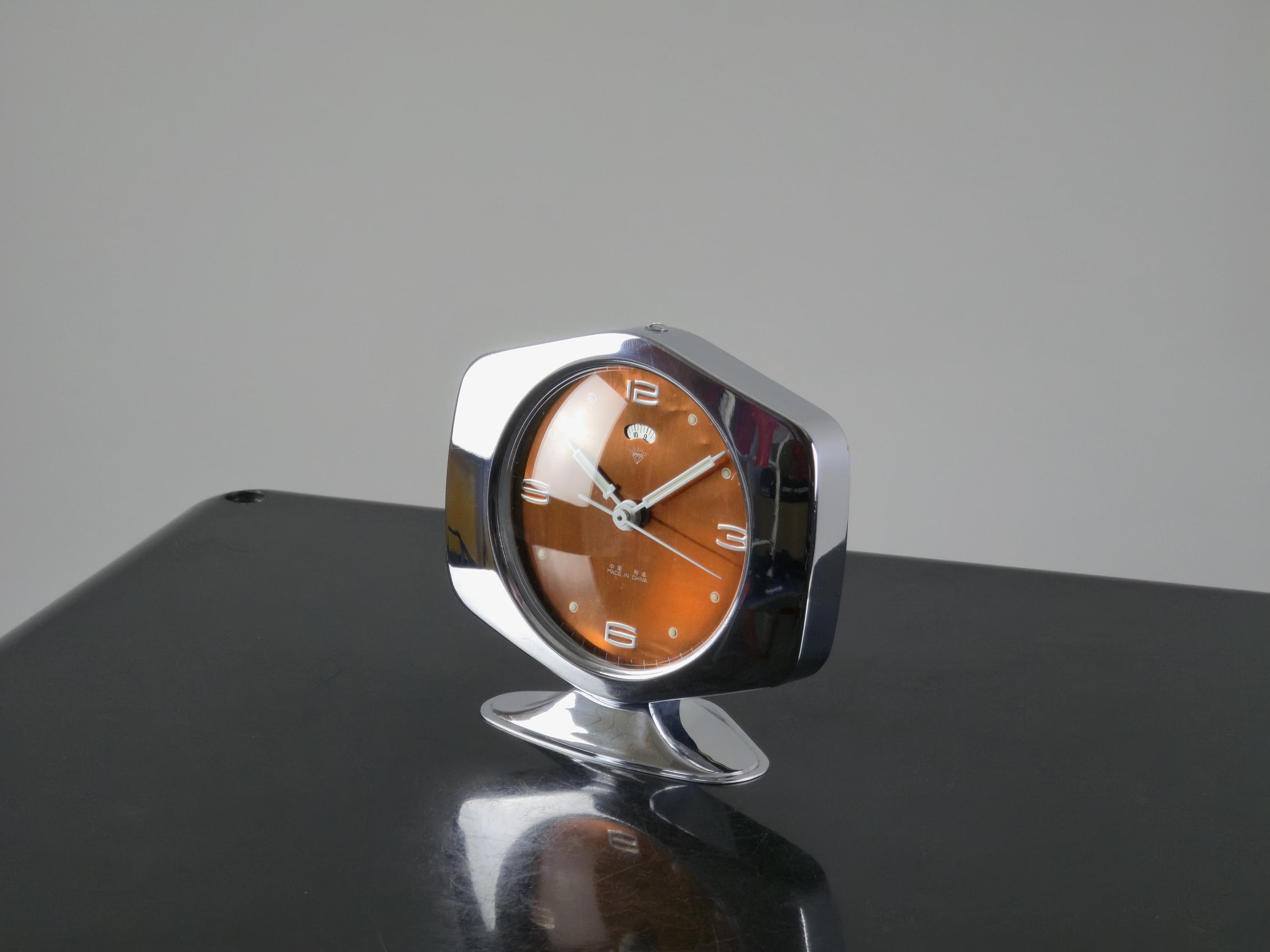 Beautiful mid-century modern vintage mechanical table alarm clock from the 1970s by Diamond in excellent condition.