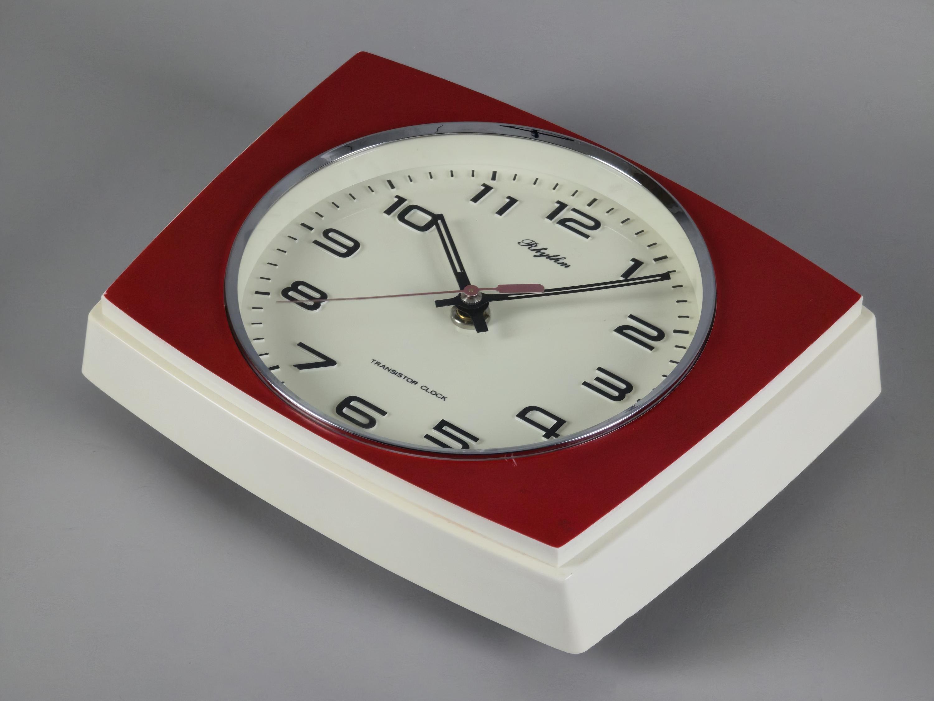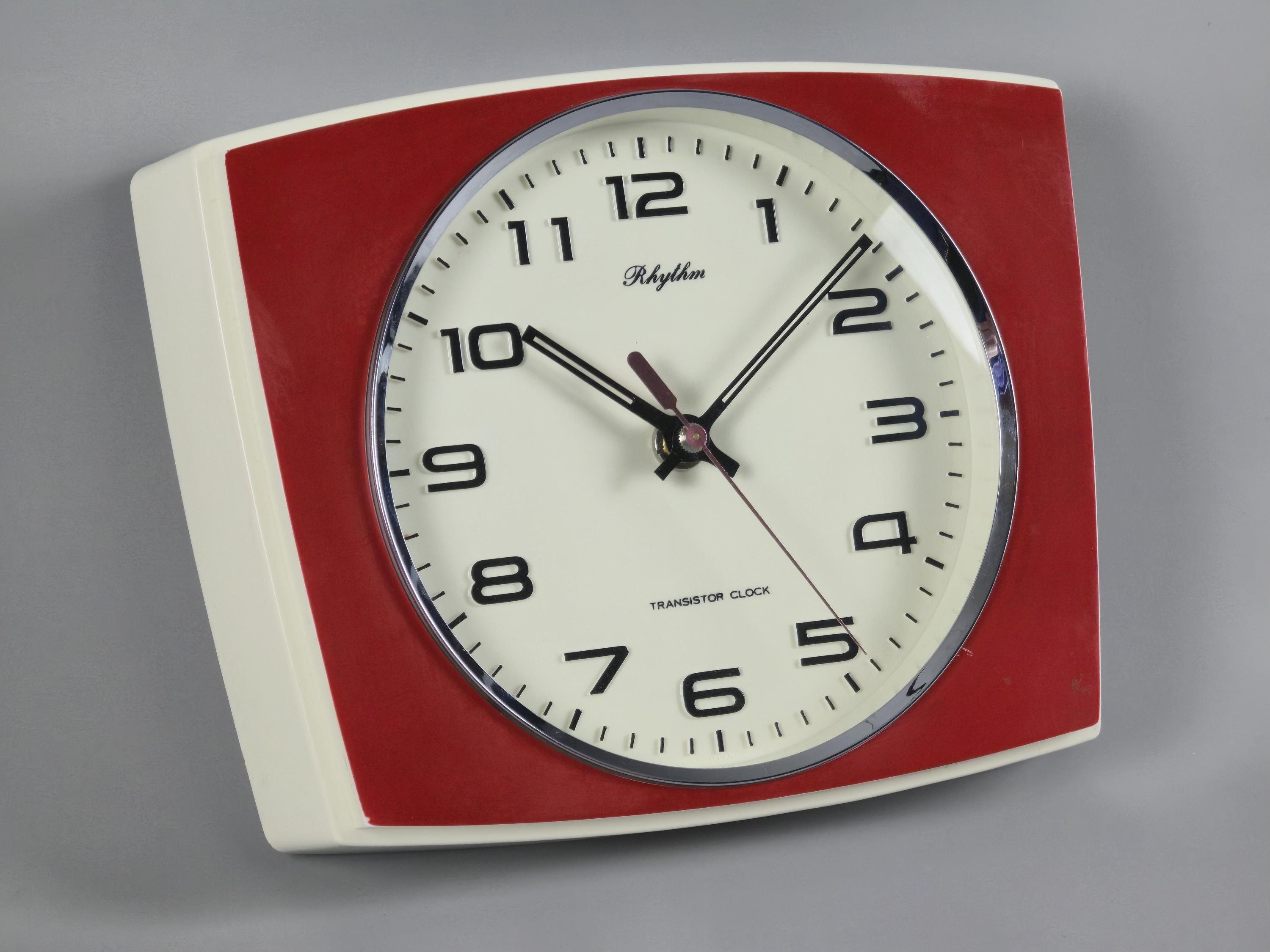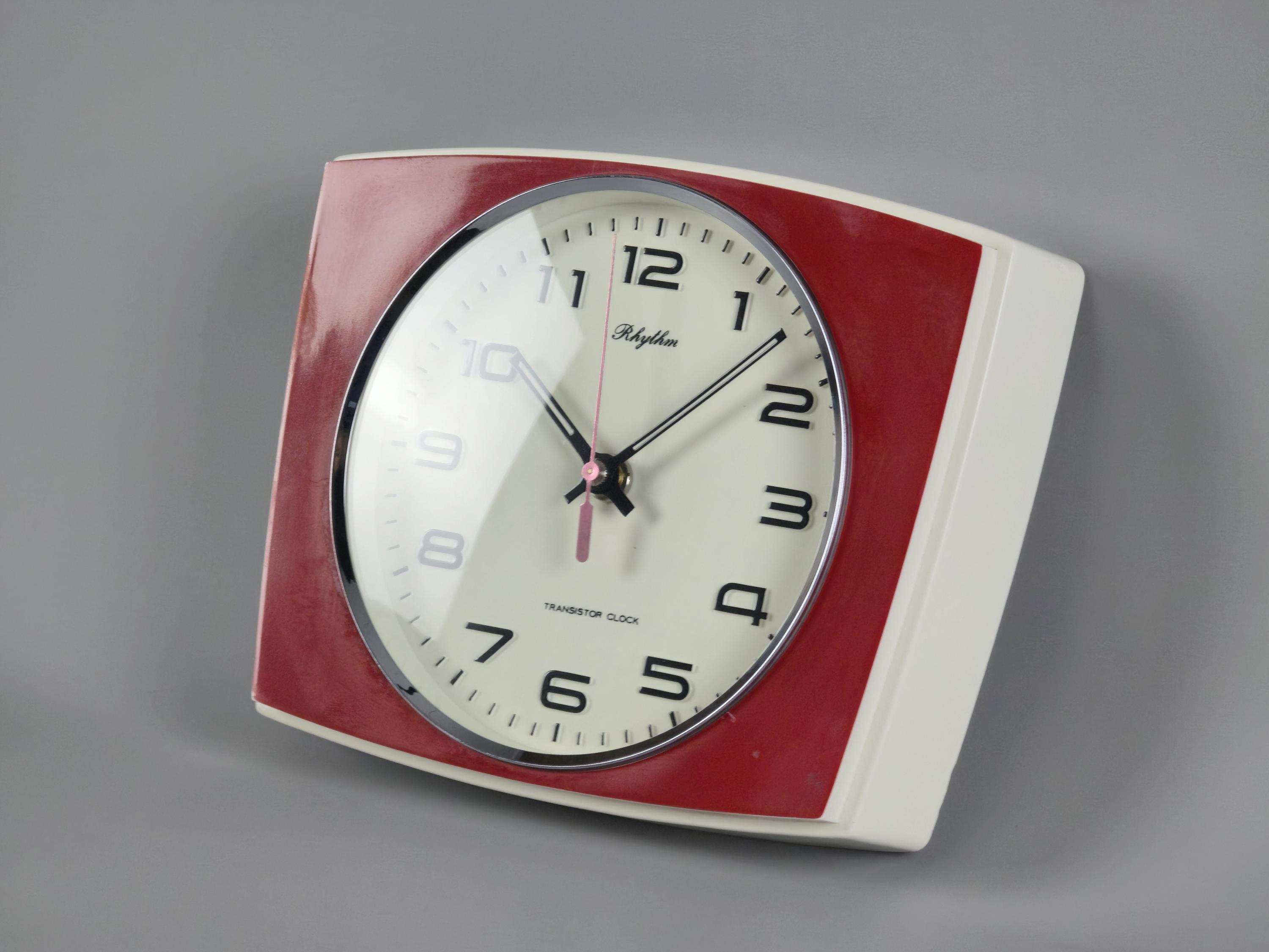 Vintage 1970s Rhythm Transistor Plastic Wall Clock, Japan.