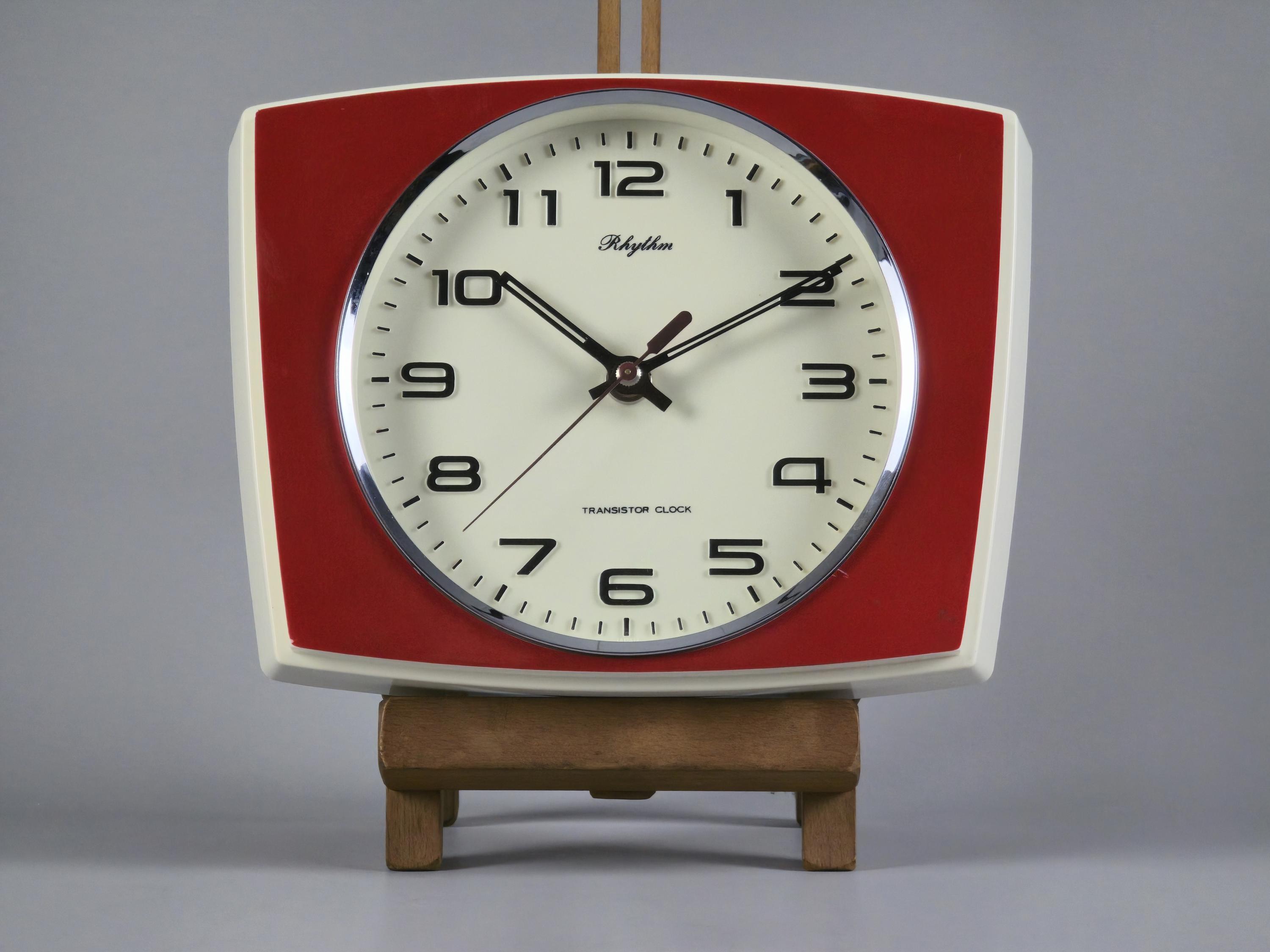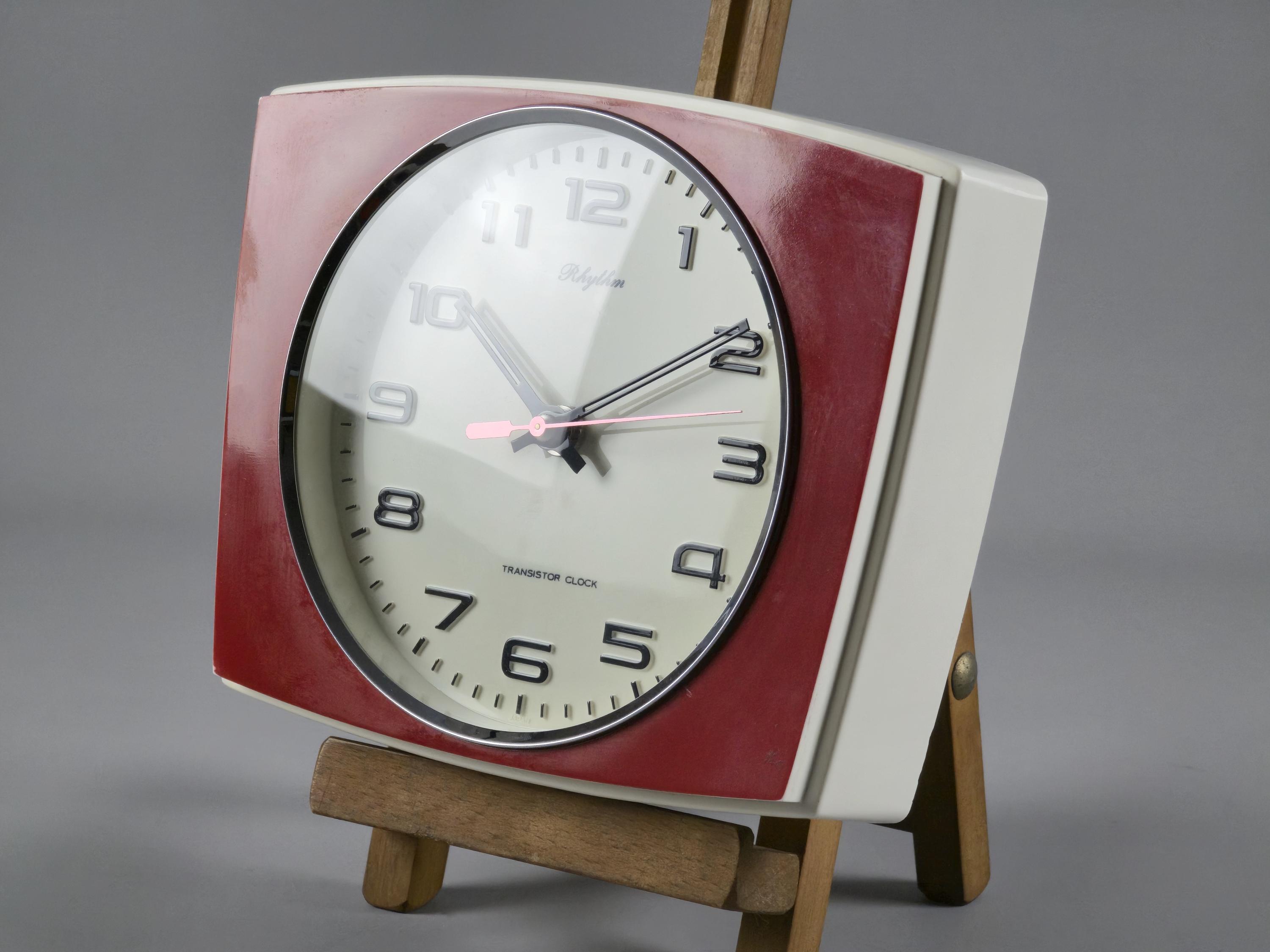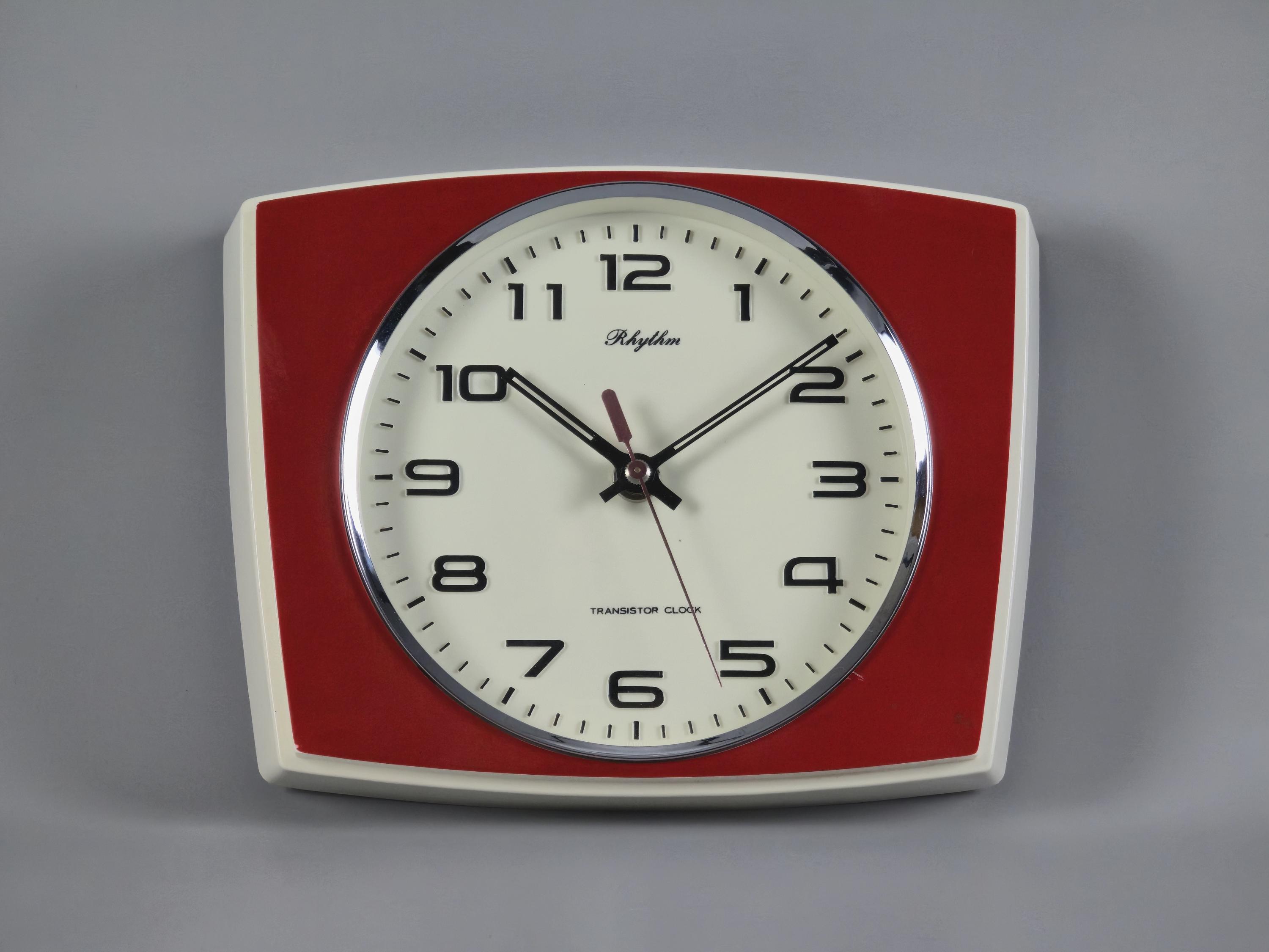 Vintage 1970s Rhythm Transistor Plastic Wall Clock, Japan.