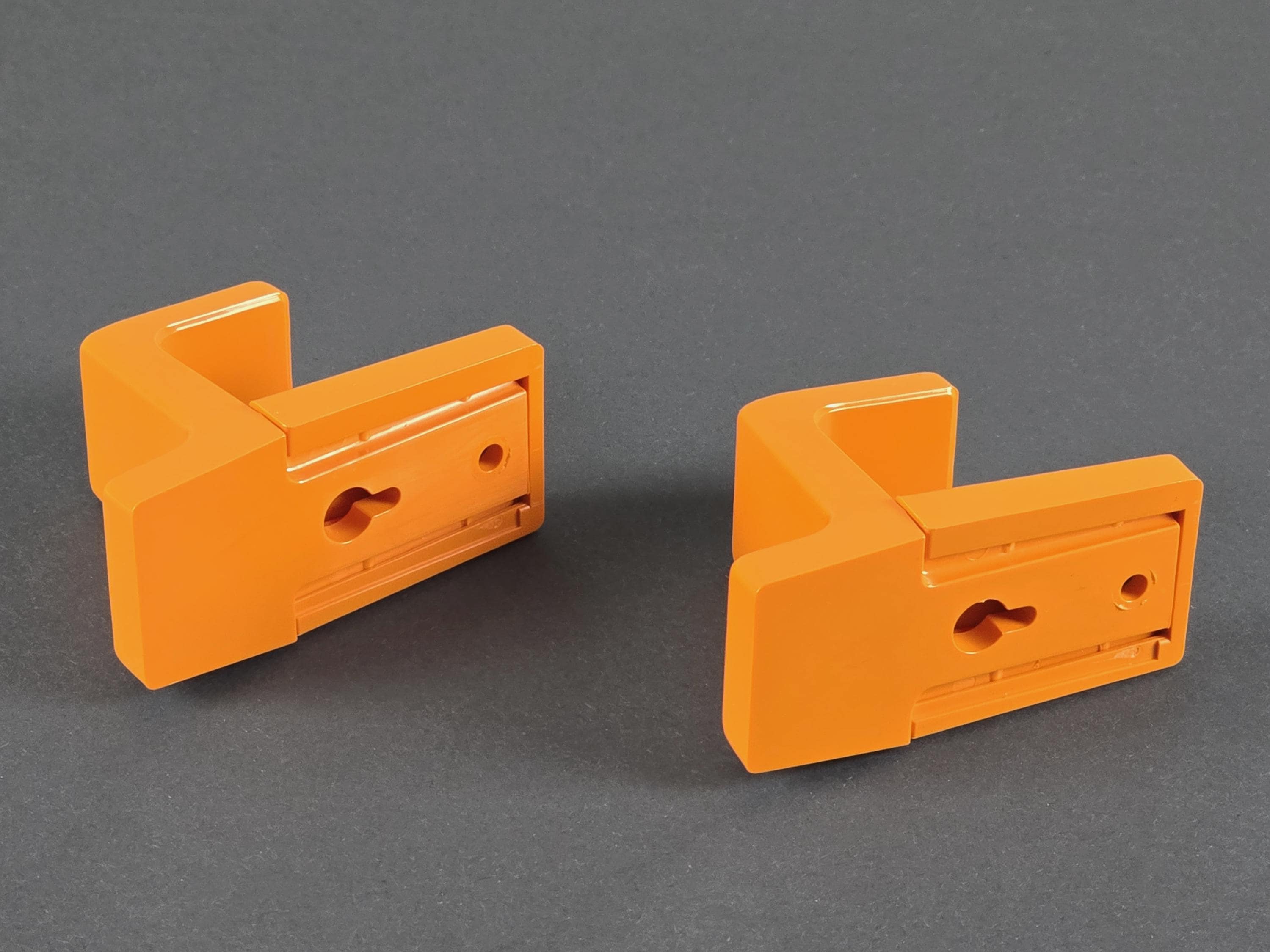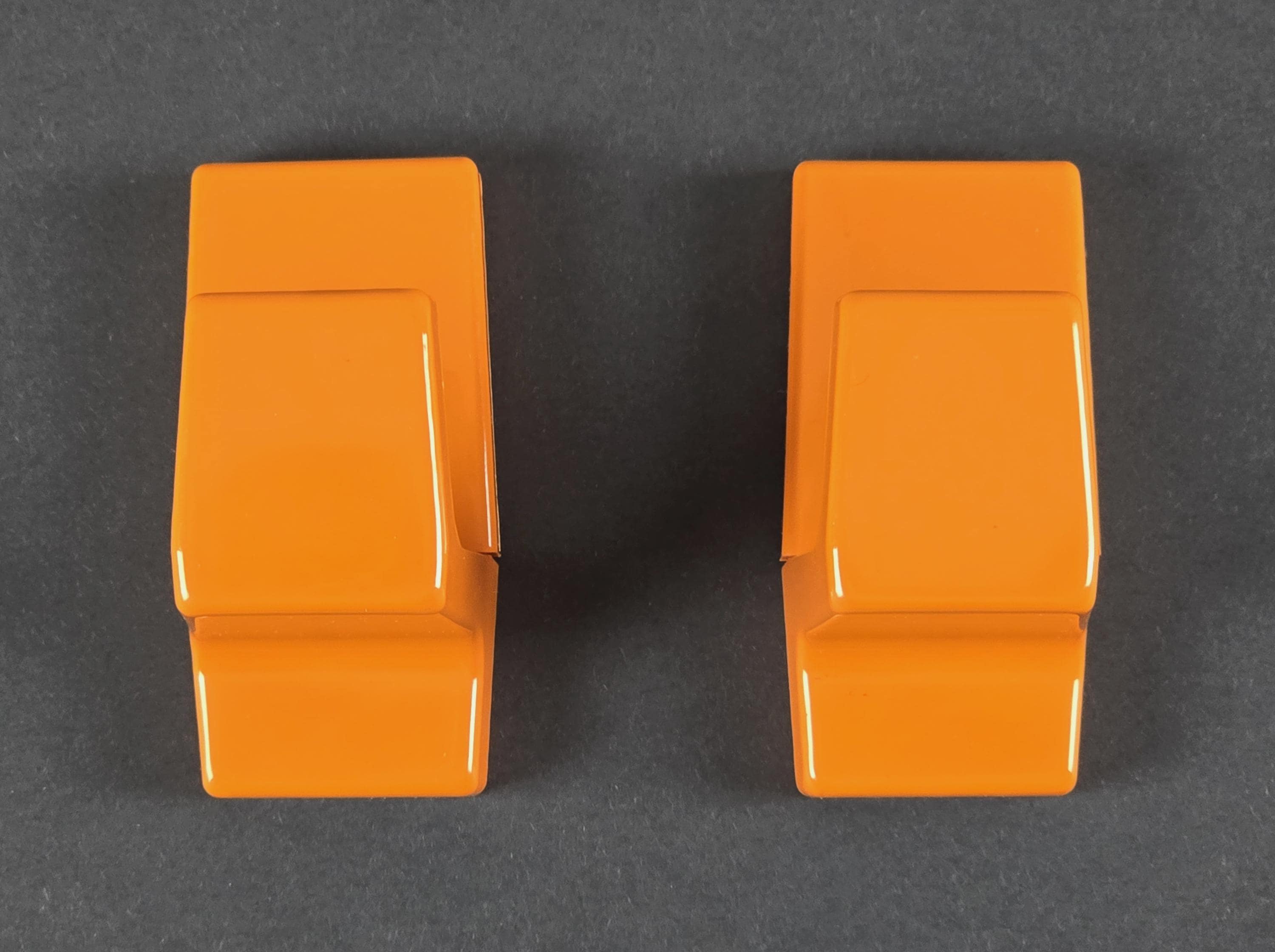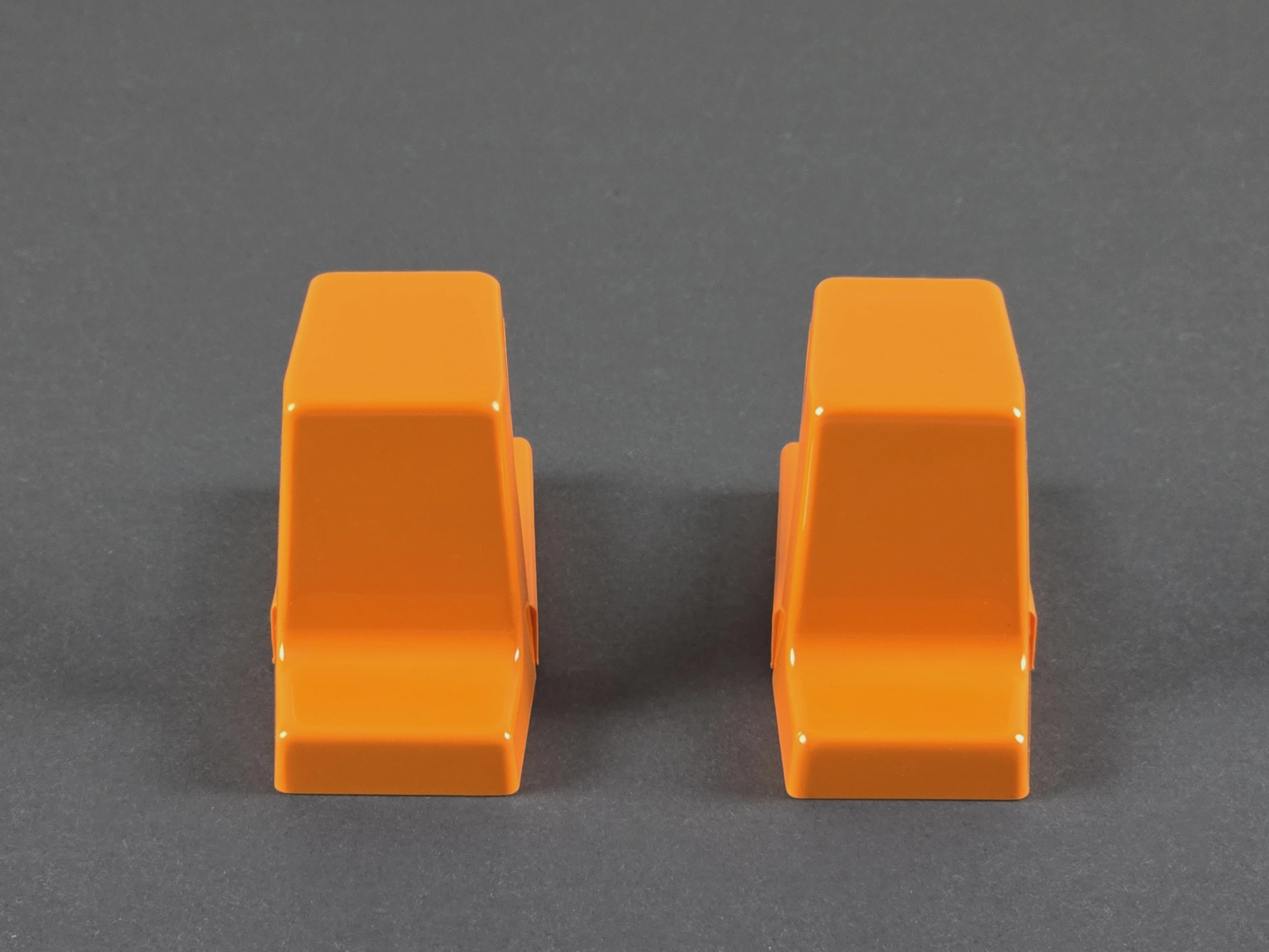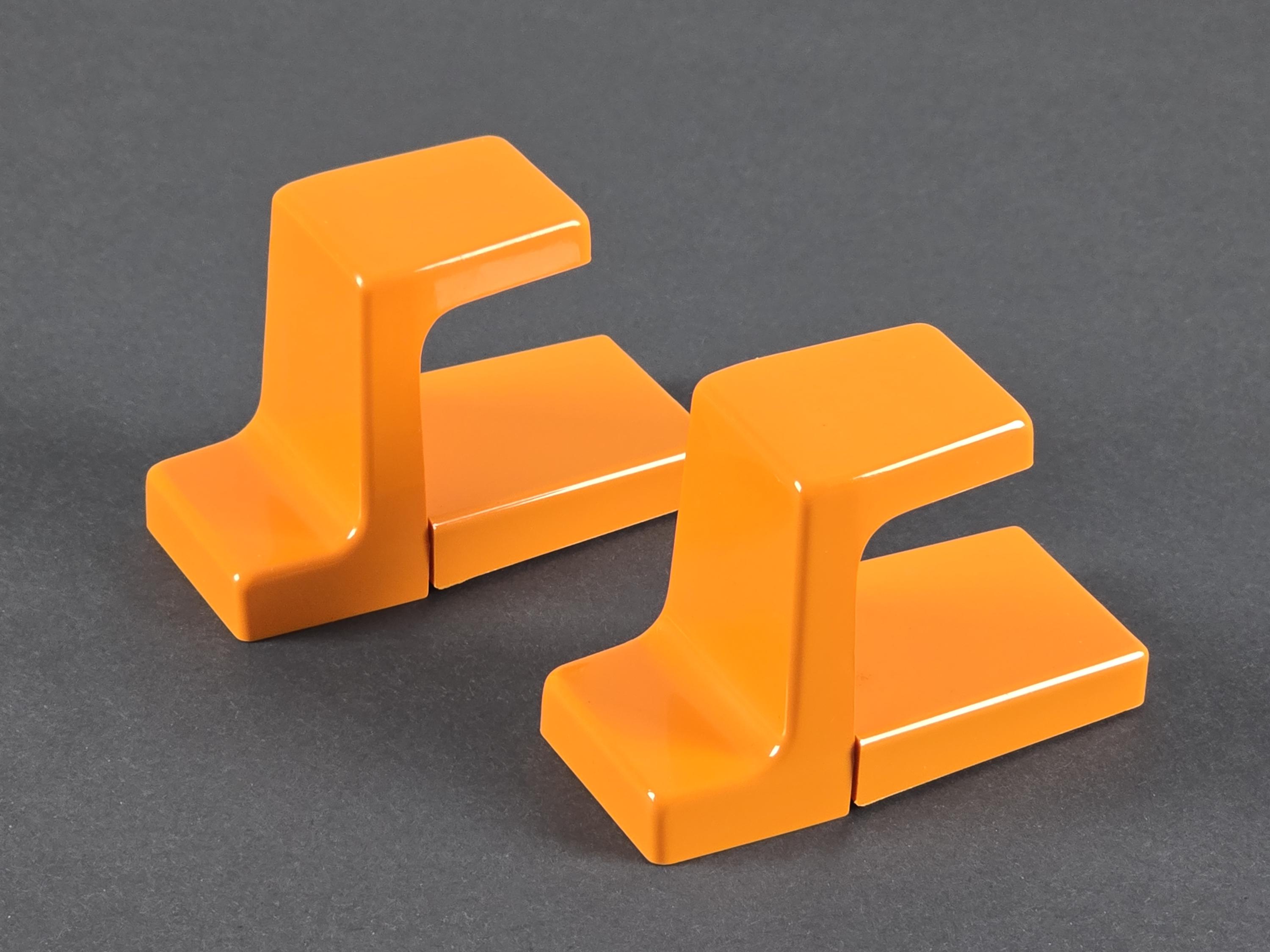 Vintage 1970s Set Of 2 ALLIBERT Serie Europa Orange Plastic Wall Hooks.