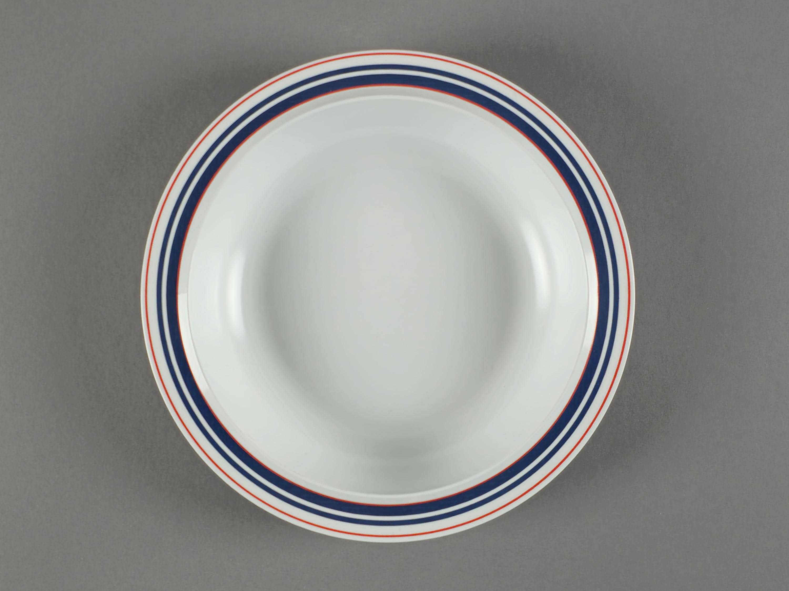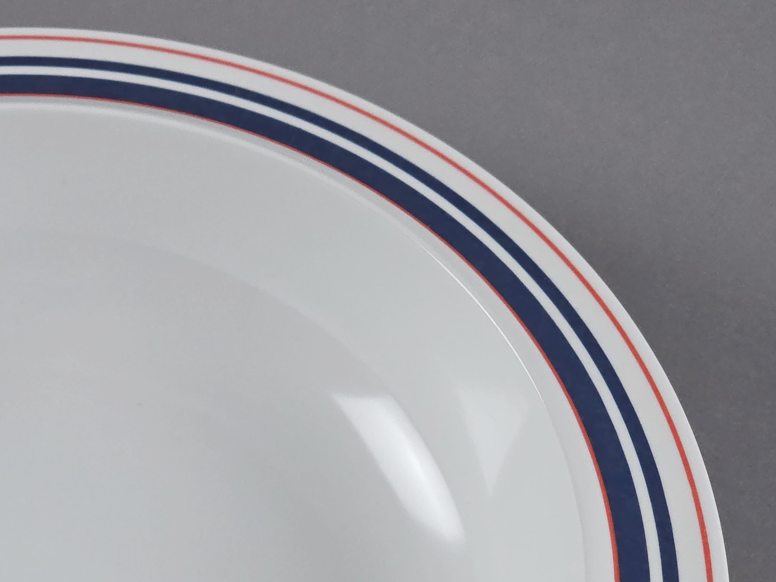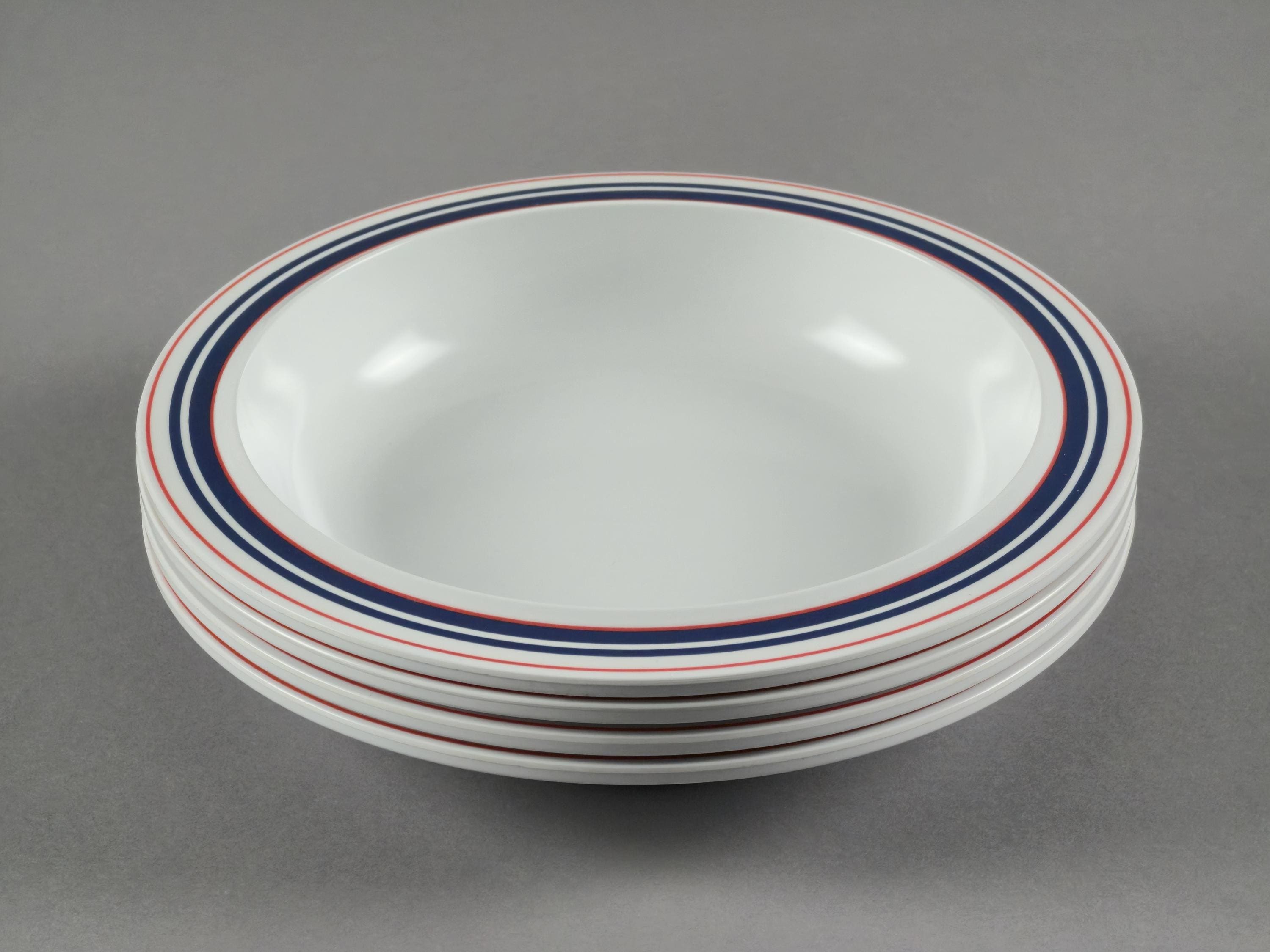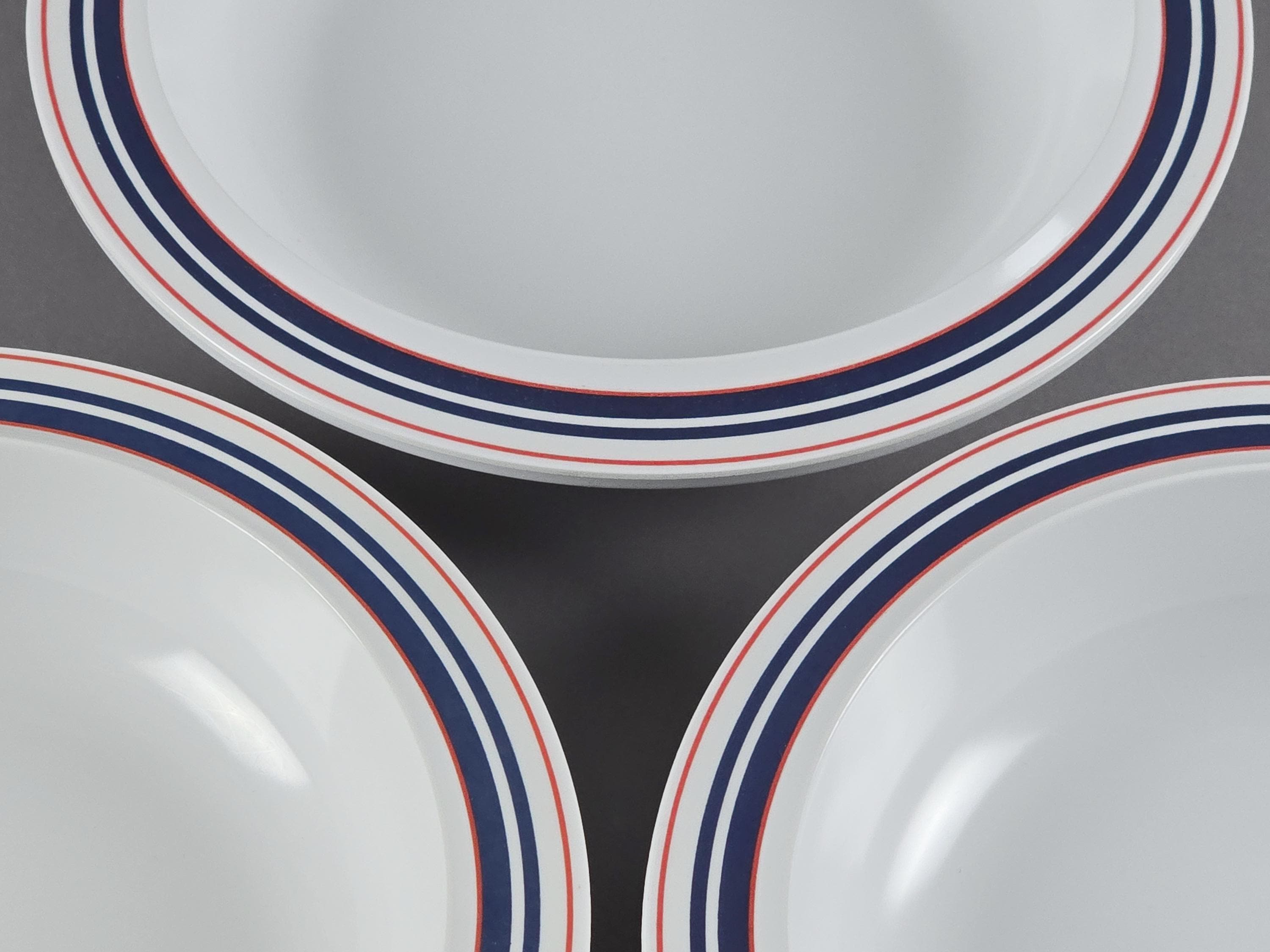 New old stock 1970s vintage set of 4 striped melamine plates by Koen De Winter for Mepal Holland.