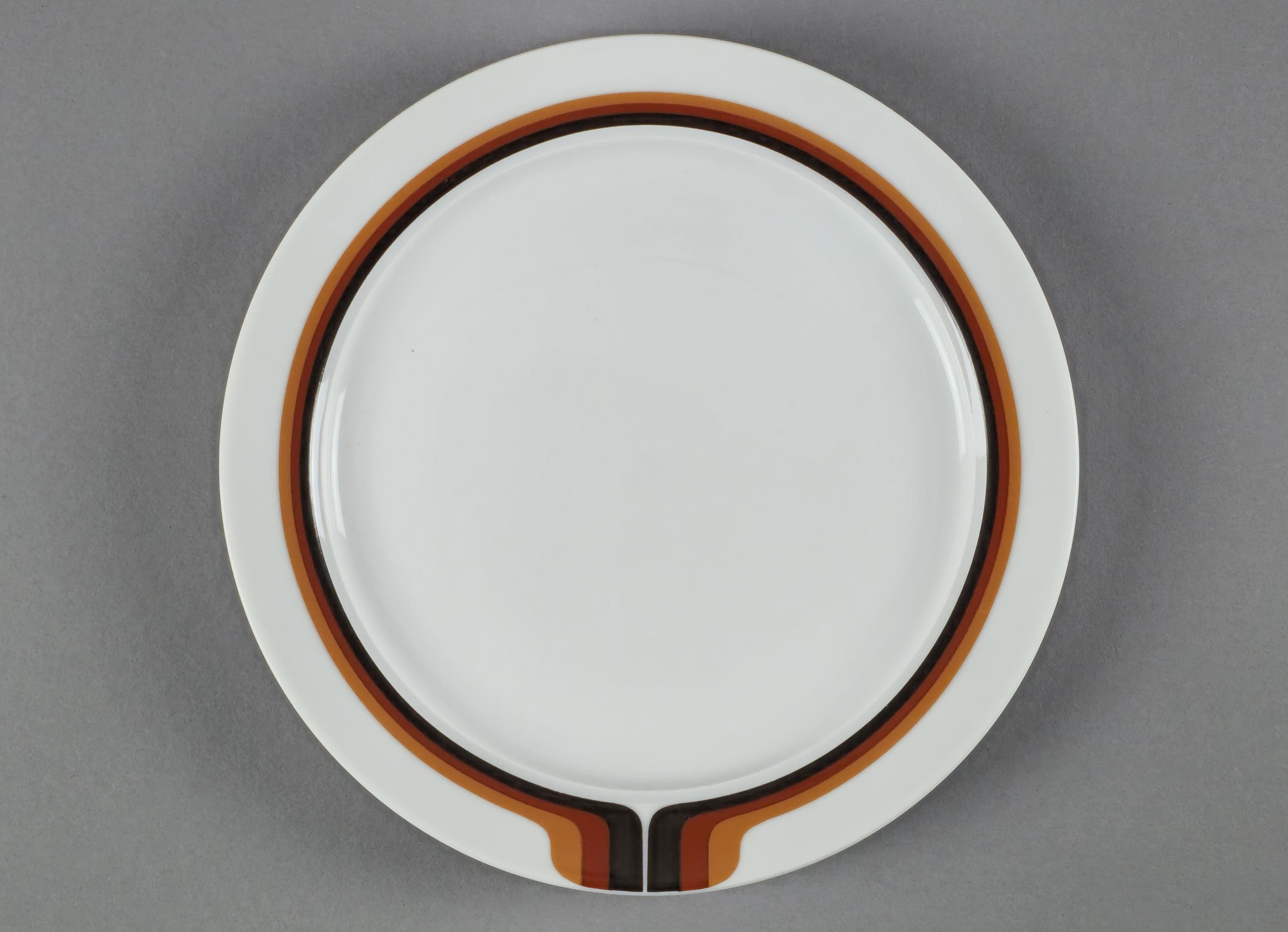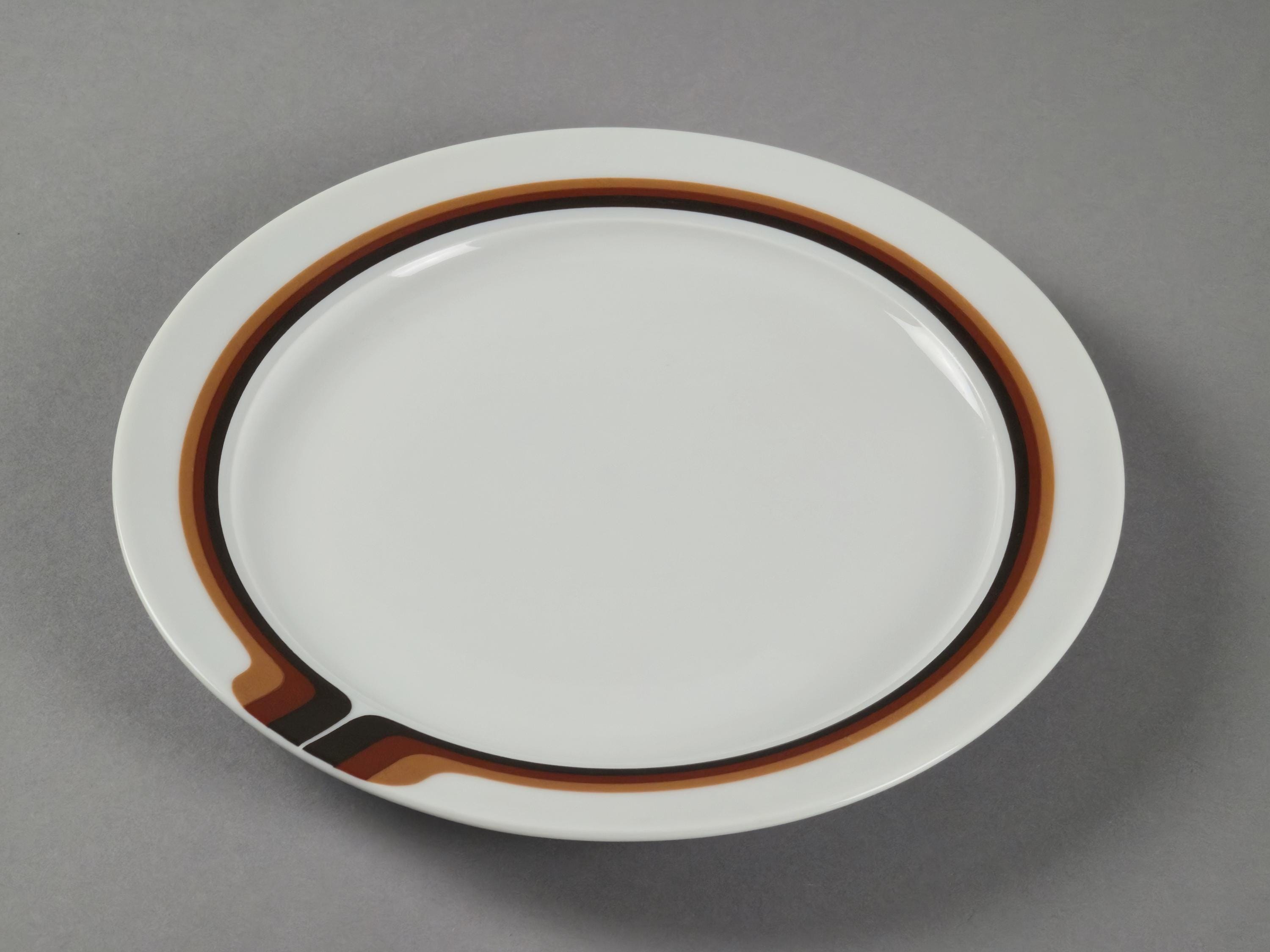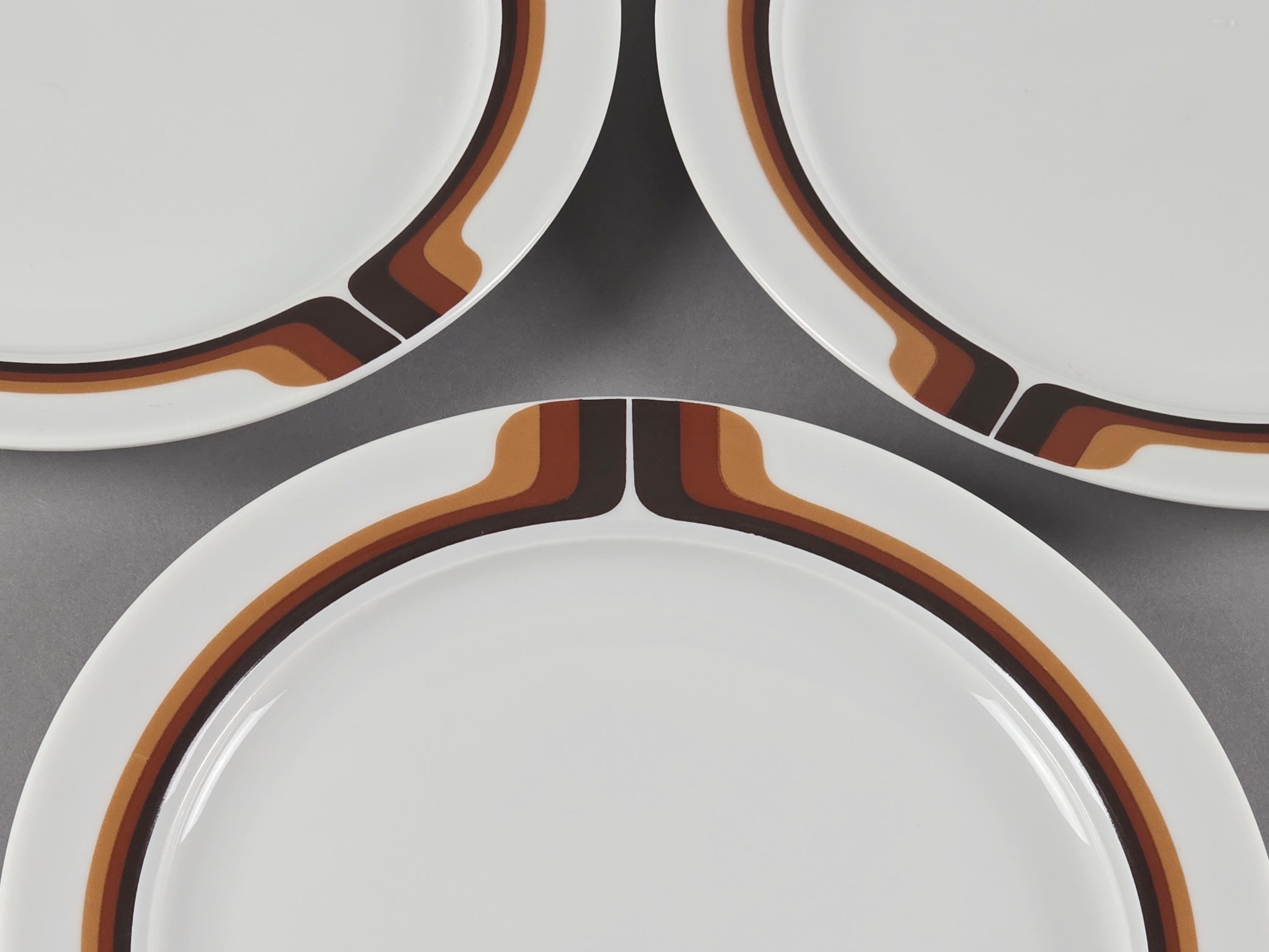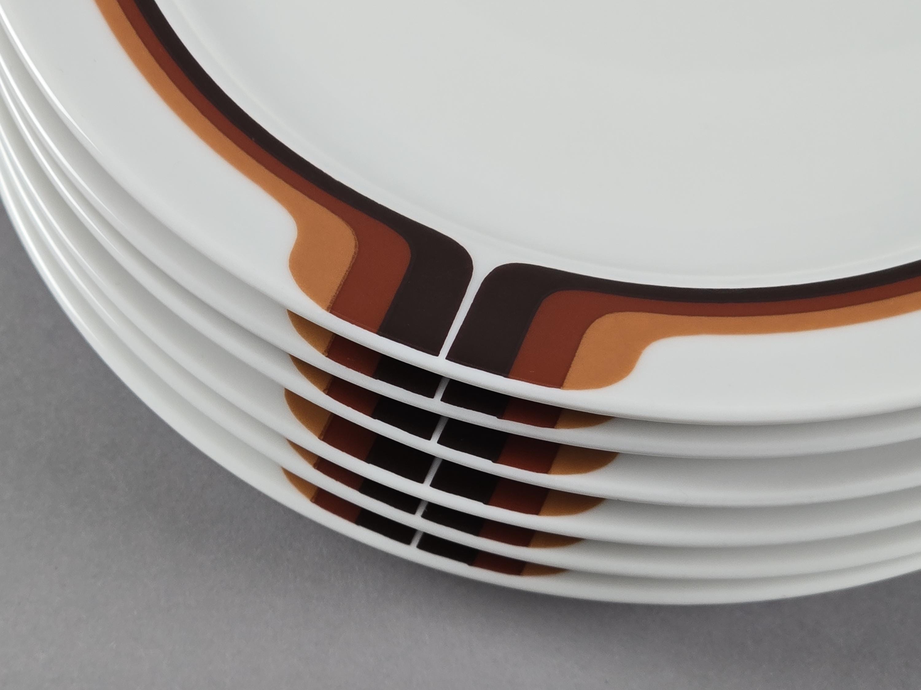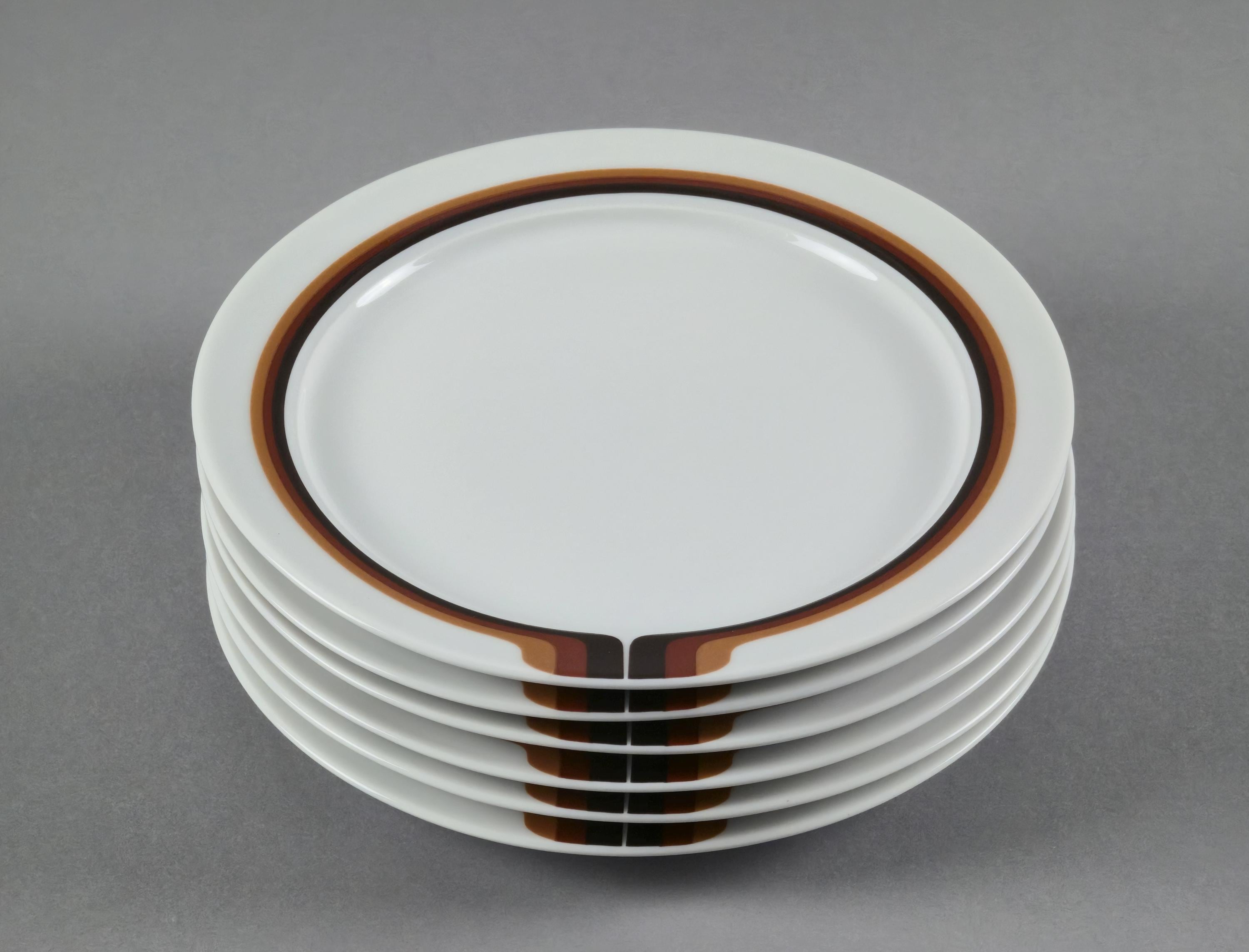 New old stock set of 6 vintage ceramic striped plates from the 1970s by Eschenbach Bavaria.