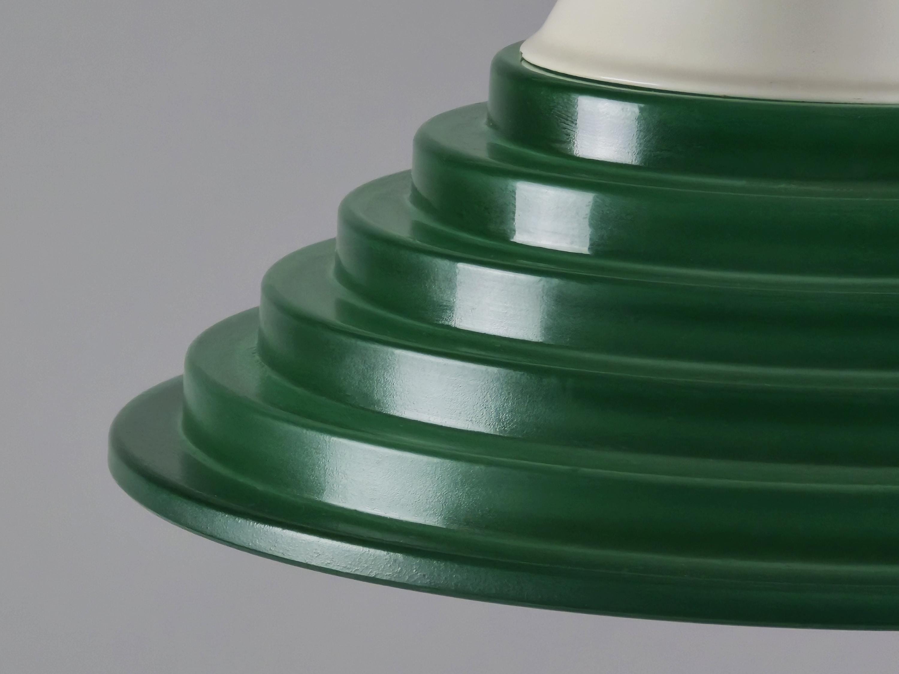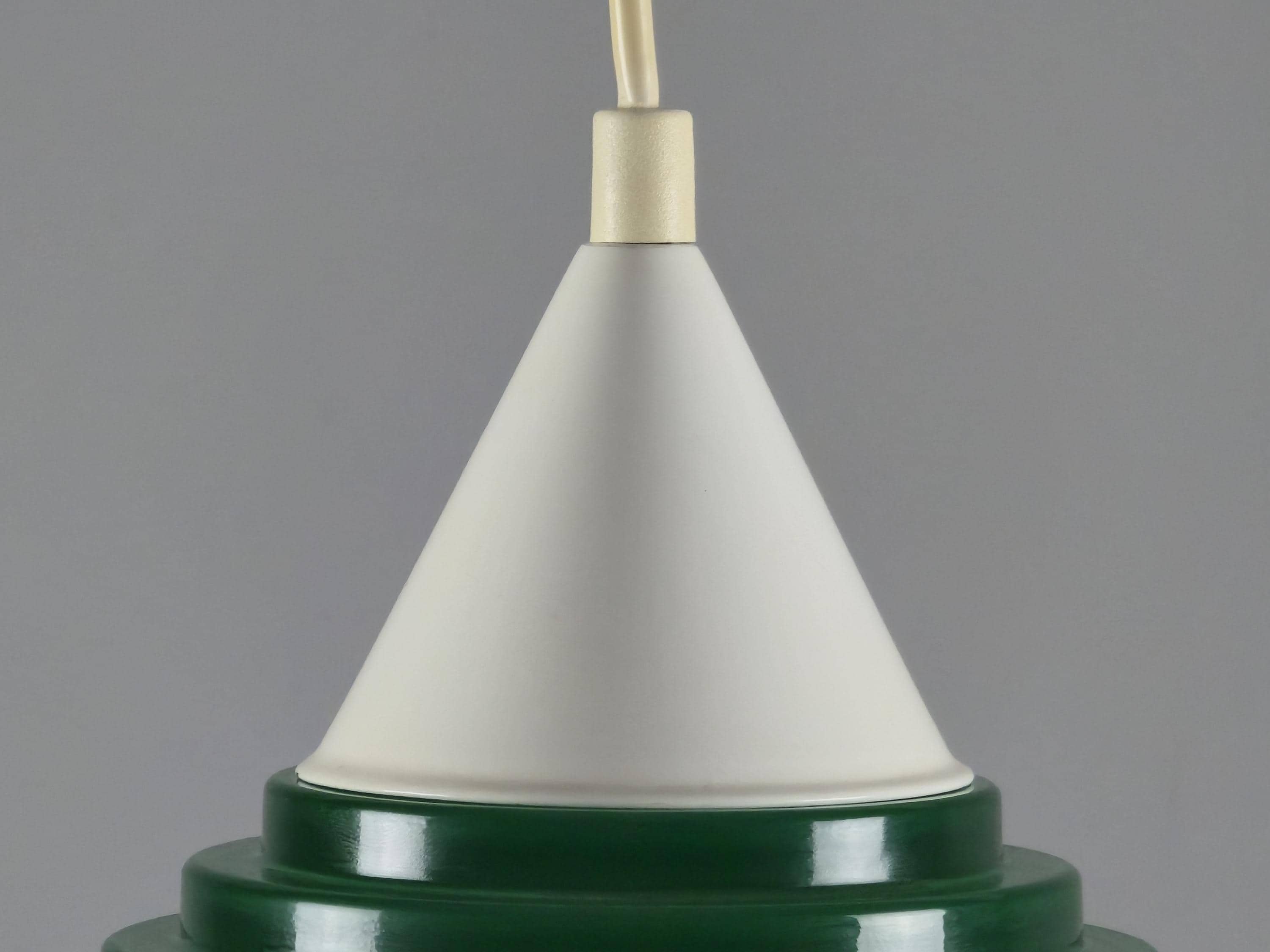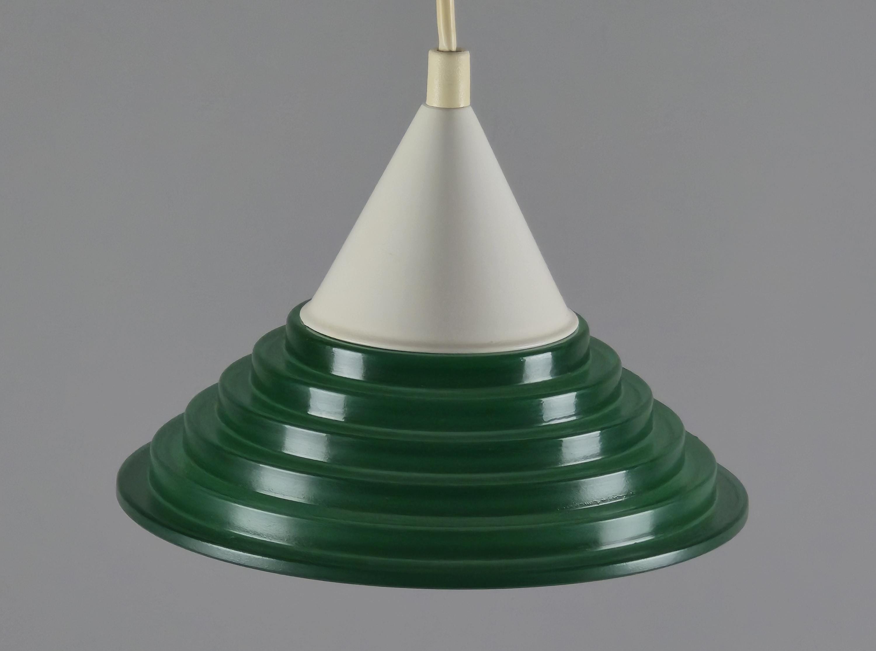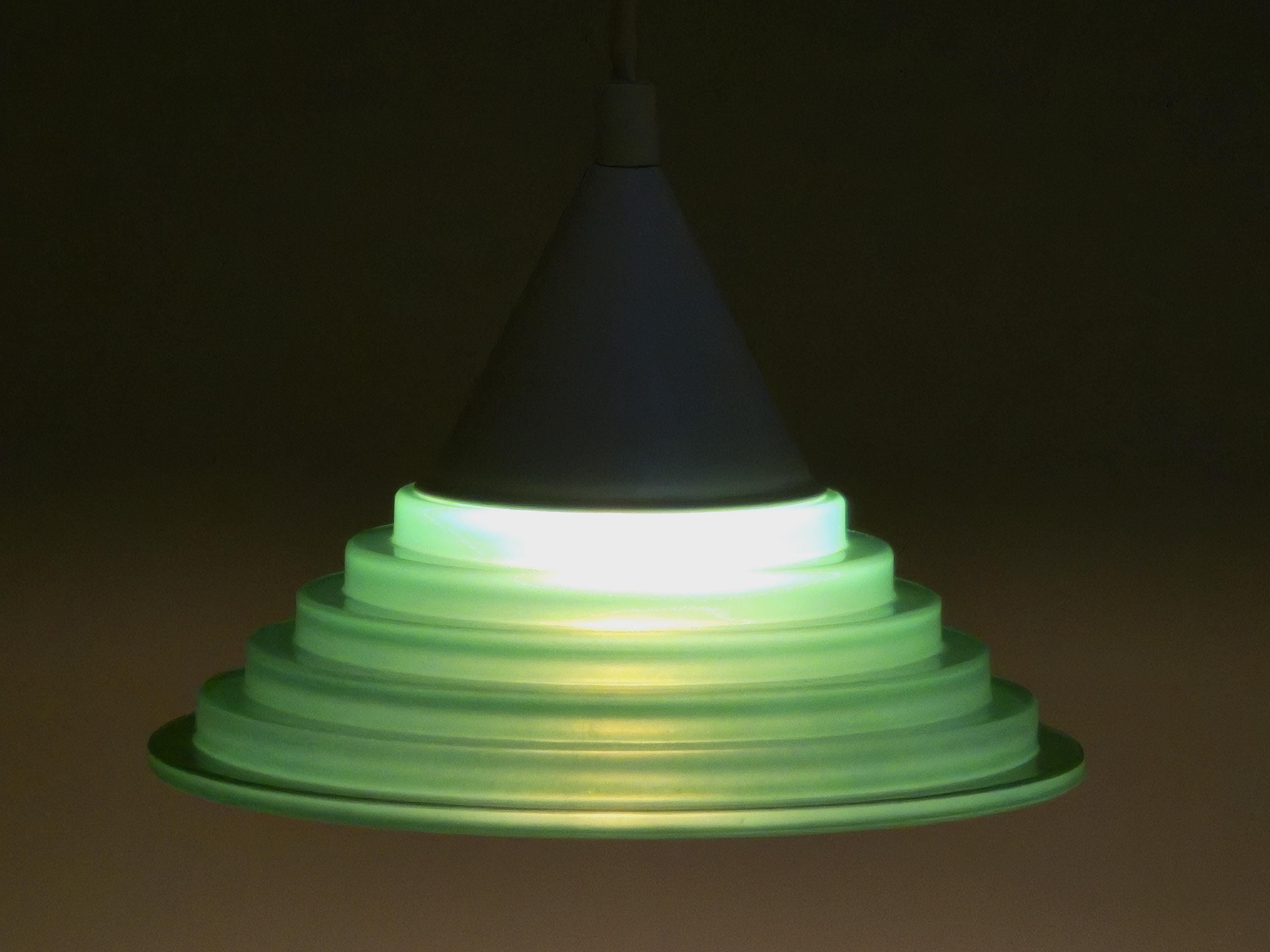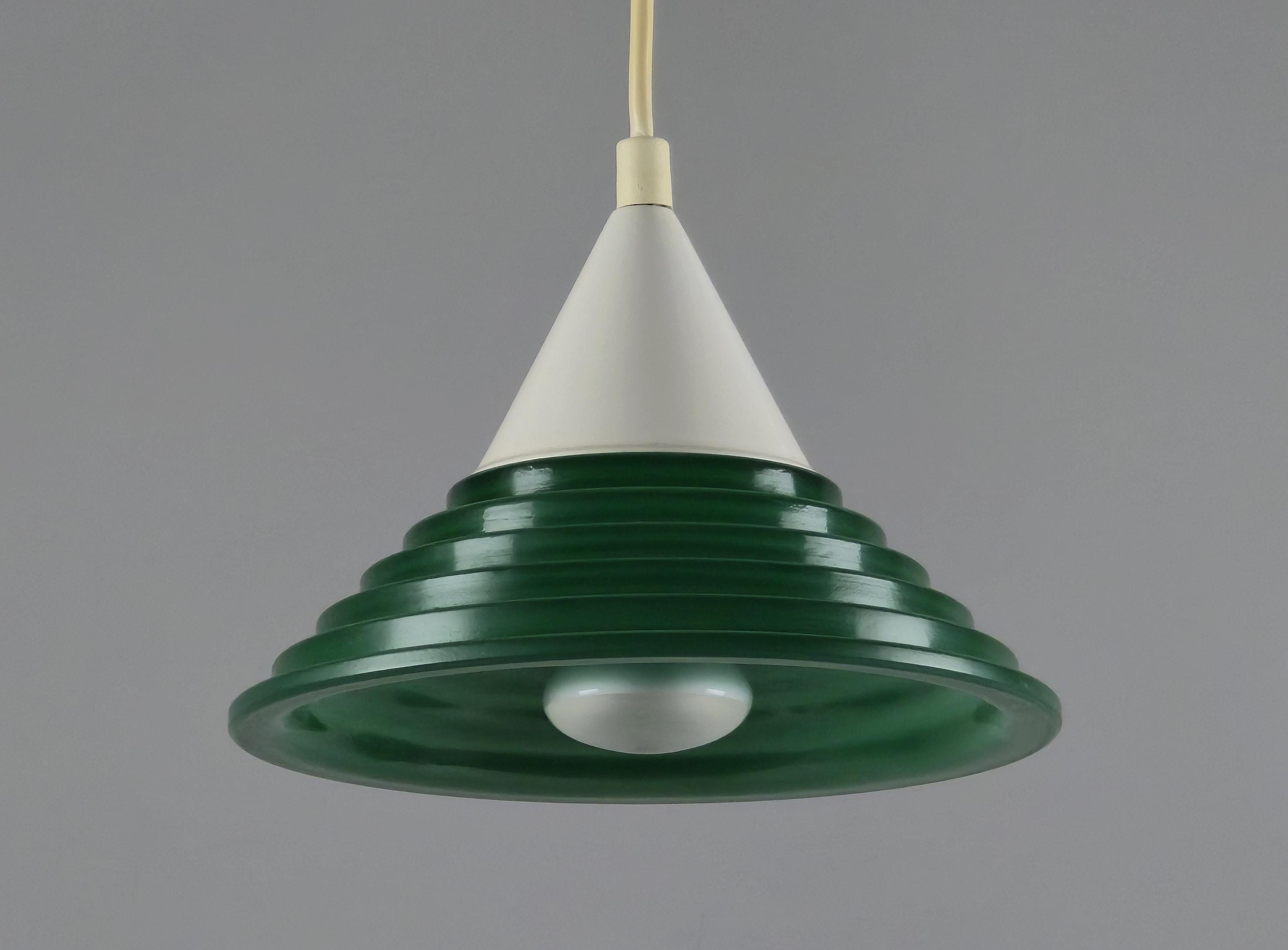 Beautiful vintage 1980s postmodern green glass pendant light with a stacked design.