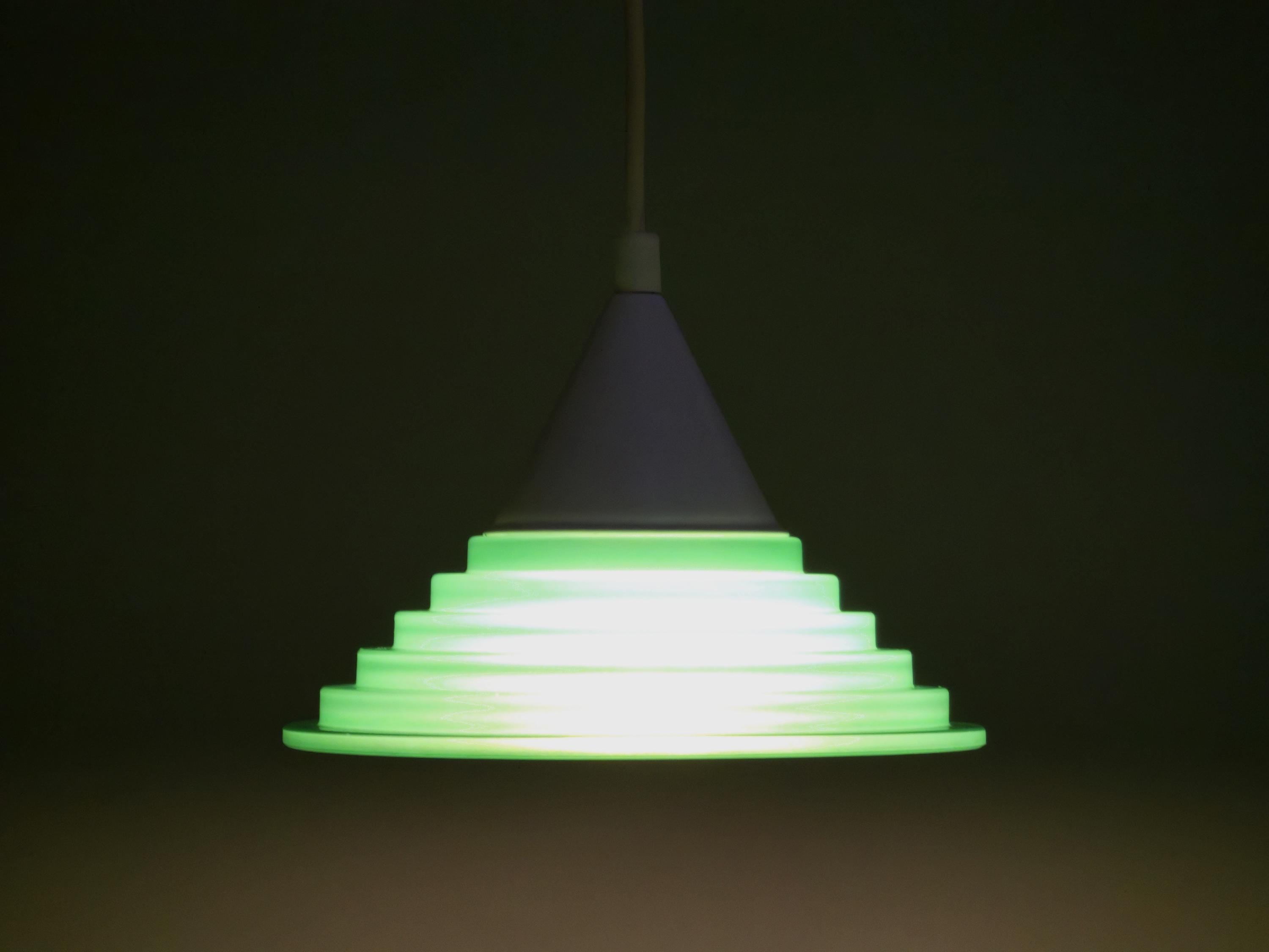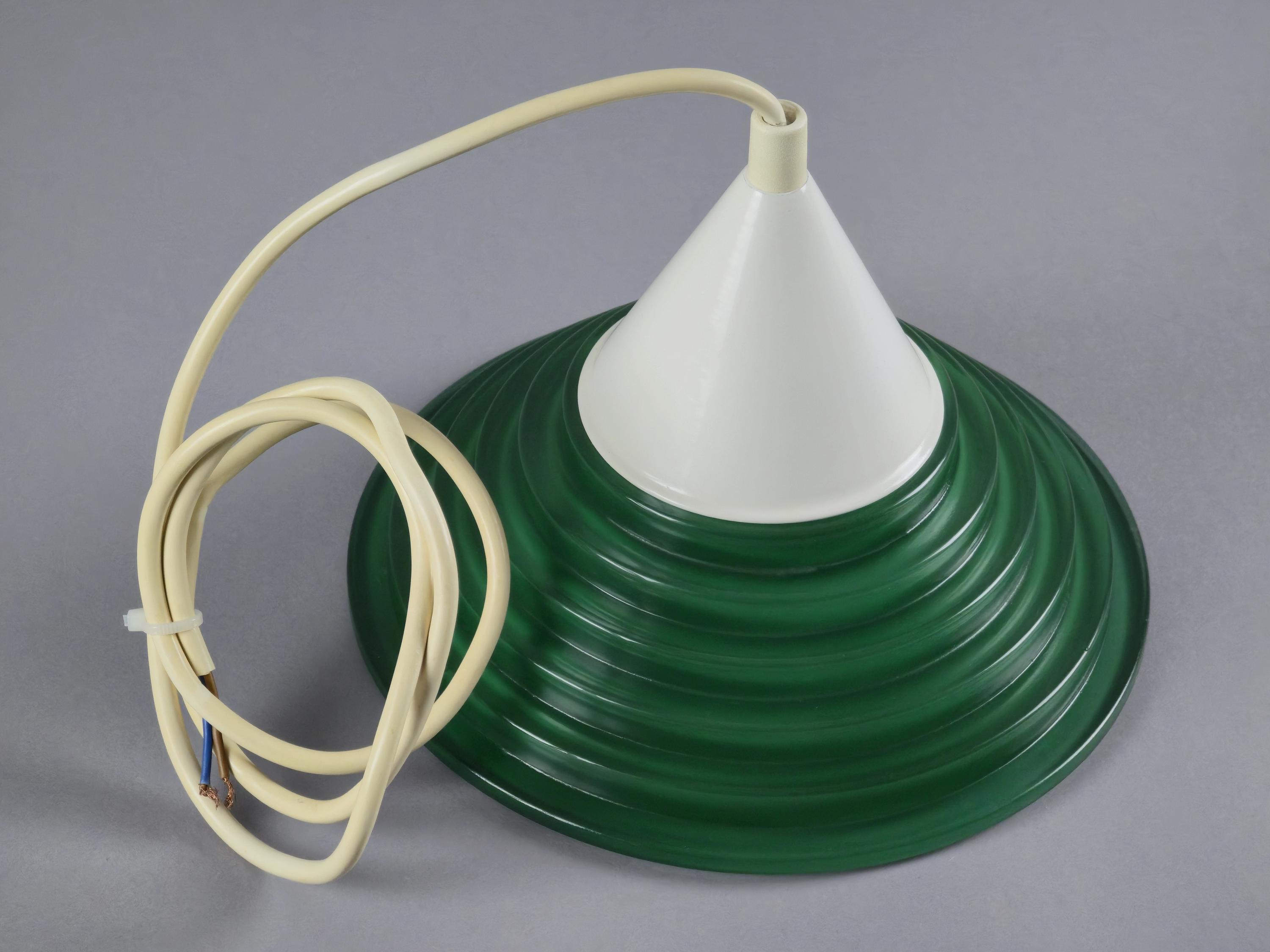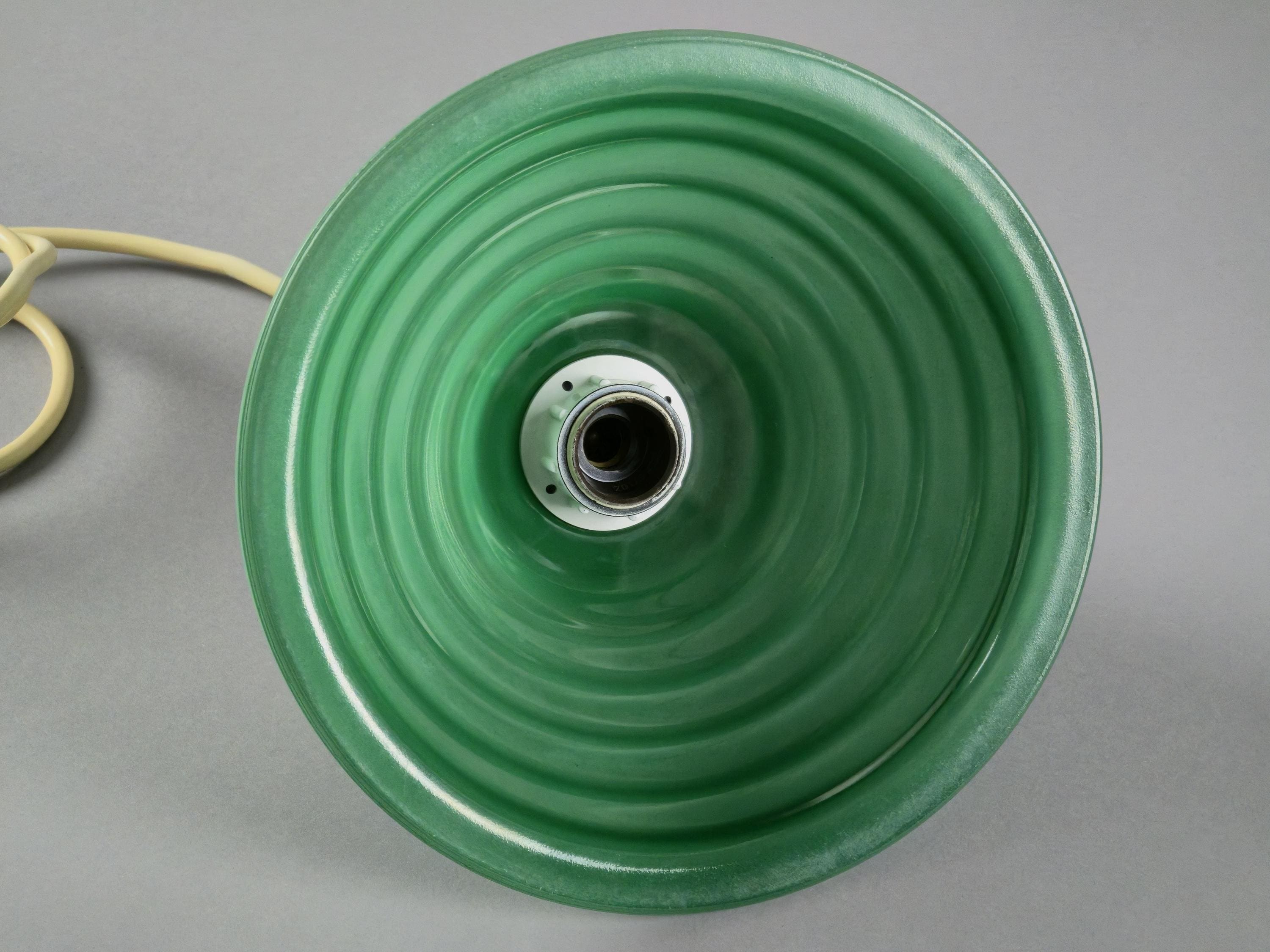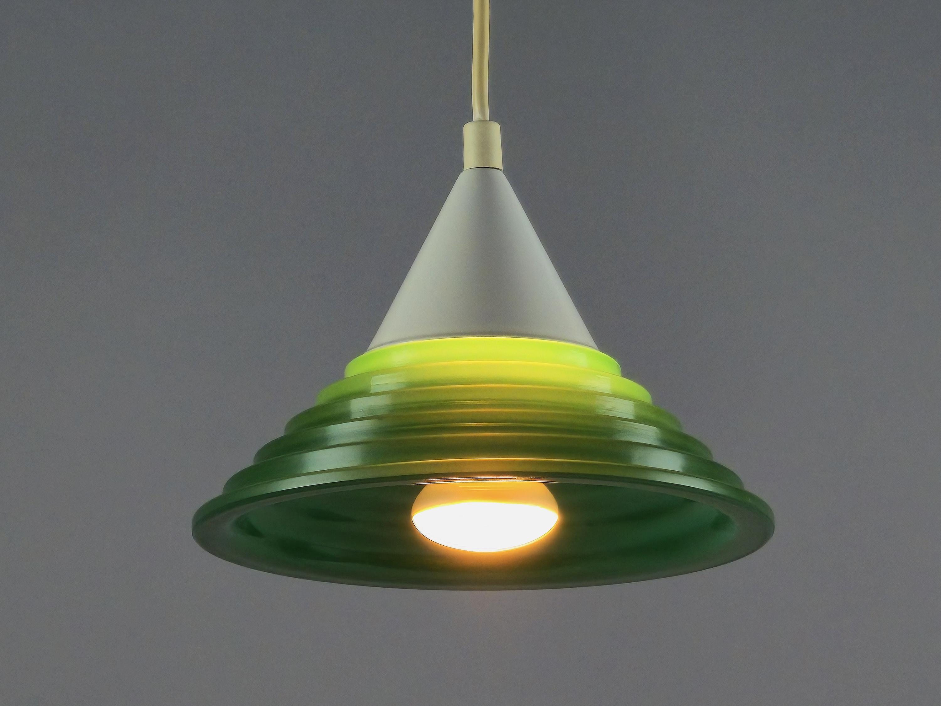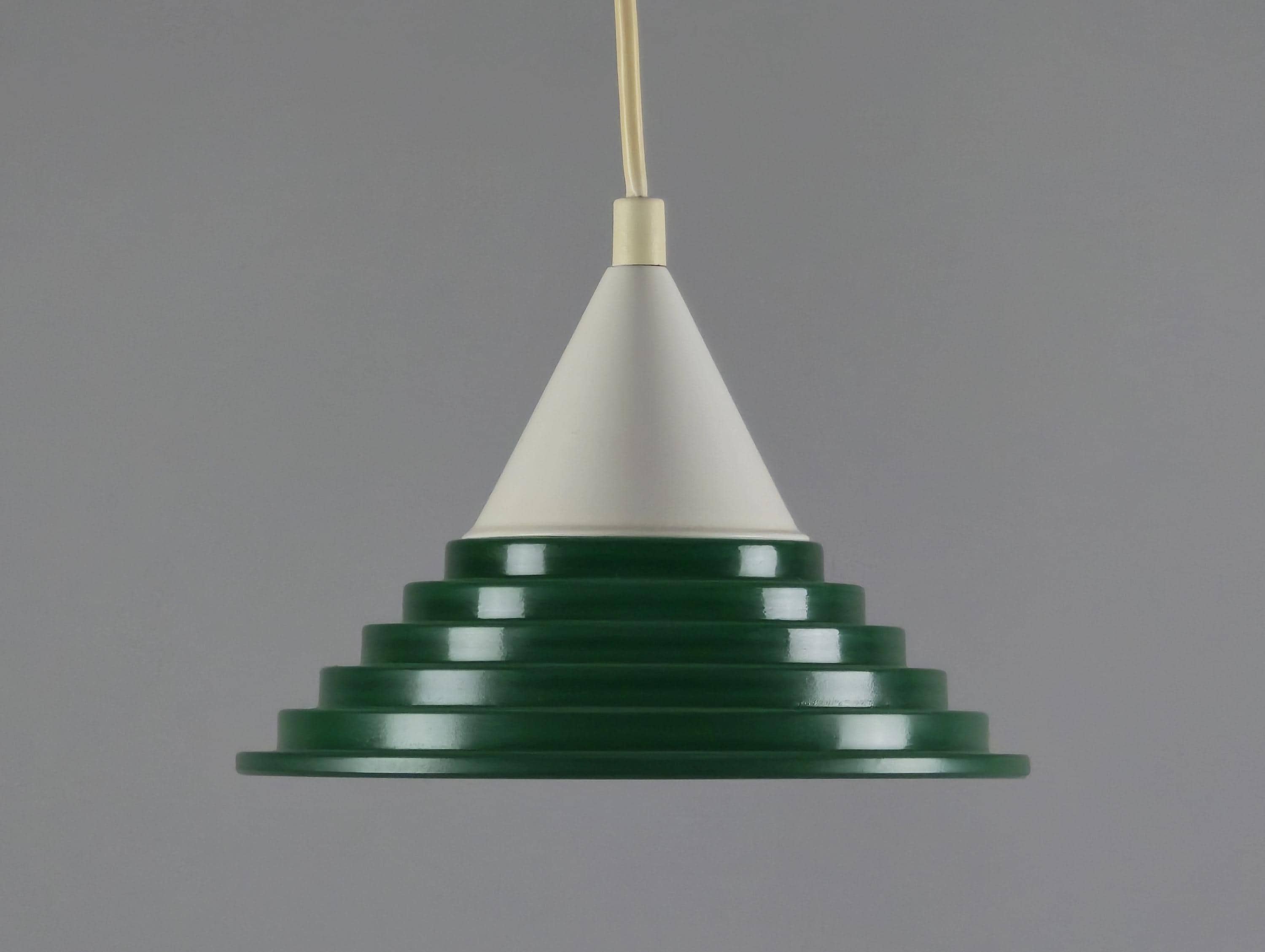 Beautiful vintage 1980s postmodern green glass pendant light with a stacked design.