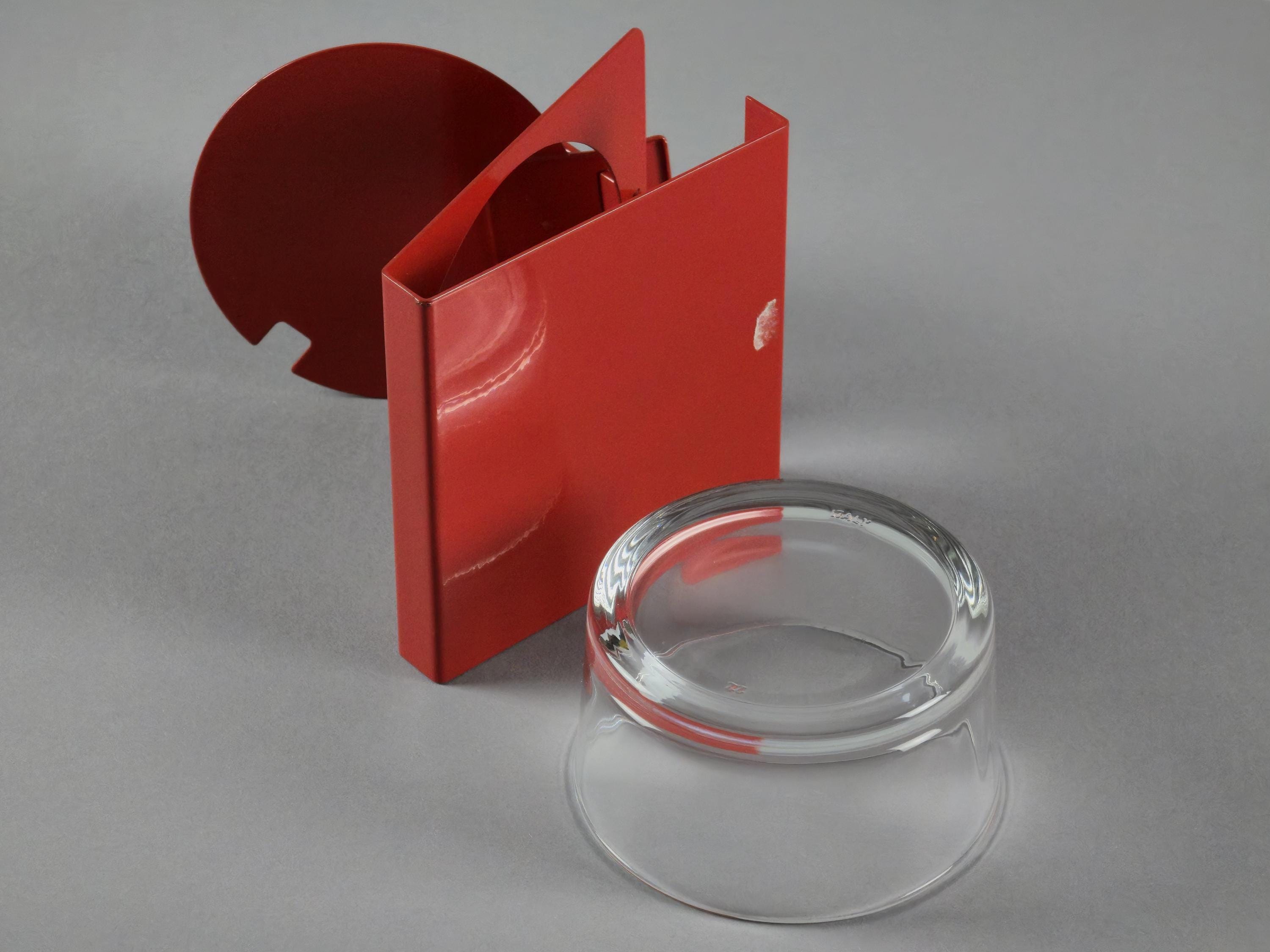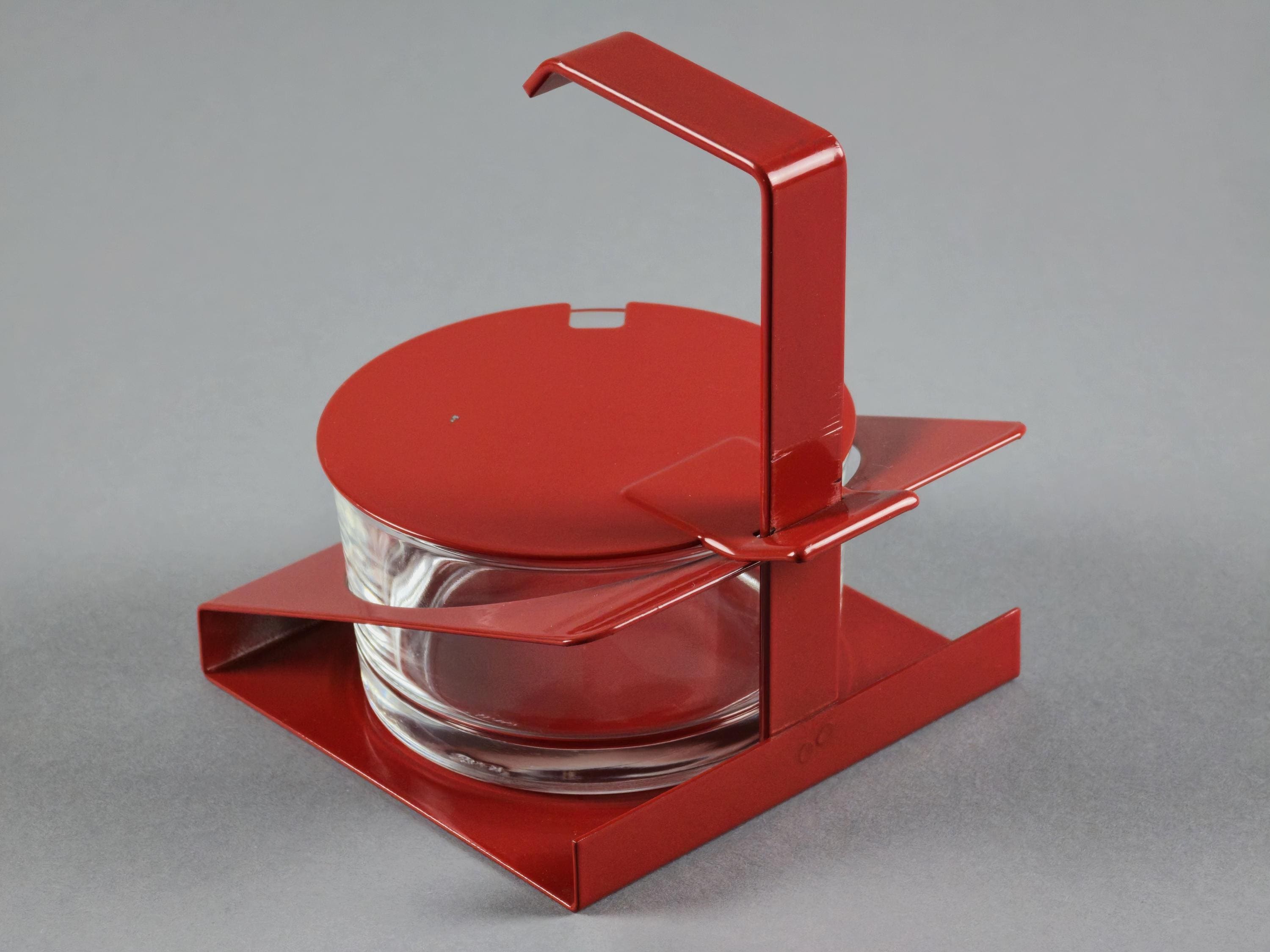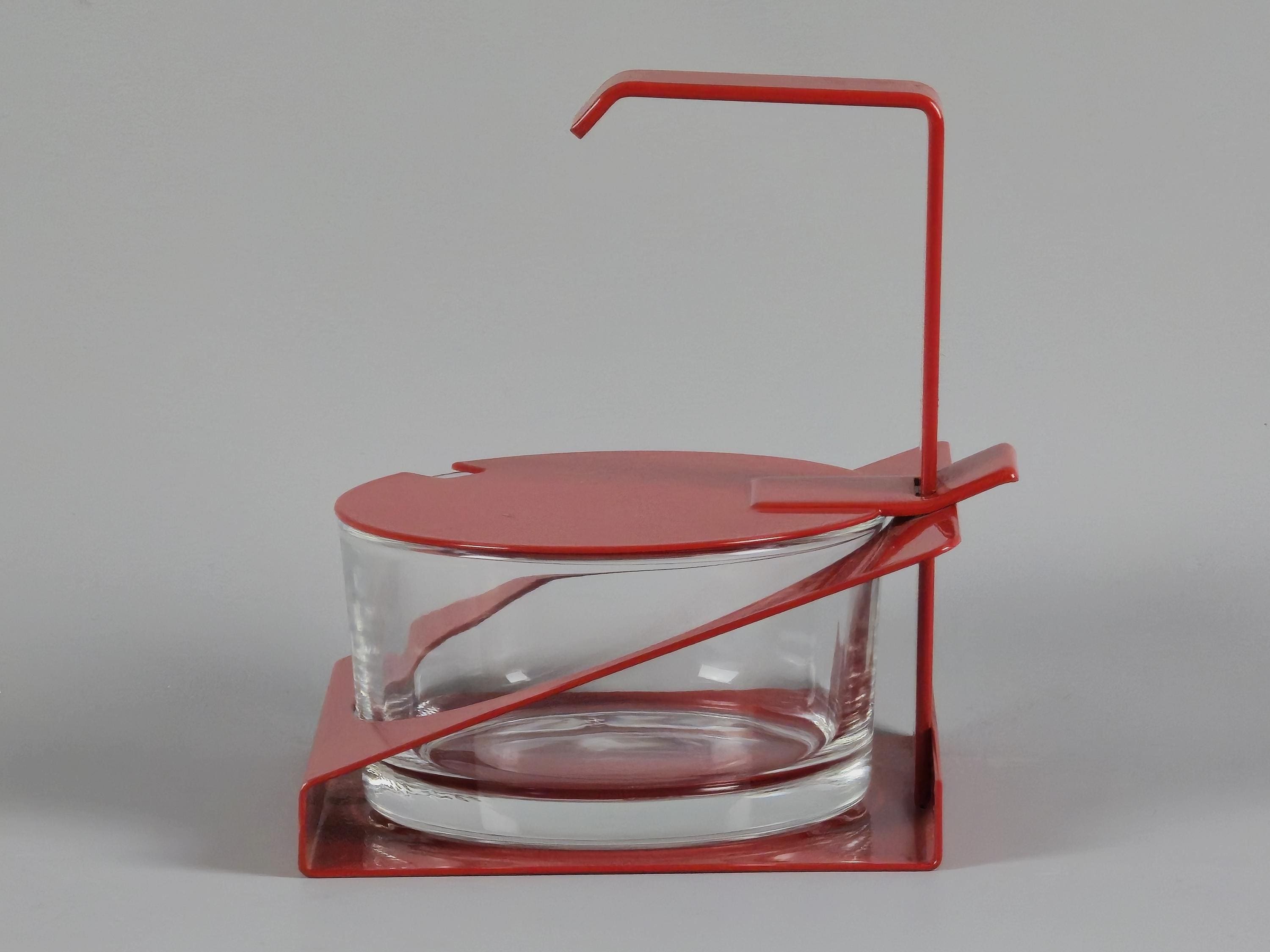 Vintage Italian modernist preserve jar, cheese keeper with red lacquered cover case 'Derby' by Abert.