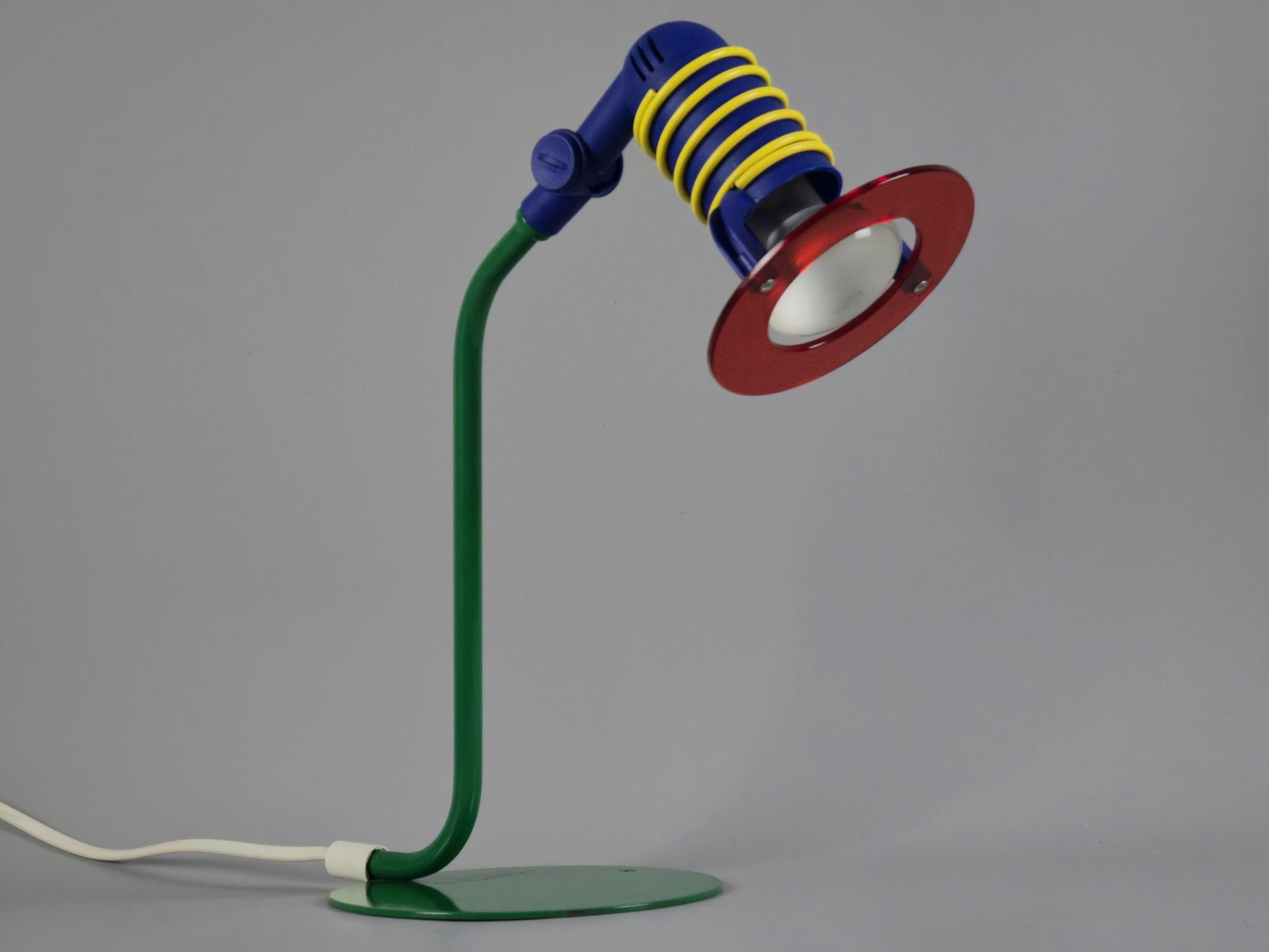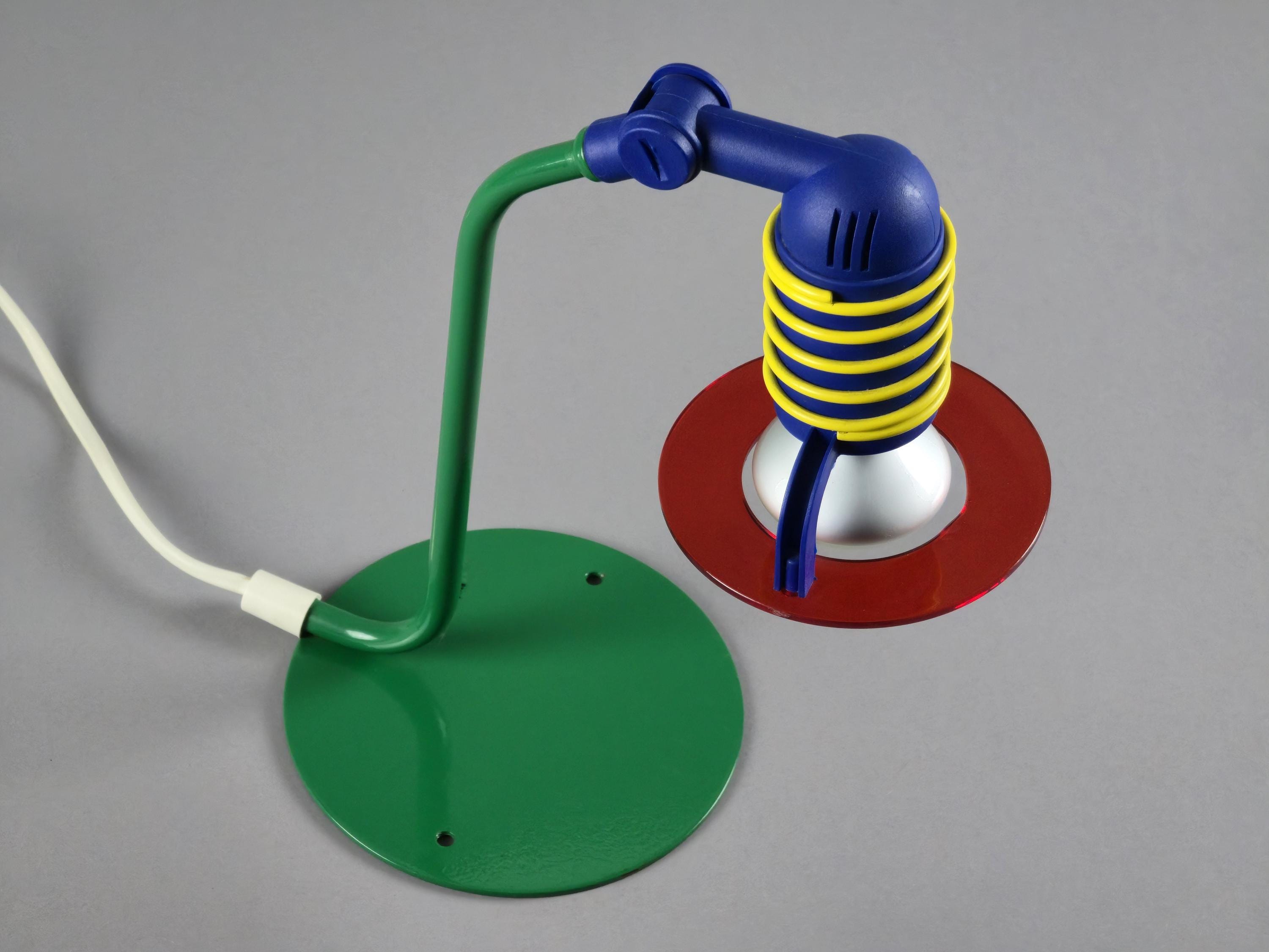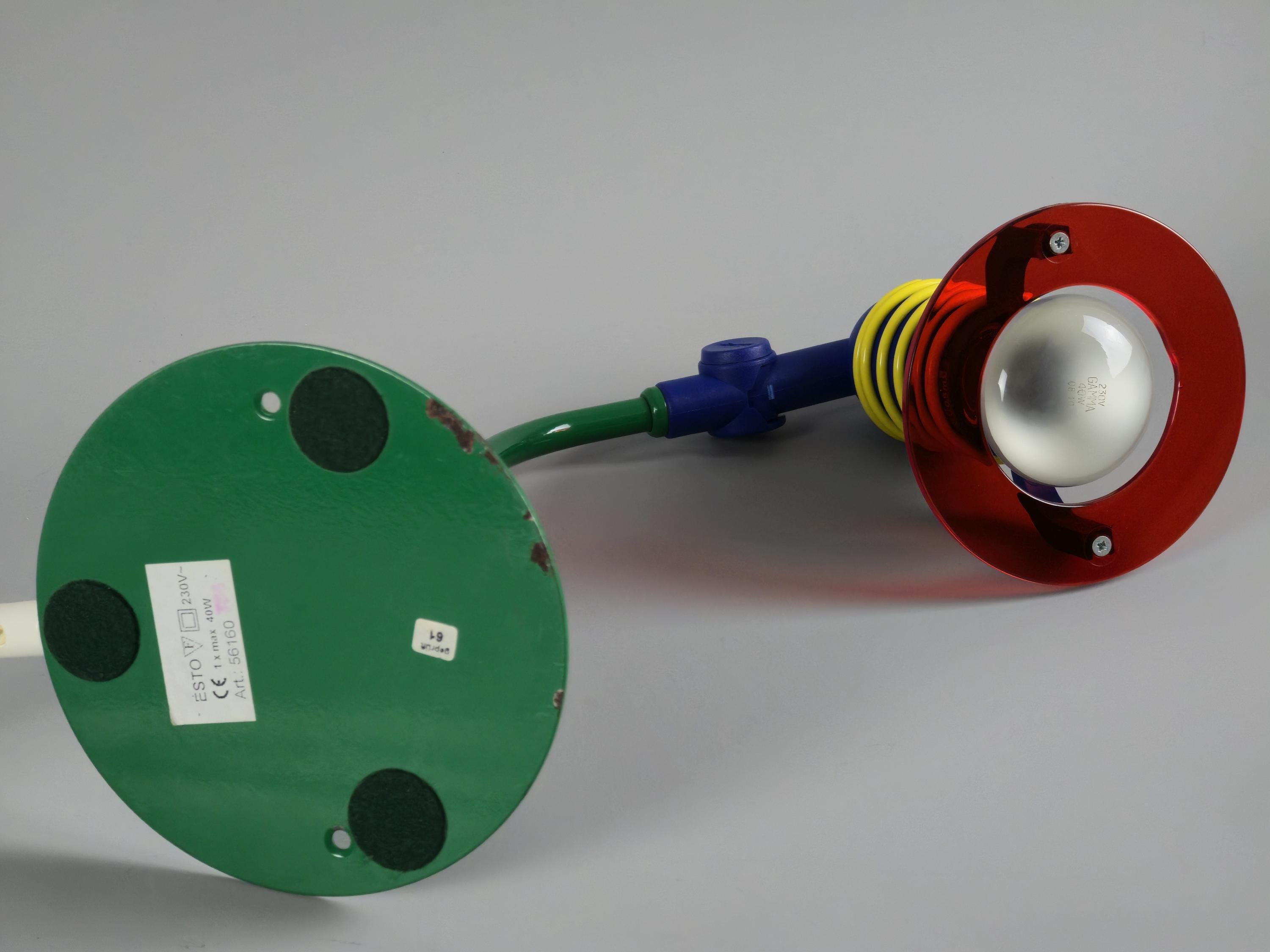 Vintage 1990s postmodern table lamp with a spiral design by ESTO. The design is strongly reminiscent of the Memphis Group style from the 1980s, known for its bright colors and geometric shapes.