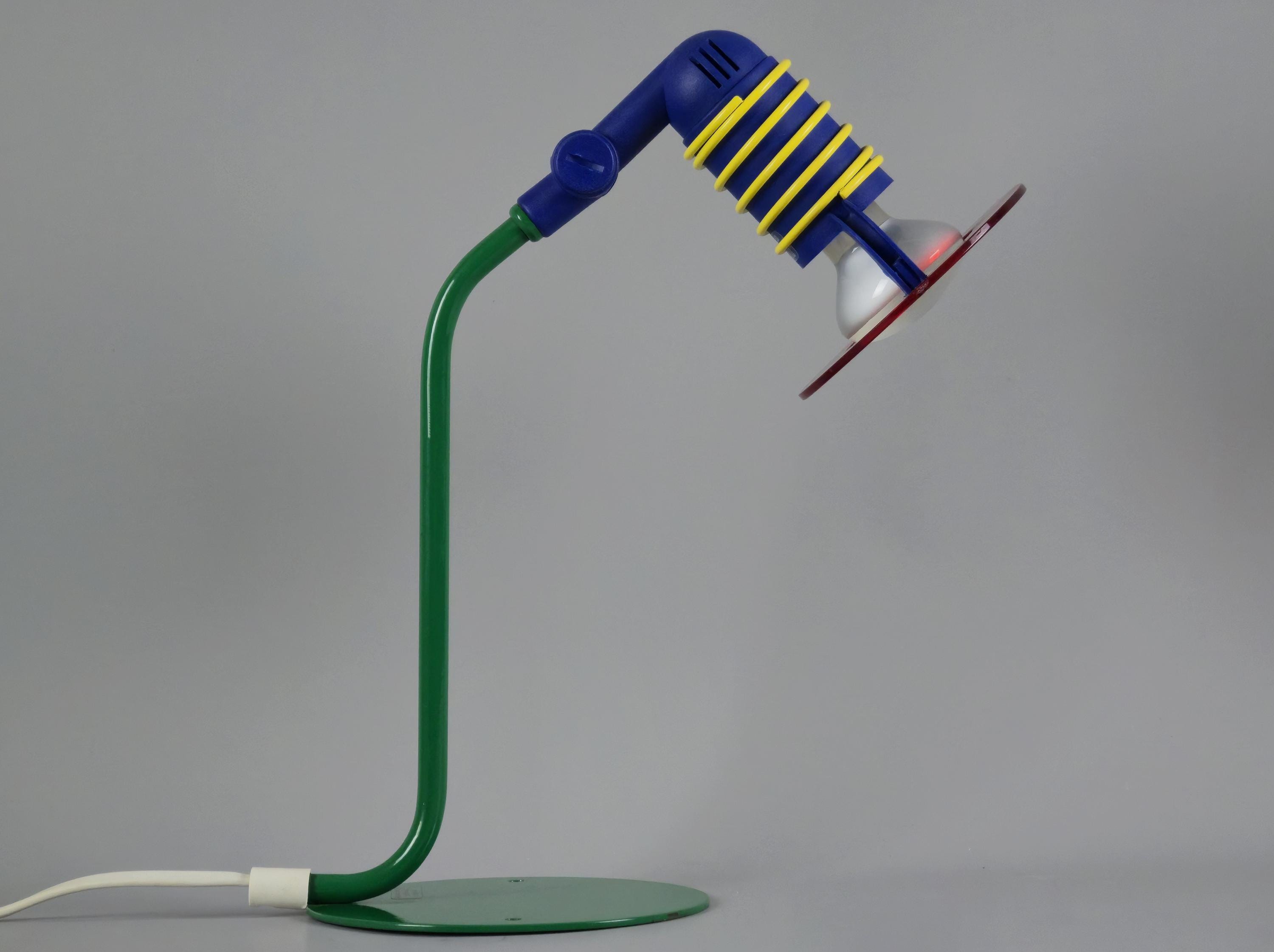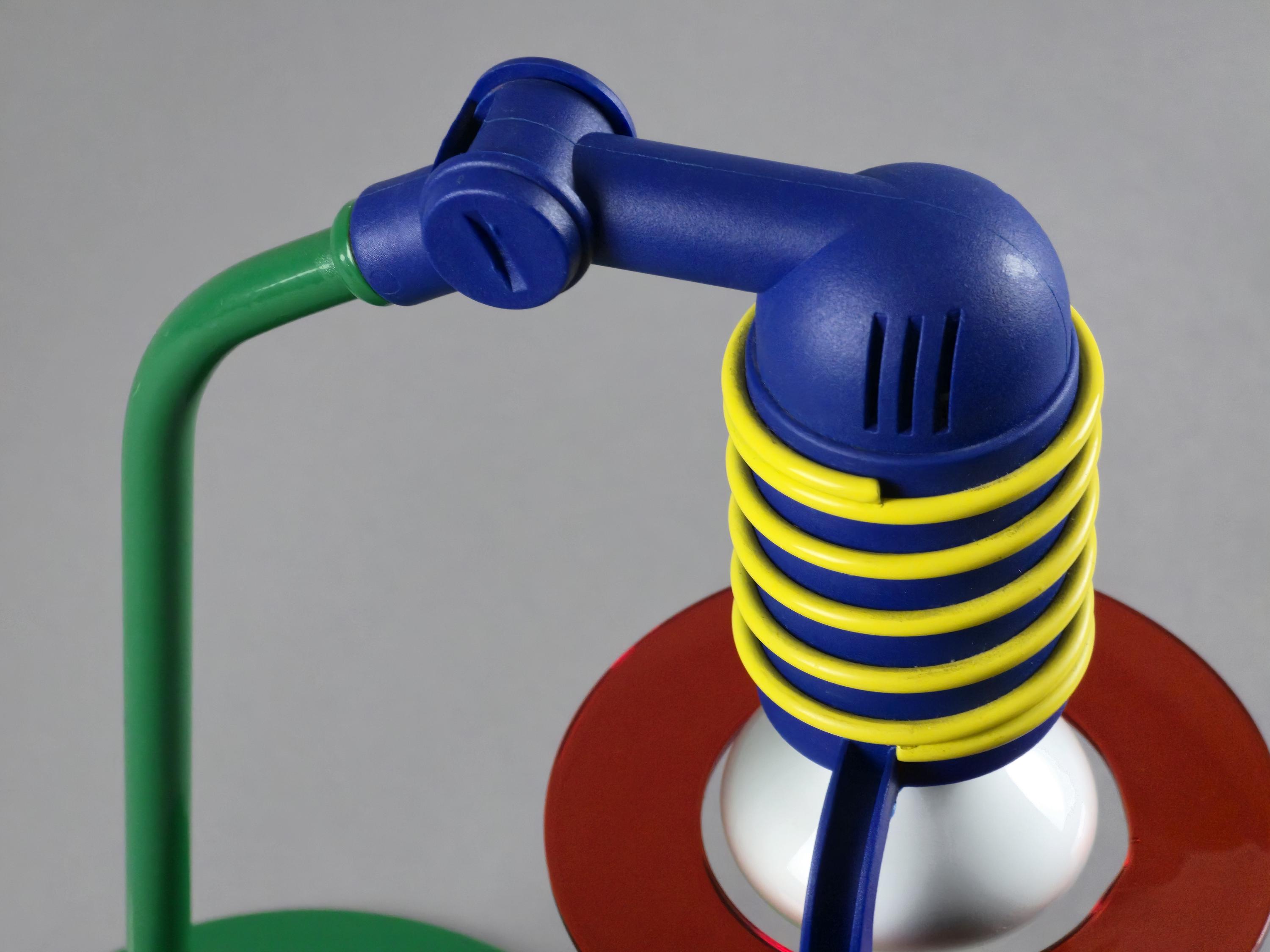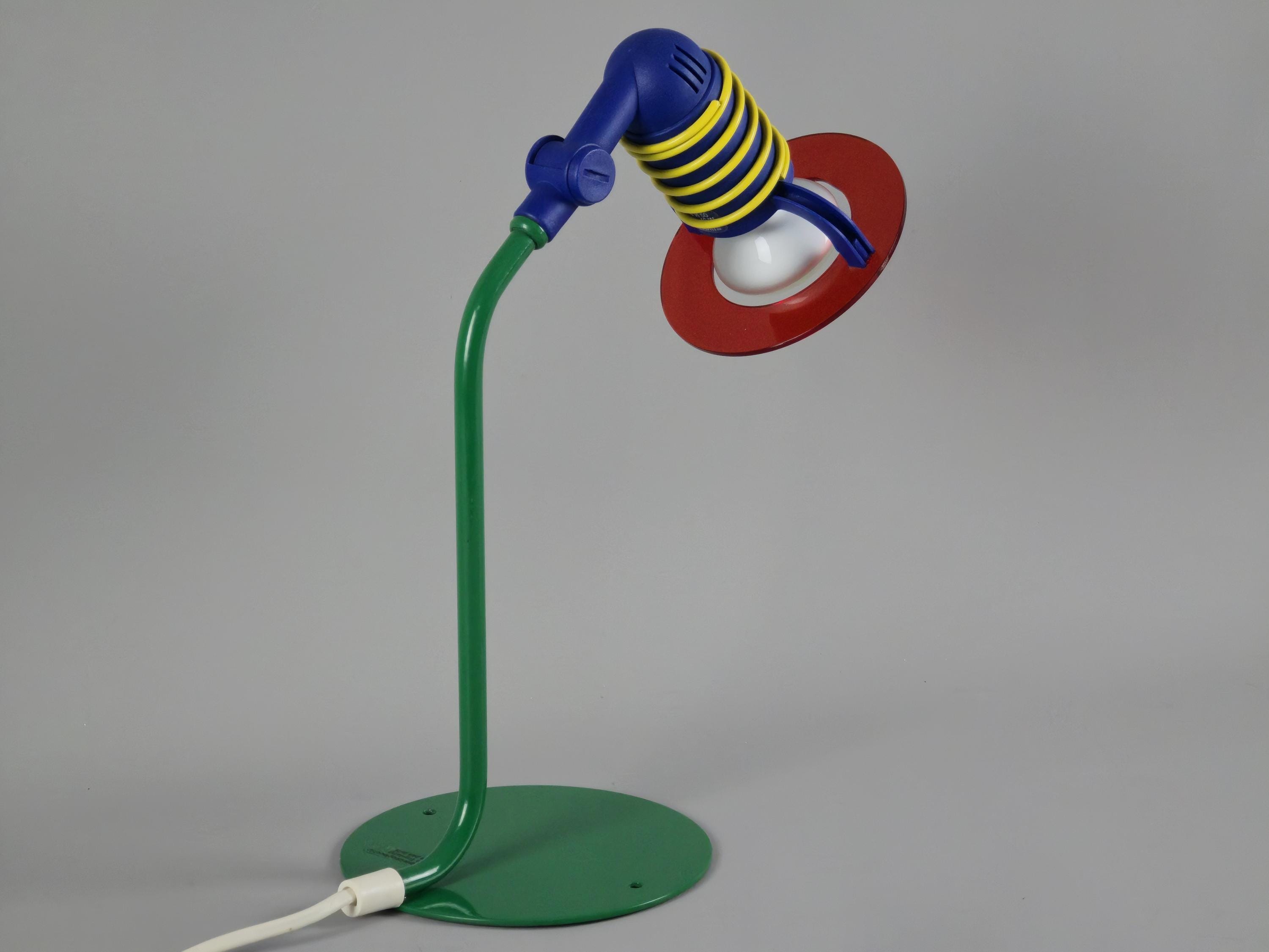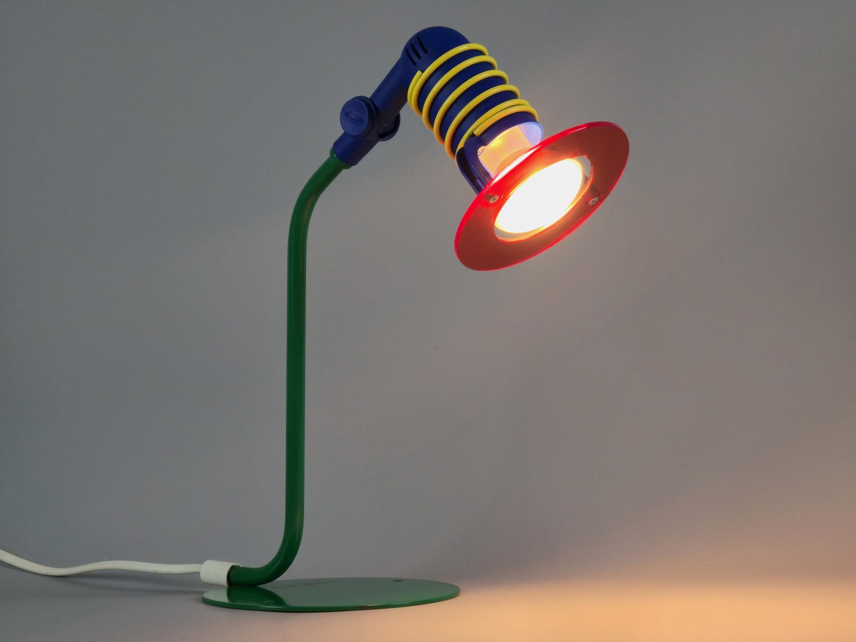 Vintage 1990s postmodern table lamp with a spiral design by ESTO. The design is strongly reminiscent of the Memphis Group style from the 1980s, known for its bright colors and geometric shapes.