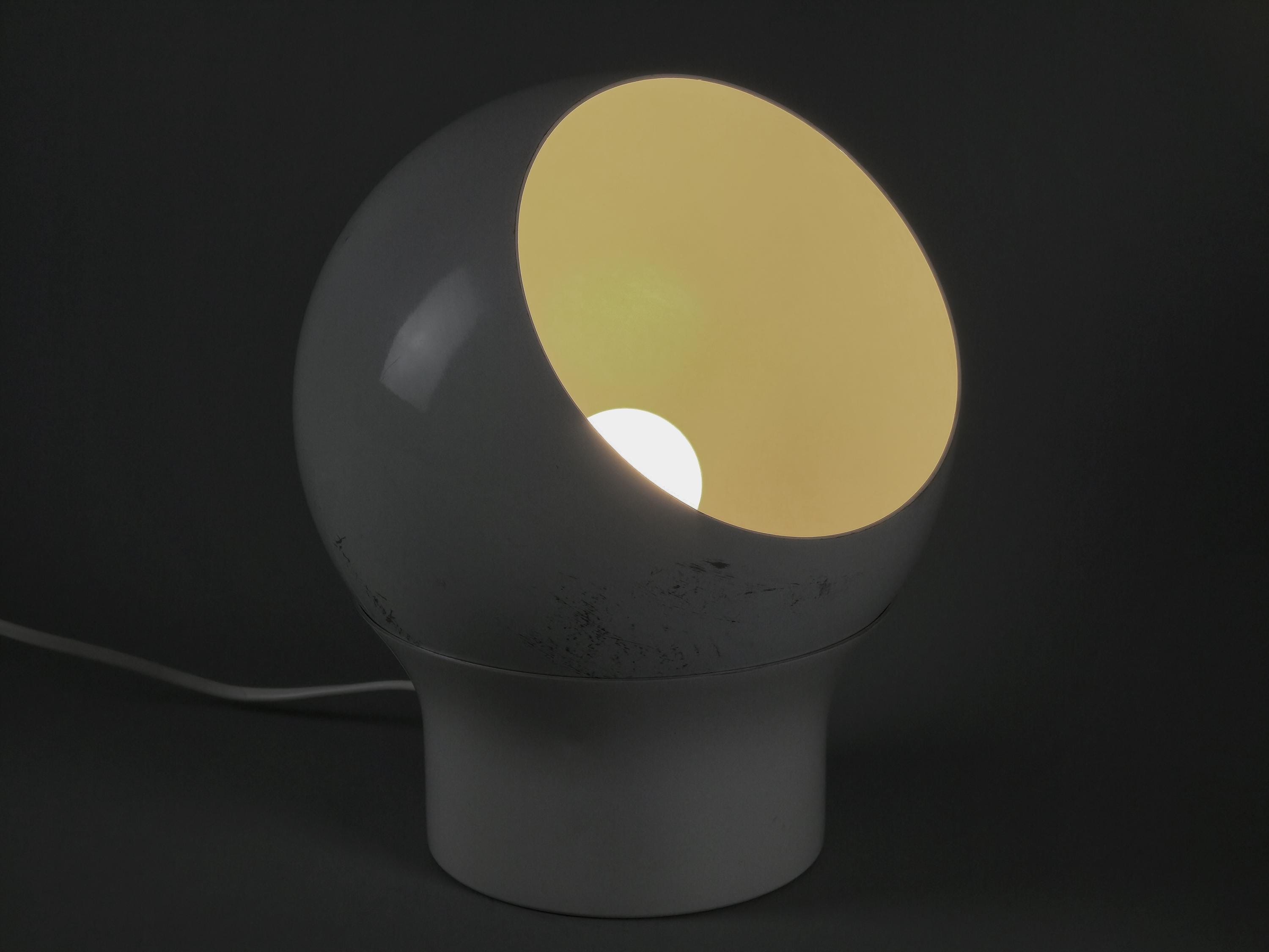 Rare mid-century 'Klot 3' table lamp from 1971, designed by Lennart Centervall and produced by Hemi for IKEA. The piece features an eyeball rotating shade atop a curved aluminium base. A collectible piece with strong design heritage and a rare backstory. Appears in the 1971 IKEA catalogue.