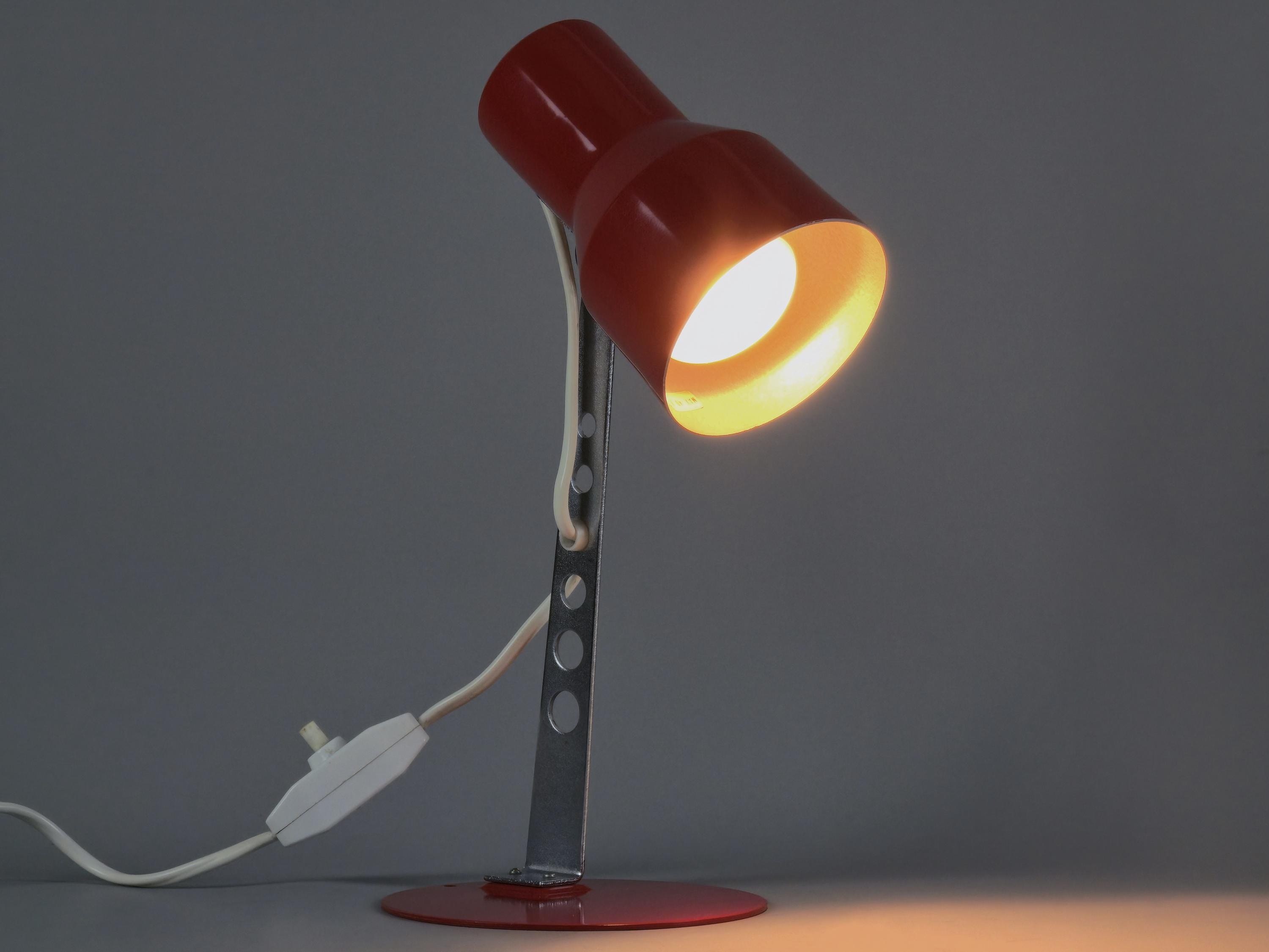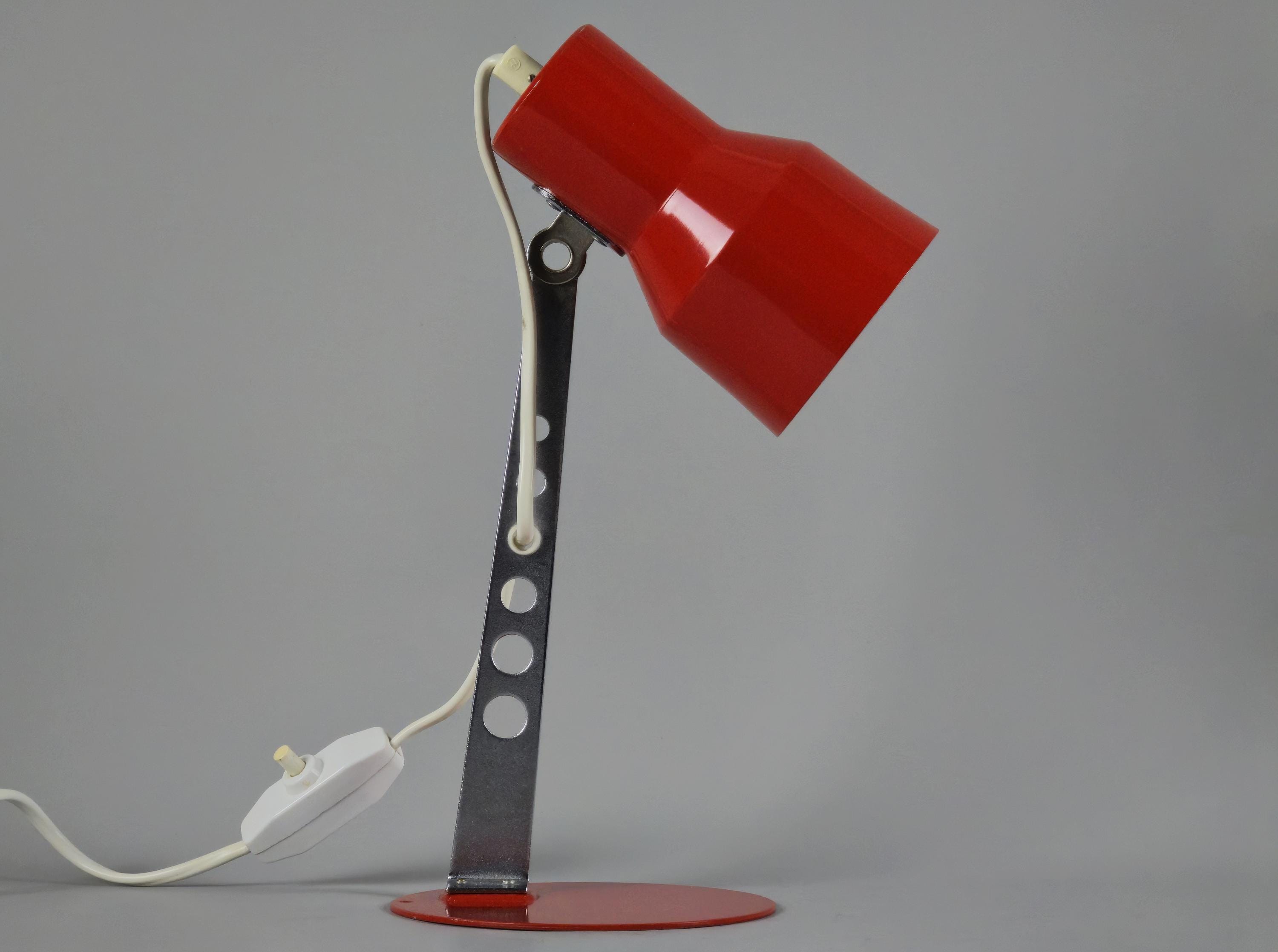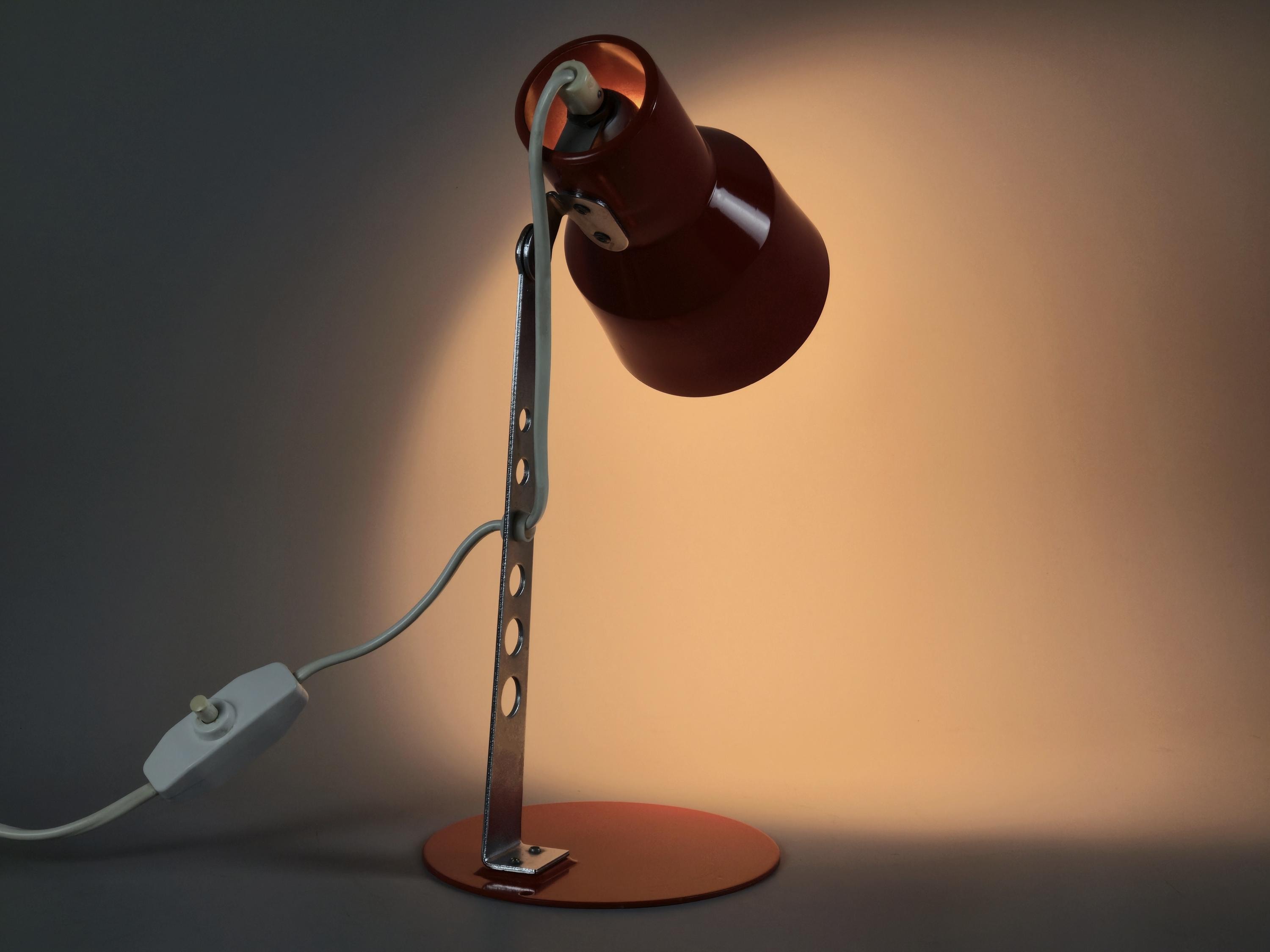 Vintage 1970s ATA Sweden Red Metal Desk Lamp, Industrial Task Light.