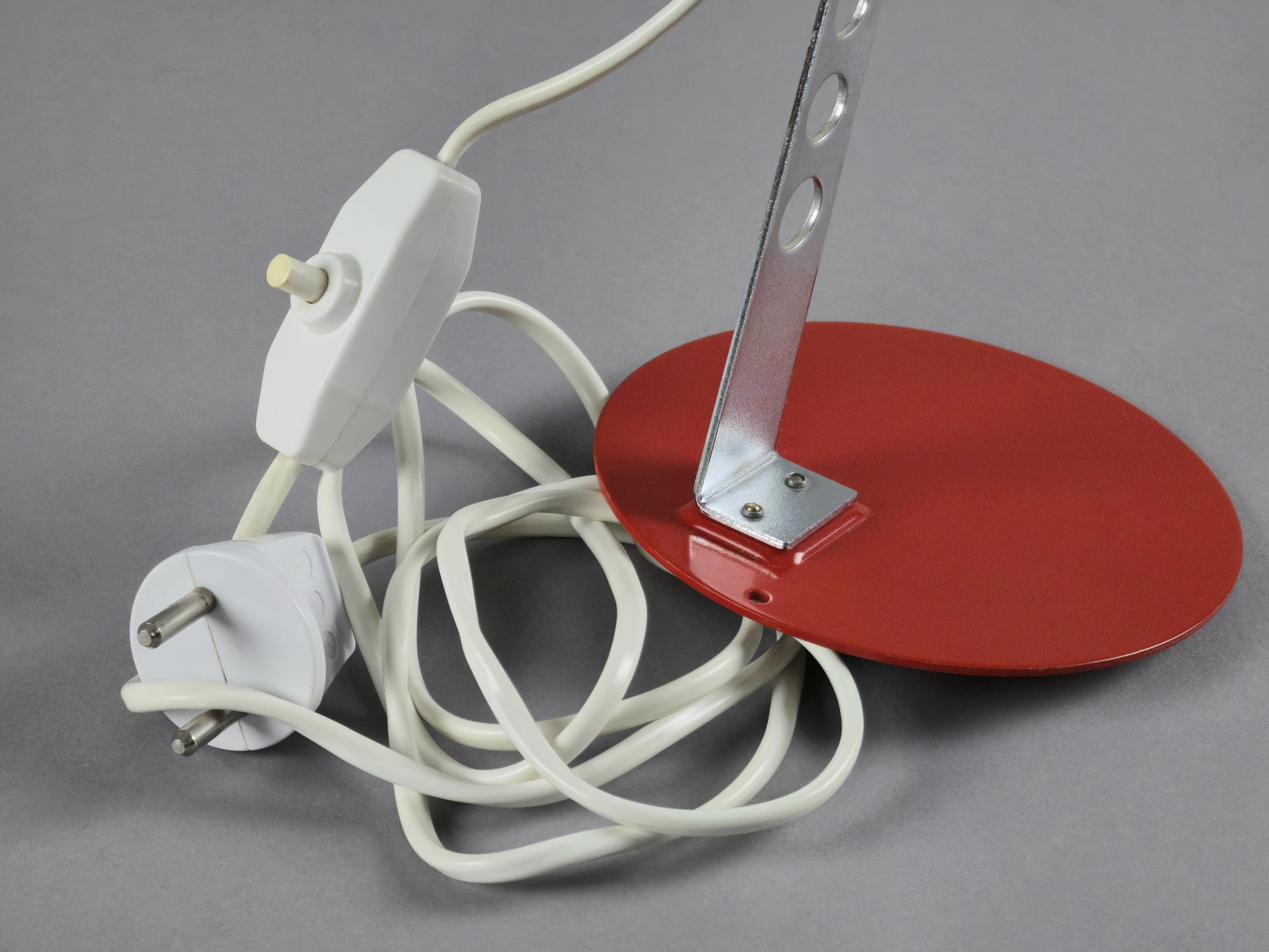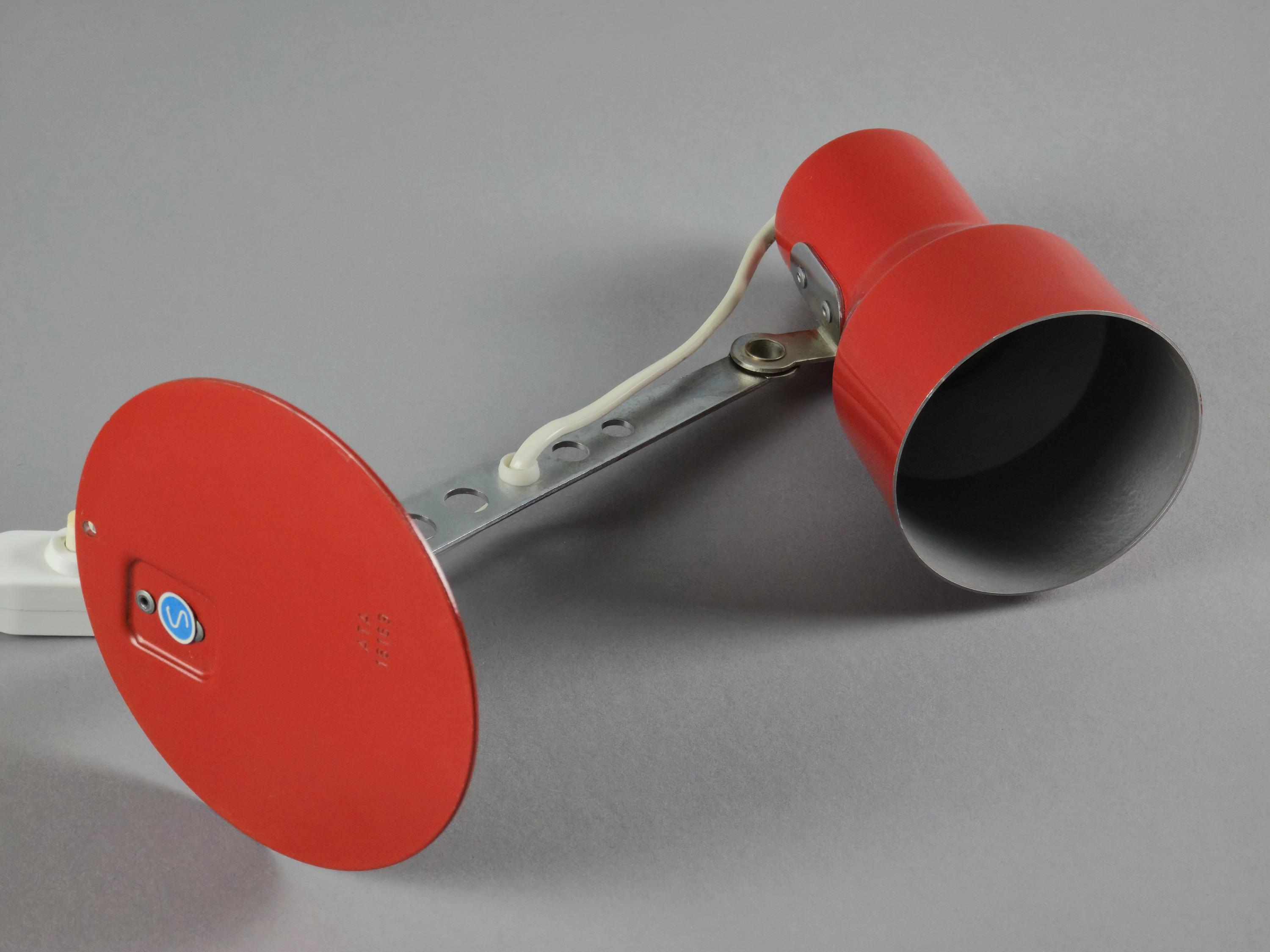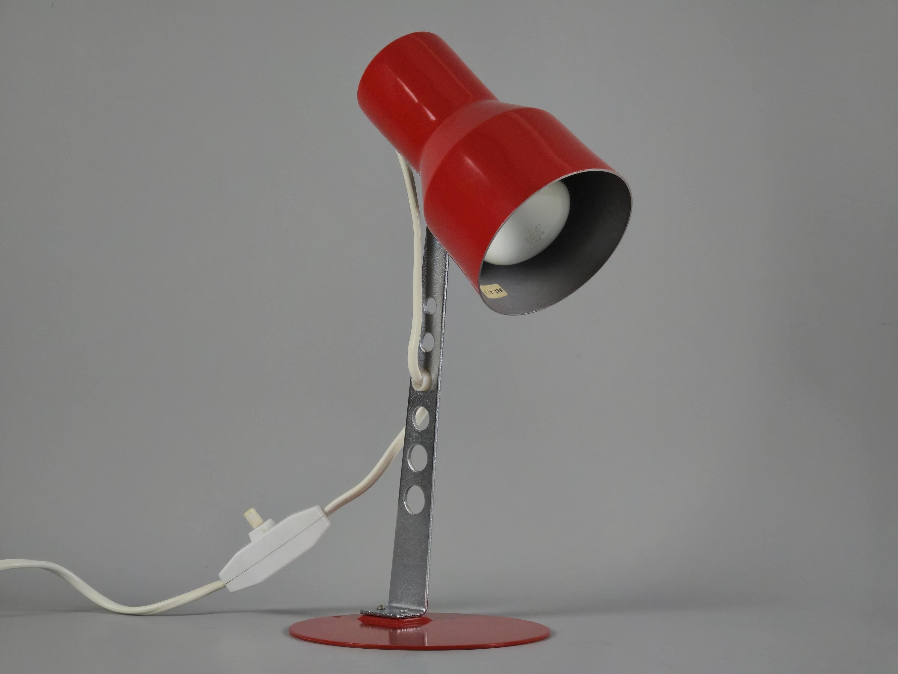 Vintage 1970s ATA Sweden Red Metal Desk Lamp, Industrial Task Light.