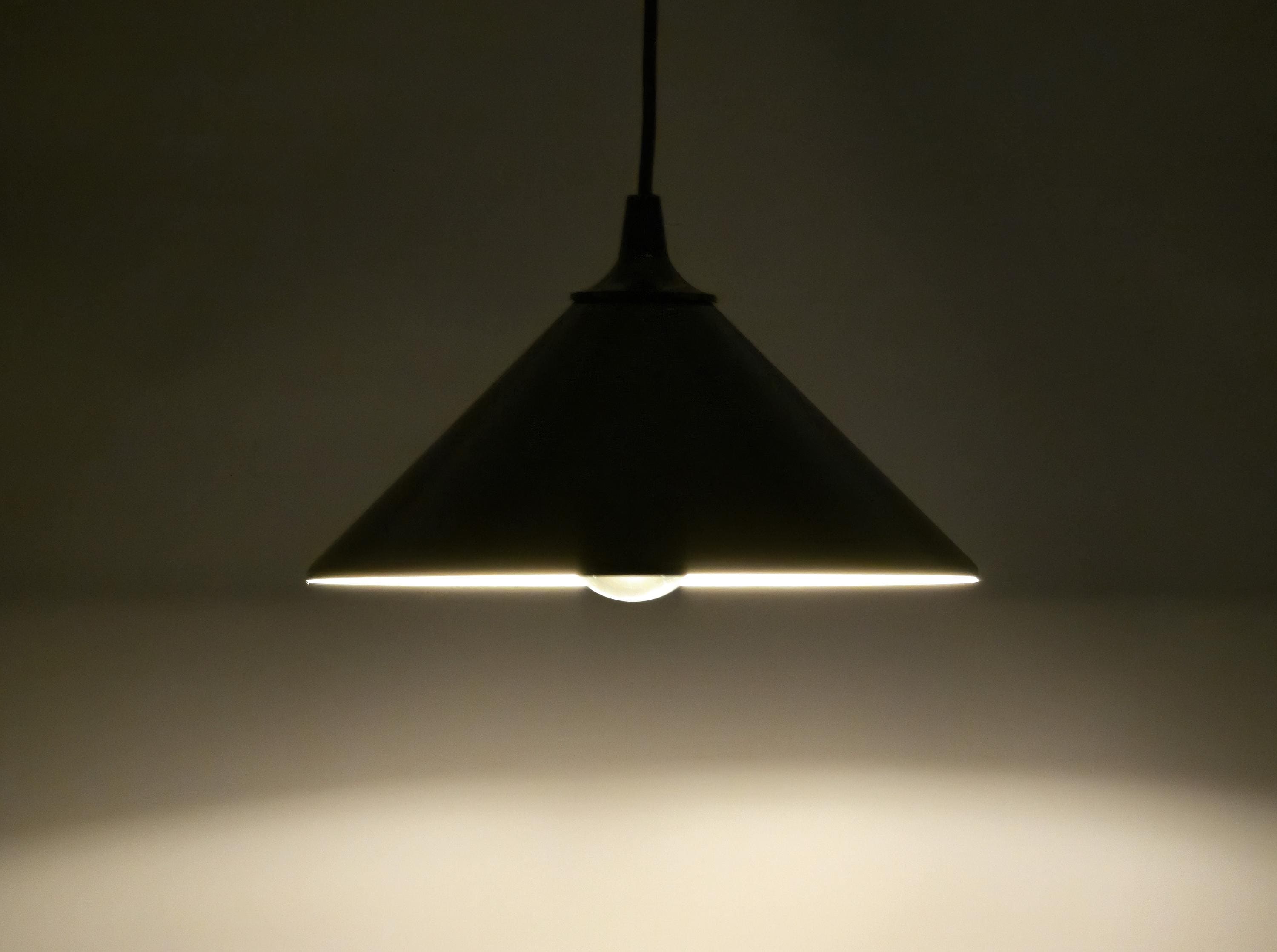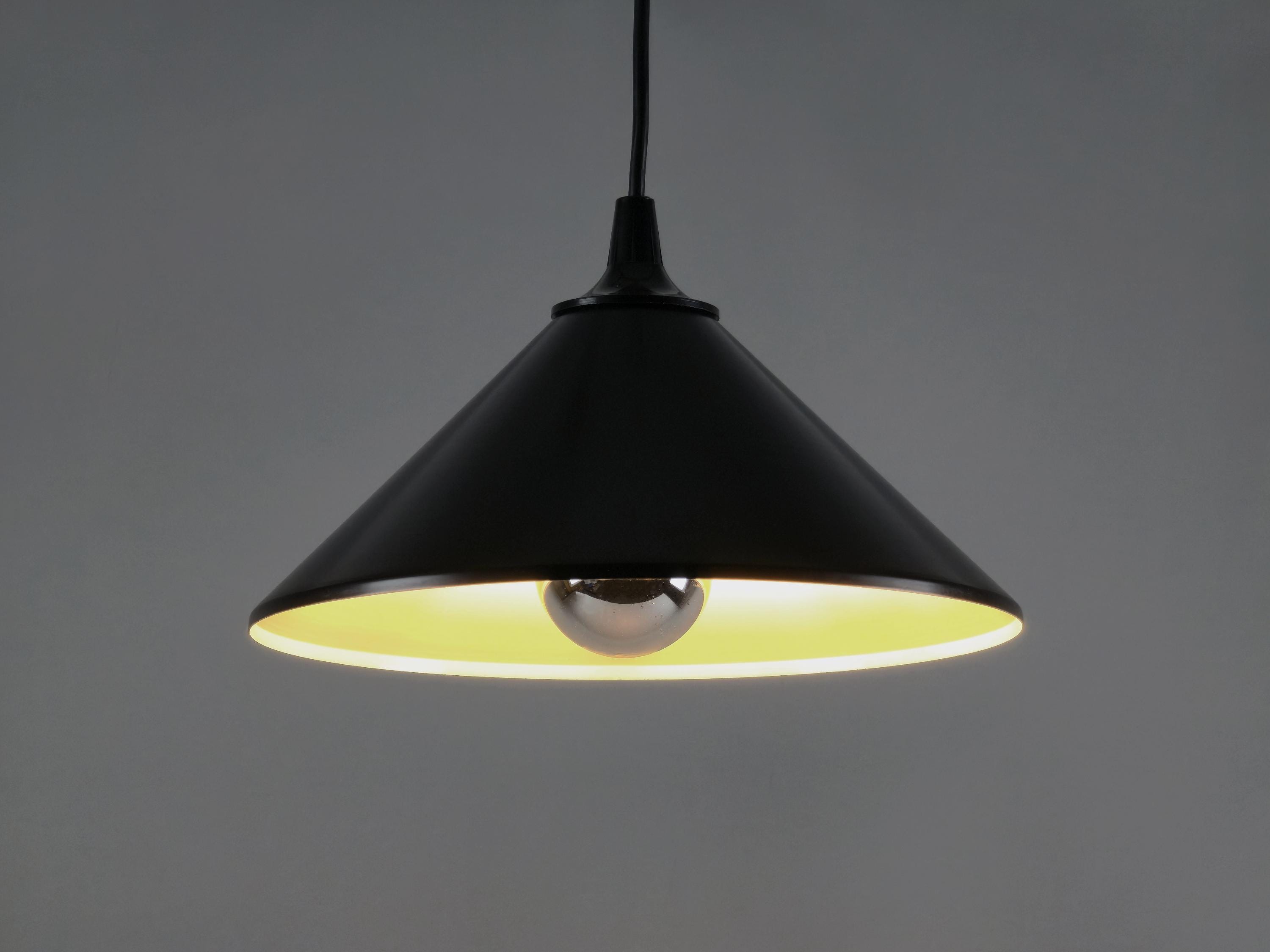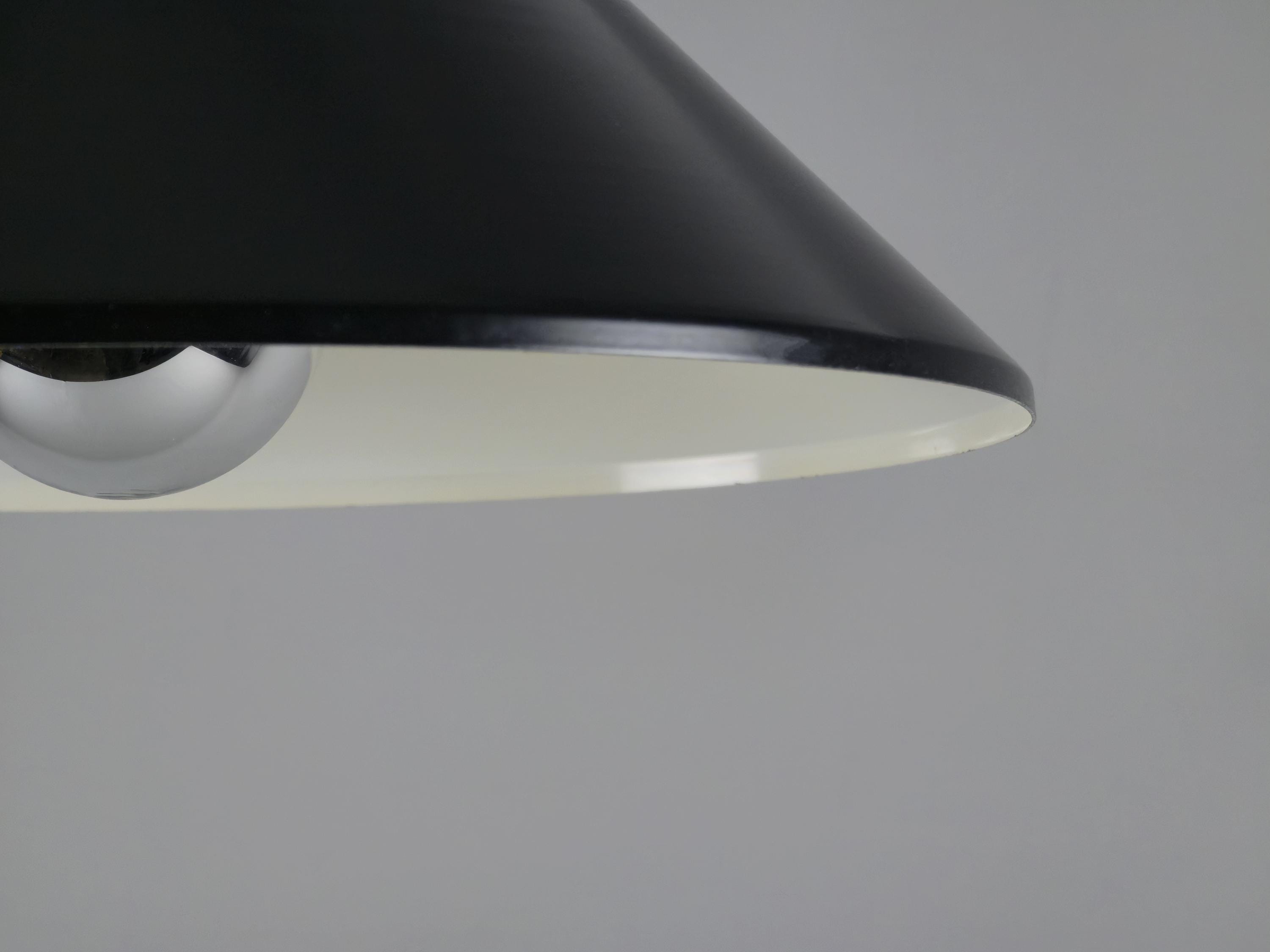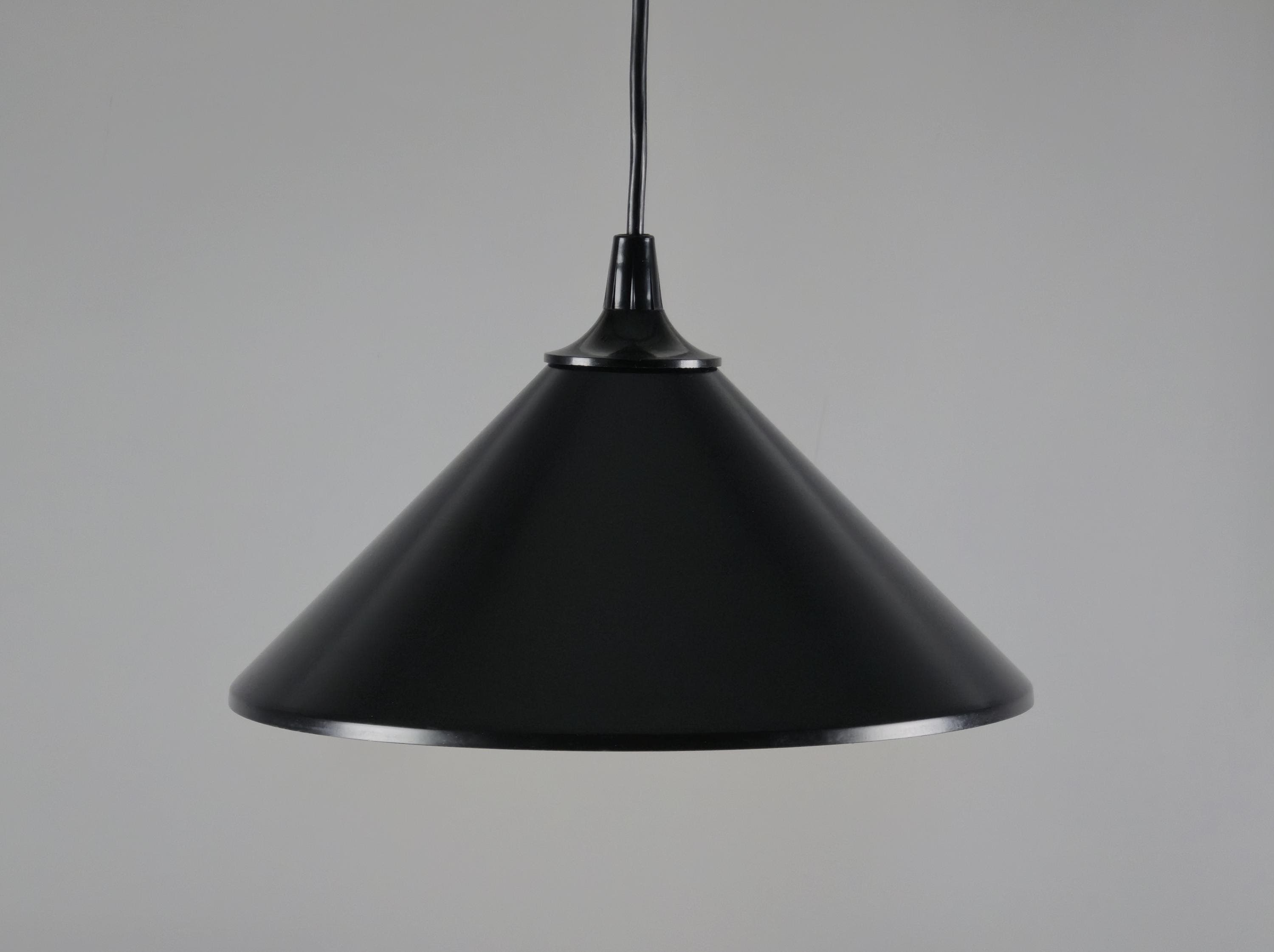 Lovely vintage conical black industrial pendant lamp from the 1980s in excellent condition. With a form rooted in industrial and Bauhaus design, it’s ideal for clean, utilitarian spaces, whether above a kitchen island, dining table, or workspace.