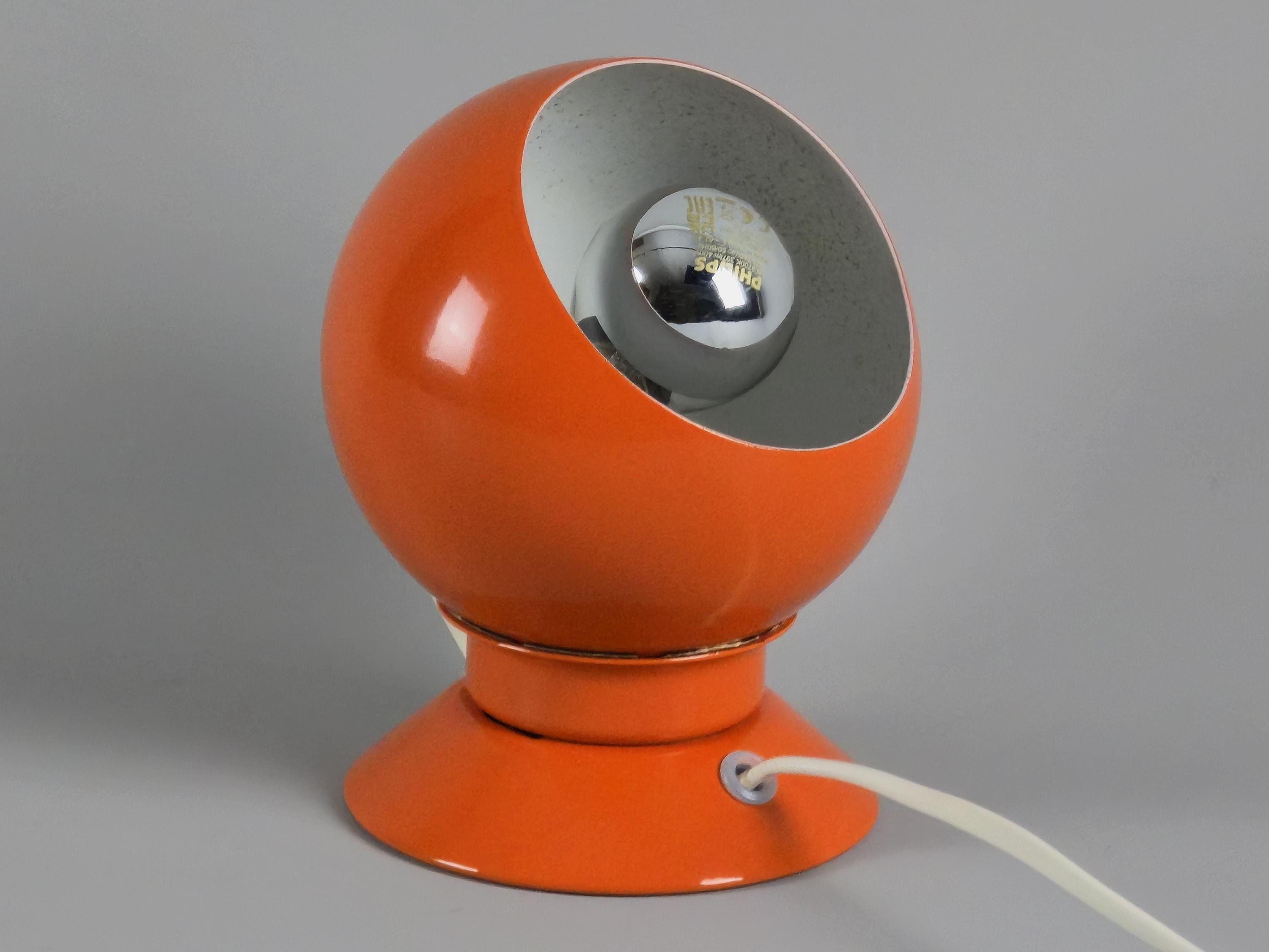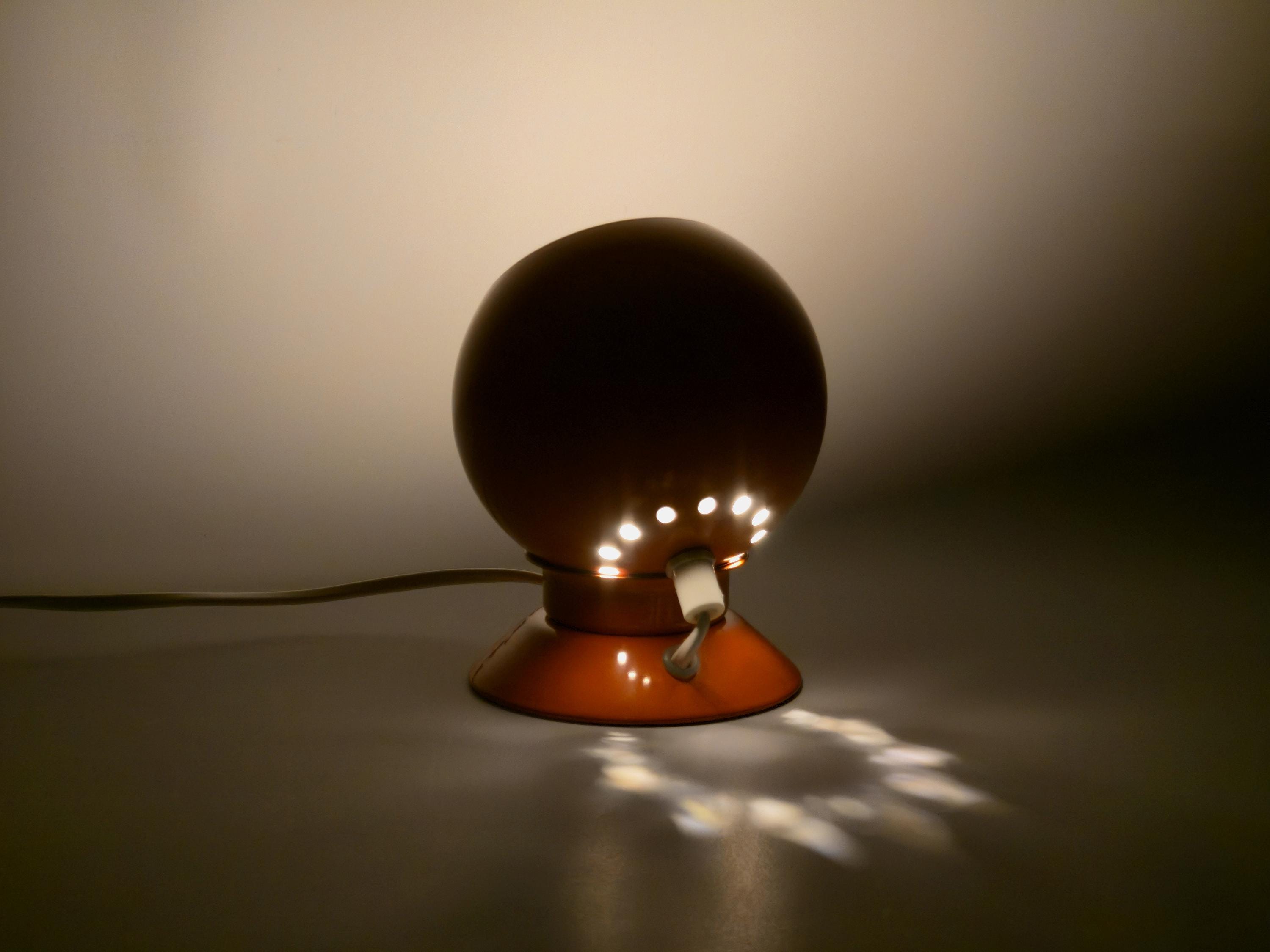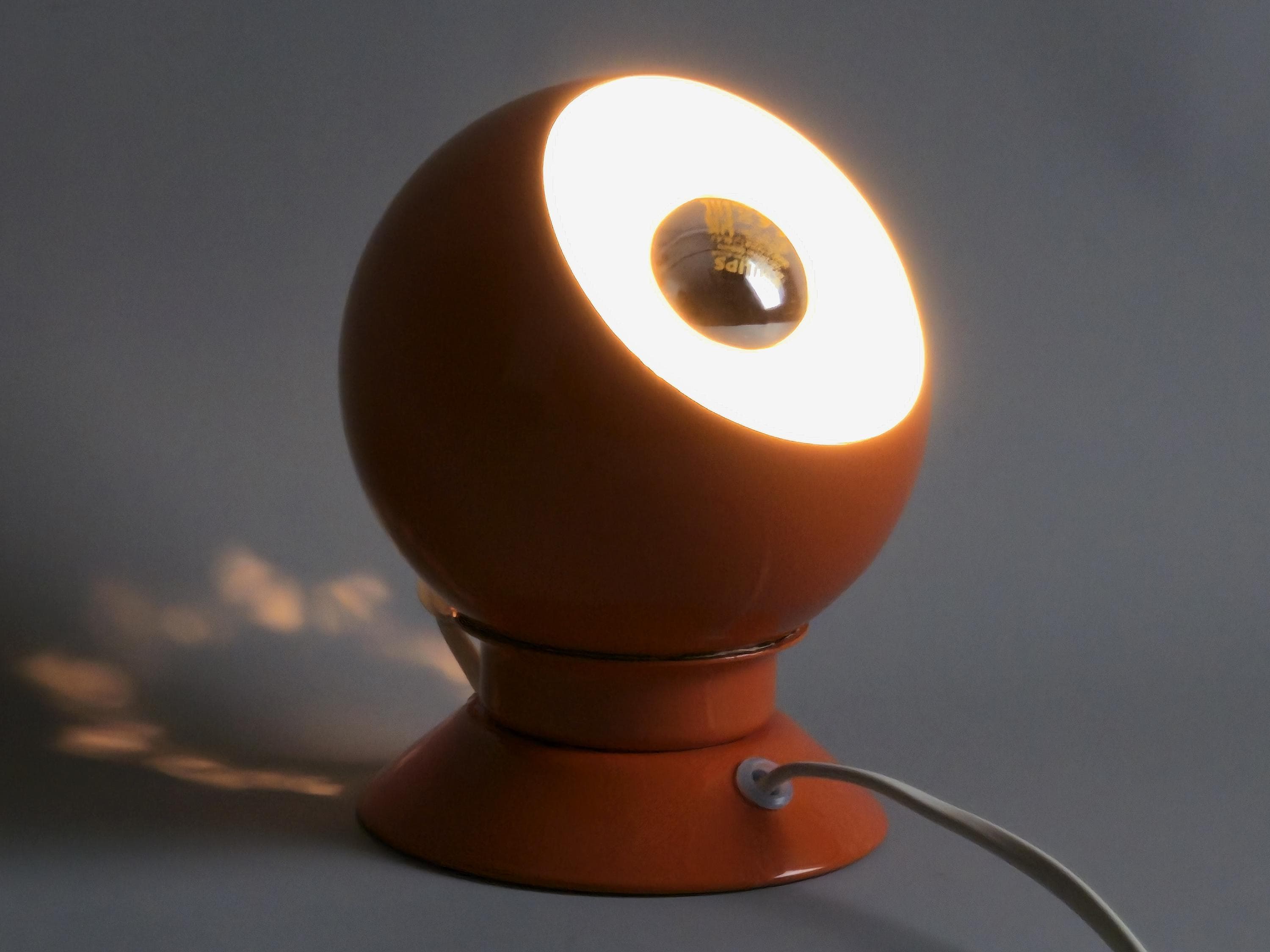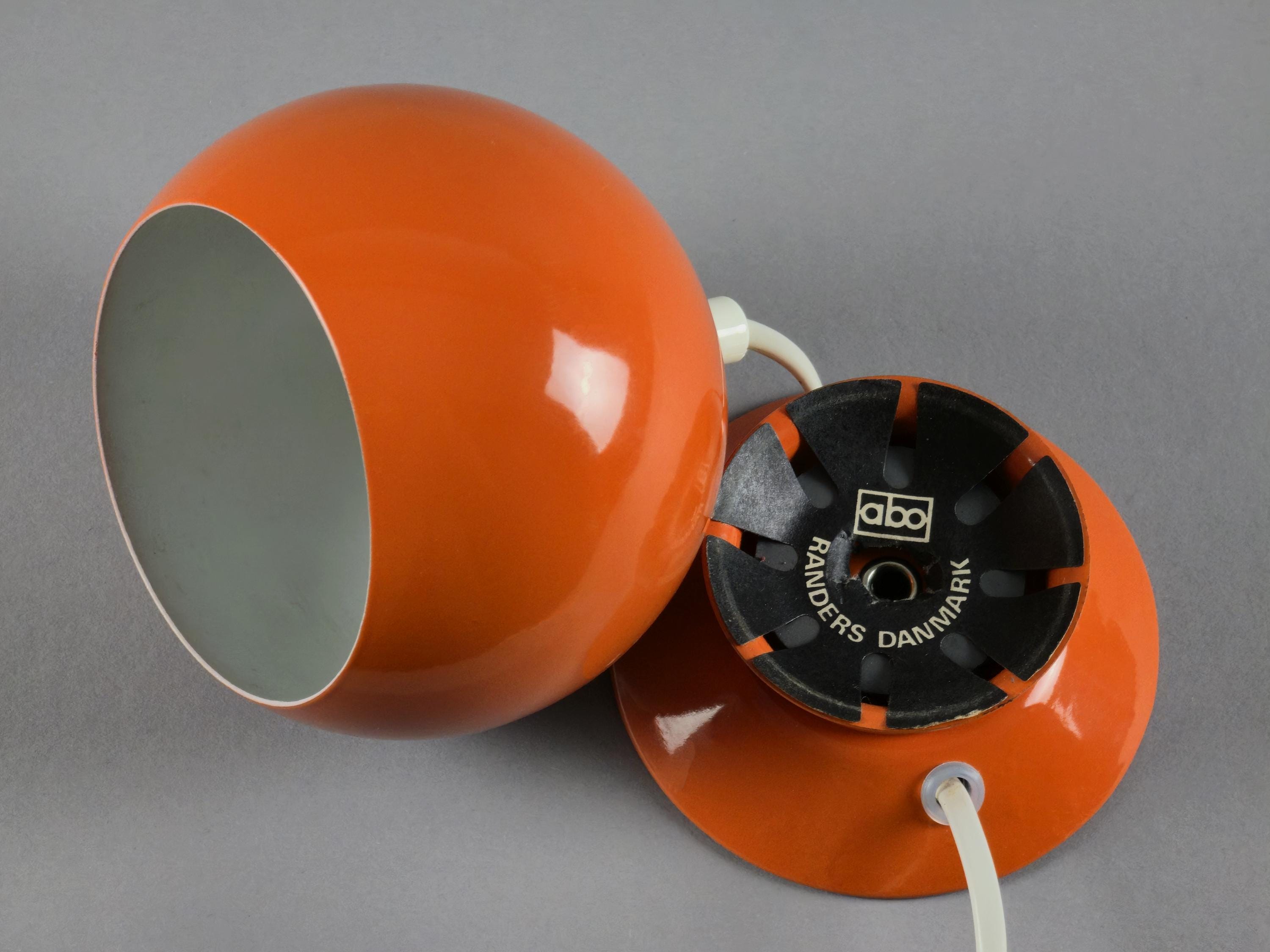 Vintage 1970s orange magnetic ball table lamp with removable lamp shade by Benny Frandsen for ABO Randers in excellent condition.