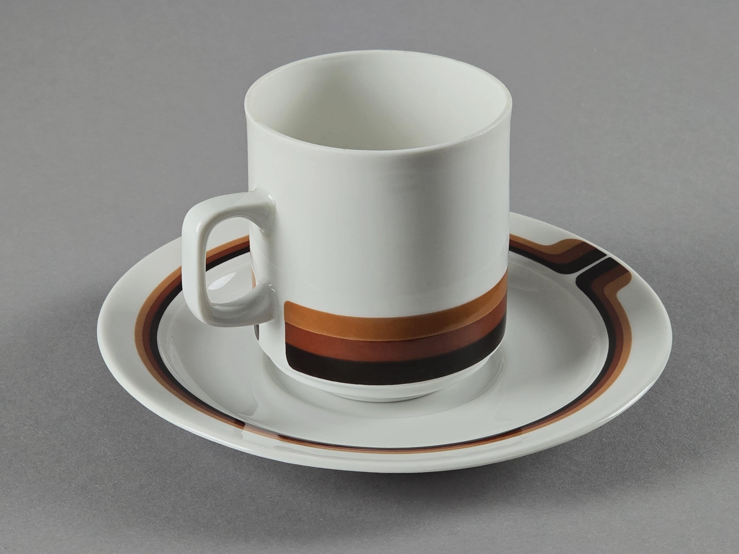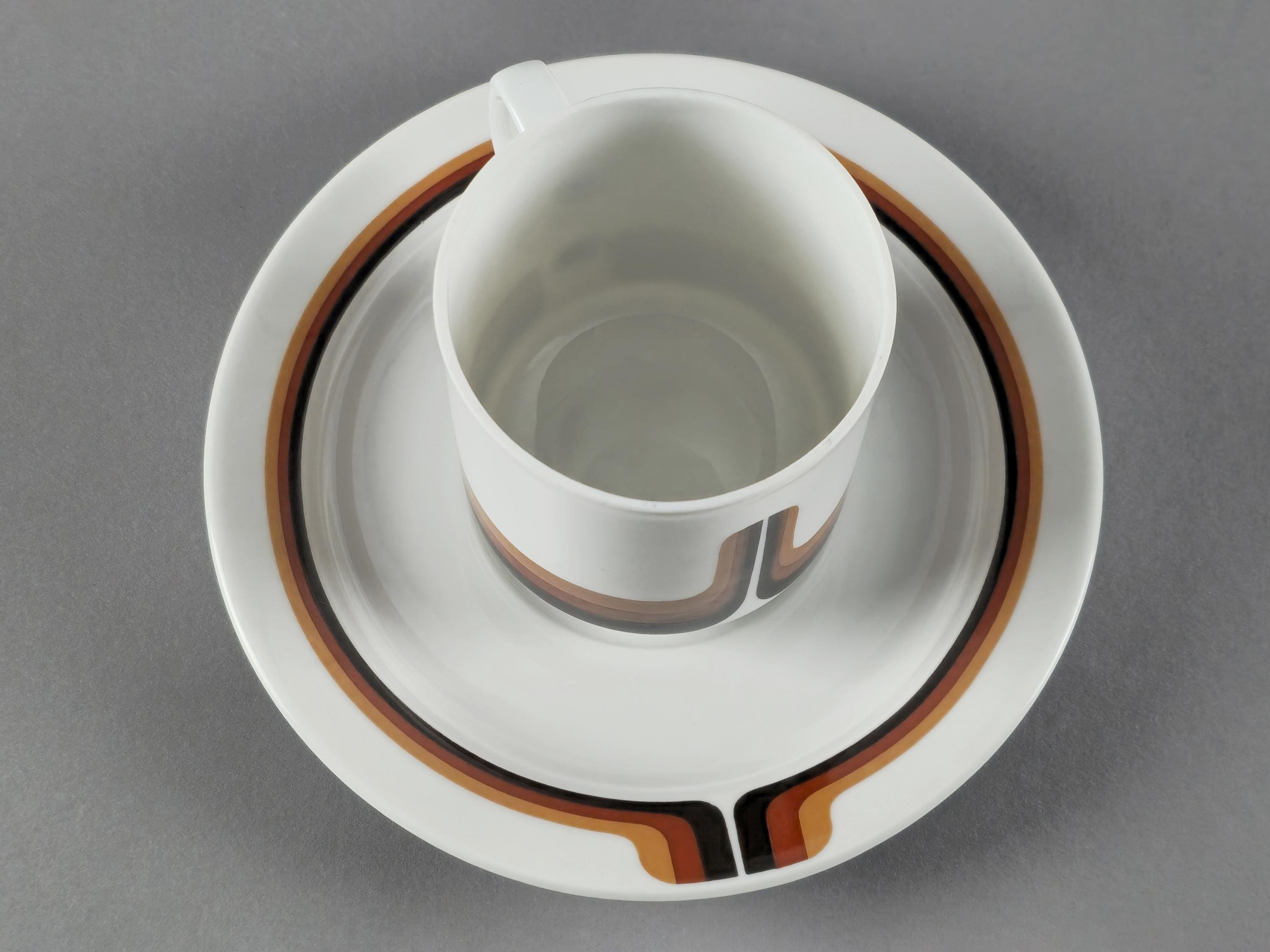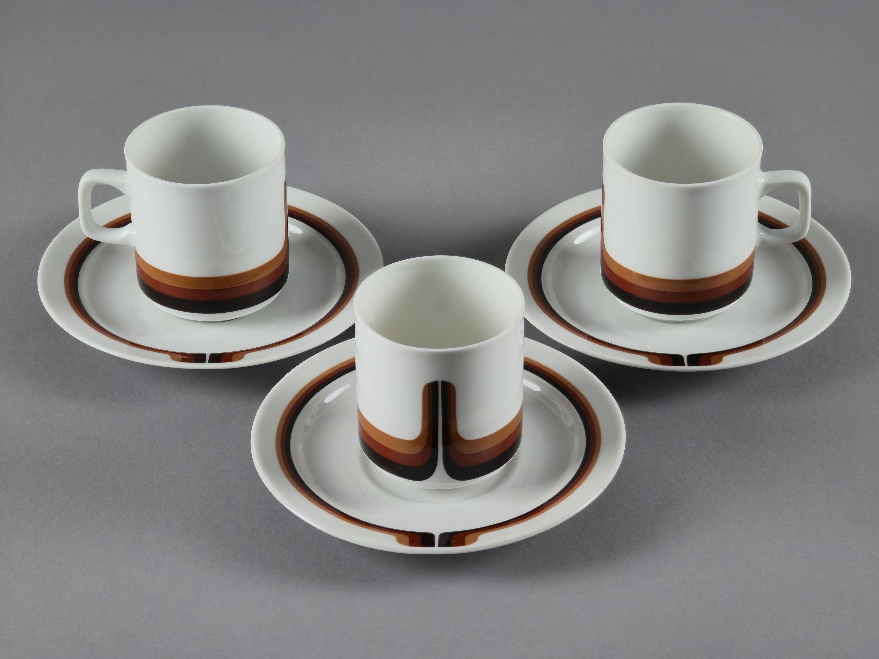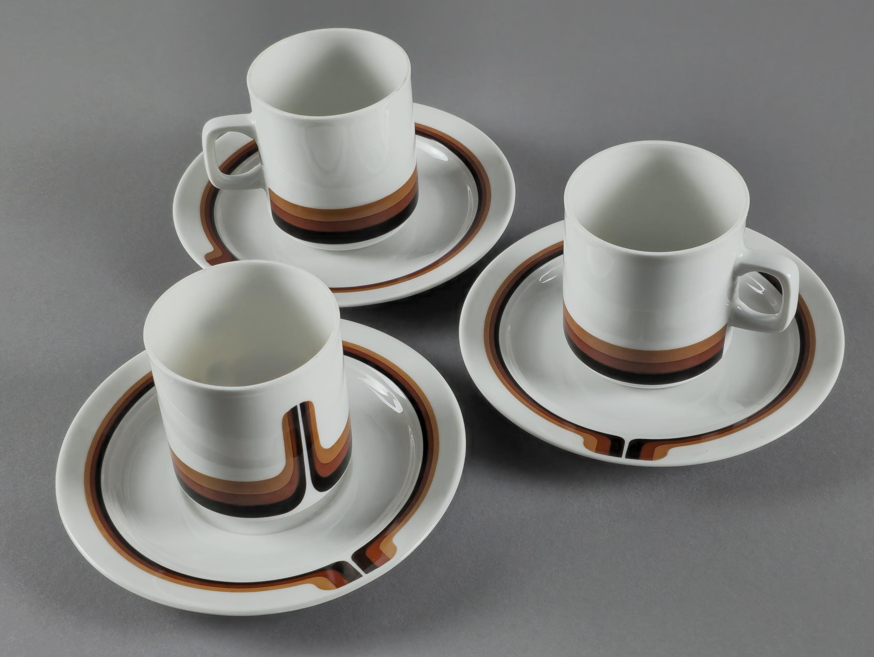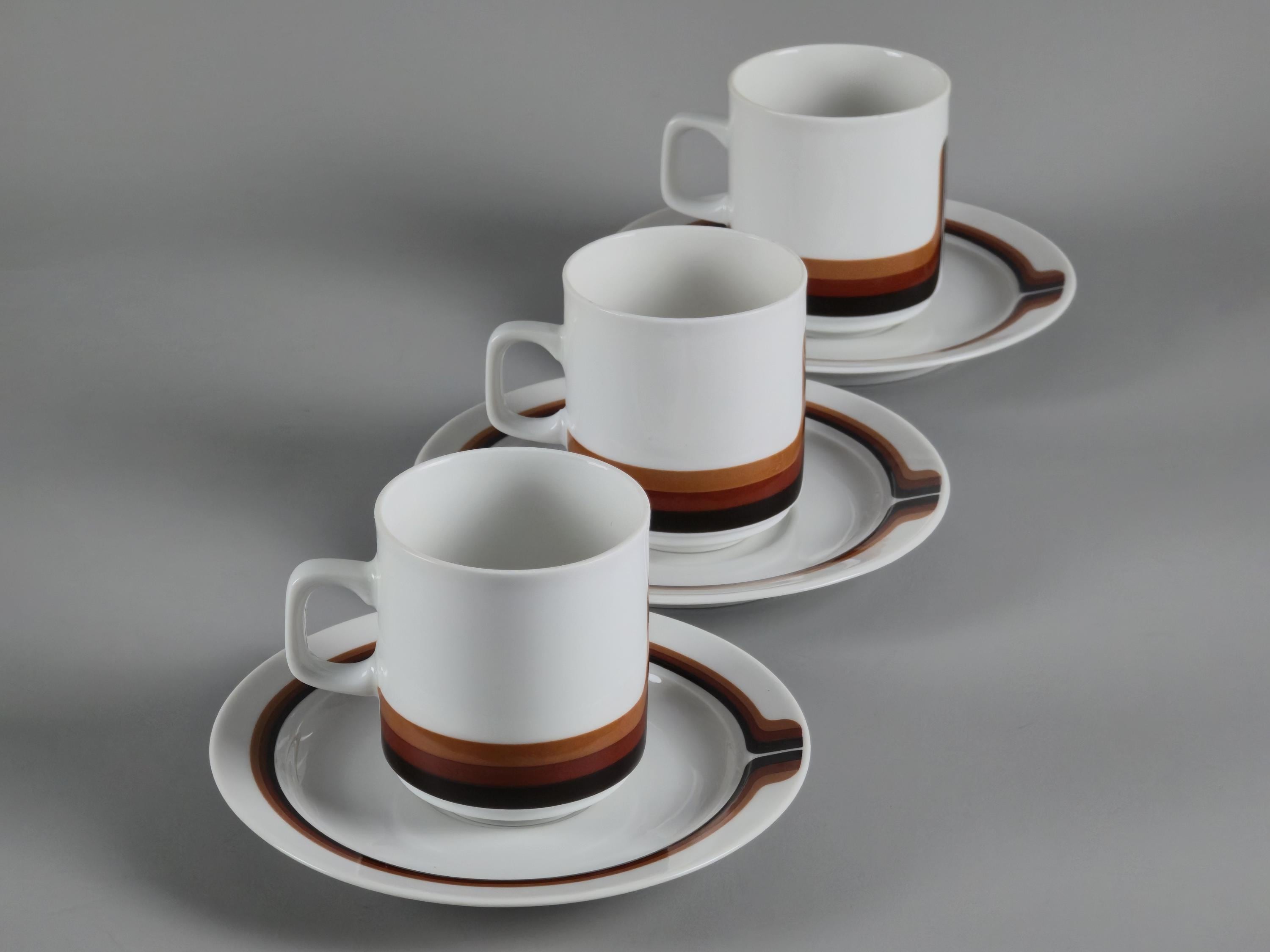 New old stock set of 3 vintage ceramic striped cups with saucers from the 1970s by Eschenbach Bavaria.