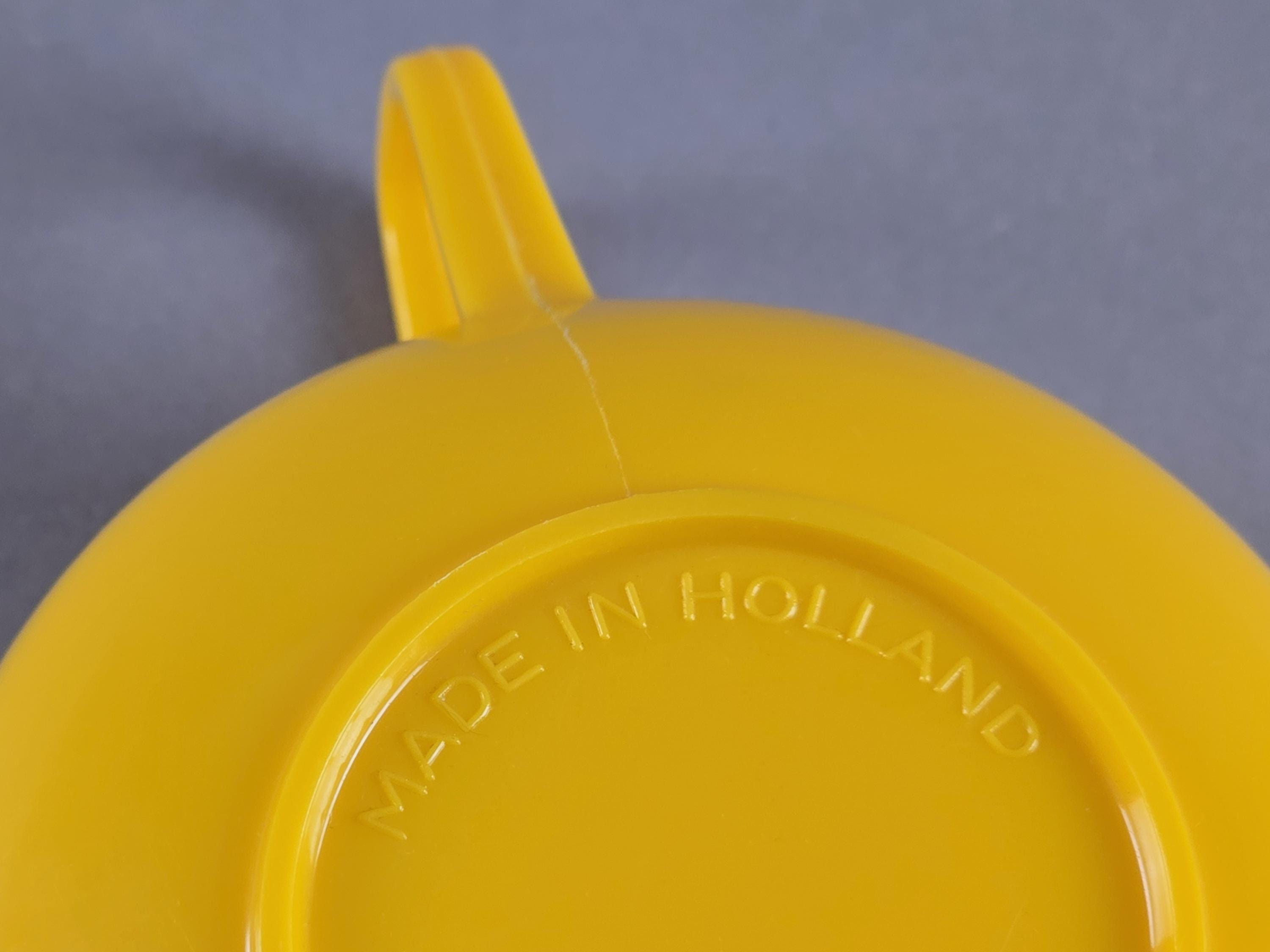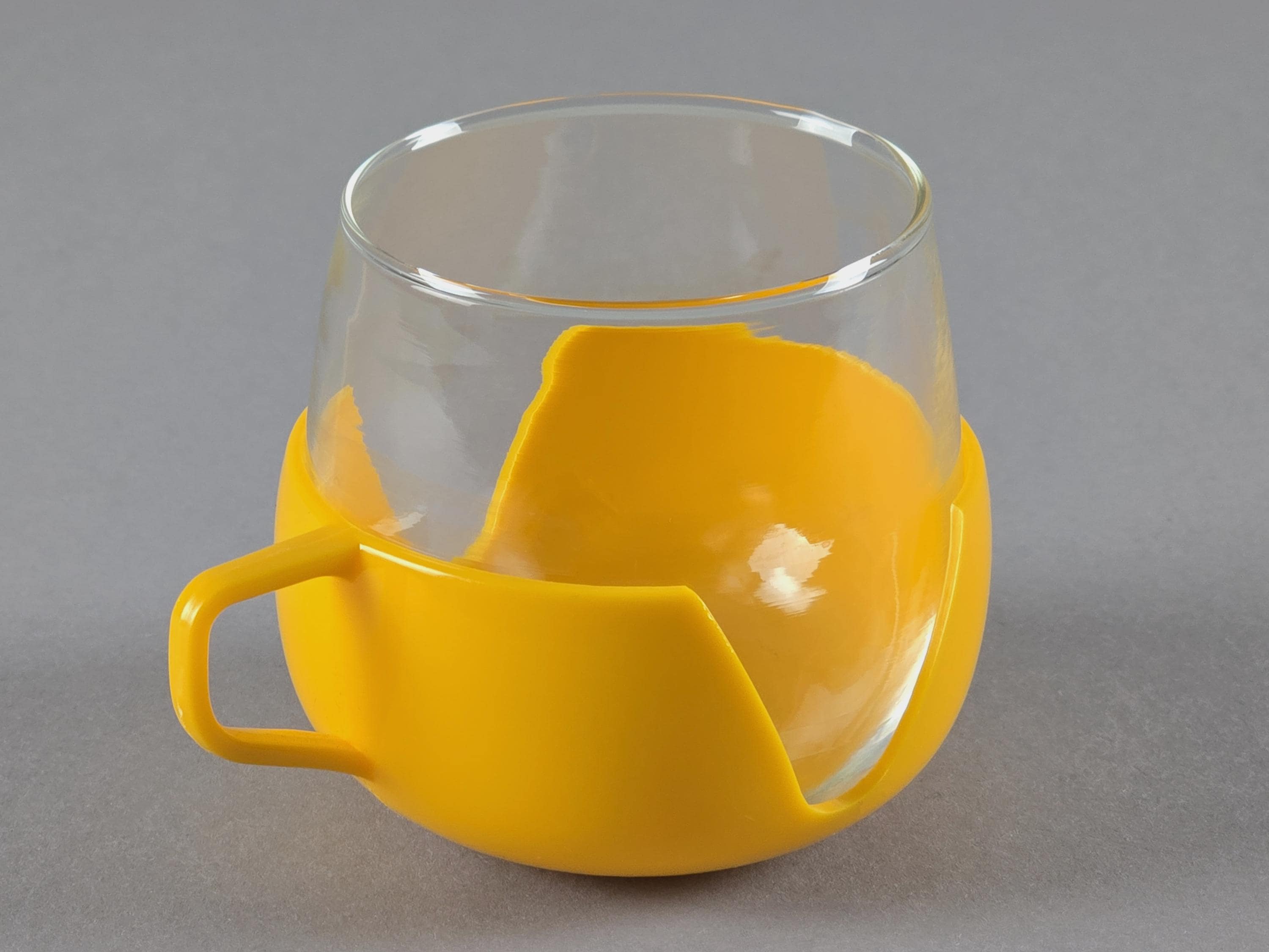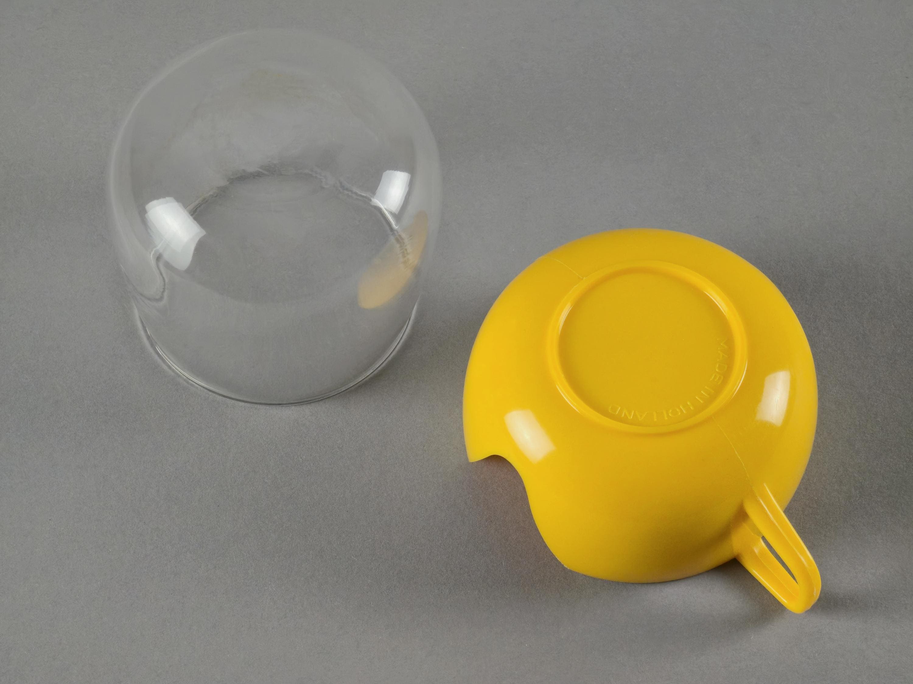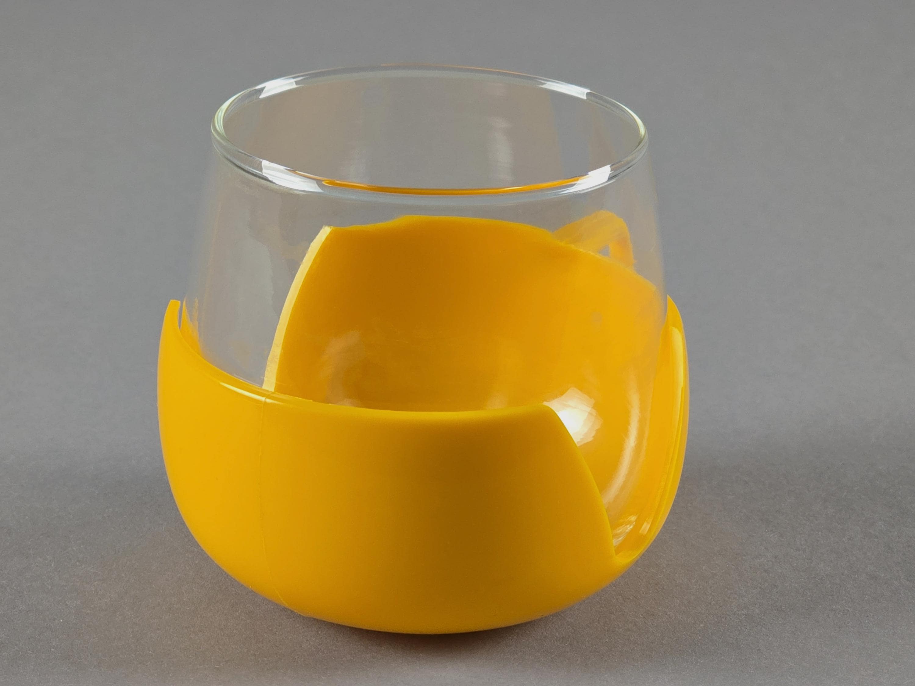 1970s Space Age Design Set Of 4 Glass Tea Cups With Yellow Casing.