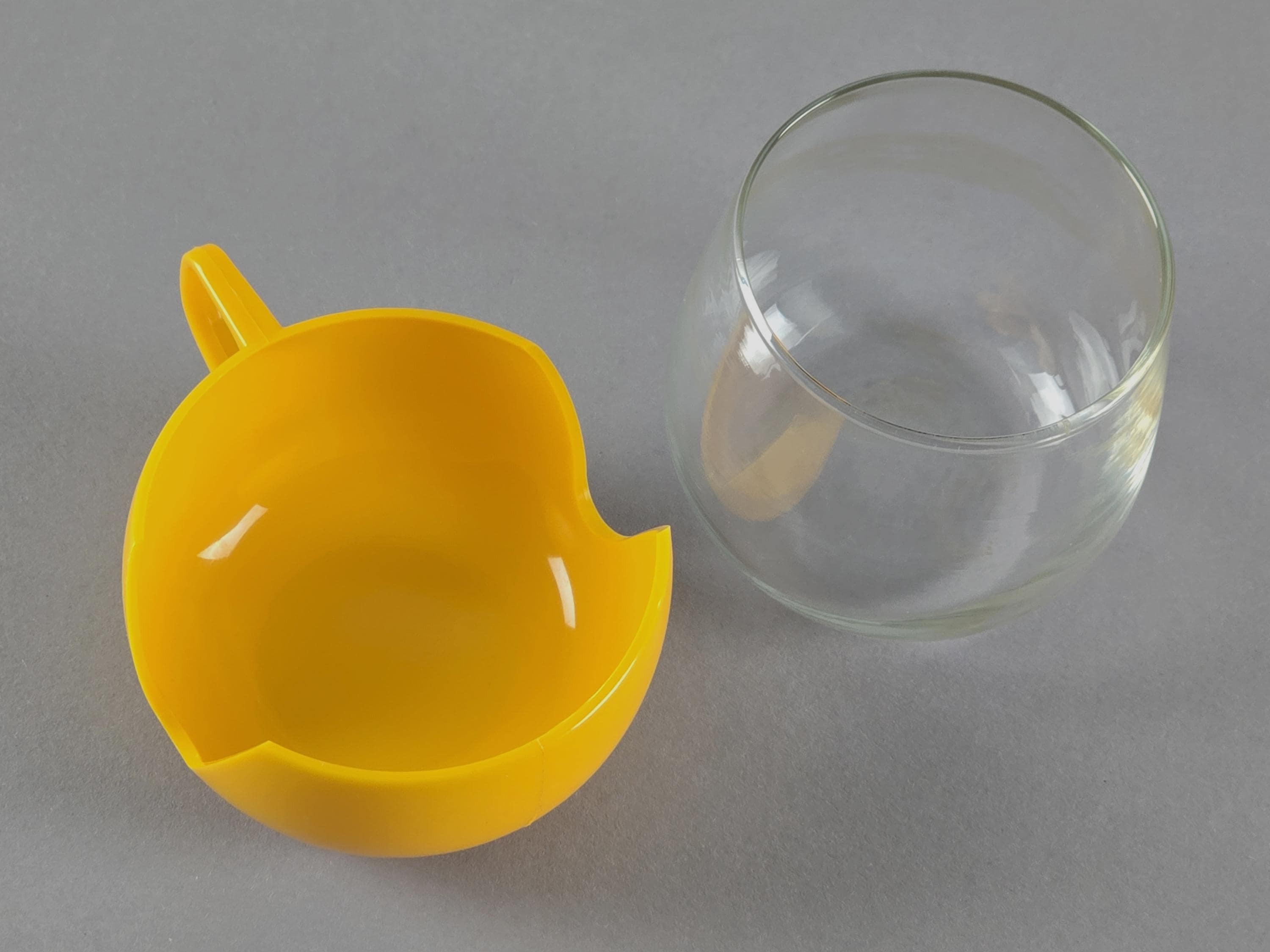 Lovely set of 4 vintage glass tea cups with yellow plastic casing from the 1970s in excellent condition.