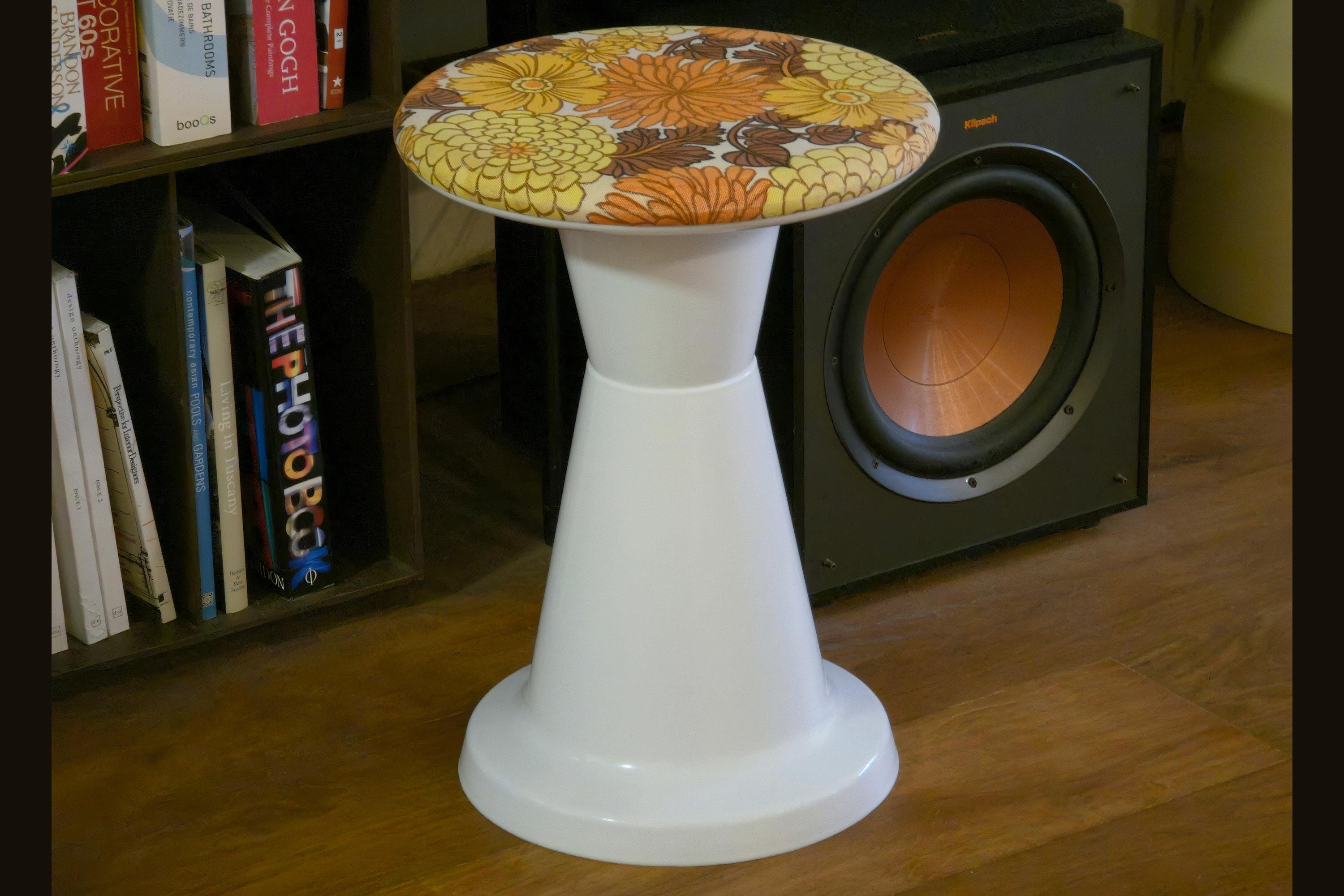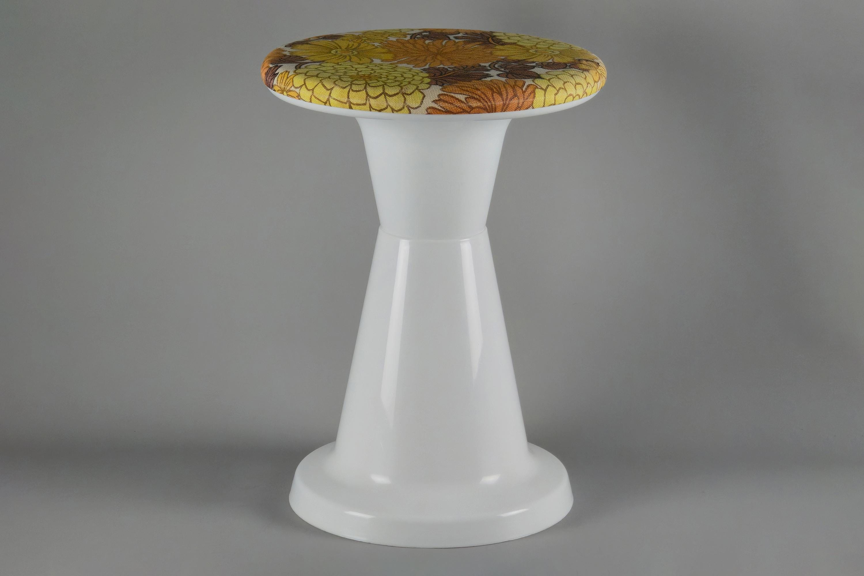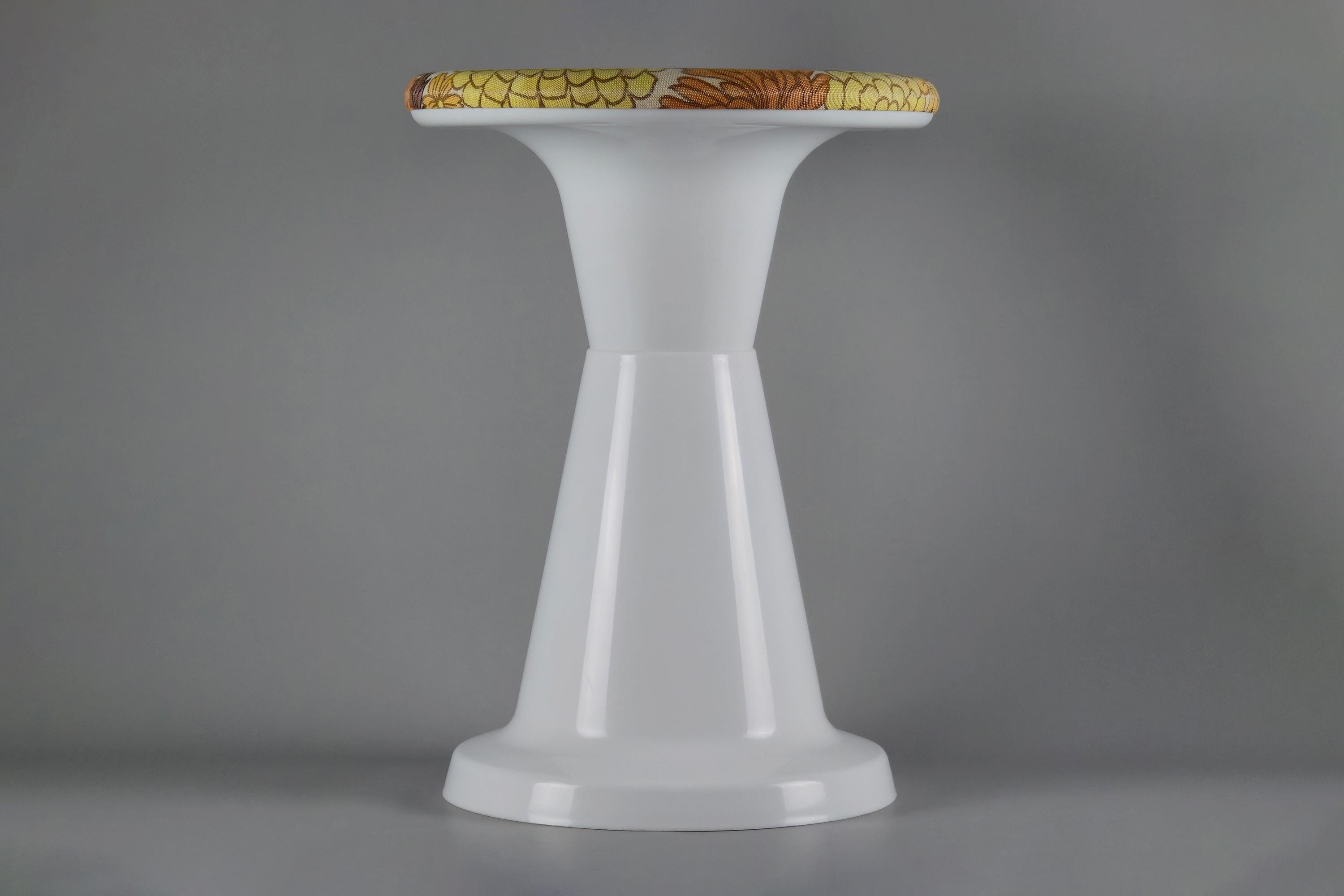 Vintage 1970s white plastic stool 'Pallar' with it's original upholstered padded seat by Per Olsson for Peroplast Sweden.
