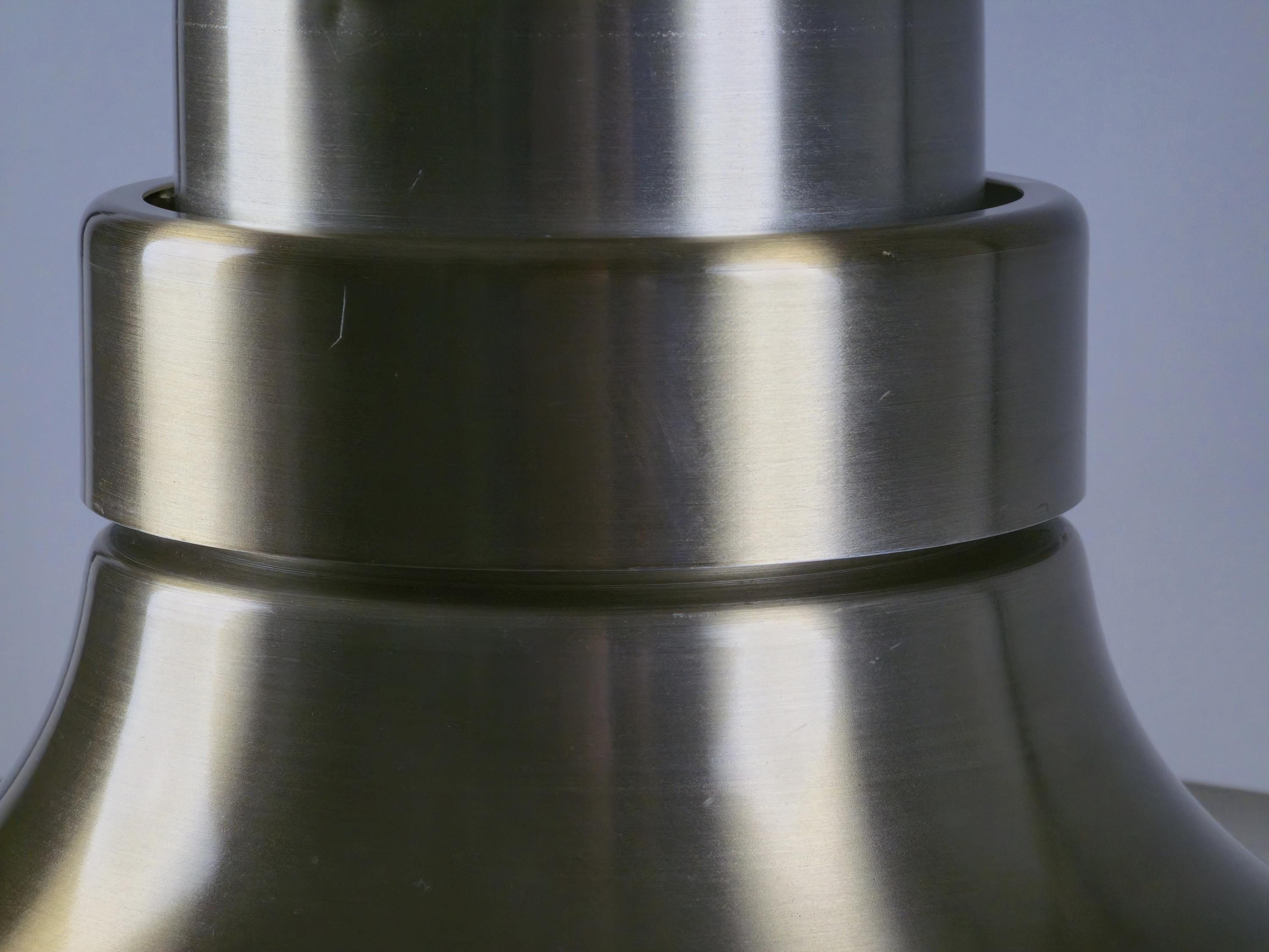 PGH Metalldrücker Halle, later nationalized as VEB Metalldrücker Halle, was a key player in East German lighting manufacturing. Their designs were known for combining lightweight metals like aluminum with playful geometric forms.