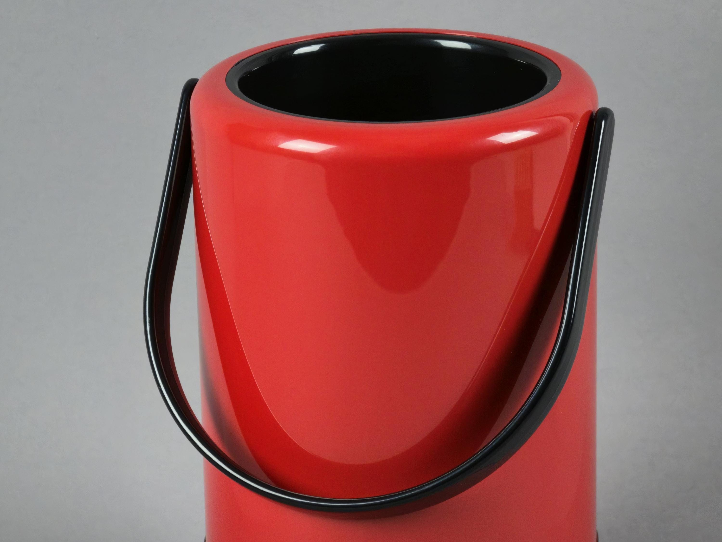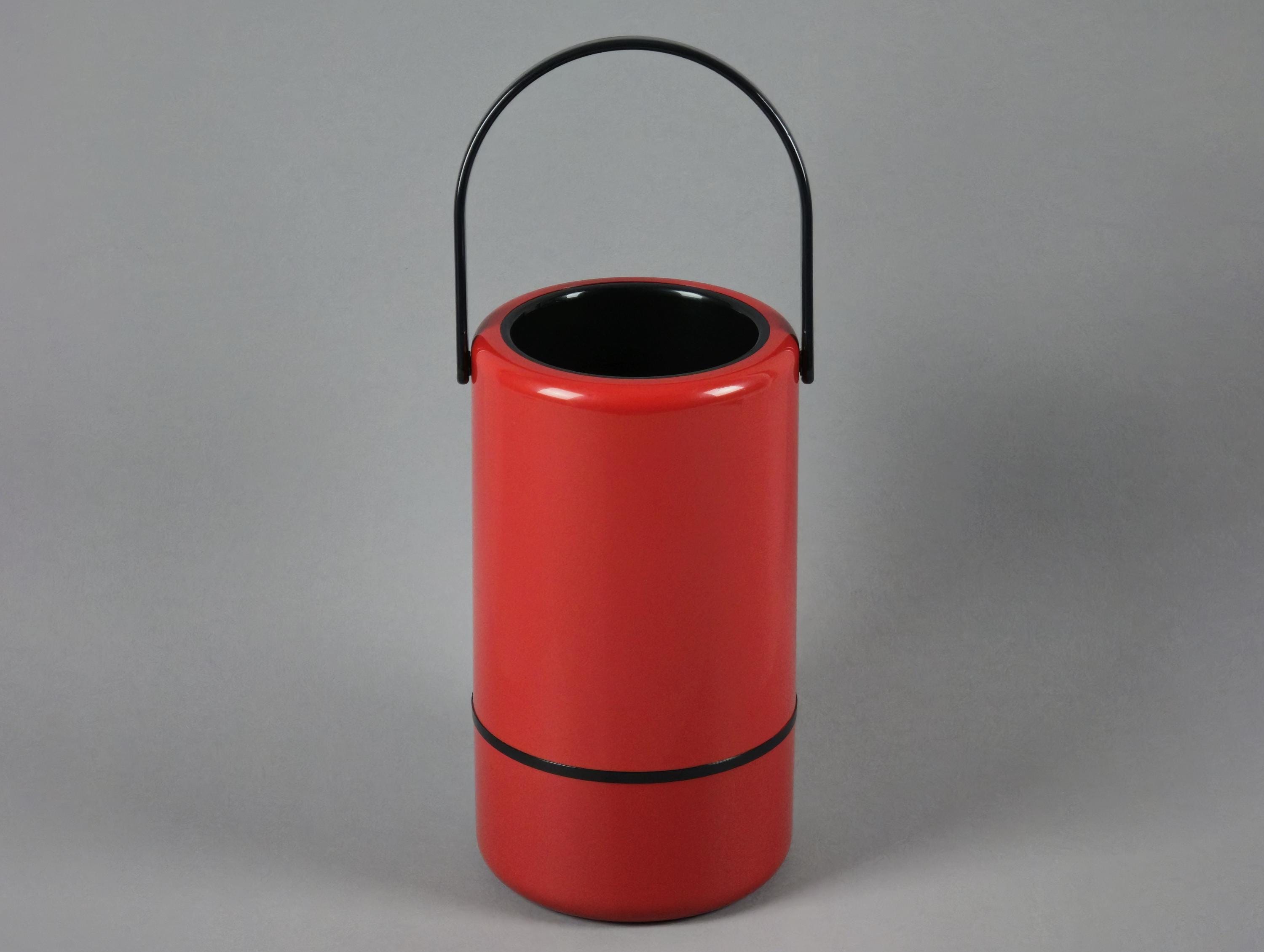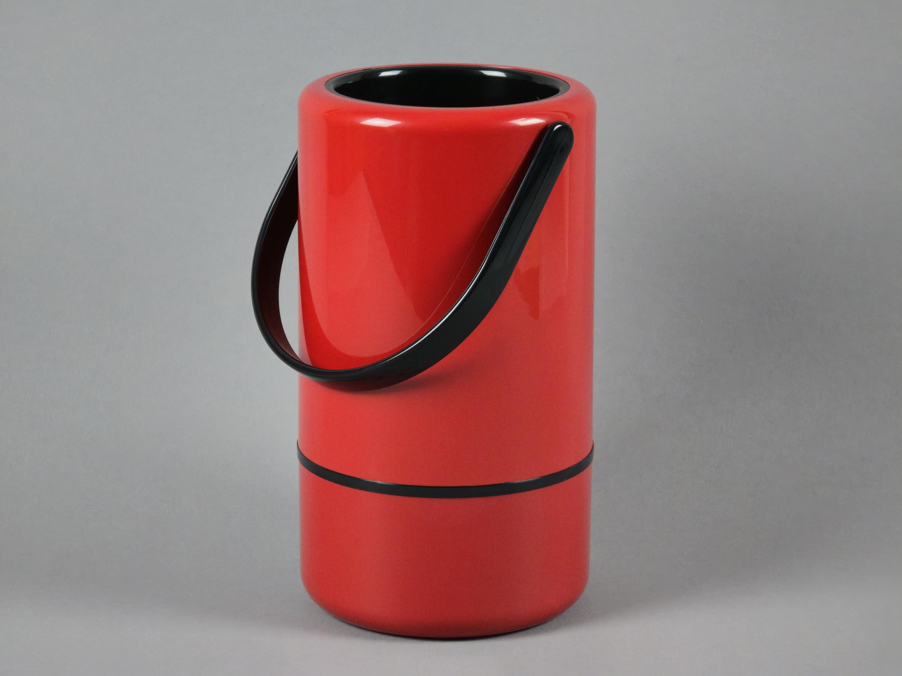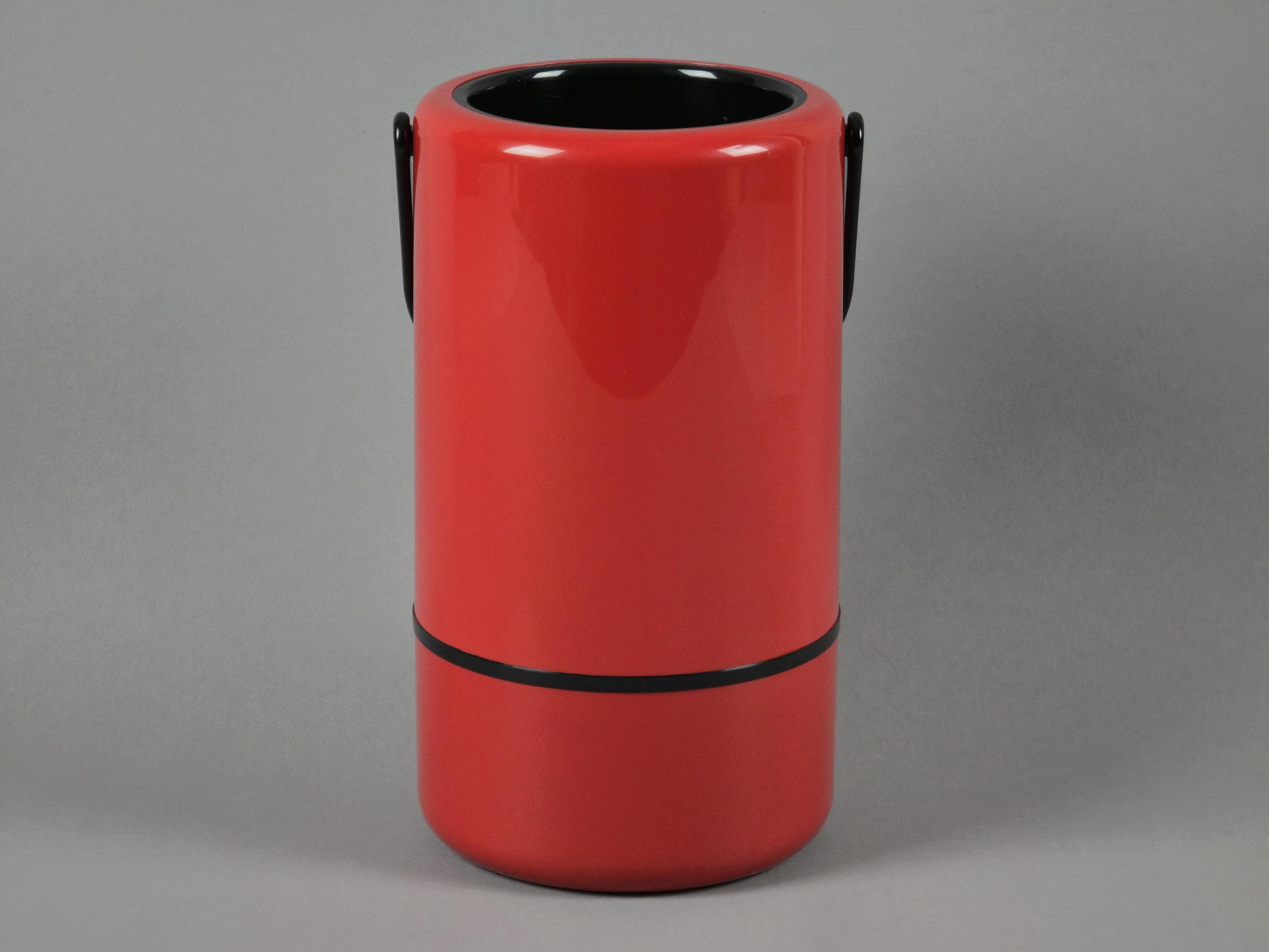 New old stock 1980s vintage red and black plastic thermic wine cooler from the 'Casa Bar' series by Scaroni Italy.