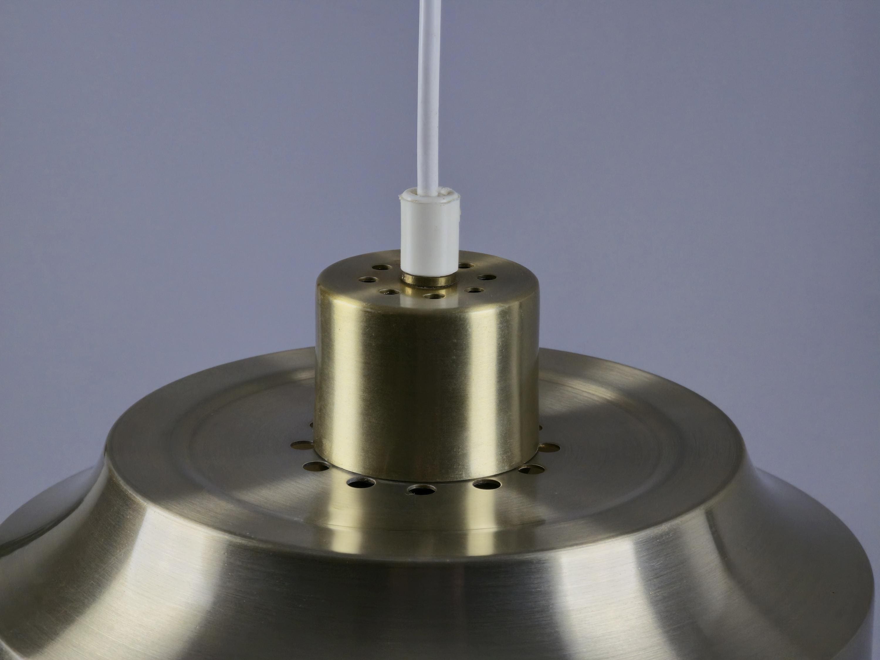 1960s Danish Mid Century Modern Brass Pendant Lamp With Louvered Diffuser.